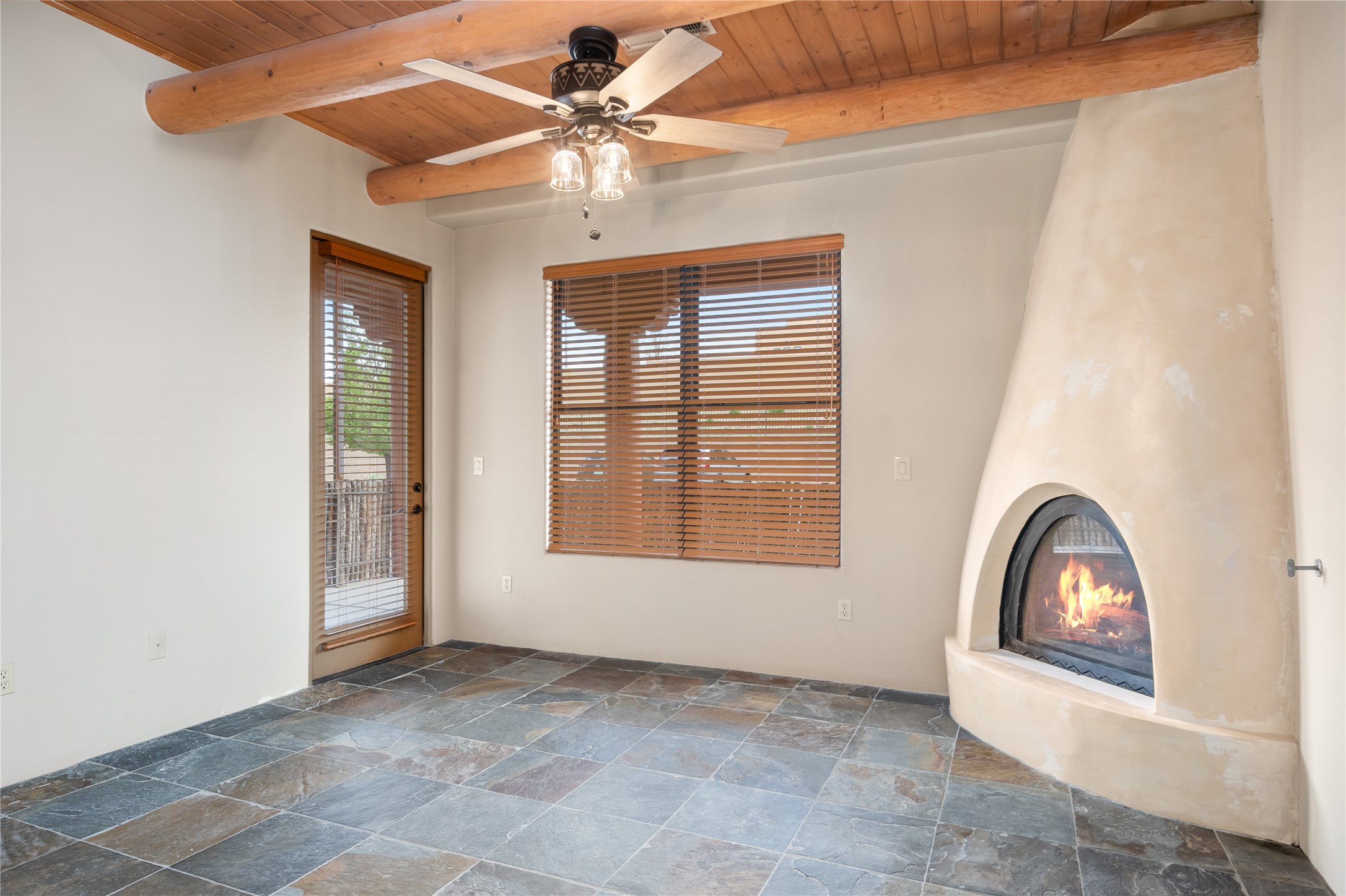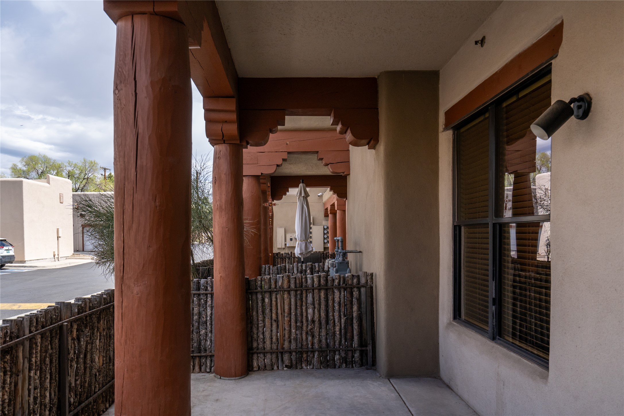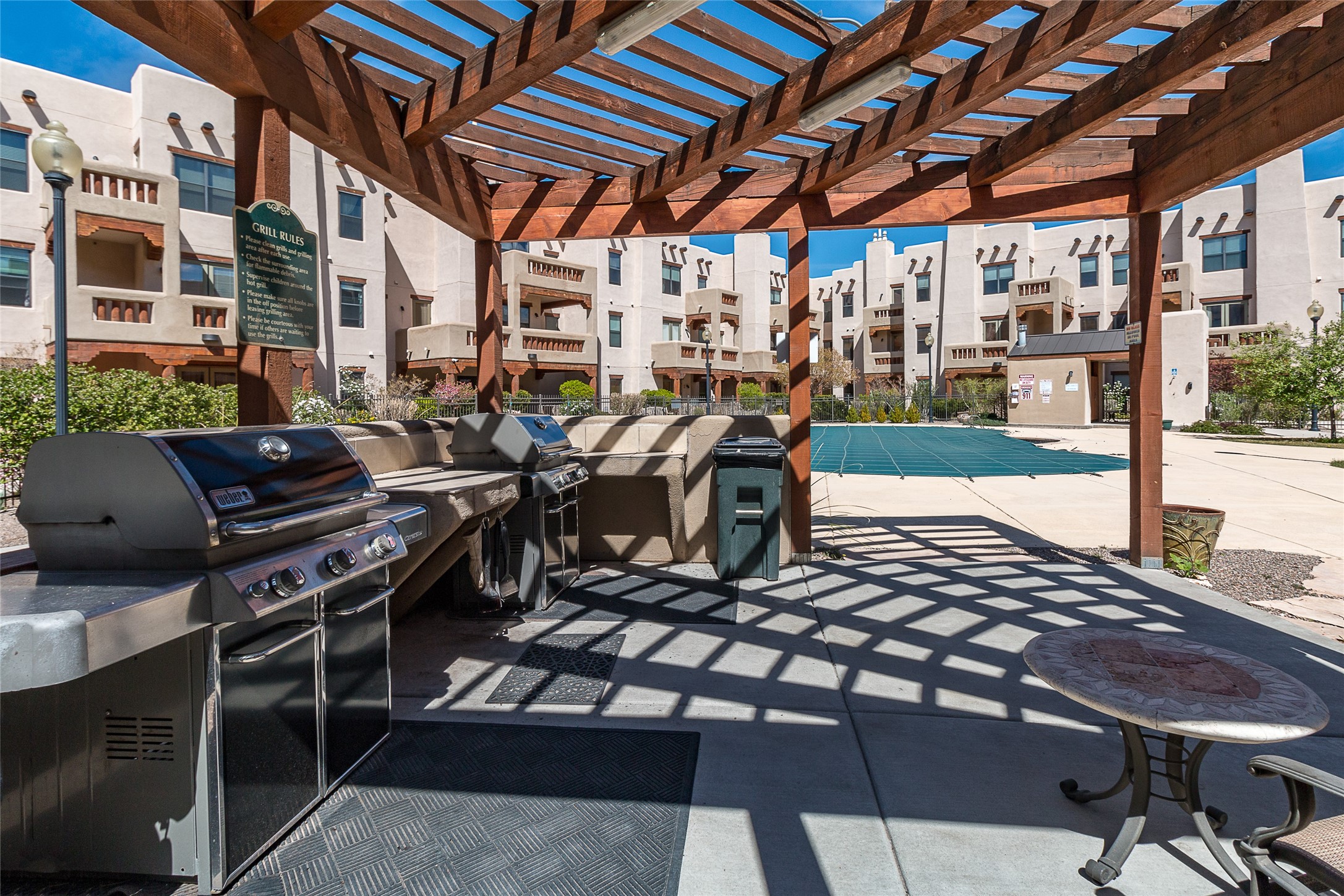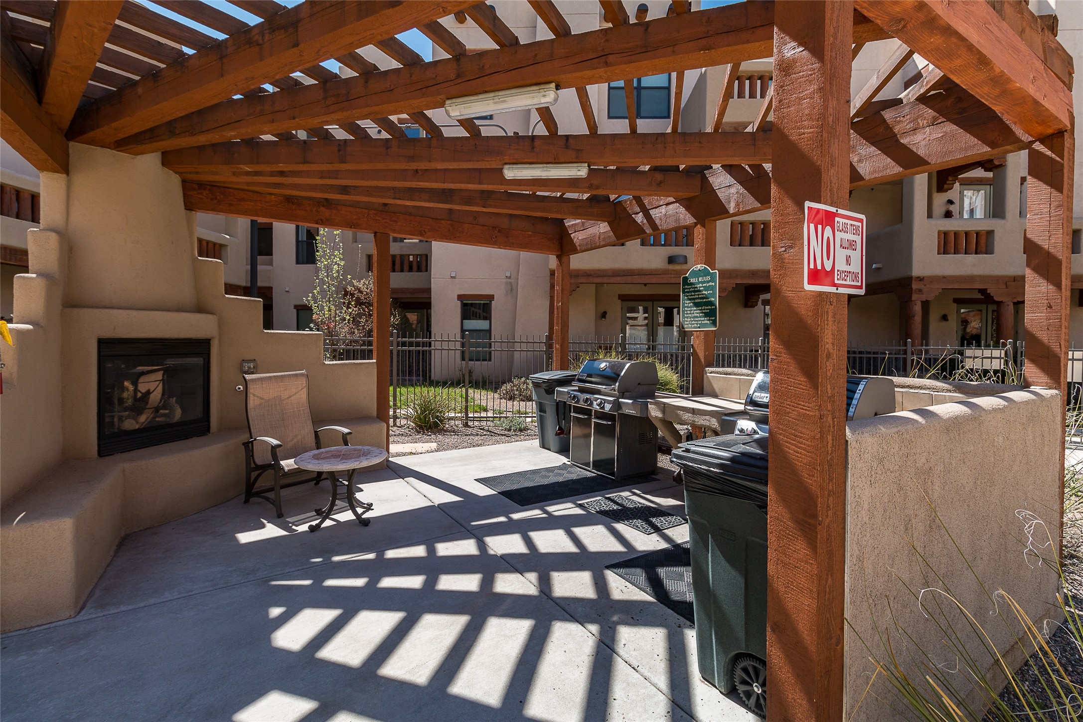 Welcome to 1405 Vegas Verdes #136, a beautifully maintained 1-bedroom, 1.5-bath condo located in the gated community of The Alameda. This ground-floor unit offers the perfect blend of Southwest character and everyday functionality, with features like wood vigas, a cozy corner fireplace, and a spacious open layout that flows from the kitchen to the living area. Step through the glass door to your private patio an ideal space for relaxing, dining al fresco, or unloading groceries. This unit has a storage unit as well, providing ample space for your vehicle, bikes, or extra belongings. Inside, you'll find a well-appointed kitchen with granite countertops and stainless steel appliances, a comfortable primary suite with full bath, and a separate powder room for guests. Additional conveniences include an in-unit washer and dryer, central air, and plenty of natural light throughout. Residents of The Alameda enjoy resort-style amenities including a swimming pool, fitness center, clubhouse, beautifully landscaped grounds, and secure gated access. Located near Santa Fe Place Mall, grocery stores, restaurants, and with easy access to Hwy 599, this condo offers low-maintenance living in one of Santa Fe's most desirable communities. Whether you're looking for a full-time residence, a lock-and-leave home, or a smart investment, this one has it all.