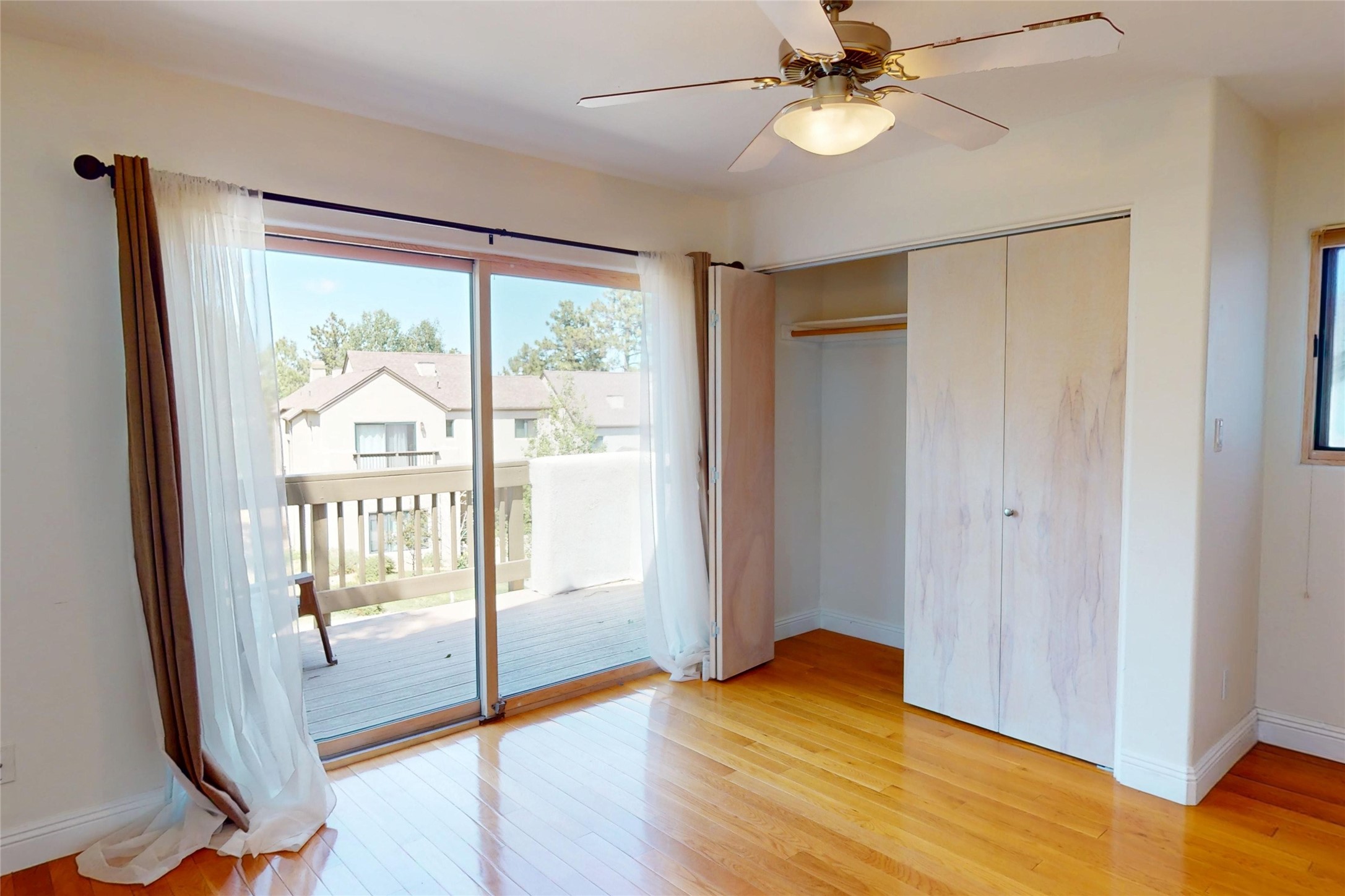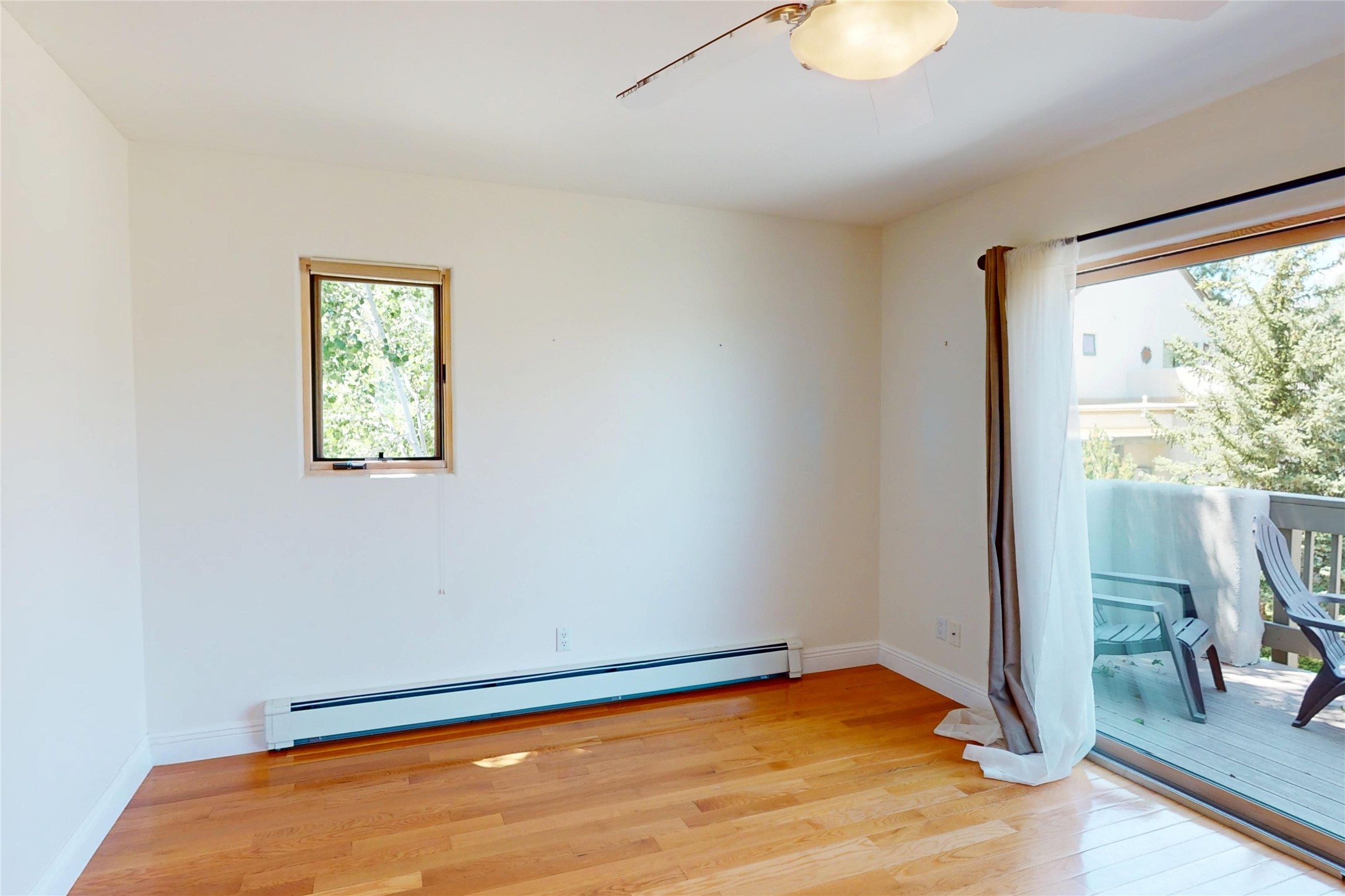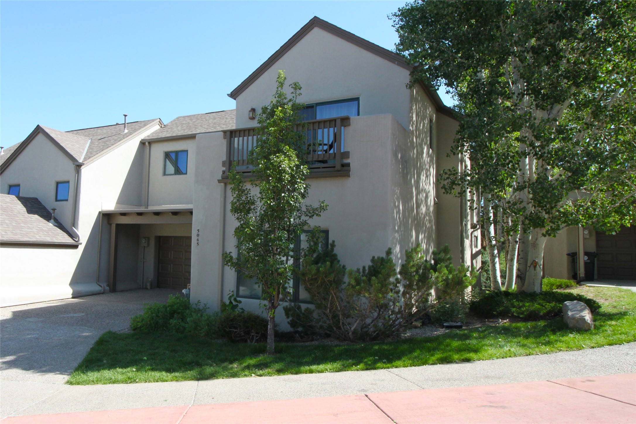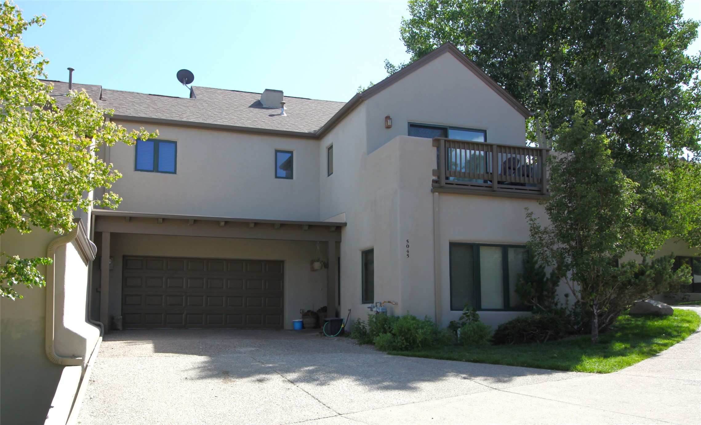 Beautiful and spacious end-unit townhome in the highly desirable Quemazon community. This light-filled 4-bedroom, 2.5 bath home offers sweeping views from every balcony. The open-concept living and dining area features 10-foot ceilings, slate tile floors, and a raised flagstone wood/gas fireplace that adds warmth and character. Large sliding glass doors open to a private, fenced courtyard that seamlessly extends the living space to the outdoors, perfect for relaxing, BBQ's and entertaining. Out the back porch gate is a #4 free city bus stop for easy access to the lab or town. The kitchen is both functional and stylish, complete with a gas stovetop, double ovens, a second sink at the wet bar, ample cabinetry, and a generous breakfast bar for casual dining. At the front of the home, a cozy sitting room, with pocket-doors for privacy, provides a versatile space, ideal as a home office/den, media or wine room, or library. A half bath and a coat closet with a large hidden finished storage area add convenience to the main level. Upstairs, you'll find beautiful hardwood floors. The serene owner's suite features a private balcony, a walk-in closet, with adjustable organizers and a luxurious five-piece bath with double vanities, a jetted tub, walk-in shower, and a separate water closet. Three additional bedrooms, each with their own deck share a full guest bath with natural sky-lighting. Additional highlights include a bright stairwell with natural hardwood finishes and built-in window seating (with hidden storage), ceiling fans in the living room and all bedrooms, upstairs laundry, and a two-car garage. As an end unit, the home benefits from enhanced natural light, Aspen tree shading and added privacy. Roof replaced in 2017 and stucco repaired in 2025. Located near hiking/biking trails and open space, this exceptional townhome offers comfort, quality, and convenience, all in one of Los Alamos's most sought-after neighborhoods.