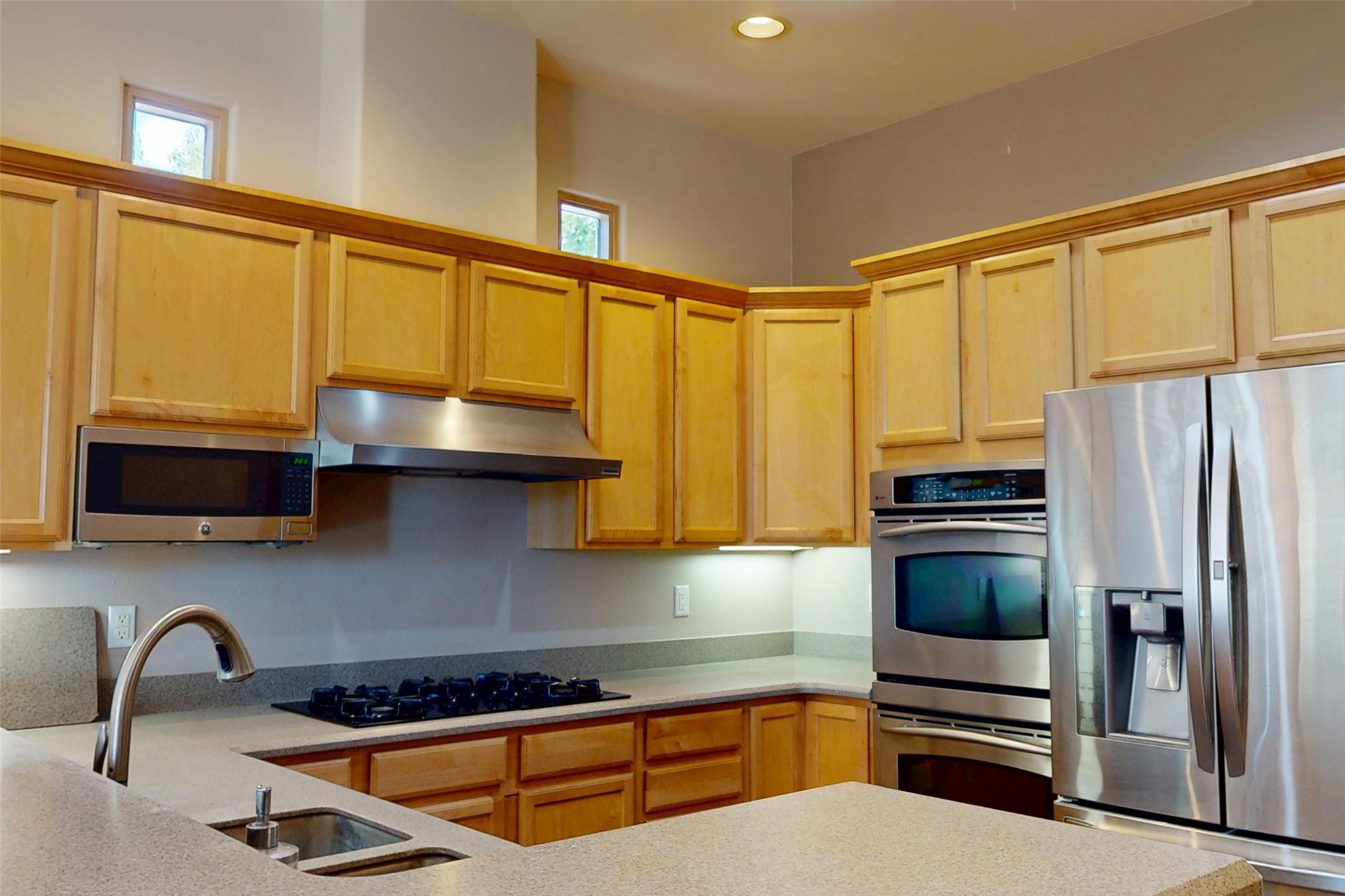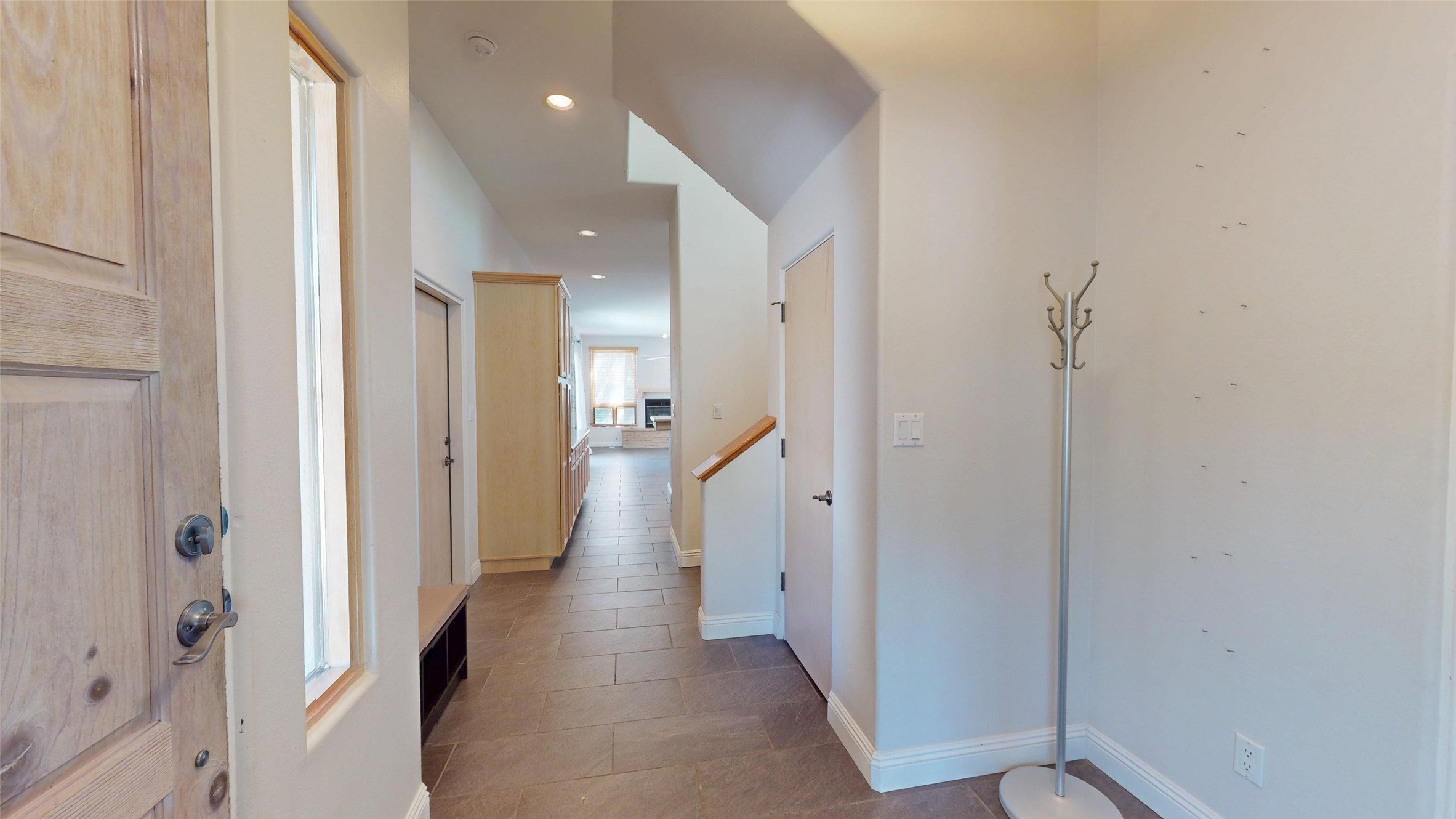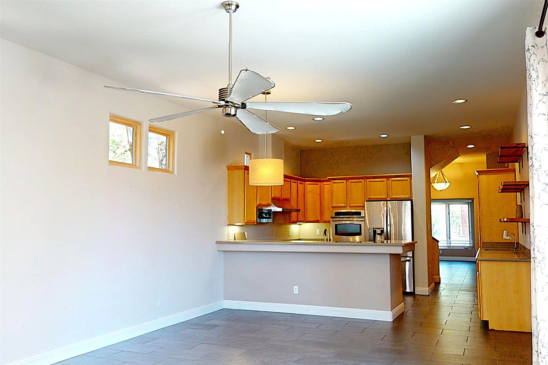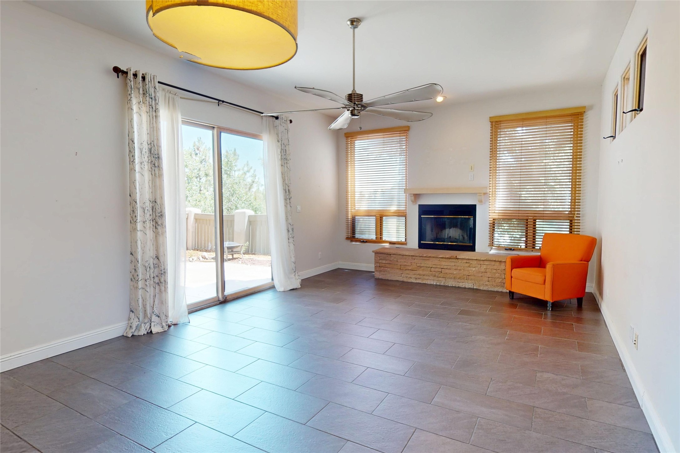 Beautiful and spacious end-unit townhome in the highly desirable Quemazon community. This light-filled 4-bedroom, 2.5 bath home offers sweeping views from every balcony. The open-concept living and dining area features 10-foot ceilings, slate tile floors, and a raised flagstone wood/gas fireplace that adds warmth and character. Large sliding glass doors open to a private, fenced courtyard that seamlessly extends the living space to the outdoors, perfect for relaxing, BBQ's and entertaining. Out the back porch gate is a #4 free city bus stop for easy access to the lab or town. The kitchen is both functional and stylish, complete with a gas stovetop, double ovens, a second sink at the wet bar, ample cabinetry, and a generous breakfast bar for casual dining. At the front of the home, a cozy sitting room, with pocket-doors for privacy, provides a versatile space, ideal as a home office/den, media or wine room, or library. A half bath and a coat closet with a large hidden finished storage area add convenience to the main level. Upstairs, you'll find beautiful hardwood floors. The serene owner's suite features a private balcony, a walk-in closet, with adjustable organizers and a luxurious five-piece bath with double vanities, a jetted tub, walk-in shower, and a separate water closet. Three additional bedrooms, each with their own deck share a full guest bath with natural sky-lighting. Additional highlights include a bright stairwell with natural hardwood finishes and built-in window seating (with hidden storage), ceiling fans in the living room and all bedrooms, upstairs laundry, and a two-car garage. As an end unit, the home benefits from enhanced natural light, Aspen tree shading and added privacy. Roof replaced in 2017 and stucco repaired in 2025. Located near hiking/biking trails and open space, this exceptional townhome offers comfort, quality, and convenience, all in one of Los Alamos's most sought-after neighborhoods.
