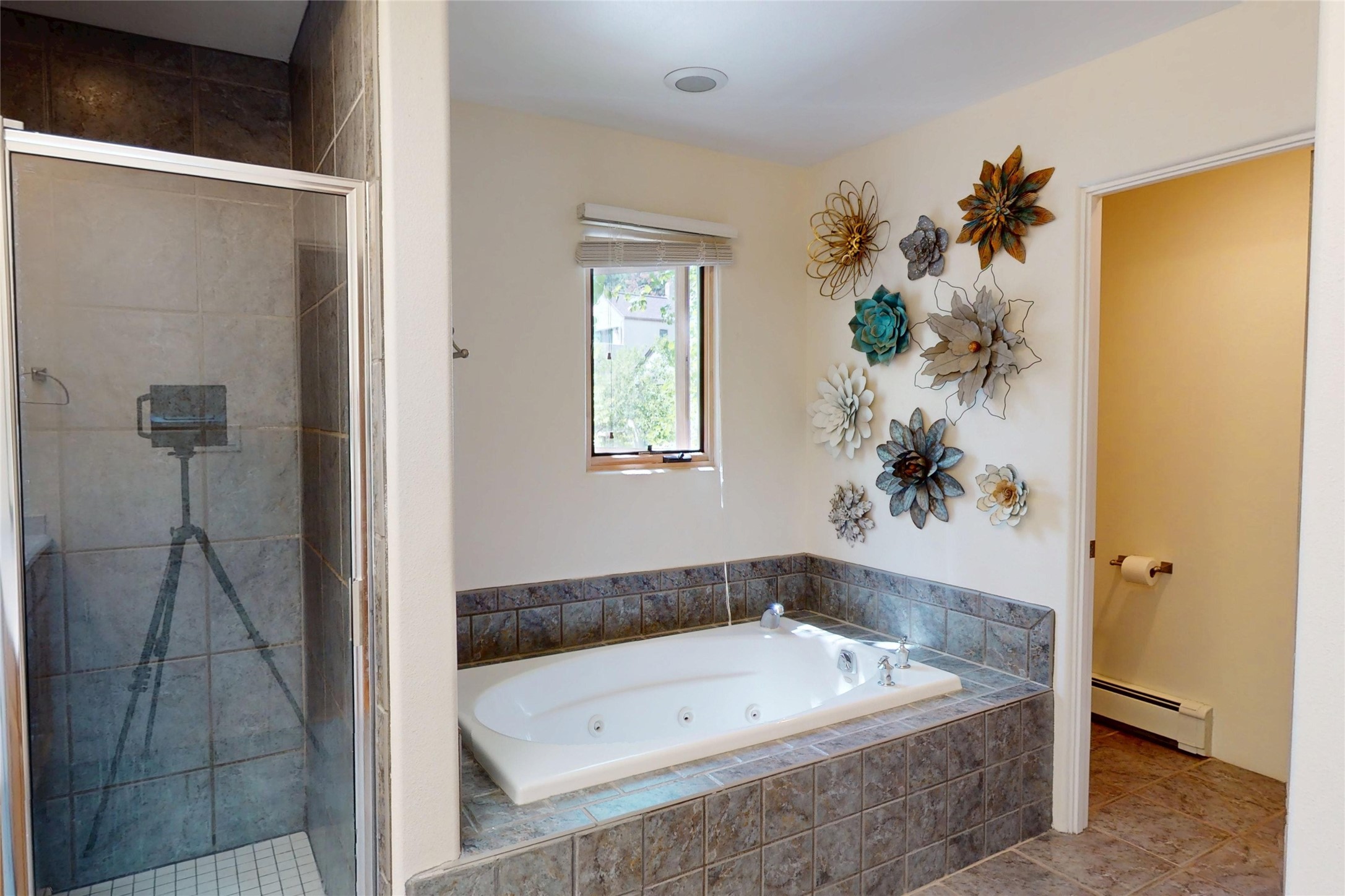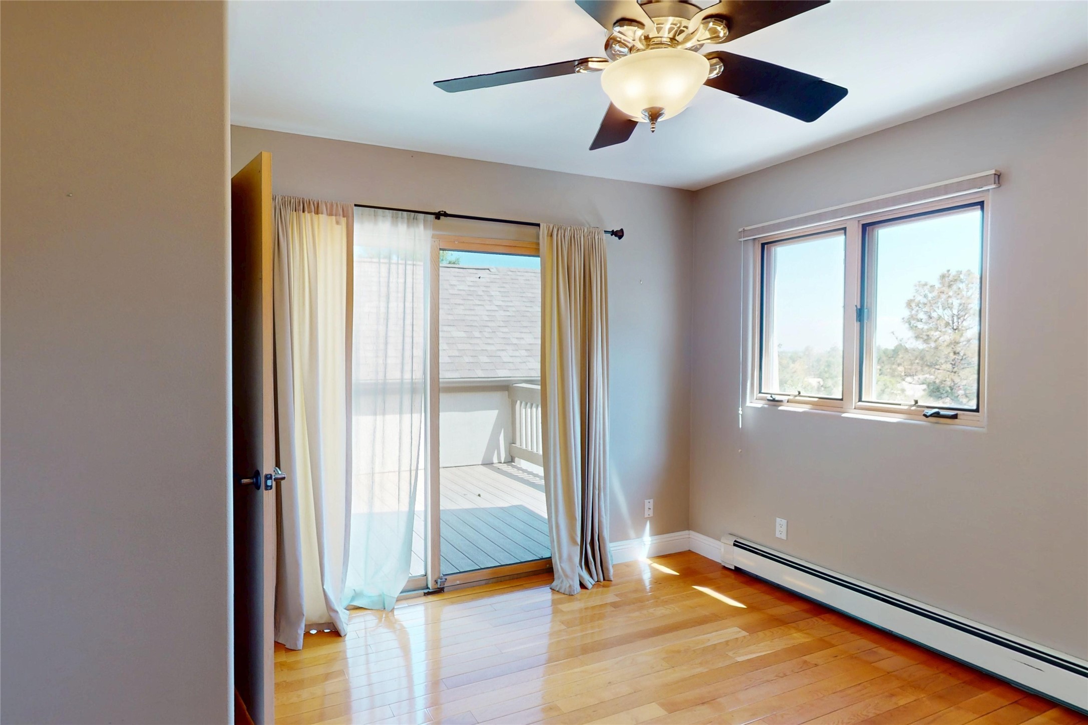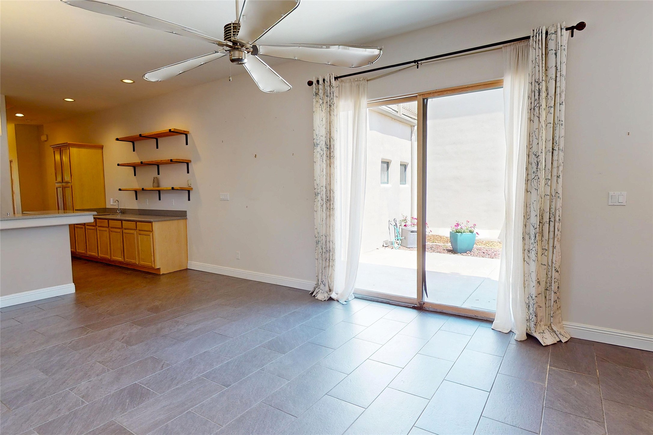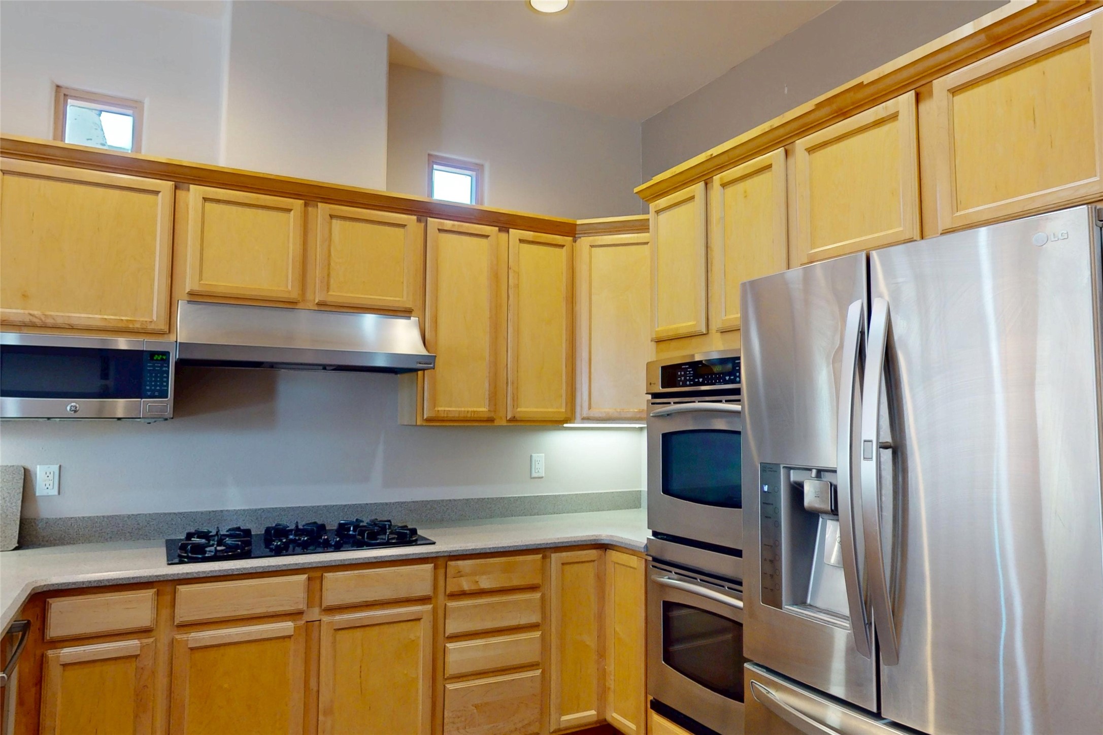 Beautiful and spacious end-unit townhome in the highly desirable Quemazon community. This light-filled 4-bedroom, 2.5 bath home offers sweeping views from every balcony. The open-concept living and dining area features 10-foot ceilings, slate tile floors, and a raised flagstone wood/gas fireplace that adds warmth and character. Large sliding glass doors open to a private, fenced courtyard that seamlessly extends the living space to the outdoors, perfect for relaxing, BBQ's and entertaining. Out the back porch gate is a #4 free city bus stop for easy access to the lab or town. The kitchen is both functional and stylish, complete with a gas stovetop, double ovens, a second sink at the wet bar, ample cabinetry, and a generous breakfast bar for casual dining. At the front of the home, a cozy sitting room, with pocket-doors for privacy, provides a versatile space, ideal as a home office/den, media or wine room, or library. A half bath and a coat closet with a large hidden finished storage area add convenience to the main level. Upstairs, you'll find beautiful hardwood floors. The serene owner's suite features a private balcony, a walk-in closet, with adjustable organizers and a luxurious five-piece bath with double vanities, a jetted tub, walk-in shower, and a separate water closet. Three additional bedrooms, each with their own deck share a full guest bath with natural sky-lighting. Additional highlights include a bright stairwell with natural hardwood finishes and built-in window seating (with hidden storage), ceiling fans in the living room and all bedrooms, upstairs laundry, and a two-car garage. As an end unit, the home benefits from enhanced natural light, Aspen tree shading and added privacy. Roof replaced in 2017 and stucco repaired in 2025. Located near hiking/biking trails and open space, this exceptional townhome offers comfort, quality, and convenience, all in one of Los Alamos's most sought-after neighborhoods.