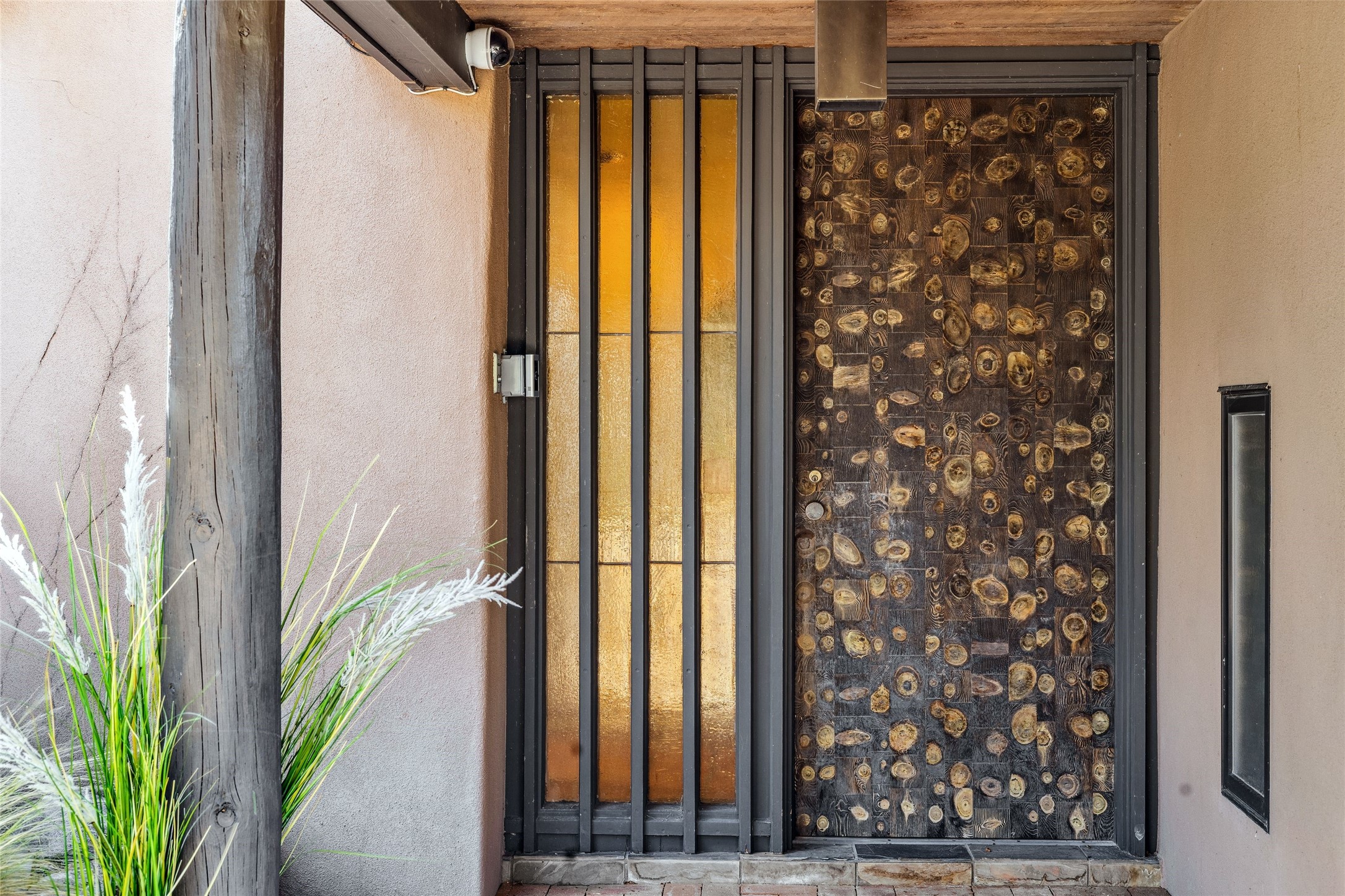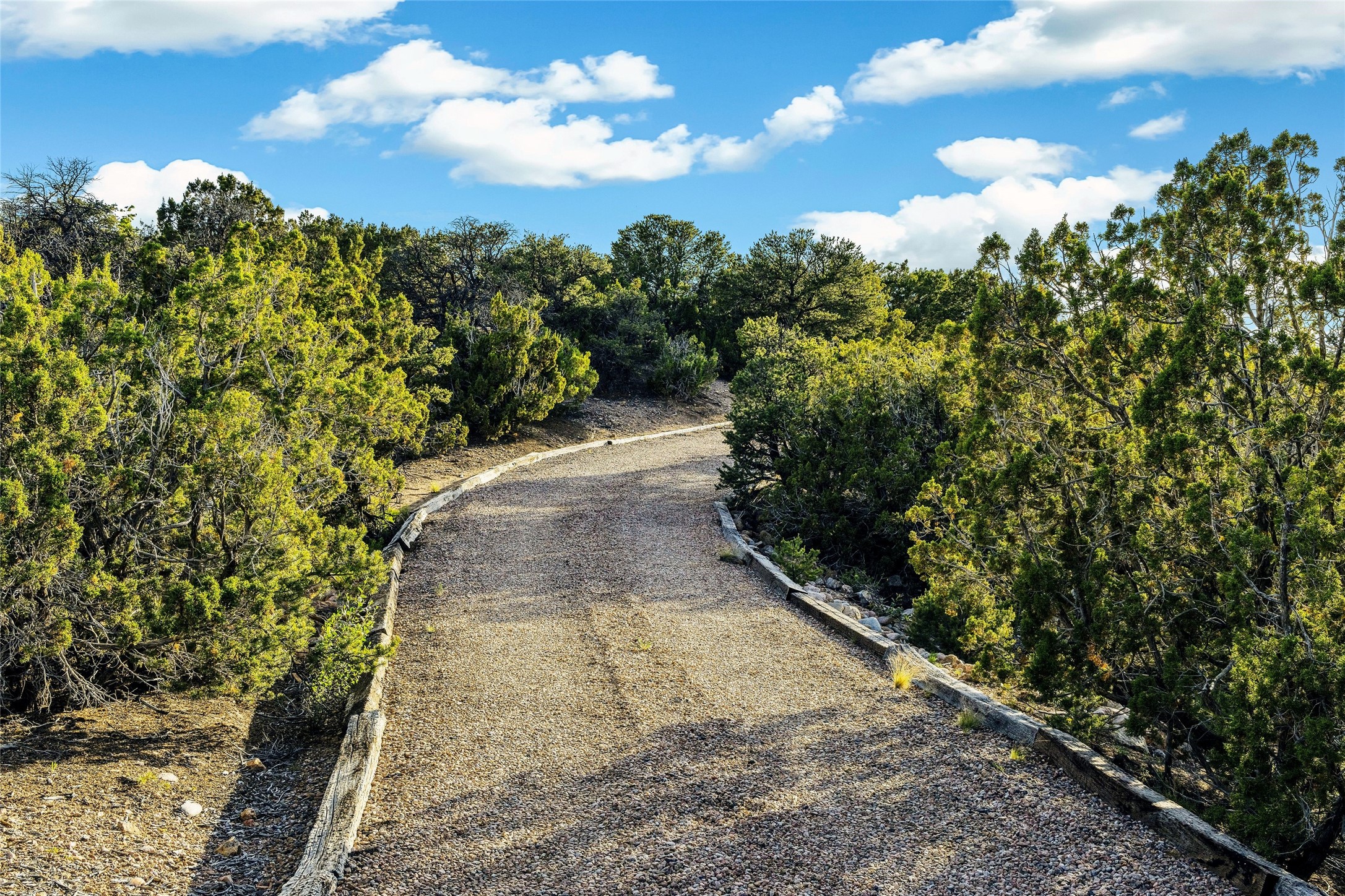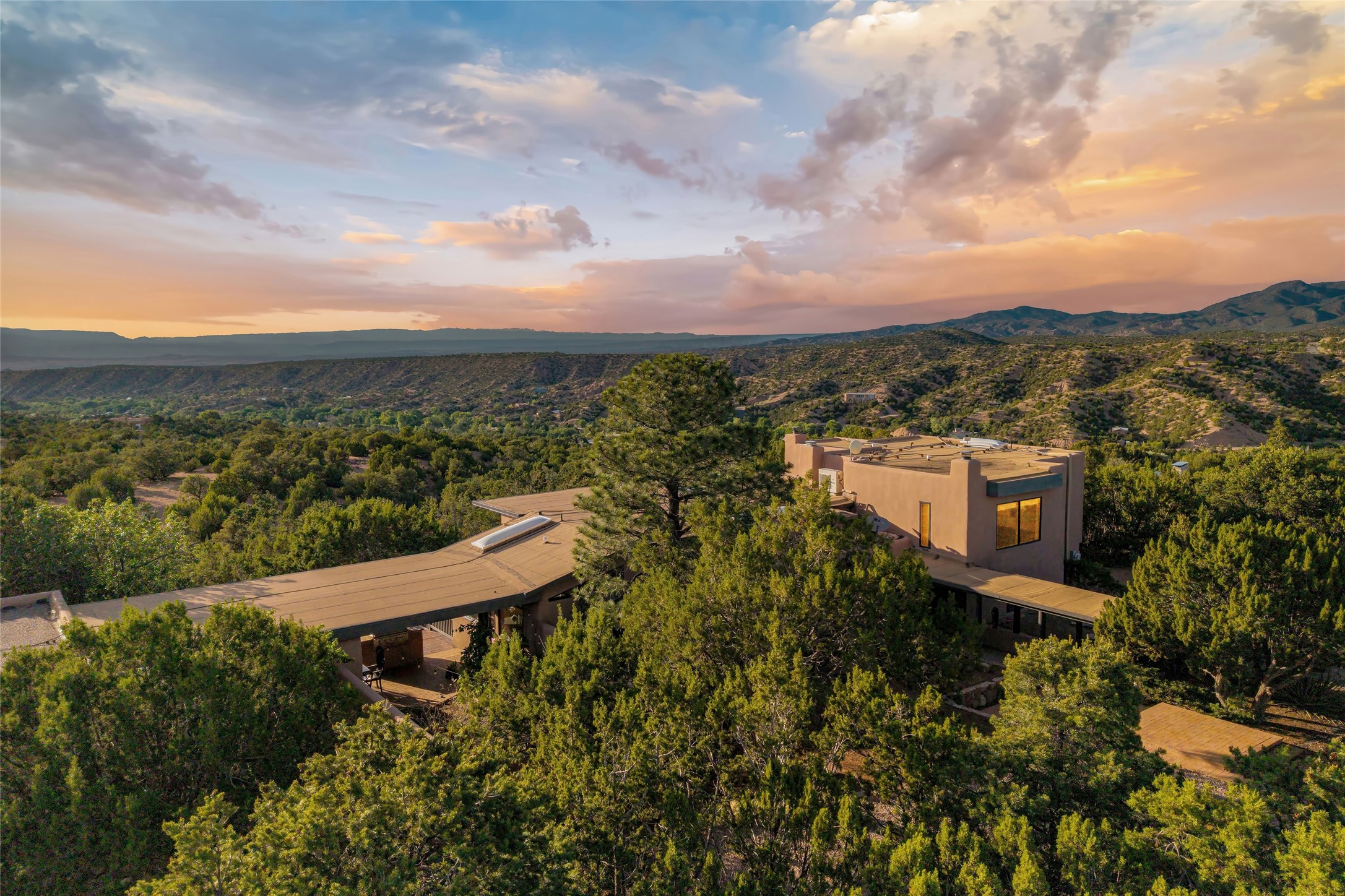 Contemporary Serenity with Panoramic Mountain Views in Vista Redonda: This gated sanctuary sits on 5.08 acres in the sought-after Vista Redonda neighborhood which is perched high on its own mesa. 54 Paseo Encantado offers awe-inspiring vistas of both the rugged Sangre de Cristo range to the east and the dramatic Jemez Mountains to the west--from sunrise to sunset, the views are nothing short of breathtaking.This architect designed 4-bedroom, 3-bath home spans 3,489 square feet and reflects a timeless contemporary design that complements its natural surroundings. With only three owners since its construction in 1973, it retains much of its original character and charm and was carefully maintained and thoughtfully preserved for over 21 years by the current owners. The layout is both functional and inviting. The main level features grand living and dining spaces that flow naturally to multiple outdoor living areas, including a deep covered portal ideal for al fresco dining. Just a few steps above the main floor is the spacious primary suite which includes a second living room with kiva fireplace and bar--perfect for quiet evenings or morning coffee with a view. Below the main level are three guest bedrooms and two baths, creating separation and privacy for family or visitors.The property includes a winding gravel drive, a two-car garage connected to the covered portal, mature native landscaping and ample flat buildable space should one wish to add a casita, guest house, or studio.A large solar array, installed in 2019, brings an added layer of energy efficiency to the property. Located just minutes from the Santa Fe National Forest, Four Seasons Resort Rancho Encantado, the Santa Fe Opera, Tesuque Village Market and approximately 15 minutes to all the cultural amenities of downtown Santa Fe, this rare offering in Vista Redonda is a private retreat with enduring style and soul.