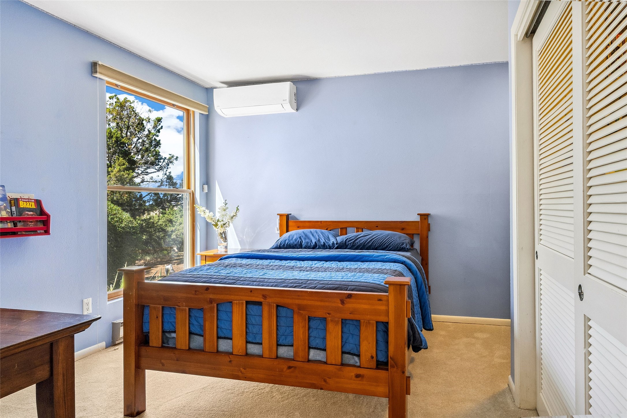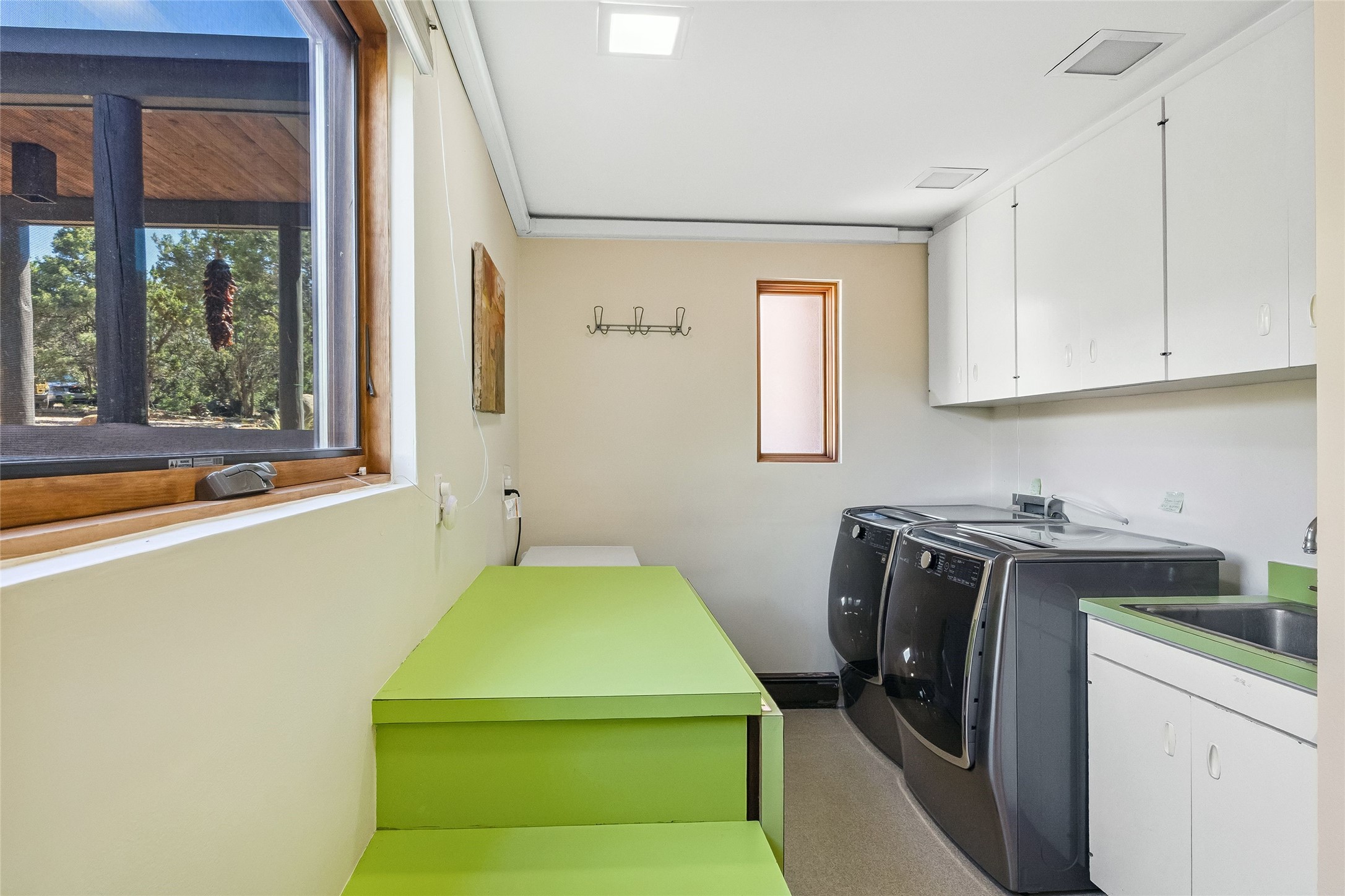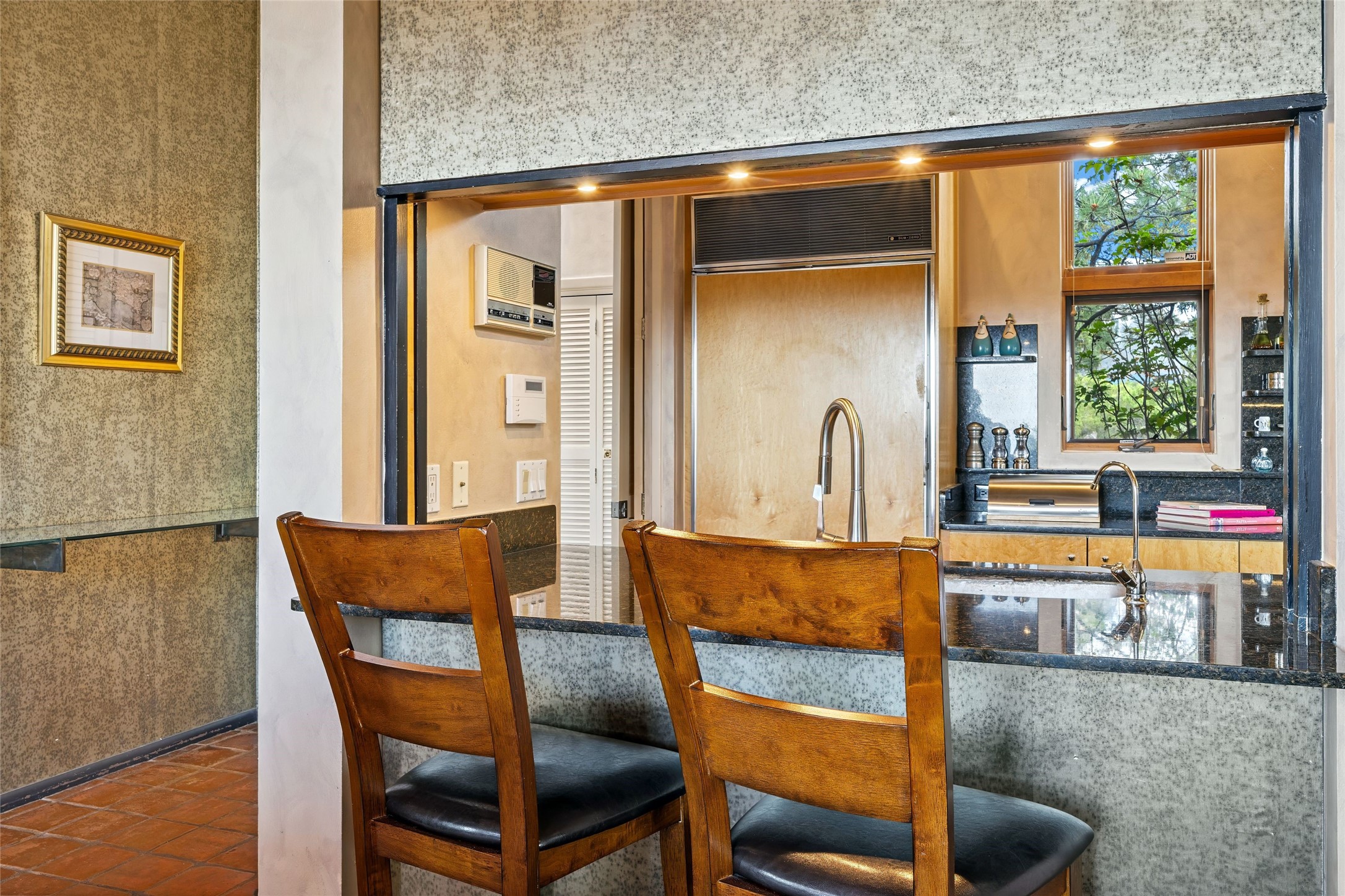 Contemporary Serenity with Panoramic Mountain Views in Vista Redonda: This gated sanctuary sits on 5.08 acres in the sought-after Vista Redonda neighborhood which is perched high on its own mesa. 54 Paseo Encantado offers awe-inspiring vistas of both the rugged Sangre de Cristo range to the east and the dramatic Jemez Mountains to the west--from sunrise to sunset, the views are nothing short of breathtaking.This architect designed 4-bedroom, 3-bath home spans 3,489 square feet and reflects a timeless contemporary design that complements its natural surroundings. With only three owners since its construction in 1973, it retains much of its original character and charm and was carefully maintained and thoughtfully preserved for over 21 years by the current owners. The layout is both functional and inviting. The main level features grand living and dining spaces that flow naturally to multiple outdoor living areas, including a deep covered portal ideal for al fresco dining. Just a few steps above the main floor is the spacious primary suite which includes a second living room with kiva fireplace and bar--perfect for quiet evenings or morning coffee with a view. Below the main level are three guest bedrooms and two baths, creating separation and privacy for family or visitors.The property includes a winding gravel drive, a two-car garage connected to the covered portal, mature native landscaping and ample flat buildable space should one wish to add a casita, guest house, or studio.A large solar array, installed in 2019, brings an added layer of energy efficiency to the property. Located just minutes from the Santa Fe National Forest, Four Seasons Resort Rancho Encantado, the Santa Fe Opera, Tesuque Village Market and approximately 15 minutes to all the cultural amenities of downtown Santa Fe, this rare offering in Vista Redonda is a private retreat with enduring style and soul.