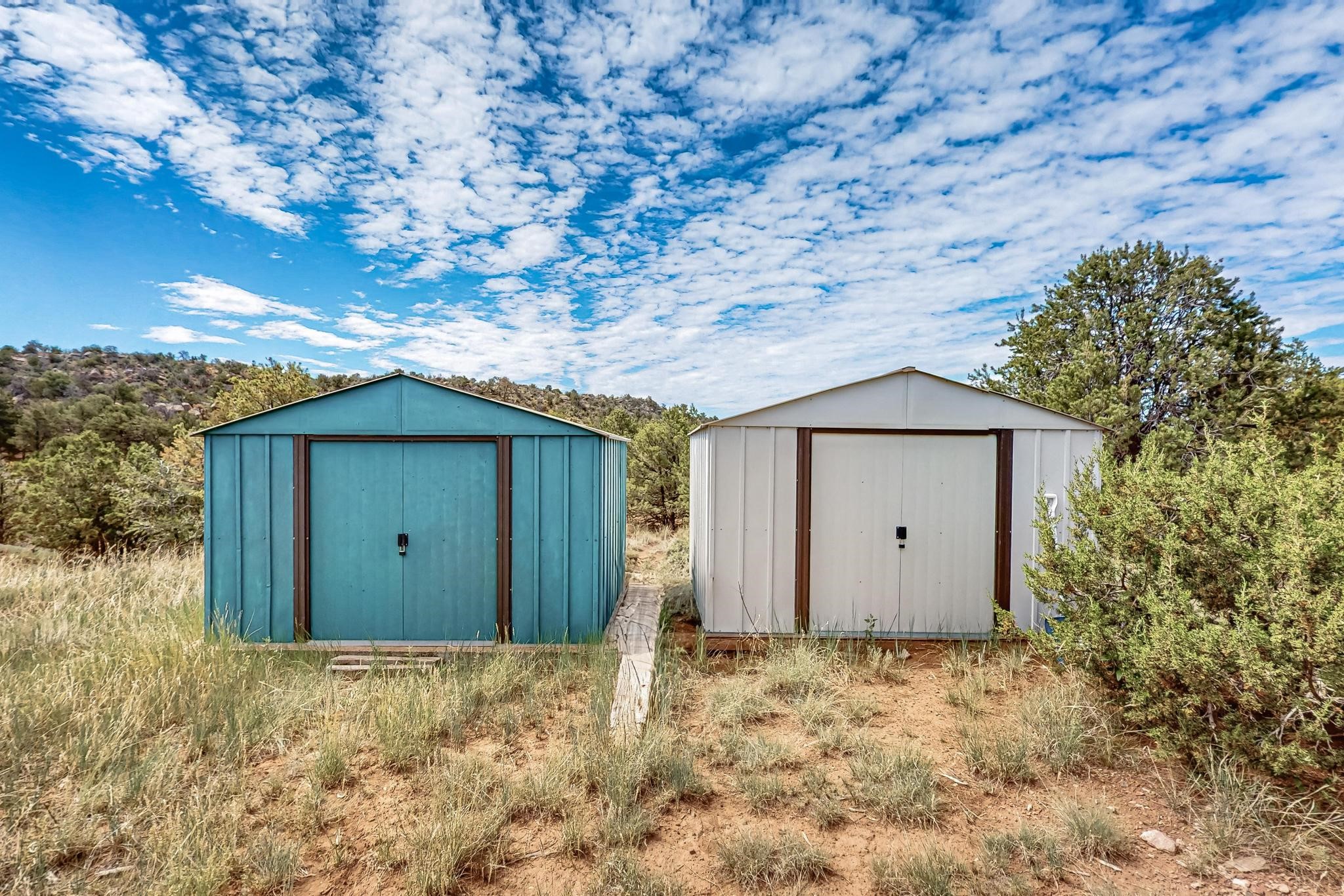 This charming Casita sits on 5 acres with stunning views! You'll enjoy miles of hiking trails in the Eldorado Community Preserve, as well as easy access to the National Forest. Bring your horses and chickens; you're allowed to have both. No HOA. Fenced backyard with garden. There are also two storage sheds included. The Solar System is owned. There is an Artesian well that is shared with two neighbors. You are only 10 minutes from Restaurants, a Grocery, and a Hardware store. Come out and enjoy this beautiful, peaceful home and its lovely property. Make this your forever home or live in it while you build, and have the Casita for family or as an income property.