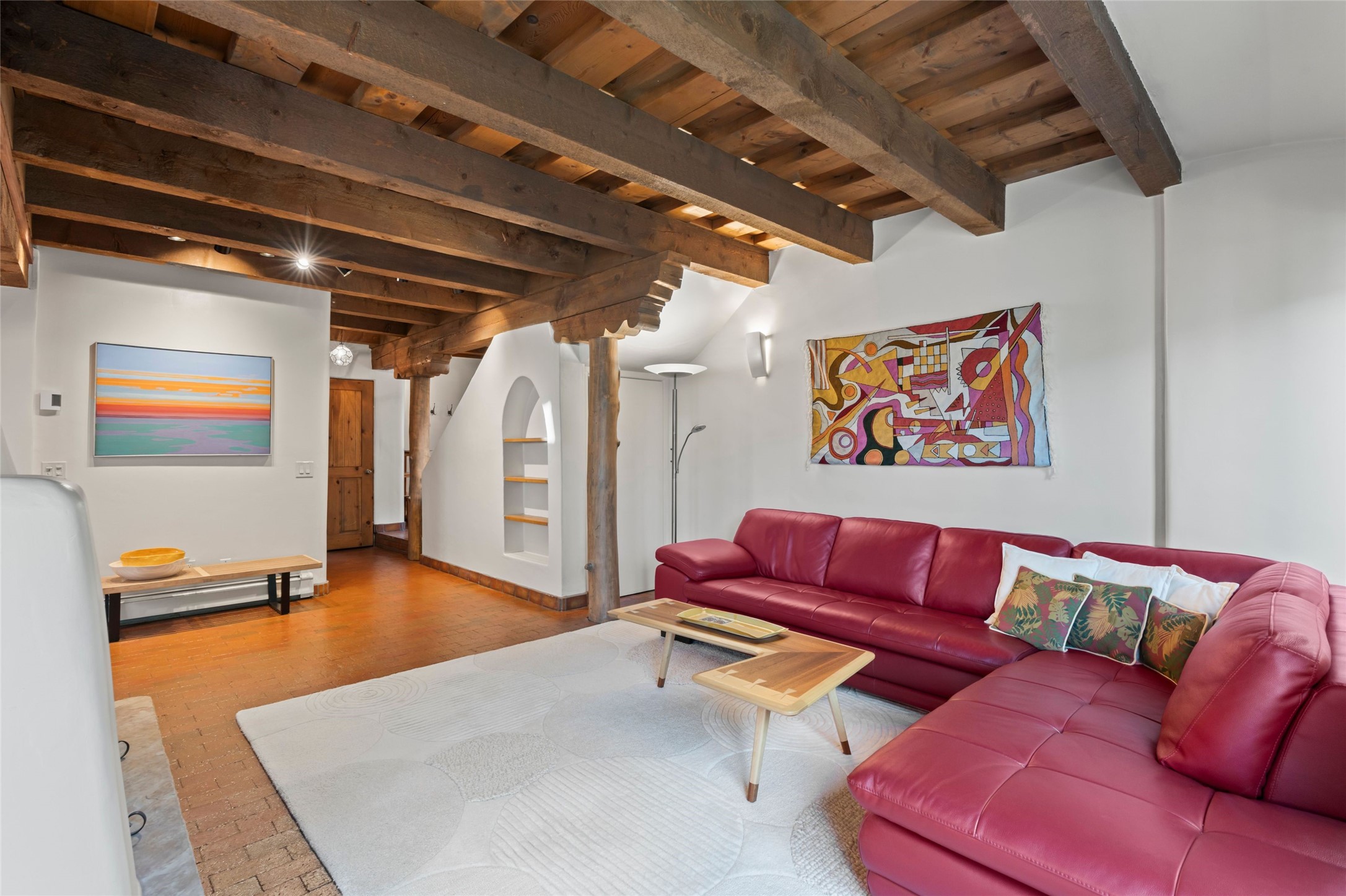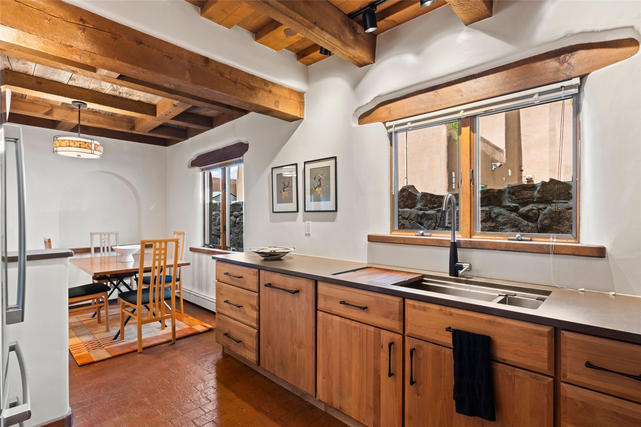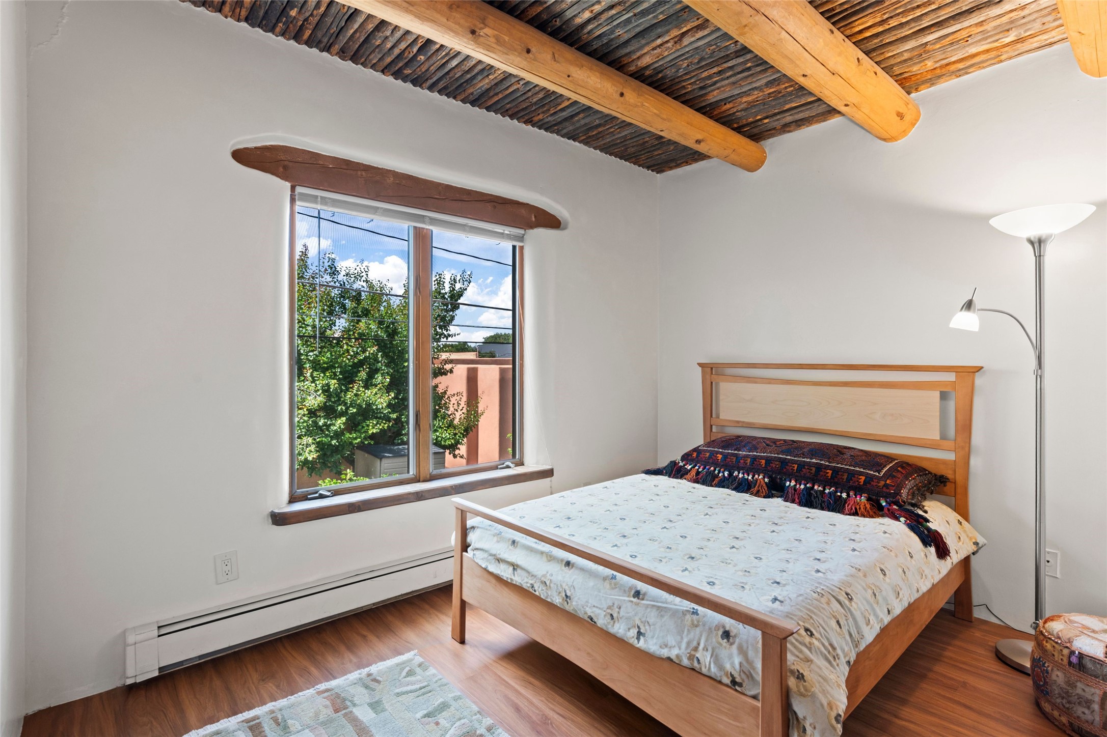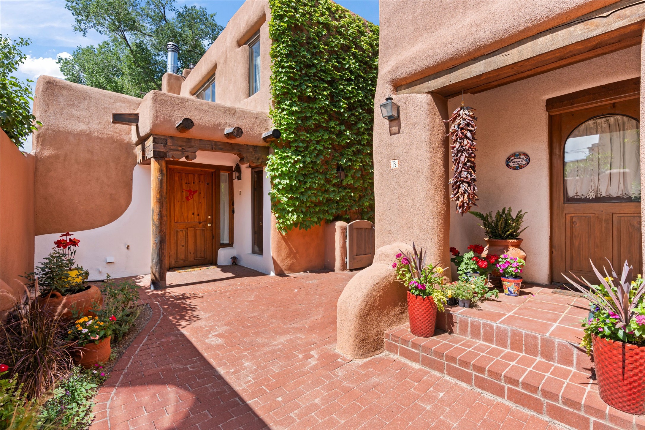 Seeking a Santa Fe getaway - escape from your busy life? This is a perfect "lock & leave" location, with no effort or concern, close the door and leave for 3 months. Seeking a rental opportunity? This condo would be a highly desirable rental because the location is what everyone wants -"walking distance to the Plaza". Seeking a precious place to call your new home? This is a perfect retreat to a town that offers the calm and serenity of Santa Fe: create your new life!Nothing says Santa Fe more than a precious adobe home, tucked into the most desirable of locations - South Capitol. And in real estate, nothing is more unique and rare than a completely renovated adobe home in Santa Fe. Ideal is the most applicable word for this condo. Ideal location because South Capitol offers such walkability/proximity - to the Plaza, Railyard District & Farmer's Market, the Lensic performance theatre, abundant choices of restaurants, Kaune's neighborhood market, multiple fascinating museums, a variety of wonderful shopping, all the well-known fiestas, markets on the Plaza, musical venues, biking, hiking, skiing, walking - anything you enjoy doing! Ideal because the location and privacy of this particular condo are unique to the center of Santa Fe. Ideal because you will never need to endure the dreaded renovation. Ideal because, as you can see from the photos, the Santa Fe details are abundant - all uniquely representing Santa Fe history & style. Every ceiling is designed with different details, hand-carved corbels and vigas, a charming and special wood burning two-sided fireplace. You will enjoy the private back yard: grassy tufts that require no effort and a patio to gather around the outdor fireplace. Will this treasure be your residence or your occasional escape to Santa Fe? Regardless, you would be sorry to miss this opportunity - special properties that surprise and delight are not so common.