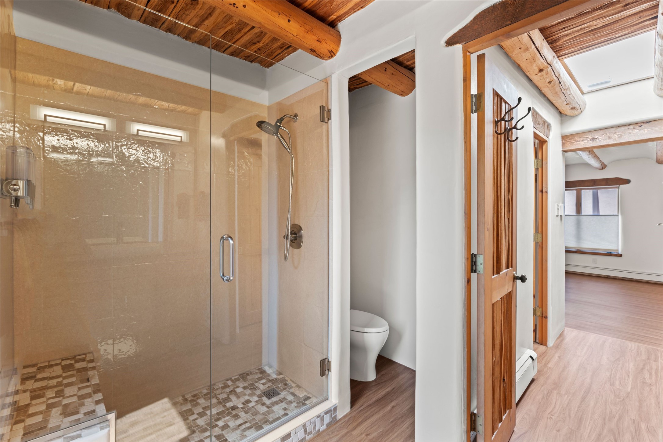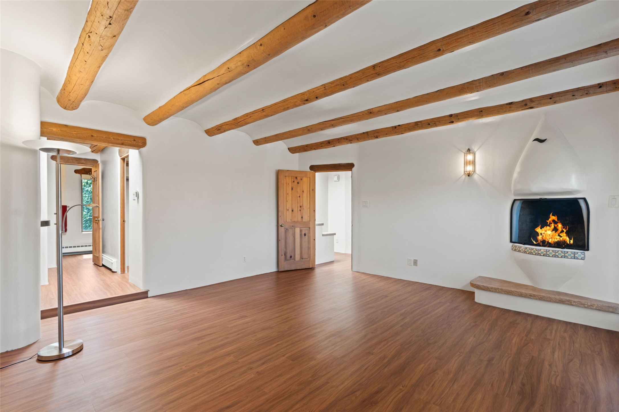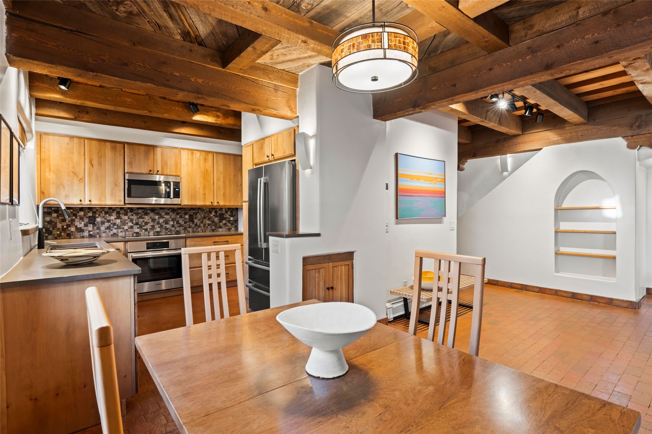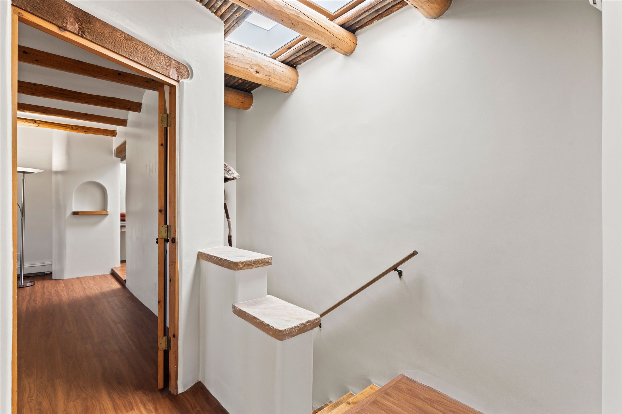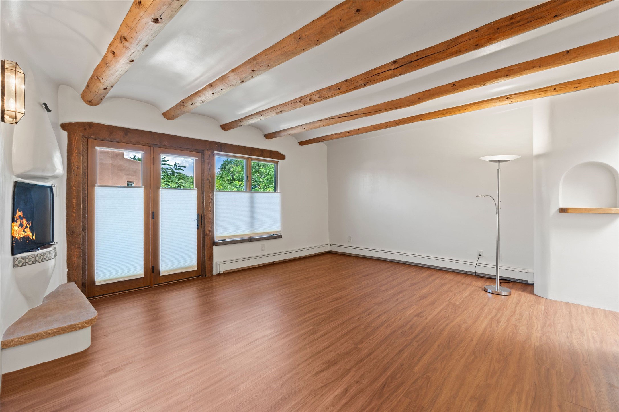 Seeking a Santa Fe getaway - escape from your busy life? This is a perfect "lock & leave" location, with no effort or concern, close the door and leave for 3 months. Seeking a rental opportunity? This condo would be a highly desirable rental because the location is what everyone wants -"walking distance to the Plaza". Seeking a precious place to call your new home? This is a perfect retreat to a town that offers the calm and serenity of Santa Fe: create your new life!Nothing says Santa Fe more than a precious adobe home, tucked into the most desirable of locations - South Capitol. And in real estate, nothing is more unique and rare than a completely renovated adobe home in Santa Fe. Ideal is the most applicable word for this condo. Ideal location because South Capitol offers such walkability/proximity - to the Plaza, Railyard District & Farmer's Market, the Lensic performance theatre, abundant choices of restaurants, Kaune's neighborhood market, multiple fascinating museums, a variety of wonderful shopping, all the well-known fiestas, markets on the Plaza, musical venues, biking, hiking, skiing, walking - anything you enjoy doing! Ideal because the location and privacy of this particular condo are unique to the center of Santa Fe. Ideal because you will never need to endure the dreaded renovation. Ideal because, as you can see from the photos, the Santa Fe details are abundant - all uniquely representing Santa Fe history & style. Every ceiling is designed with different details, hand-carved corbels and vigas, a charming and special wood burning two-sided fireplace. You will enjoy the private back yard: grassy tufts that require no effort and a patio to gather around the outdor fireplace. Will this treasure be your residence or your occasional escape to Santa Fe? Regardless, you would be sorry to miss this opportunity - special properties that surprise and delight are not so common.