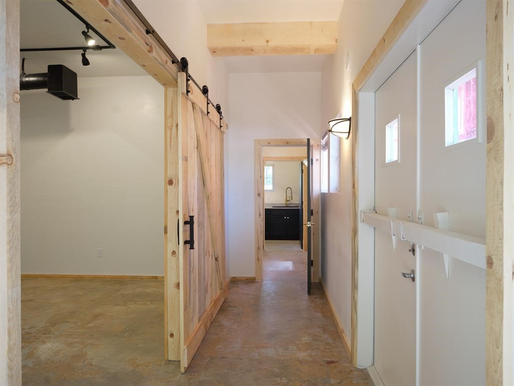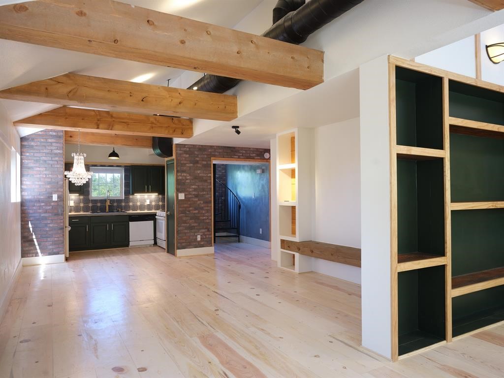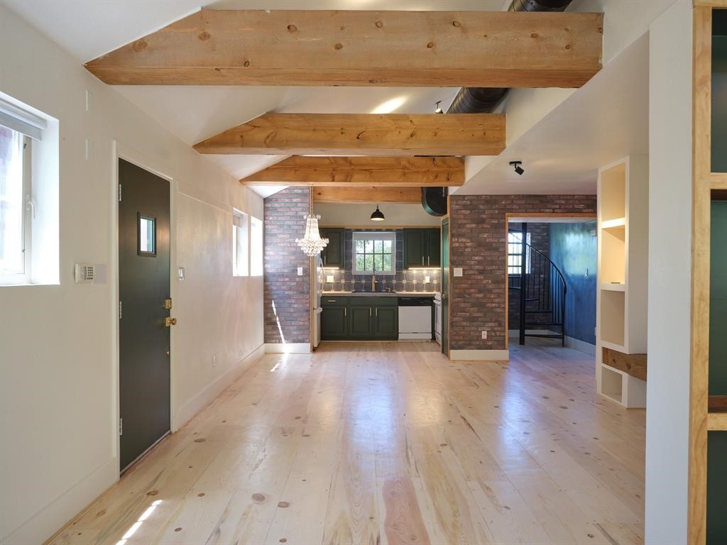 Welcome to 1918 Hopewell Unit C, a remarkable two-unit condo property nestled in the vibrant heart of Santa Fe. These newly renovated condos offer a sophisticated blend of modern luxury, flexibility, and charm--making them an ideal choice for discerning homeowners, creatives, or live/work entrepreneurs. The upstairs unit is designed for elegant residential living, featuring an exquisitely updated interior bathed in natural light. Custom wide-plank wood floors create a seamless flow throughout, exuding warmth and refinement while visually expanding the space. Exposed wooden beams overhead add architectural interest and a rustic-chic touch. A custom kitchen with artisan cabinets, a cement countertop, and plastered accent walls elevate the aesthetic. Every detail has been considered--from bespoke doors to thoughtful built-ins. The main living area is bright and open, featuring shelving with a matching wooden bench and a dazzling crystal chandelier that serves as a stunning focal point. Downstairs, the second unit was designed with an artist or small business in mind, offering polished concrete floors, exposed beams, and visible ductwork that bring a contemporary, industrial-chic vibe. This flexible space includes a full bathroom, a sleek kitchenette with dark cabinetry and a gold-toned faucet, and multiple open areas ideal for a gallery, studio, office, or client-facing business. A striking wooden barn door and custom wood finishes add rich character, while track lighting and ambient sconces provide an ideal backdrop for creative or professional work. With two separate units, two bathrooms (one on each level), and dual zoning for commercial and residential use, this unique property is perfectly suited for a live/work lifestyle--live comfortably upstairs while running a business, studio, or gallery downstairs. The possibilities are truly endless.