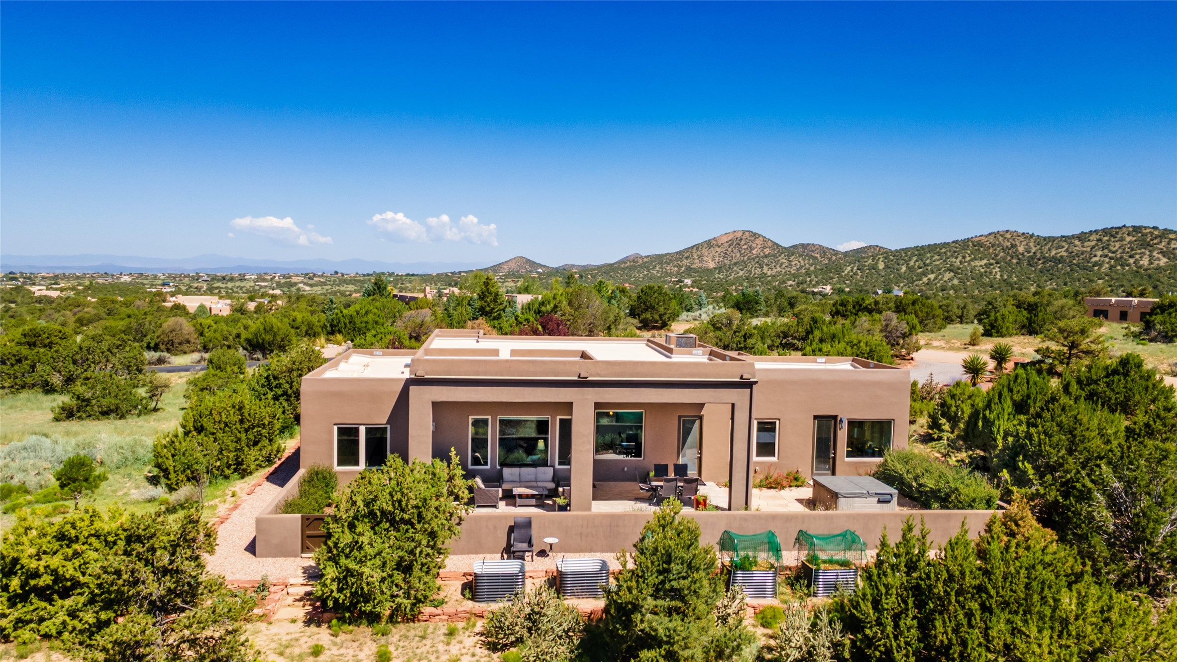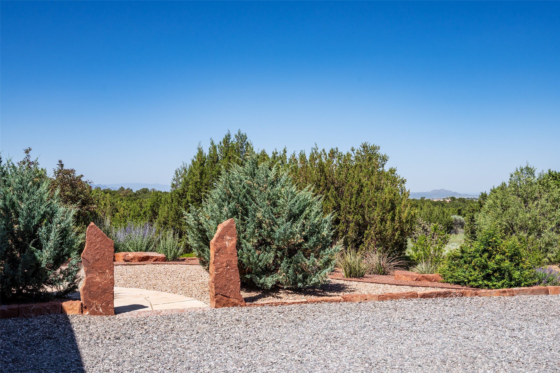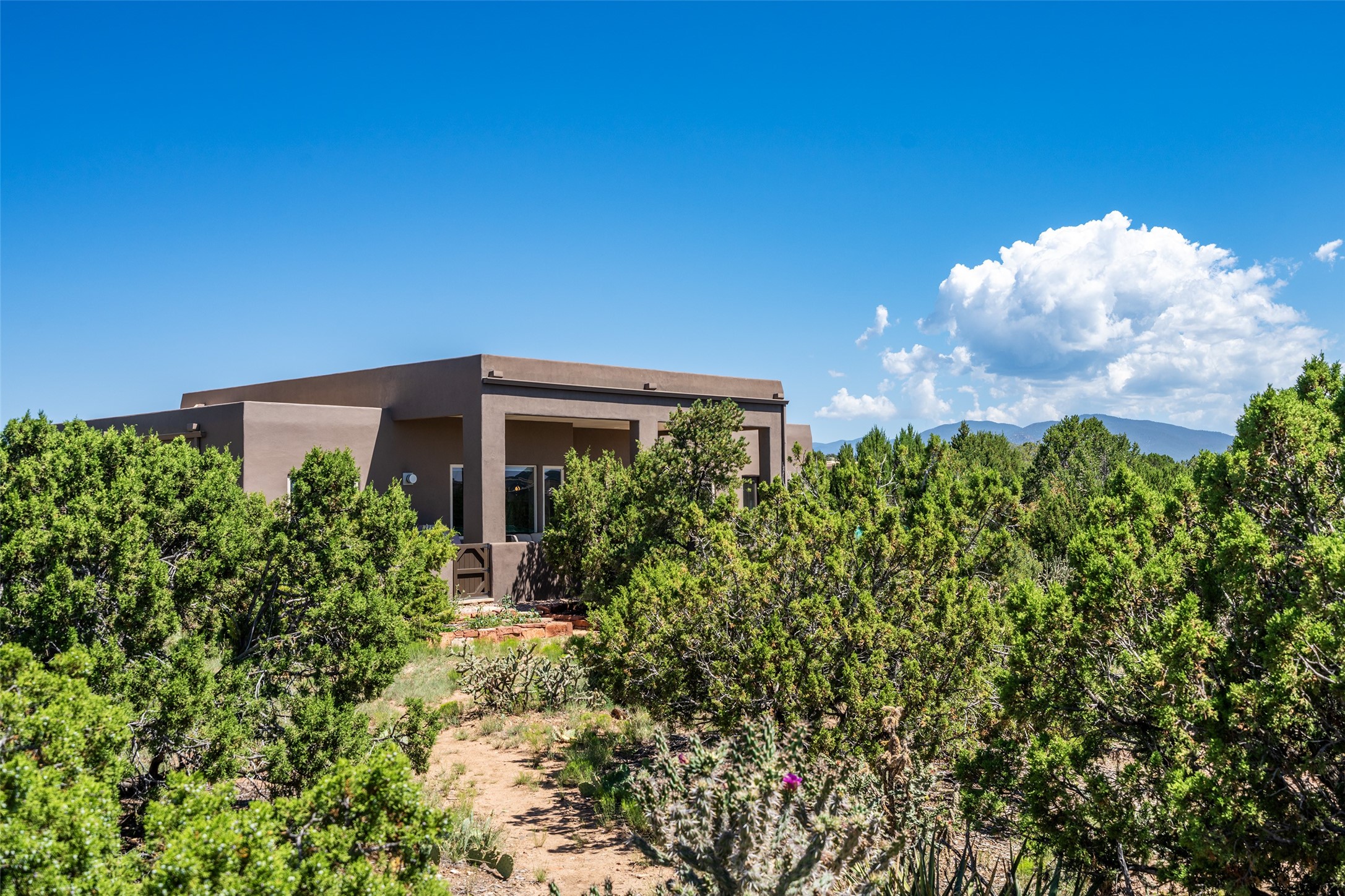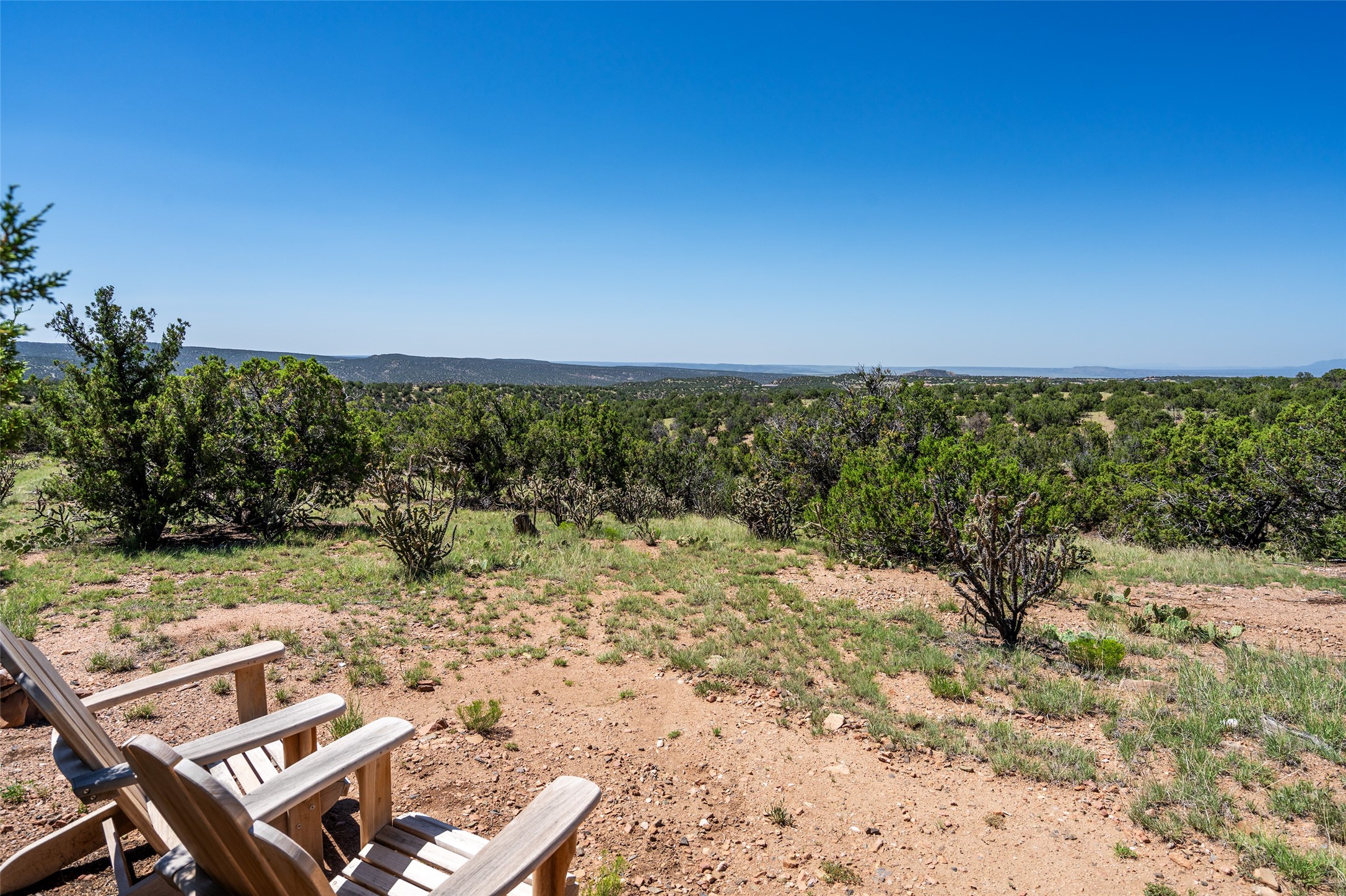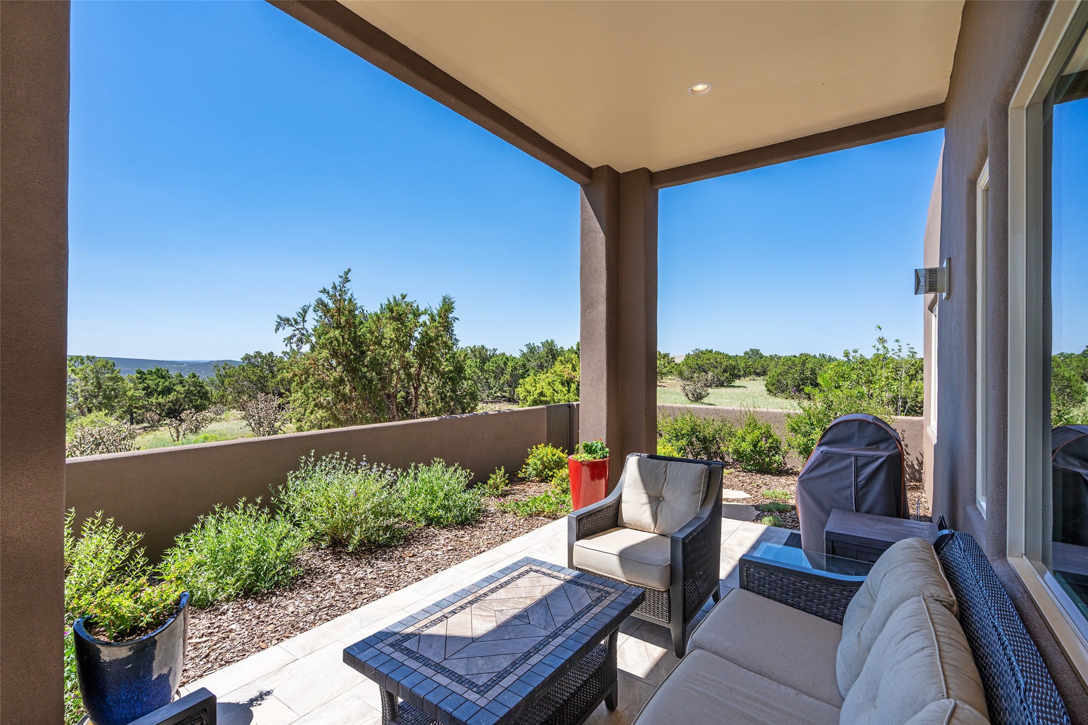 Perched high in The Ridges, a prestigious subdivisionbordering Eldorado greenspace and nearby conveniences,this stunning 3-bedroom, 2-bath home blends modern Southwestern design with serene high-desert living. Thoughtfully situated on 4.08 acres, the home features an open-concept layout that seamlessly connects the kitchen, dining, and living areas, ideal for entertaining or quiet enjoyment. The corner gas fireplace and overhead vigas add coziness andwarmthand expansive picture windows frame breathtaking panoramic views flooding the interior with natural light. Step outside to a spacious covered portal surrounded by an enclosed courtyard, perfect for morning coffee or evening gatherings under the stars. Themature, xeriscape landscaping is enhanced by a drip irrigation system, and a meandering pathwayleads to peaceful secluded areasto take in the fiery sunsetsof the Galisteo Basin and the morning sun rising over theSangre de Cristo Mountains.A dedicated artist's studio, complete with water and storage space, offers a private haven for creativity or a flexible bonus space.The oversized owner'ssuite features a separate tub and shower with walk-in closet, and you will love the finished over size garage with workshop! This is more than a home; it'sa private retreat that captures the essence of Santa Fe living!