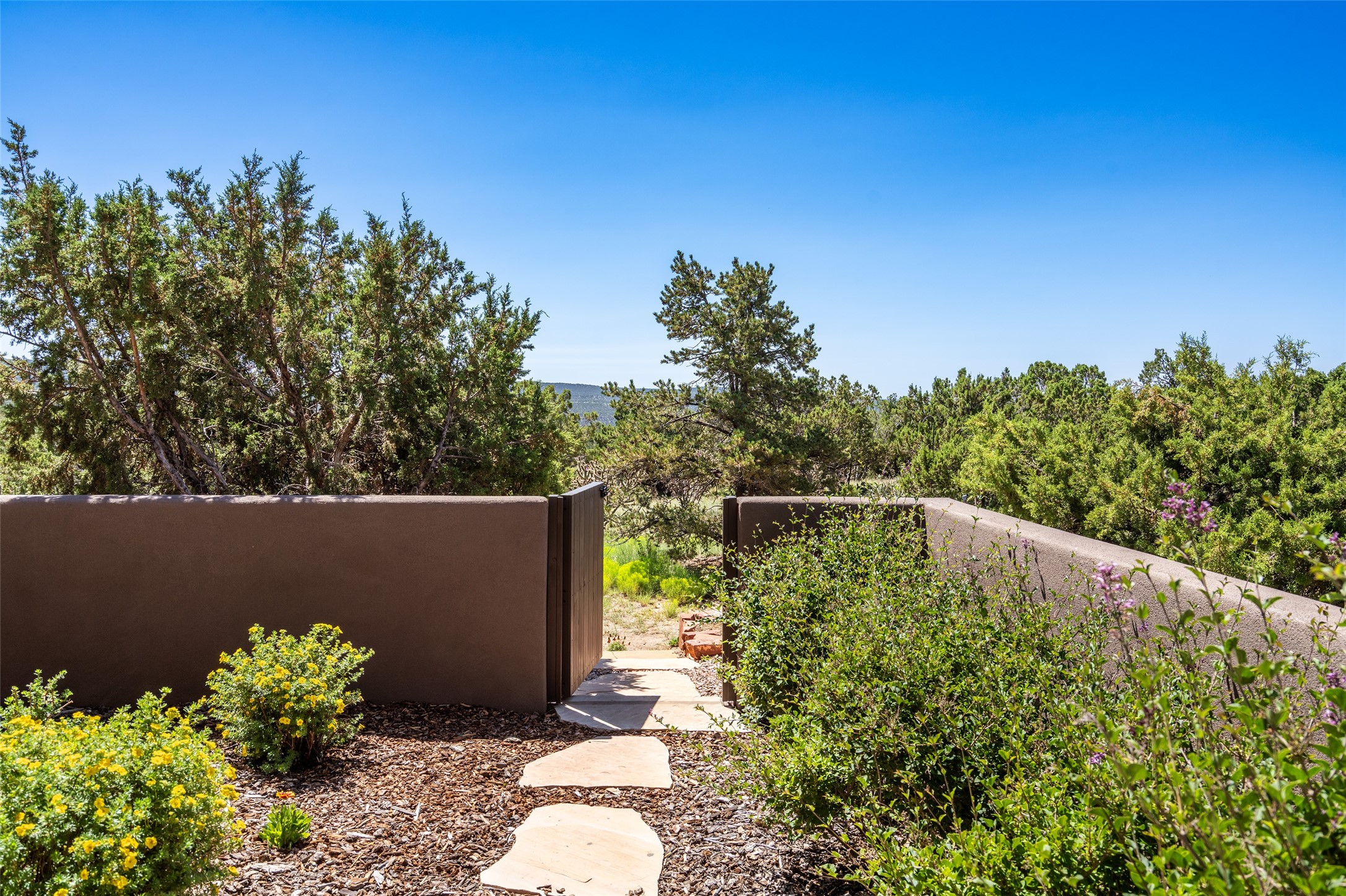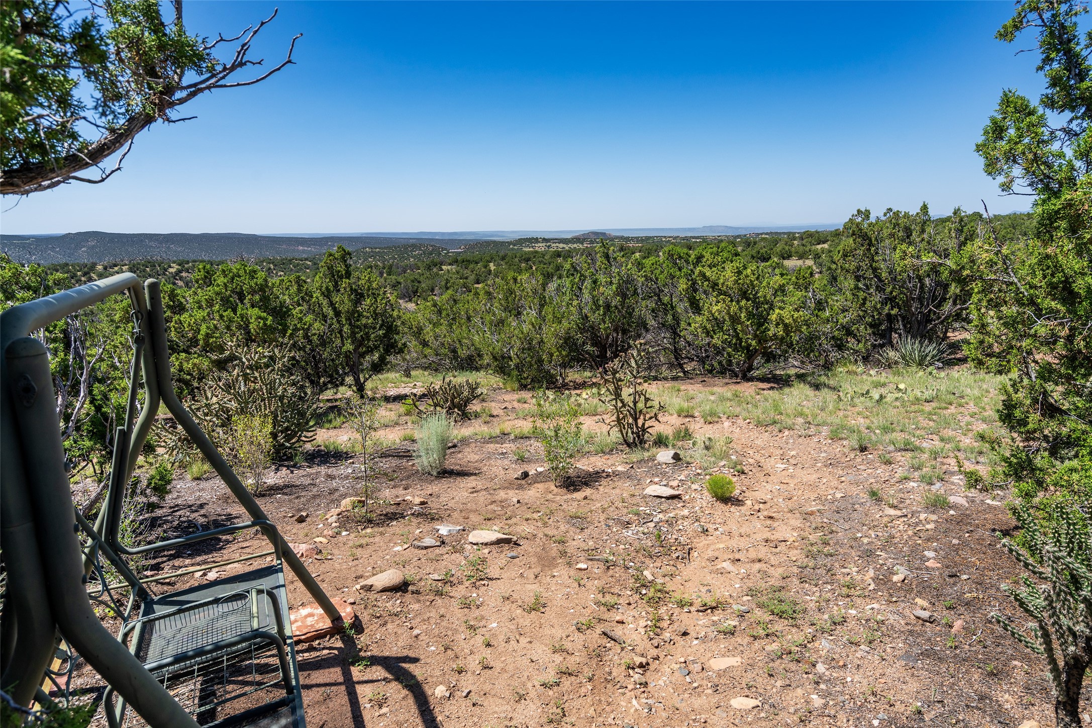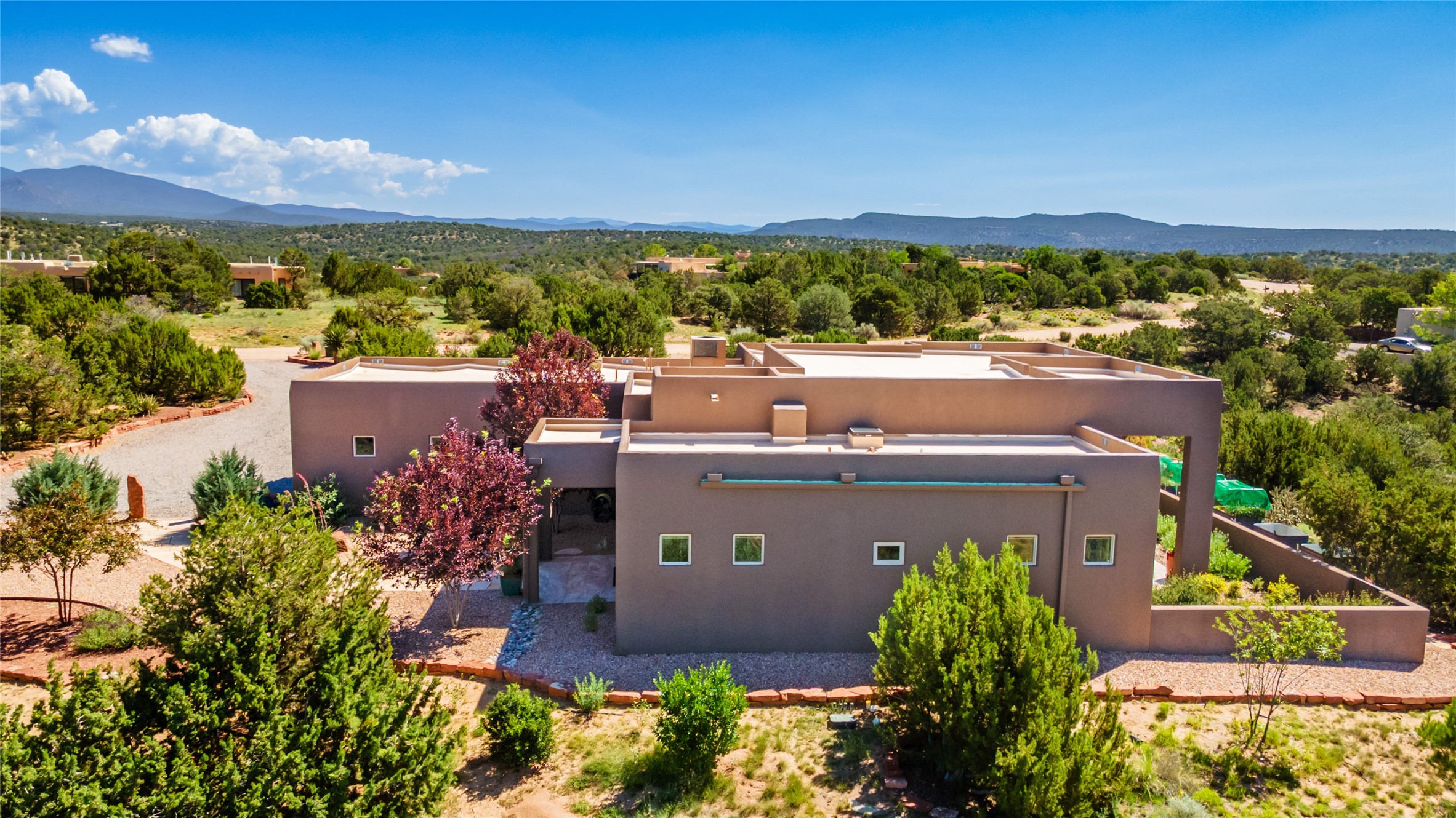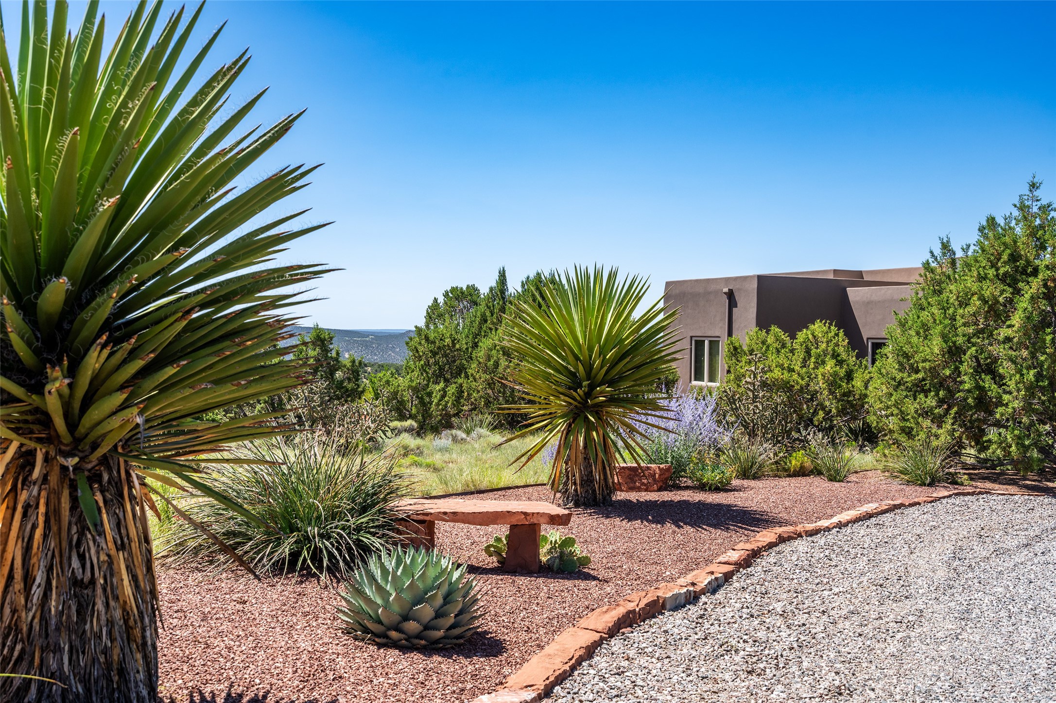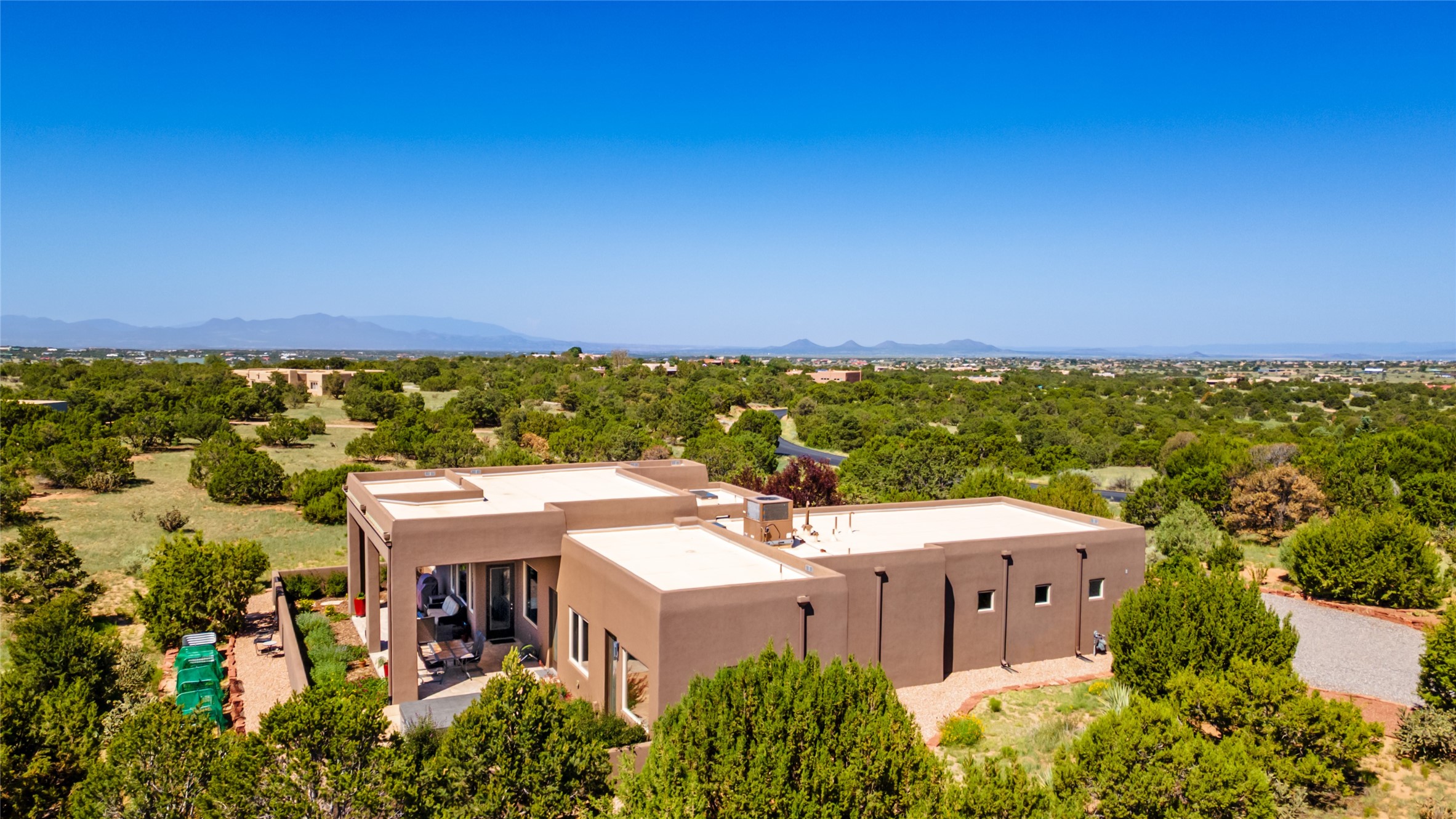 Perched high in The Ridges, a prestigious subdivisionbordering Eldorado greenspace and nearby conveniences,this stunning 3-bedroom, 2-bath home blends modern Southwestern design with serene high-desert living. Thoughtfully situated on 4.08 acres, the home features an open-concept layout that seamlessly connects the kitchen, dining, and living areas, ideal for entertaining or quiet enjoyment. The corner gas fireplace and overhead vigas add coziness andwarmthand expansive picture windows frame breathtaking panoramic views flooding the interior with natural light. Step outside to a spacious covered portal surrounded by an enclosed courtyard, perfect for morning coffee or evening gatherings under the stars. Themature, xeriscape landscaping is enhanced by a drip irrigation system, and a meandering pathwayleads to peaceful secluded areasto take in the fiery sunsetsof the Galisteo Basin and the morning sun rising over theSangre de Cristo Mountains.A dedicated artist's studio, complete with water and storage space, offers a private haven for creativity or a flexible bonus space.The oversized owner'ssuite features a separate tub and shower with walk-in closet, and you will love the finished over size garage with workshop! This is more than a home; it'sa private retreat that captures the essence of Santa Fe living!