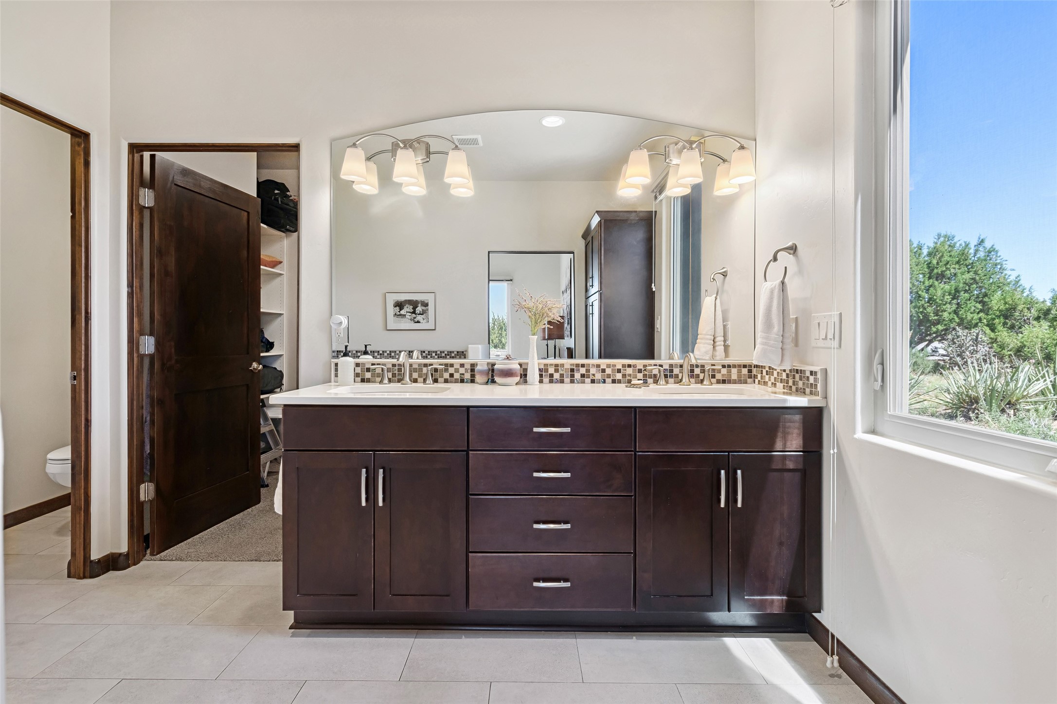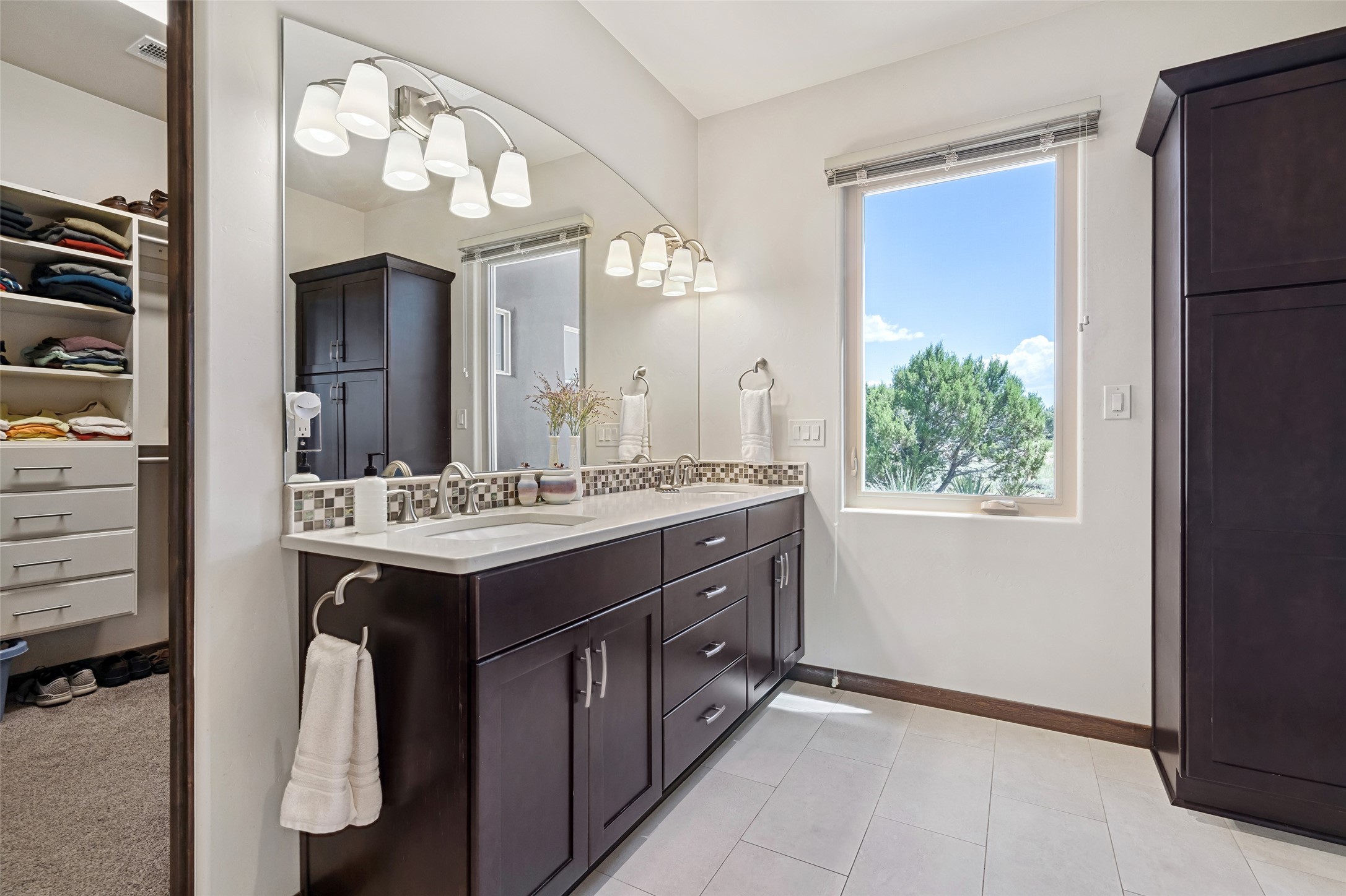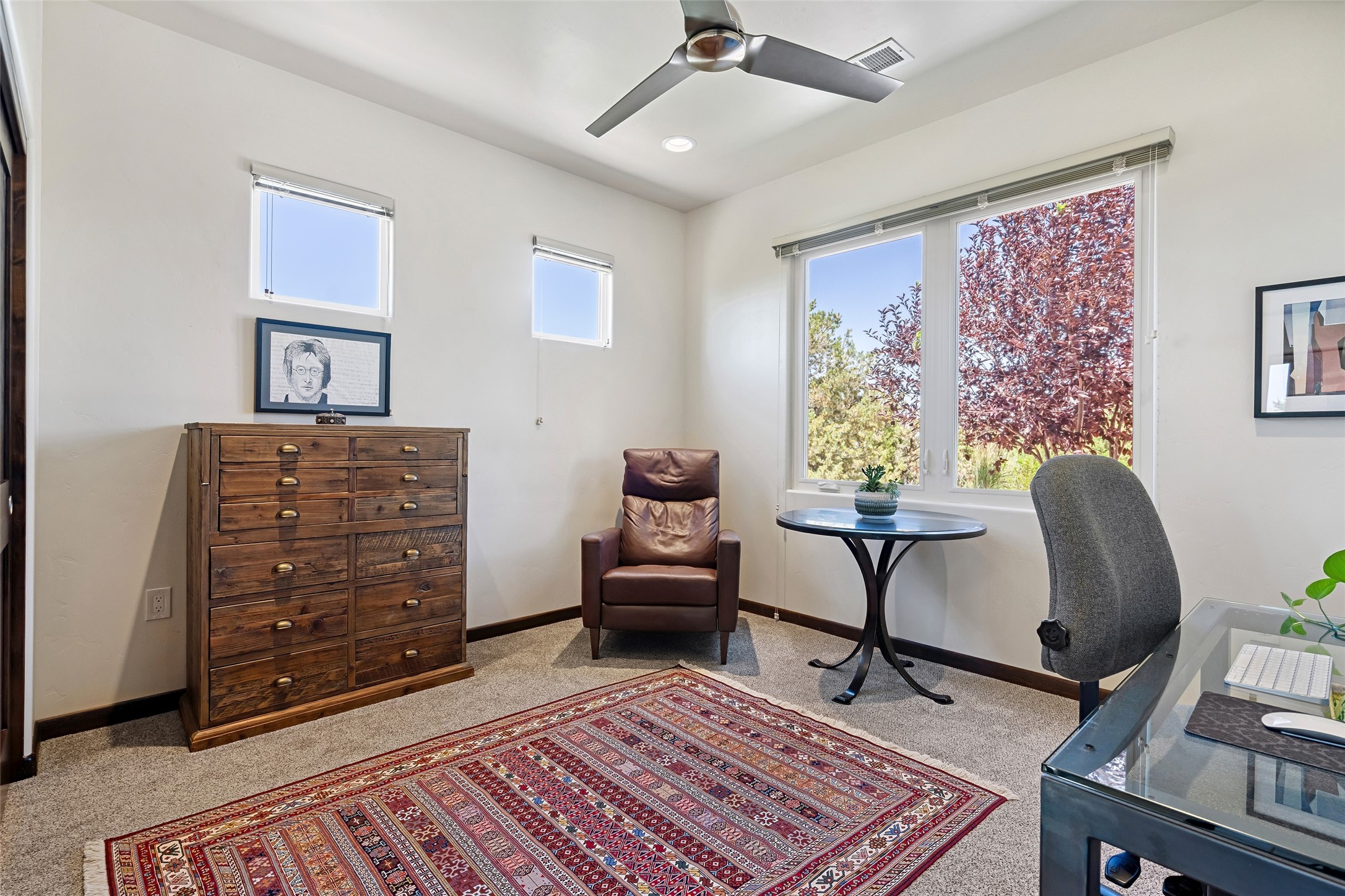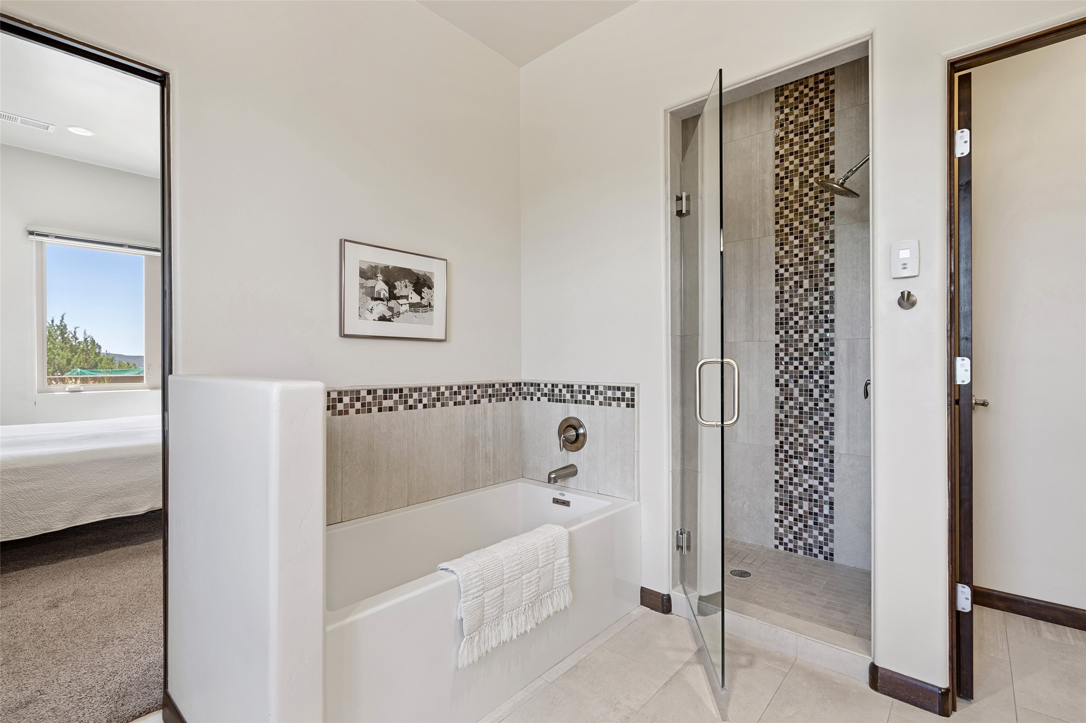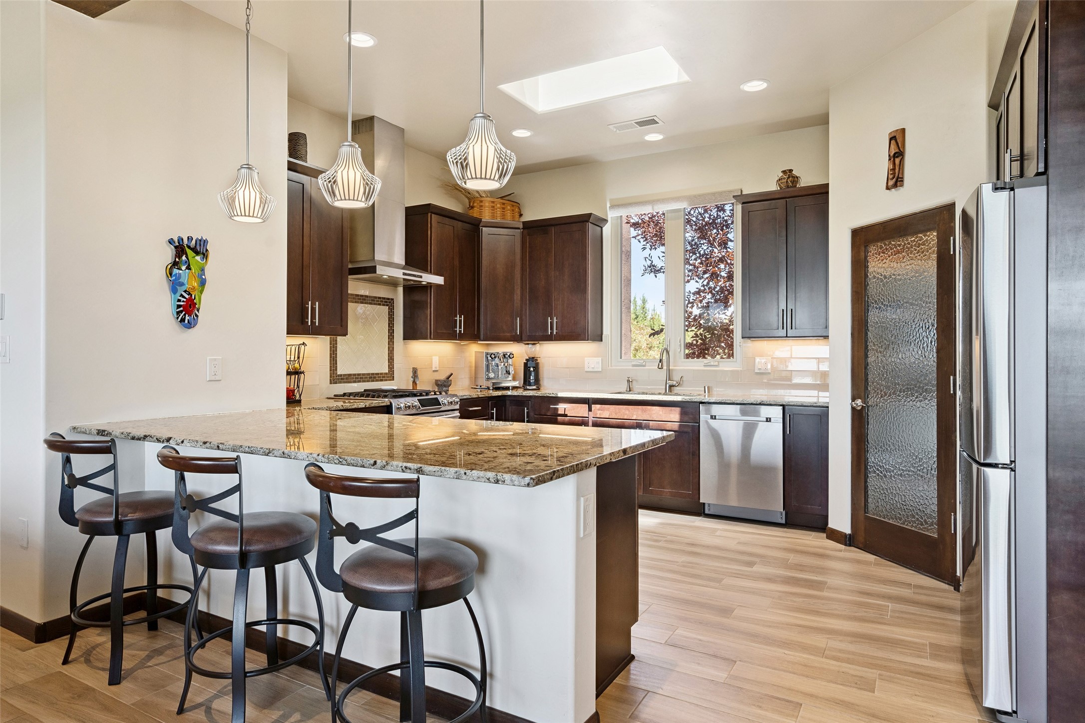 Perched high in The Ridges, a prestigious subdivisionbordering Eldorado greenspace and nearby conveniences,this stunning 3-bedroom, 2-bath home blends modern Southwestern design with serene high-desert living. Thoughtfully situated on 4.08 acres, the home features an open-concept layout that seamlessly connects the kitchen, dining, and living areas, ideal for entertaining or quiet enjoyment. The corner gas fireplace and overhead vigas add coziness andwarmthand expansive picture windows frame breathtaking panoramic views flooding the interior with natural light. Step outside to a spacious covered portal surrounded by an enclosed courtyard, perfect for morning coffee or evening gatherings under the stars. Themature, xeriscape landscaping is enhanced by a drip irrigation system, and a meandering pathwayleads to peaceful secluded areasto take in the fiery sunsetsof the Galisteo Basin and the morning sun rising over theSangre de Cristo Mountains.A dedicated artist's studio, complete with water and storage space, offers a private haven for creativity or a flexible bonus space.The oversized owner'ssuite features a separate tub and shower with walk-in closet, and you will love the finished over size garage with workshop! This is more than a home; it'sa private retreat that captures the essence of Santa Fe living!