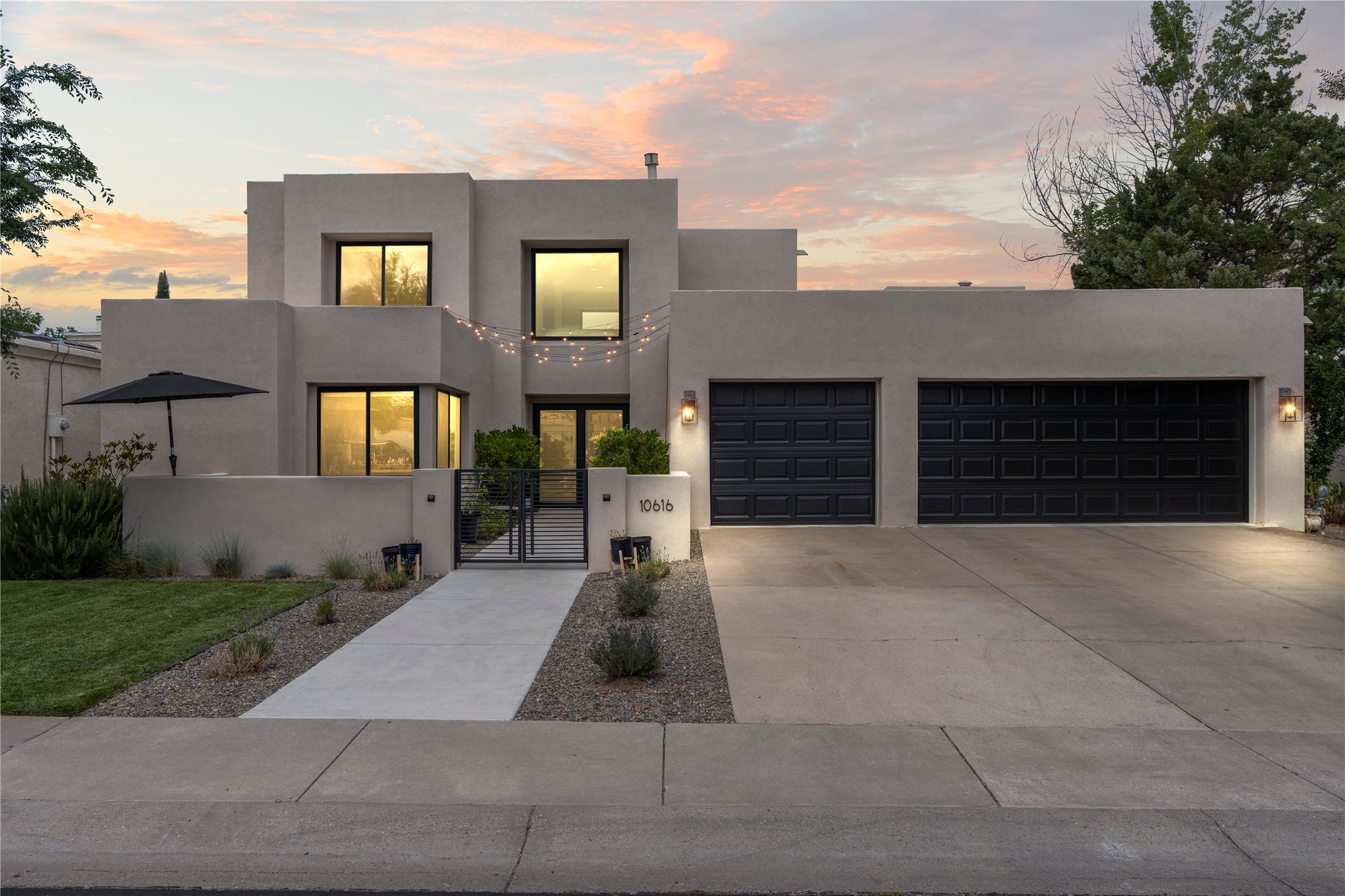 Welcome to this exquisite, fully updated contemporary residence nestled within the prestigious 24-hour guard-gated Tanoan community, just a short 3-minute stroll to the club and amenities. This impeccable home effortlessly blends refined elegance with modern comfort, offering 4 spacious bedrooms, including 2 on the main level--one of which is the luxurious owner's suite with spa-inspired finishes. Upstairs, you'll find two additional bedrooms connected by a beautiful Jack and Jill bath, perfect for guests or family. Every inch of this turnkey home has been thoughtfully upgraded to meet the highest standards.The heart of the home is a designer kitchen that will impress even the most discerning chef, featuring:* A massive island ideal for gathering and entertaining* Double oven and 5-burner cooktop* Lighted cabinetry with glass fronts for a touch of elegance* High-end finishes and premium appliances throughoutAll three bathrooms have been tastefully remodeled with modern luxury in mind.Step outside to a lushly landscaped backyard oasis complete with:* A gas fireplace and gas fire pit for year-round outdoor ambiance* A grape arbor, fruit trees, and vibrant vegetable gardens* Peaceful spaces for entertaining, dining, or simply relaxing in privacySignificant recent upgrades (within the last 3 years) include:* New roof and stucco* Premium Andersen windows and doors* Smart irrigation system* Upgraded electrical outlets* Water heater* $46,000 solar system for energy efficiency and sustainability* 220V garage outlet for EV charging* Insulated garage doors for added comfort and utilityThis is a rare opportunity to own a truly move-in ready, energy-efficient home in one of Albuquerque's most desirable communities where luxury meets lifestyle just steps from golf, dining, and recreation.Welcome home to the best of Tanoan.