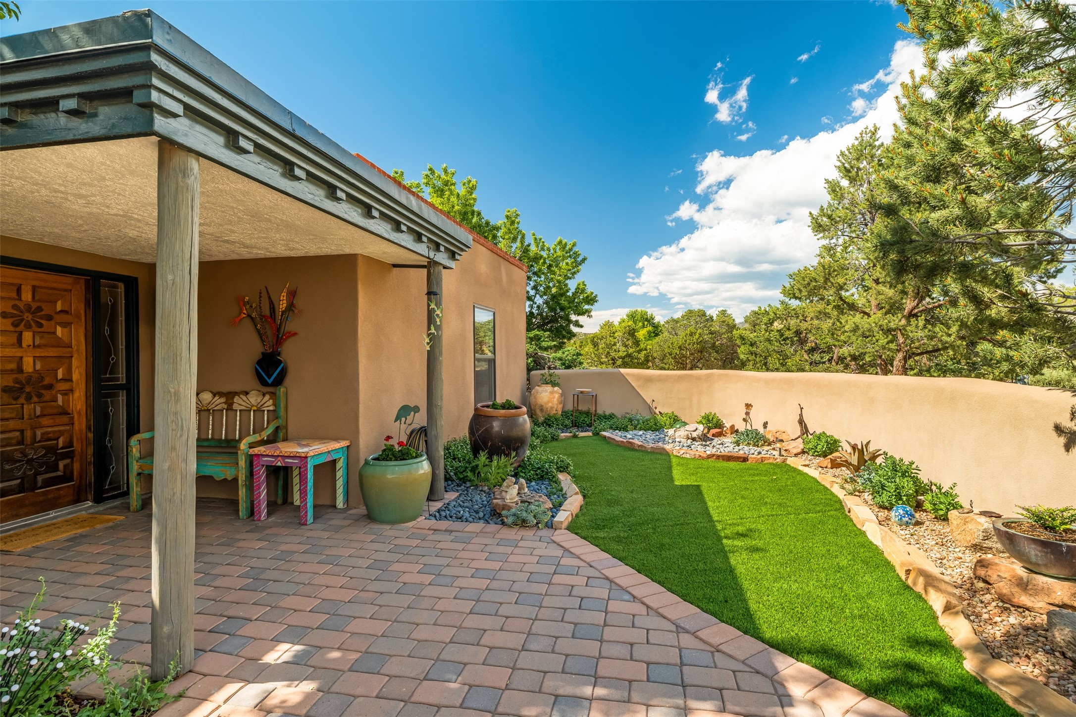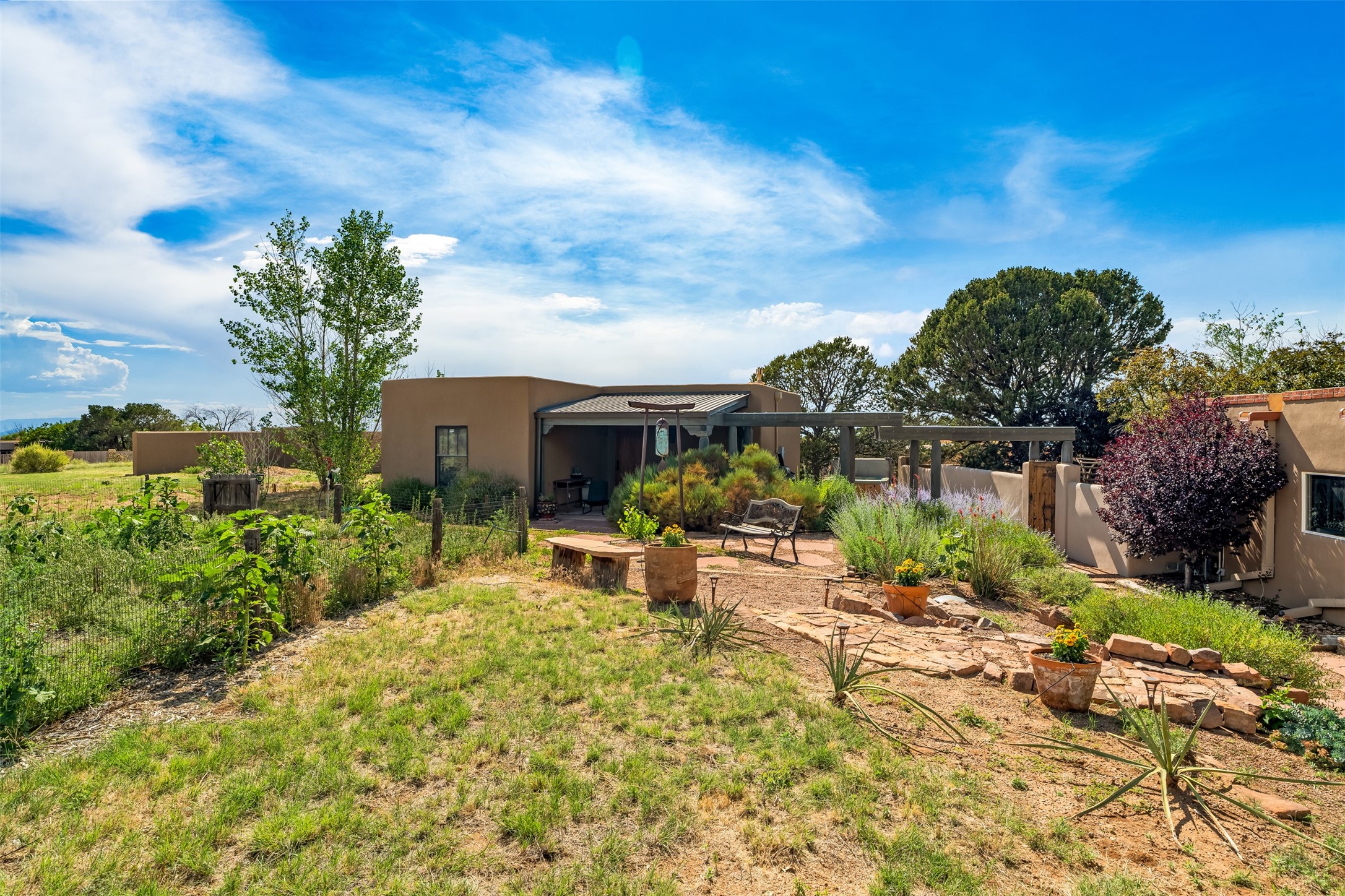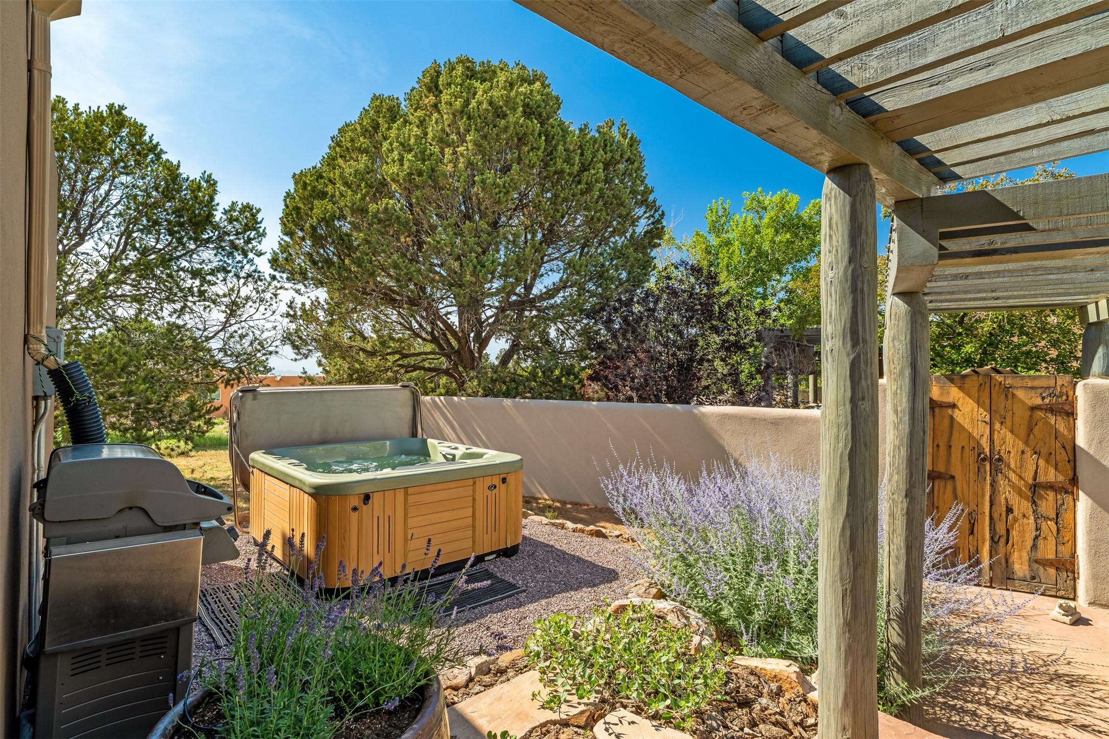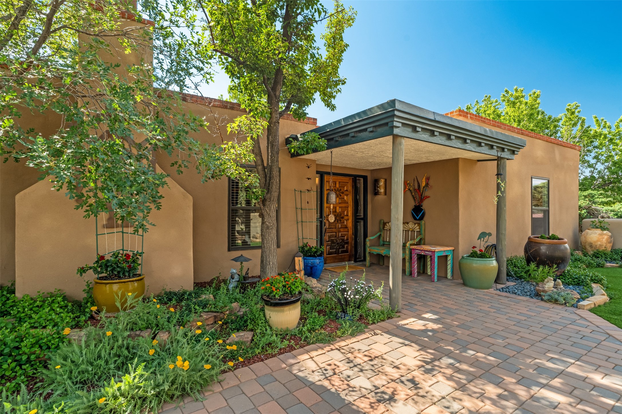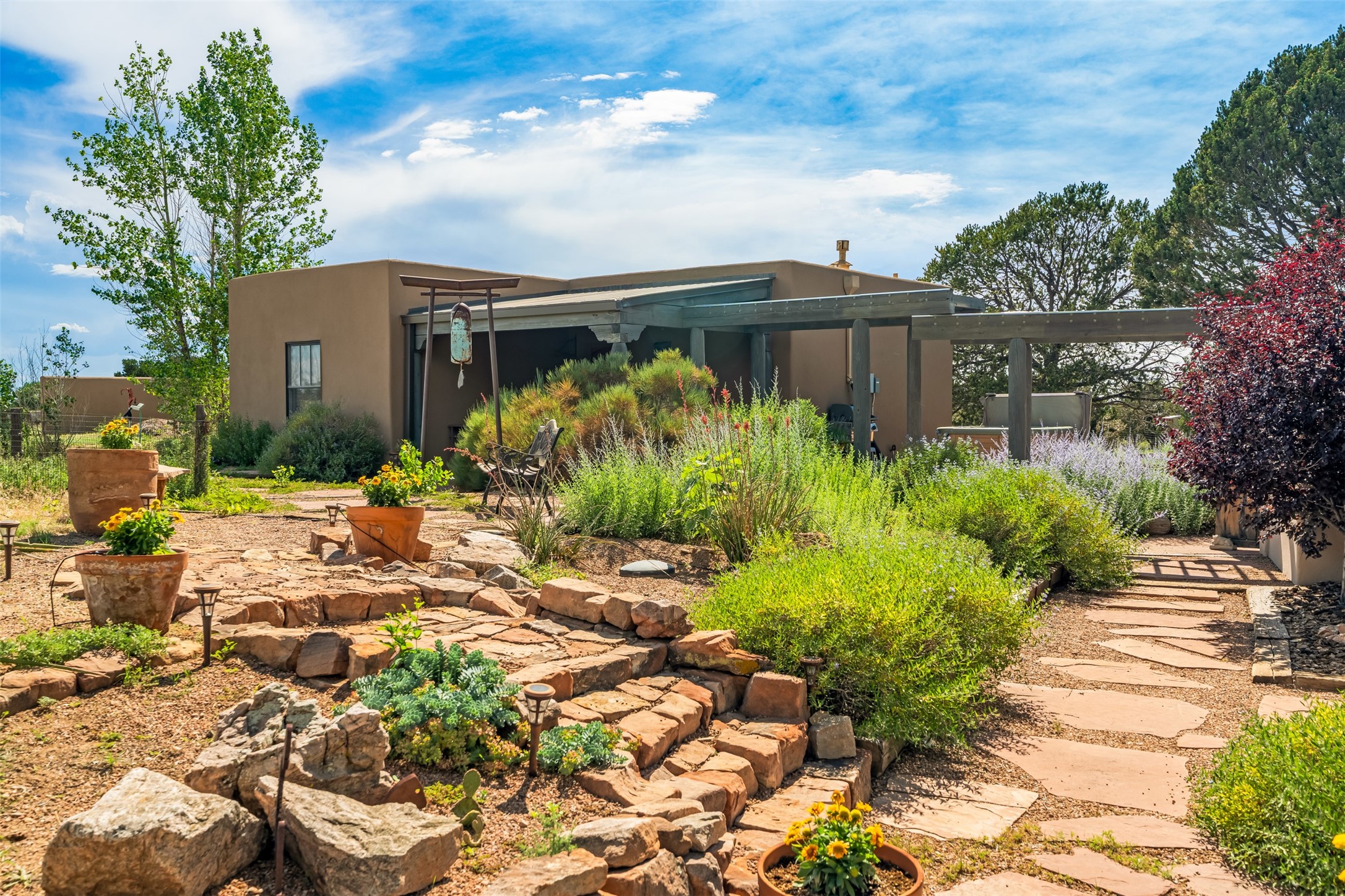 Welcome to this beautifully remodeled & meticulously maintained property featuring a 1,568-square-foot main home & a spacious 780-square-foot studio/casita. Recently re-stuccoed & there is a silicone roof upgrade with a warranty until 2027. This property offers style & peace of mind.The 3-bedroom, 2-bath main home is a delight. The kitchen is efficient--complete with stainless steel appliances, a gas stove, electric oven, pantry, and well designed pull-out drawers. Two completely updated bathrooms include luxe finishes such as Brazilian granite, a deep soaking tub with sliding glass doors, & a primary suite bath with granite counters, a generous glass-enclosed shower, & ample cabinet and closet space.Enjoy the Saltillo tile floors and the hand-troweled plaster ceilings. The living room features a cozy fireplace with an electric insert and flows into a lovely dining room with inset lighting and abundant natural light. The guest bedroom is inviting & well-appointed, while the third bedroom/office features built-in shelving for function & flexibility.Step outside to find front & back portals with handcrafted gates & light fixtures designed by artist Frank Seckler with lush landscaping--ideal for relaxing or entertaining. Don't miss the private hot tub between the main house & casita.The studio is a gem of its own--built with rastra construction, featuring radiant in-floor heat, stained concrete floors, a coved ceiling with vigas, hand-troweled plaster walls, a bathroom, & great natural light. It's equipped with its own septic, boiler, water heater, and a window A/C unit. With forced air heat & refrigerated A/C in the main house, as well as a generator which activates, should the power go out. Every detail is cared for in this truly exceptional property--beautiful, functional, & ready to enjoy. Eldorado has a Community Center, pool, tennis, pickle ball, playgrounds, miles of trails & a large nature preserveThis is an opportunity you don't want to miss!