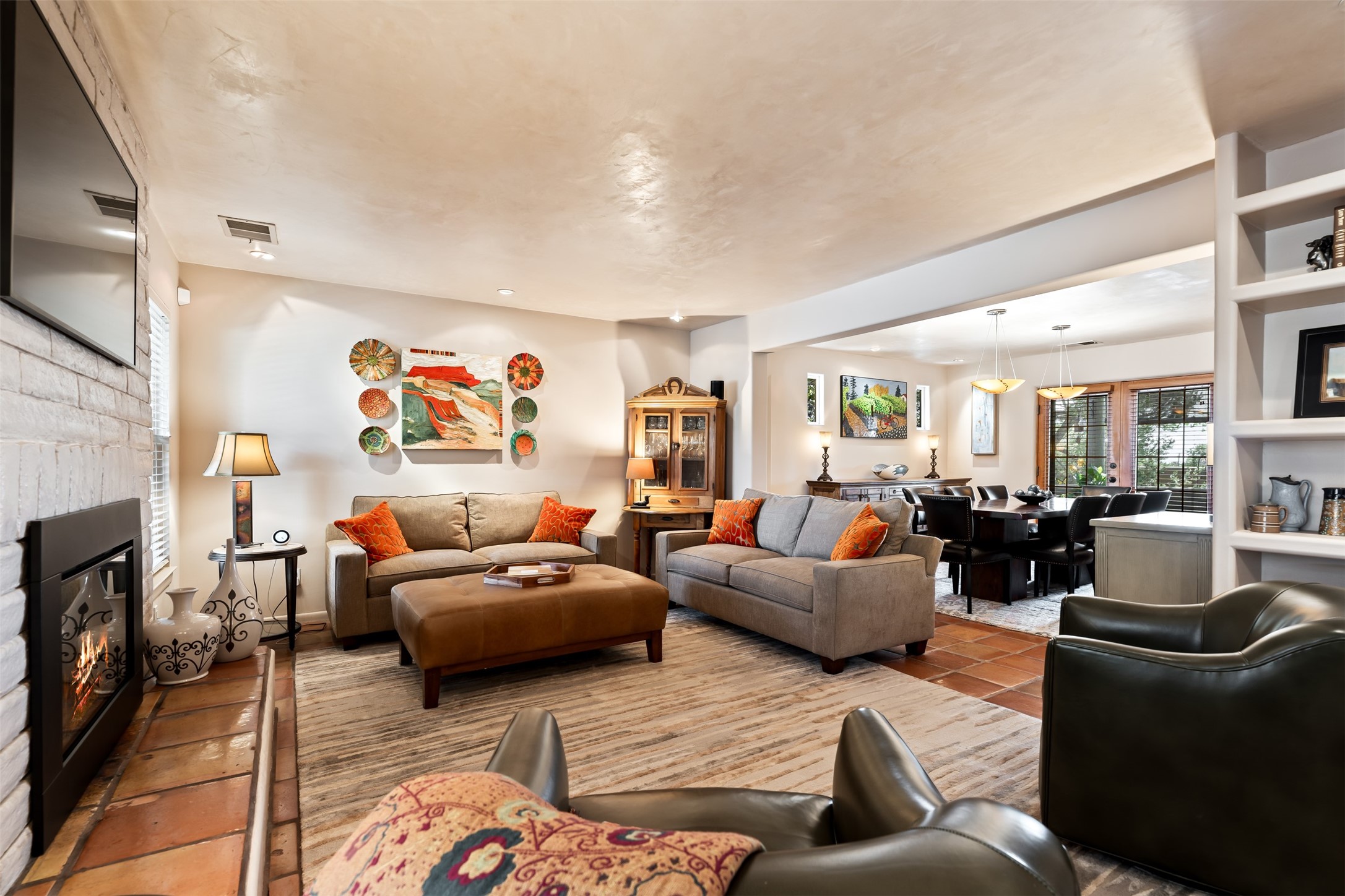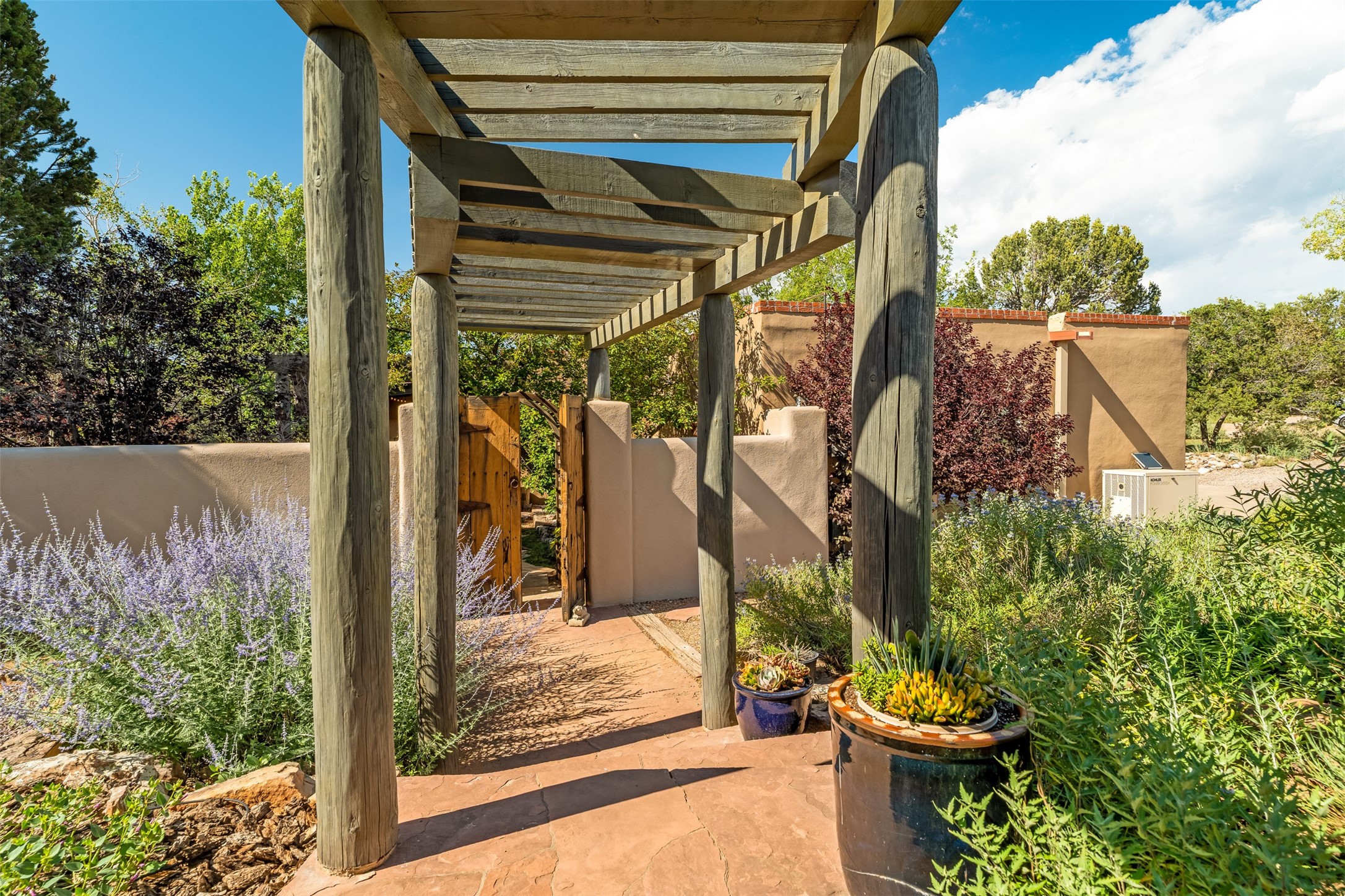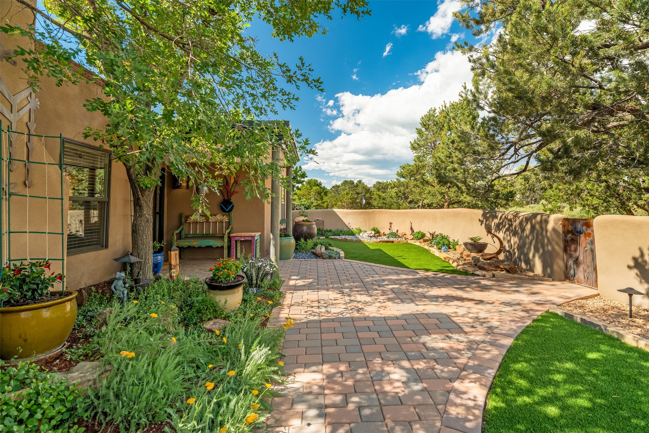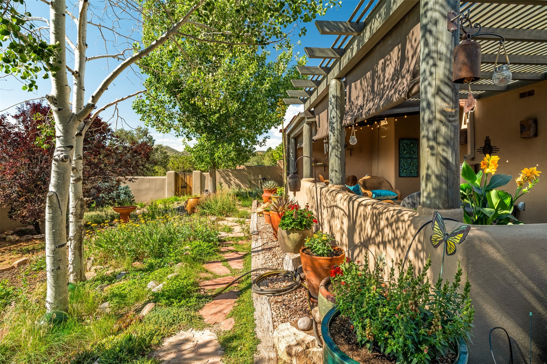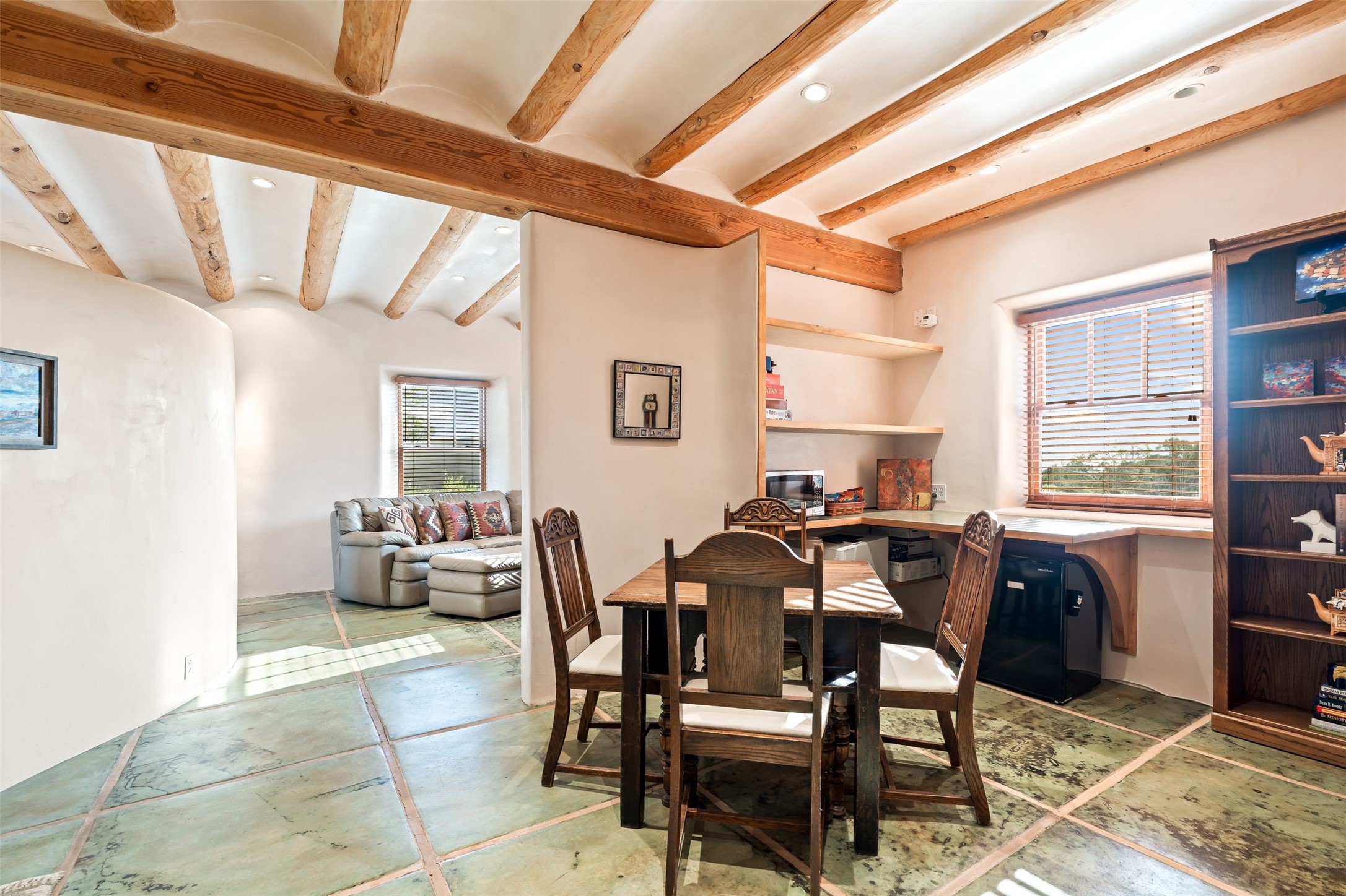 Welcome to this beautifully remodeled & meticulously maintained property featuring a 1,568-square-foot main home & a spacious 780-square-foot studio/casita. Recently re-stuccoed & there is a silicone roof upgrade with a warranty until 2027. This property offers style & peace of mind.The 3-bedroom, 2-bath main home is a delight. The kitchen is efficient--complete with stainless steel appliances, a gas stove, electric oven, pantry, and well designed pull-out drawers. Two completely updated bathrooms include luxe finishes such as Brazilian granite, a deep soaking tub with sliding glass doors, & a primary suite bath with granite counters, a generous glass-enclosed shower, & ample cabinet and closet space.Enjoy the Saltillo tile floors and the hand-troweled plaster ceilings. The living room features a cozy fireplace with an electric insert and flows into a lovely dining room with inset lighting and abundant natural light. The guest bedroom is inviting & well-appointed, while the third bedroom/office features built-in shelving for function & flexibility.Step outside to find front & back portals with handcrafted gates & light fixtures designed by artist Frank Seckler with lush landscaping--ideal for relaxing or entertaining. Don't miss the private hot tub between the main house & casita.The studio is a gem of its own--built with rastra construction, featuring radiant in-floor heat, stained concrete floors, a coved ceiling with vigas, hand-troweled plaster walls, a bathroom, & great natural light. It's equipped with its own septic, boiler, water heater, and a window A/C unit. With forced air heat & refrigerated A/C in the main house, as well as a generator which activates, should the power go out. Every detail is cared for in this truly exceptional property--beautiful, functional, & ready to enjoy. Eldorado has a Community Center, pool, tennis, pickle ball, playgrounds, miles of trails & a large nature preserveThis is an opportunity you don't want to miss!