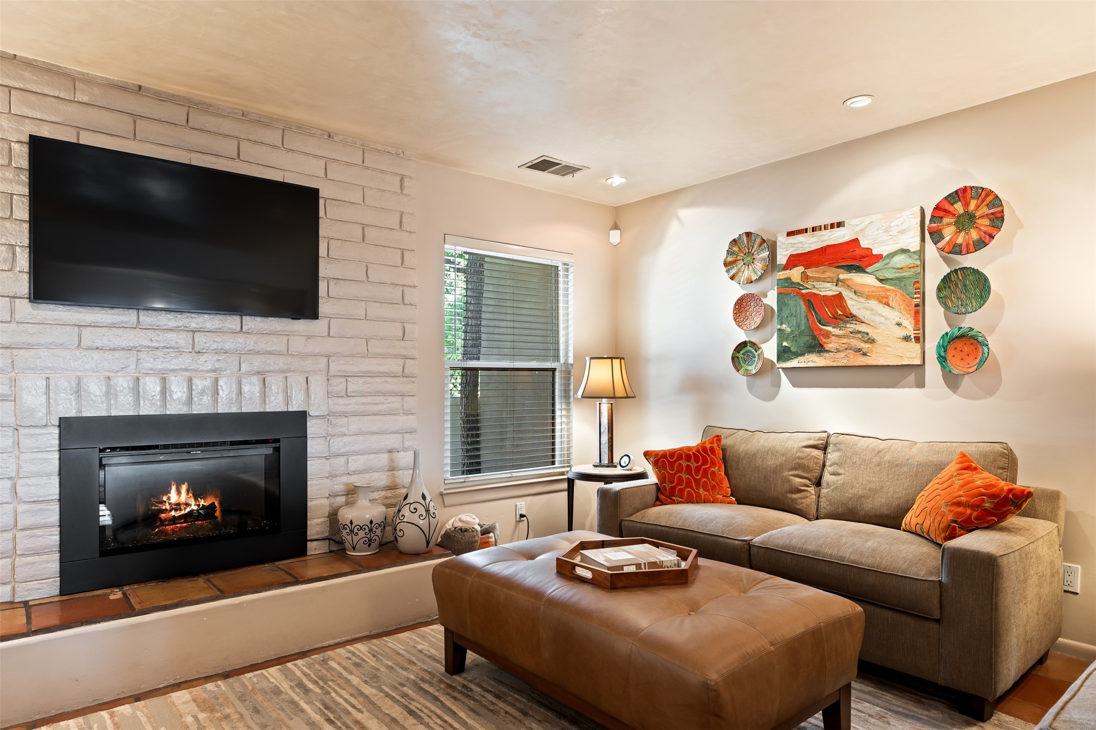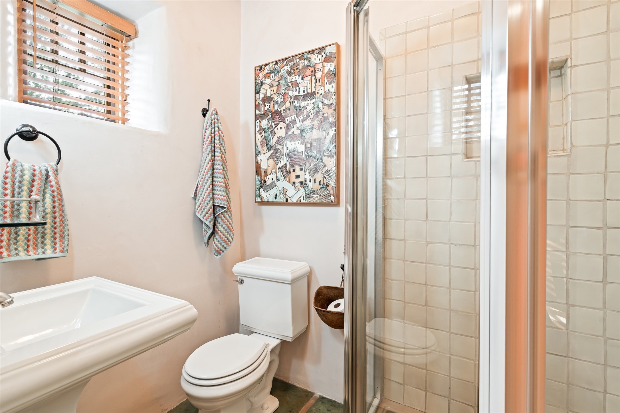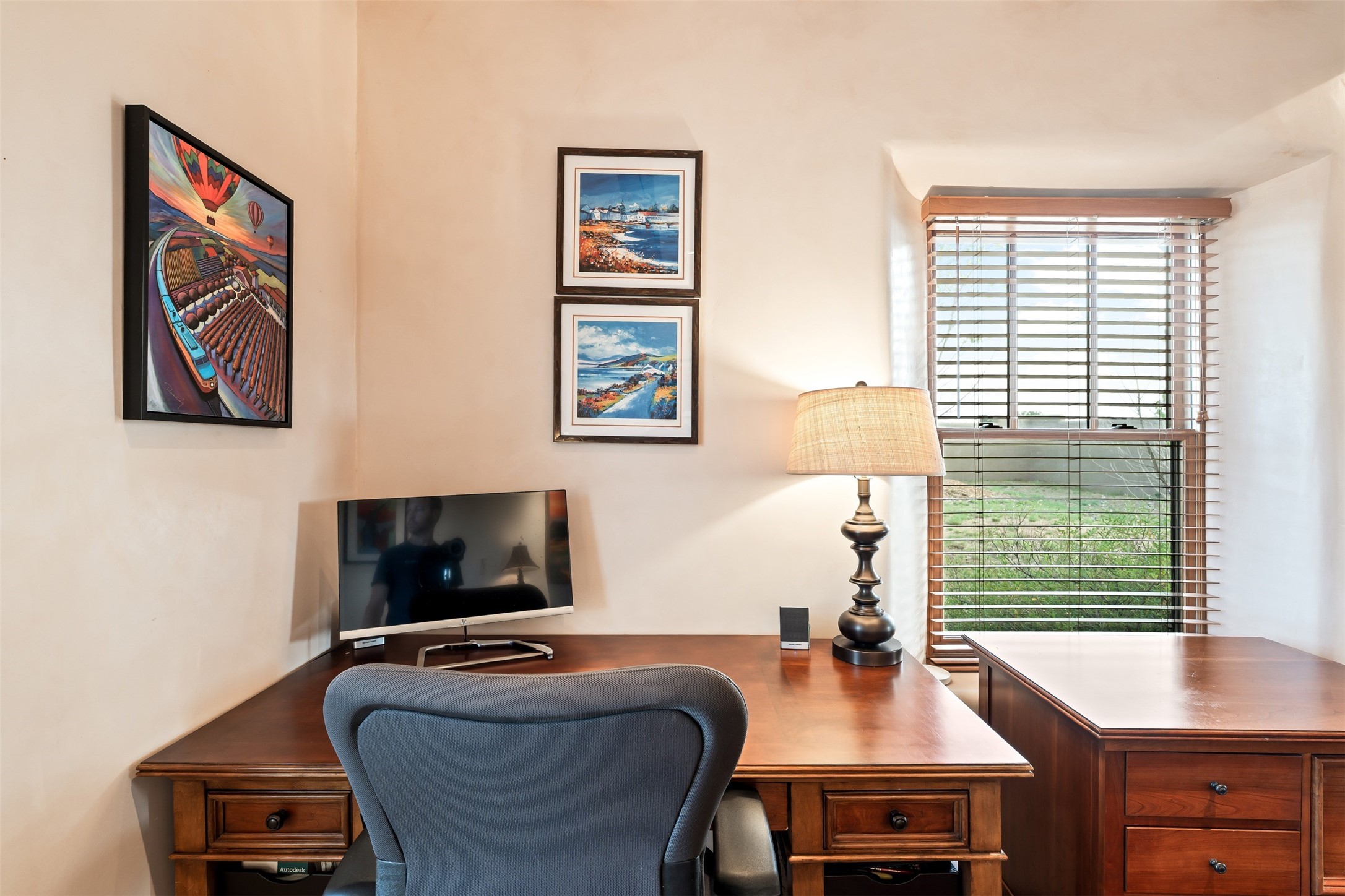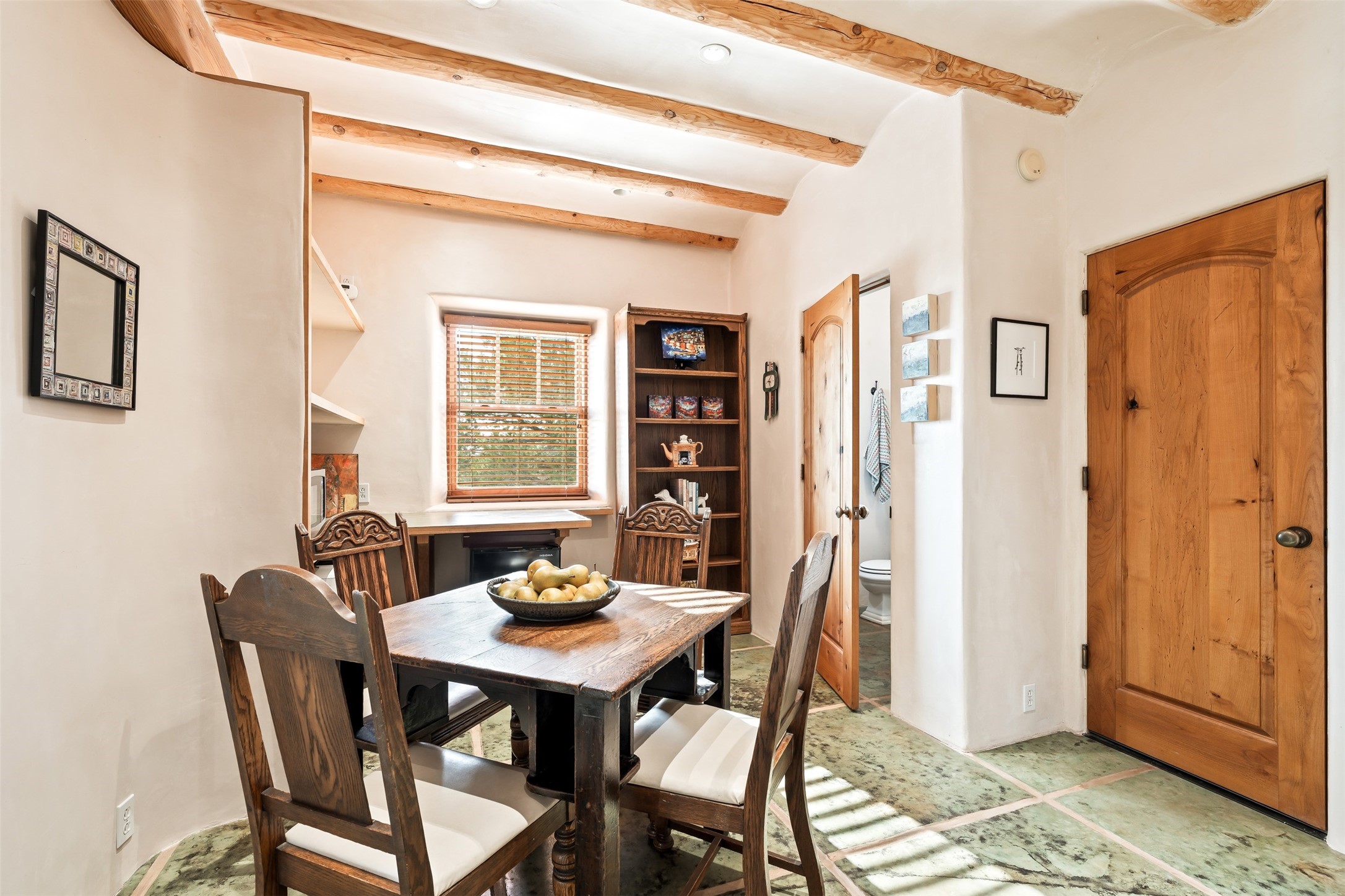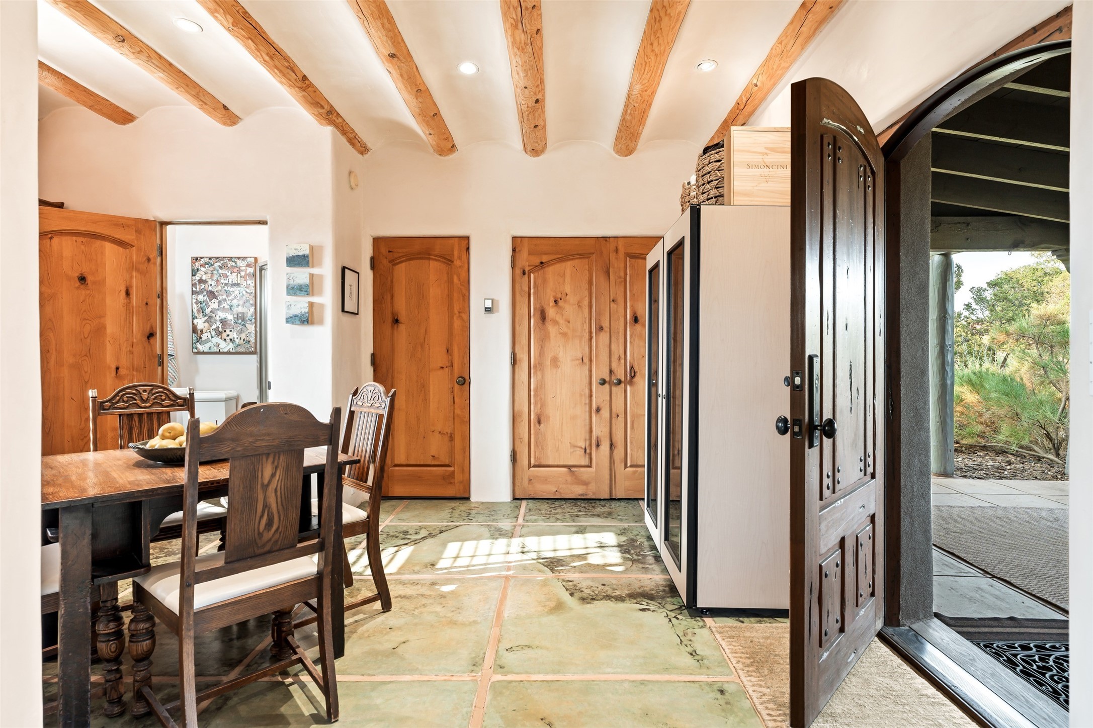 Welcome to this beautifully remodeled & meticulously maintained property featuring a 1,568-square-foot main home & a spacious 780-square-foot studio/casita. Recently re-stuccoed & there is a silicone roof upgrade with a warranty until 2027. This property offers style & peace of mind.The 3-bedroom, 2-bath main home is a delight. The kitchen is efficient--complete with stainless steel appliances, a gas stove, electric oven, pantry, and well designed pull-out drawers. Two completely updated bathrooms include luxe finishes such as Brazilian granite, a deep soaking tub with sliding glass doors, & a primary suite bath with granite counters, a generous glass-enclosed shower, & ample cabinet and closet space.Enjoy the Saltillo tile floors and the hand-troweled plaster ceilings. The living room features a cozy fireplace with an electric insert and flows into a lovely dining room with inset lighting and abundant natural light. The guest bedroom is inviting & well-appointed, while the third bedroom/office features built-in shelving for function & flexibility.Step outside to find front & back portals with handcrafted gates & light fixtures designed by artist Frank Seckler with lush landscaping--ideal for relaxing or entertaining. Don't miss the private hot tub between the main house & casita.The studio is a gem of its own--built with rastra construction, featuring radiant in-floor heat, stained concrete floors, a coved ceiling with vigas, hand-troweled plaster walls, a bathroom, & great natural light. It's equipped with its own septic, boiler, water heater, and a window A/C unit. With forced air heat & refrigerated A/C in the main house, as well as a generator which activates, should the power go out. Every detail is cared for in this truly exceptional property--beautiful, functional, & ready to enjoy. Eldorado has a Community Center, pool, tennis, pickle ball, playgrounds, miles of trails & a large nature preserveThis is an opportunity you don't want to miss!