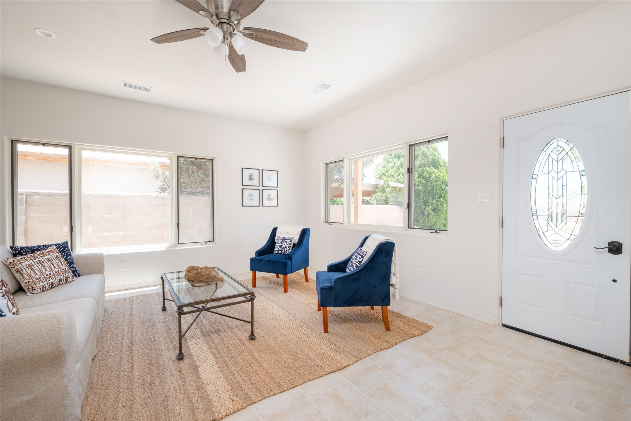 Welcome Home for the Holidays! This recently renovated home shines with abundant natural light, an open layout, and modern amenities. The kitchen features brand-new appliances, pantry, and stylish pot rack, while double doors from the dining room and primary suite open to private patios for effortless indoor-outdoor living. The primary retreat offers a walk-in closet, ensuite bath, and O'Keeffe-inspired shower surrounds. Two guest bedrooms provide ample space, complemented by quality updates including a new metal roof, double-pane windows, fresh stucco, and updated utilities. Energy-efficient HVAC and on-demand hot water add convenience. Outdoors, the yards await your vision to create a personal oasis. Blending elegance with practicality, this home is ready for a new chapter of stylish, comfortable living. Owner/Broker.