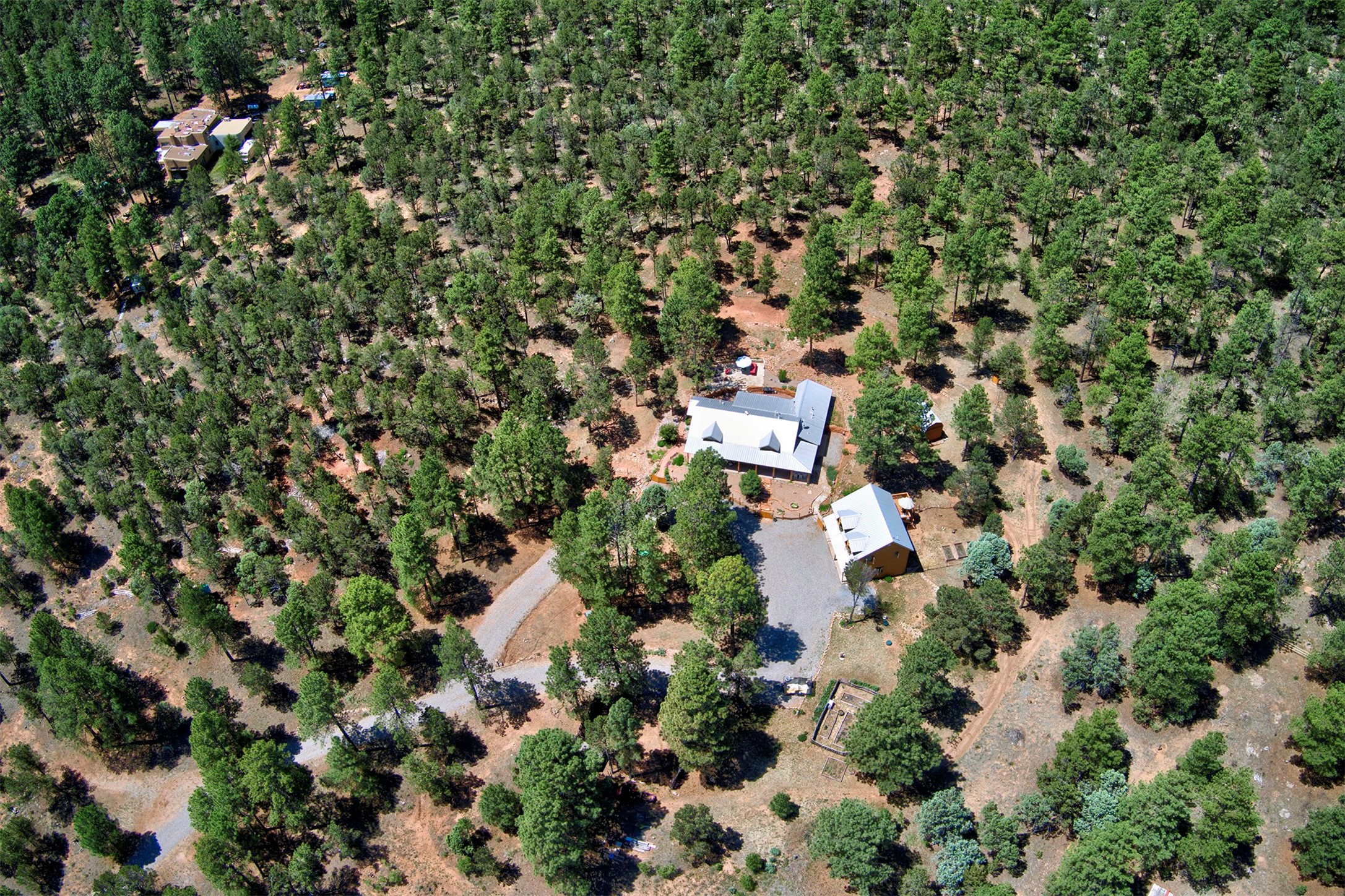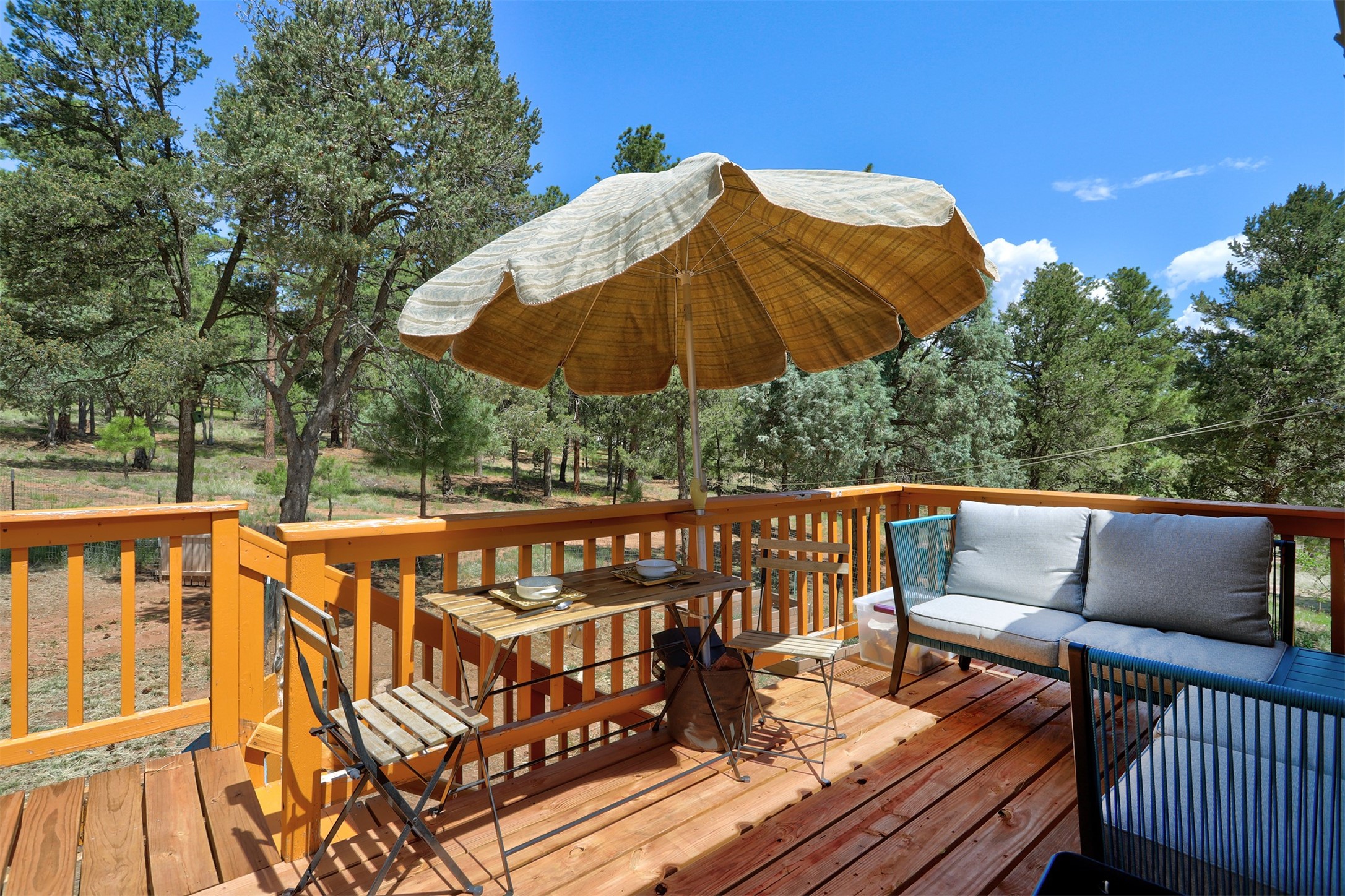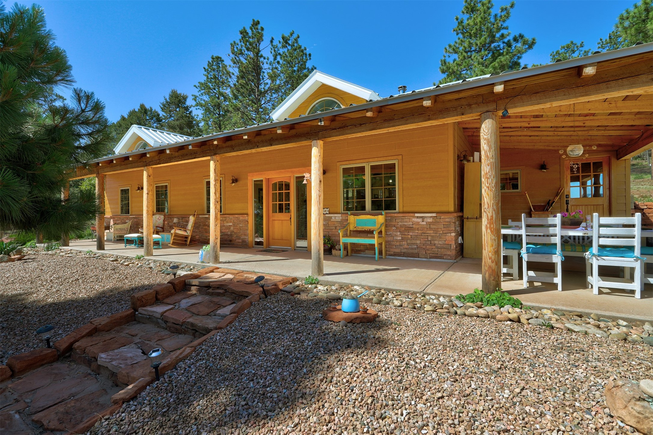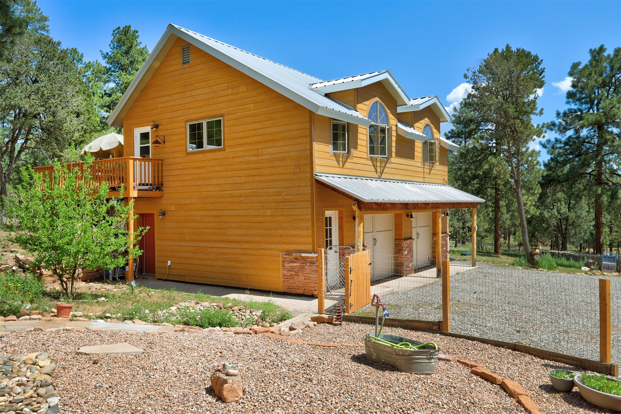 Attention Mountain Bikers and Horse Enthusiasts! Serene 12.5-Acre Retreat with mountain views! Main house and guest casita over garage is just 25 minutes from downtown Santa Fe. Nestled at the base of the stunning Glorieta Mesa this exceptional property with private well offers access to miles of scenic trails perfect for mountain biking and horseback riding. Located across the highway from the famous Glorieta Mountain Biking Trails, this property is ideally located for outdoor lovers. The main home blends rustic charm with modern comfort, featuring a spacious living area, two primary suites, a dedicated office, and a convenient dog bath. The tranquil, private setting makes it ideal for full-time living or a weekend getaway. Step outside to the elevated sandstone terrace--a perfect space for dining, relaxing, or taking in the panoramic mountain views. A standout feature is the 800 sq. ft. casita above the garage, complete with a strong rental history--ideal as an income-producing long-term rental or a welcoming guest suite.Additional highlights include a fully fenced yard, ample RV parking, direct access to the Santa Fe National Forest, and horse-friendly property making it easy to enjoy trail riding and open space right from your property.Whether you're seeking a serene lifestyle, an investment opportunity, or proximity to Santa Fe's rich cultural and outdoor offerings, this unique property delivers on all fronts.