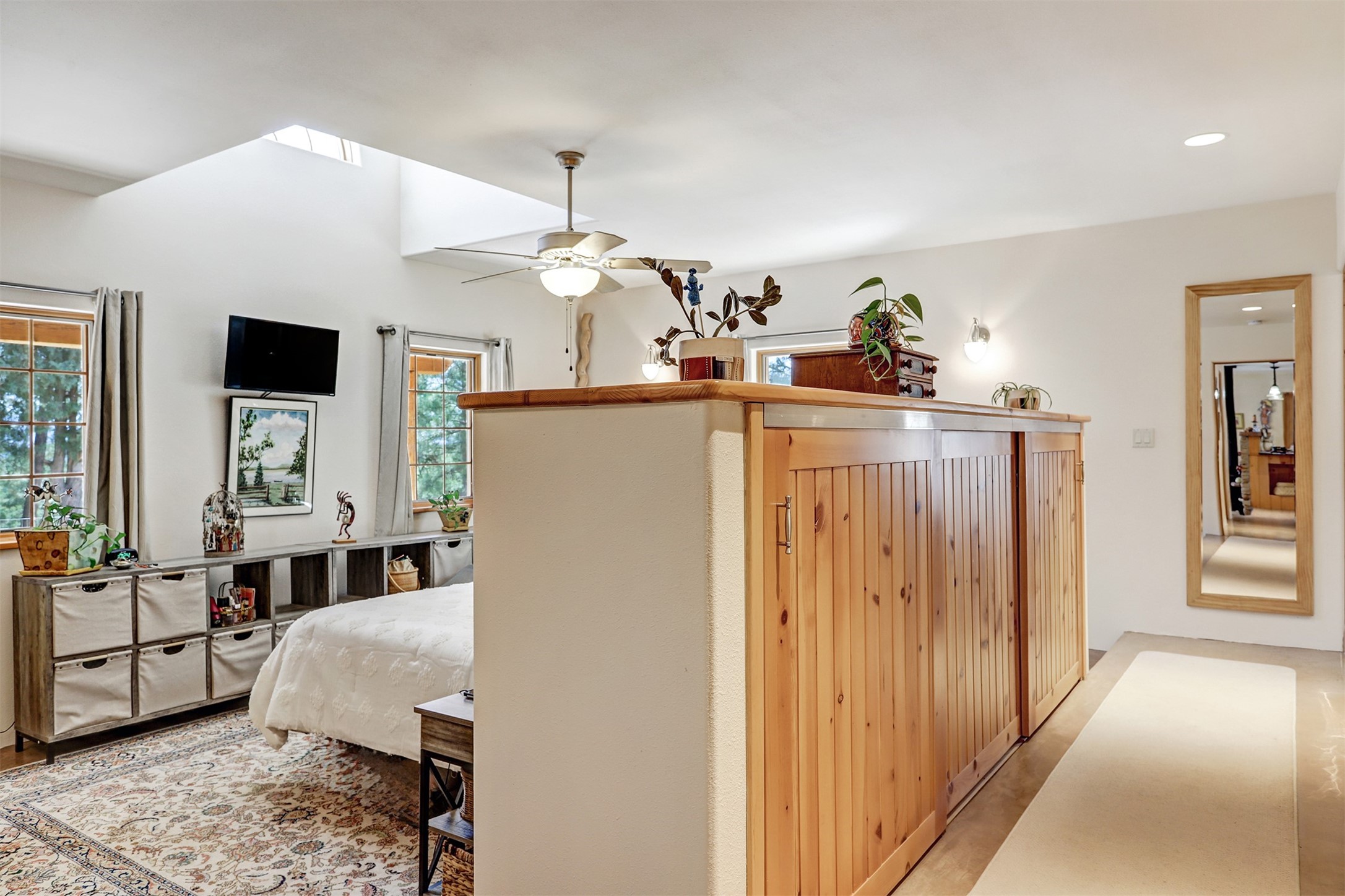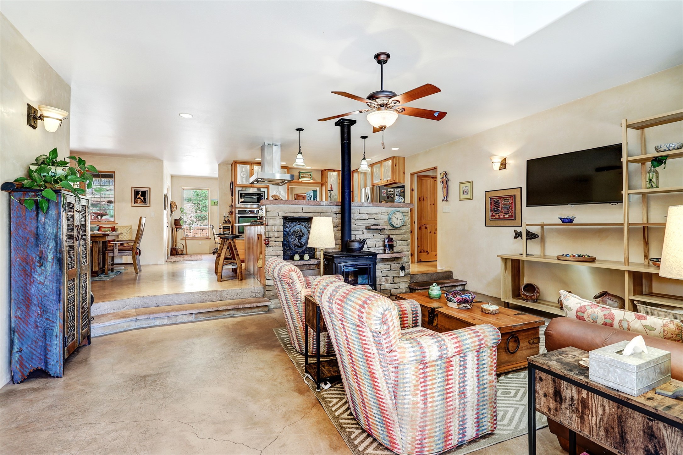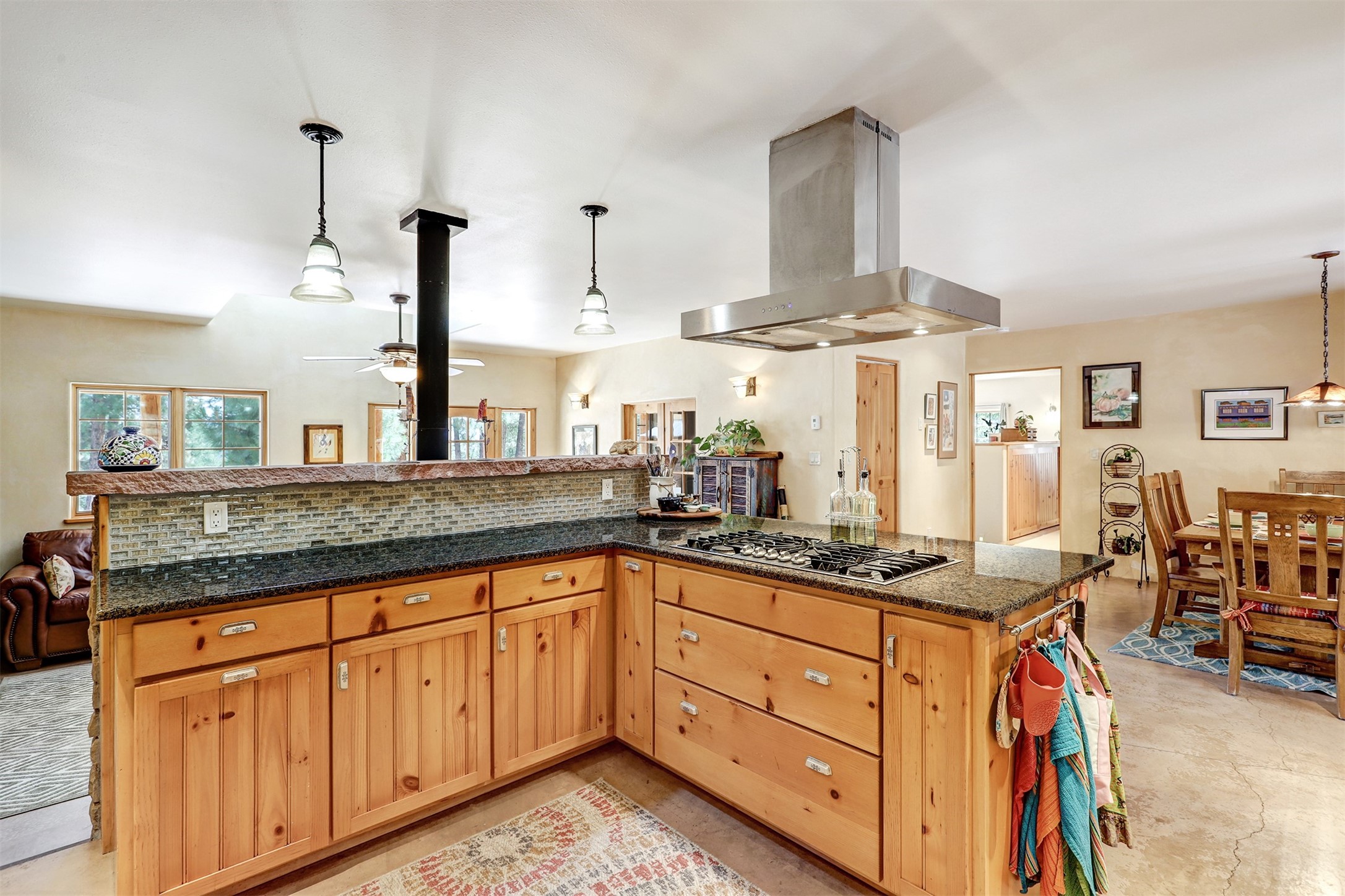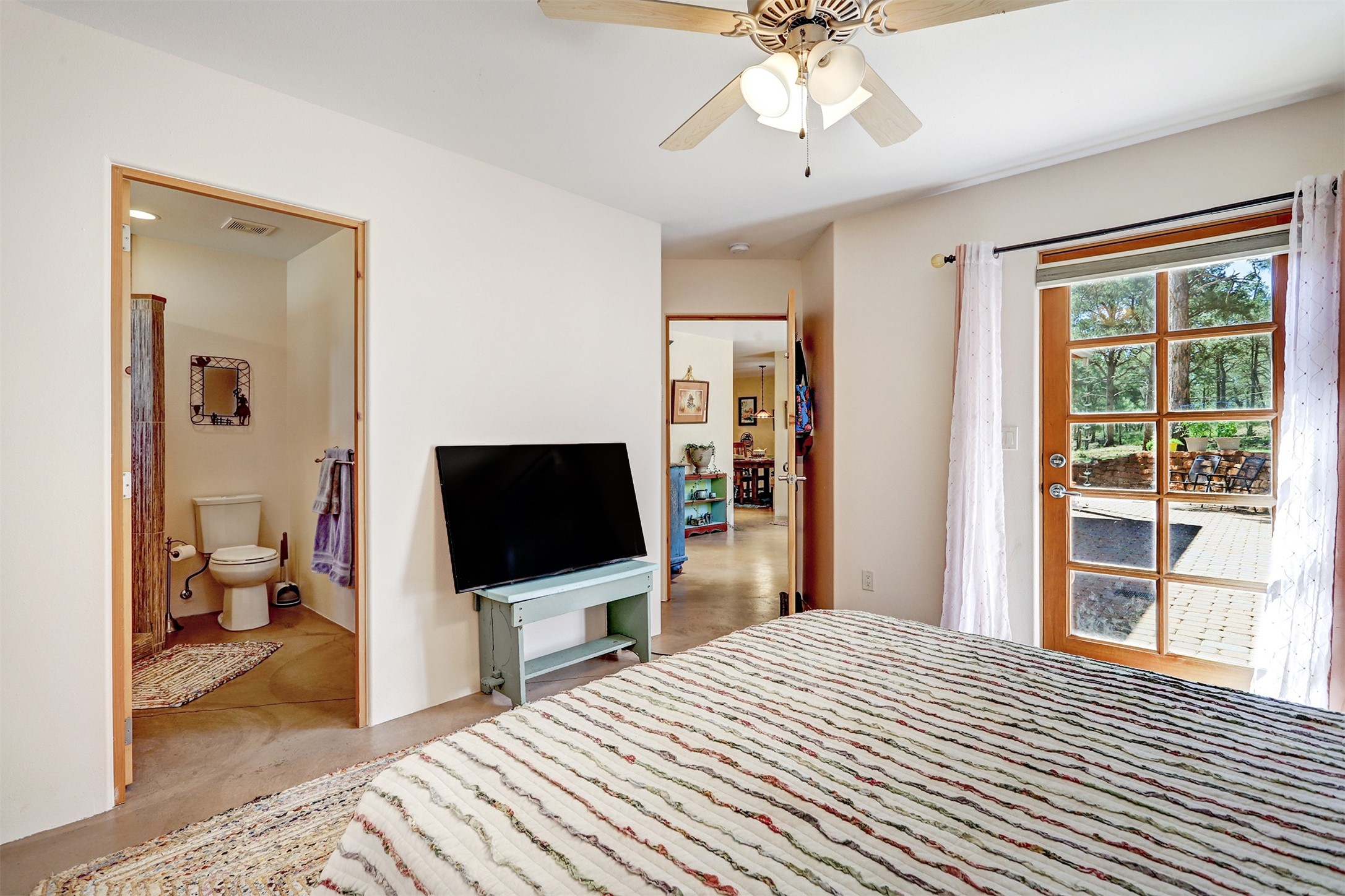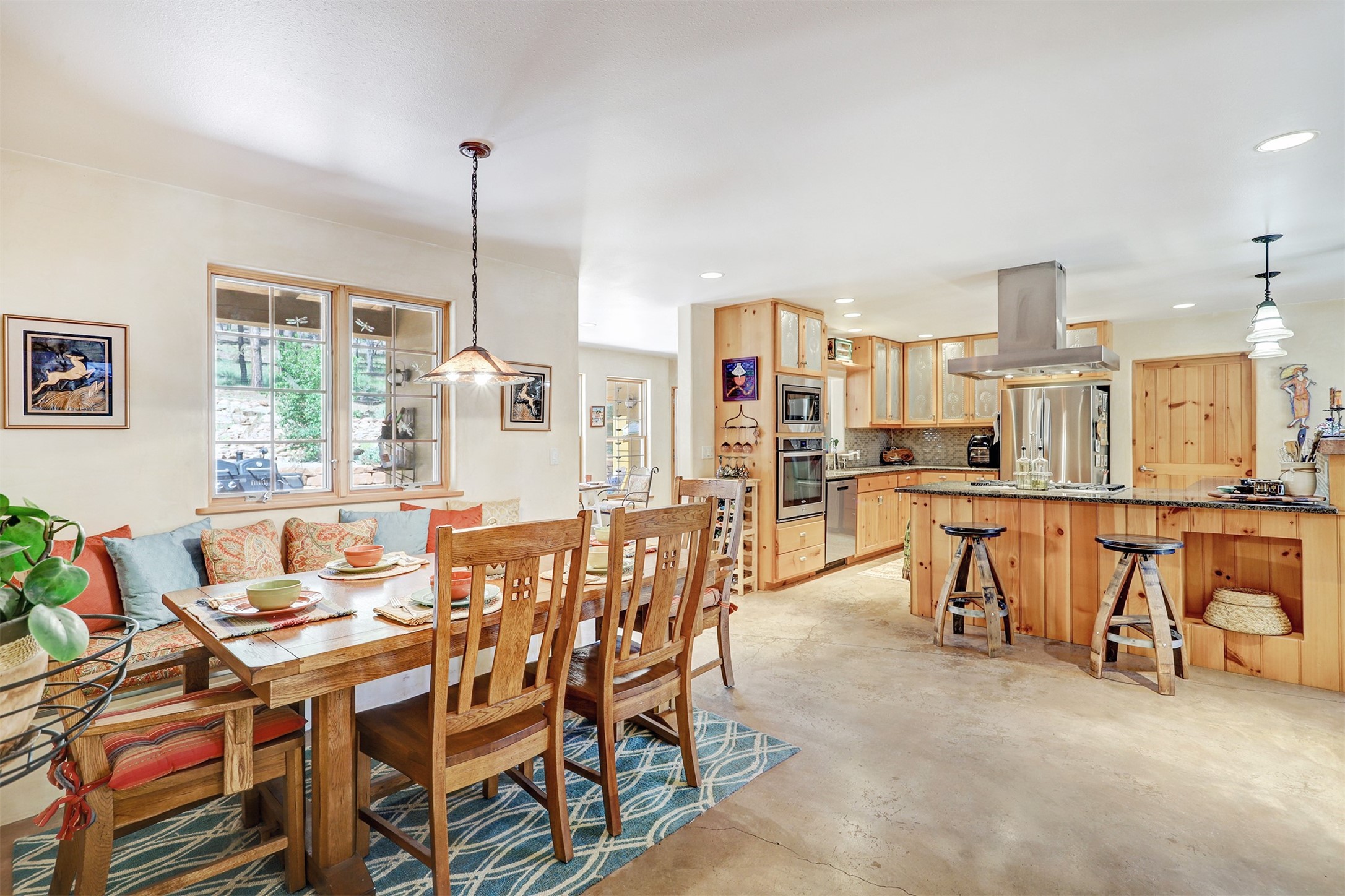 Attention Mountain Bikers and Horse Enthusiasts! Serene 12.5-Acre Retreat with mountain views! Main house and guest casita over garage is just 25 minutes from downtown Santa Fe. Nestled at the base of the stunning Glorieta Mesa this exceptional property with private well offers access to miles of scenic trails perfect for mountain biking and horseback riding. Located across the highway from the famous Glorieta Mountain Biking Trails, this property is ideally located for outdoor lovers. The main home blends rustic charm with modern comfort, featuring a spacious living area, two primary suites, a dedicated office, and a convenient dog bath. The tranquil, private setting makes it ideal for full-time living or a weekend getaway. Step outside to the elevated sandstone terrace--a perfect space for dining, relaxing, or taking in the panoramic mountain views. A standout feature is the 800 sq. ft. casita above the garage, complete with a strong rental history--ideal as an income-producing long-term rental or a welcoming guest suite.Additional highlights include a fully fenced yard, ample RV parking, direct access to the Santa Fe National Forest, and horse-friendly property making it easy to enjoy trail riding and open space right from your property.Whether you're seeking a serene lifestyle, an investment opportunity, or proximity to Santa Fe's rich cultural and outdoor offerings, this unique property delivers on all fronts.