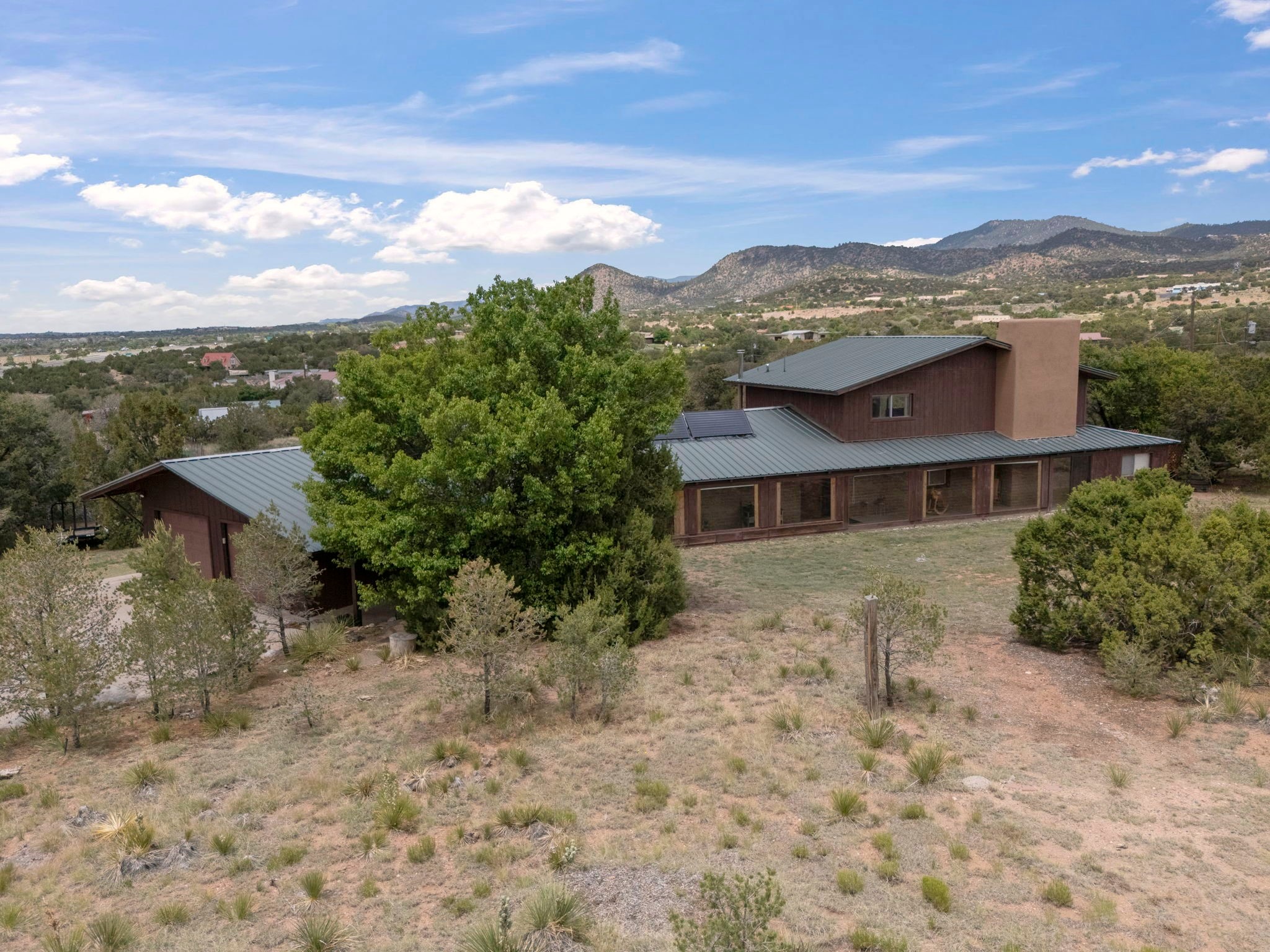 Come home to this charming 3-bedroom, 2.5-bath, 2,504 sq ft ADOBE home on a peaceful and fully usable 3.8-acre lot just minutes from the heart of Santa Fe. Authentic exposed adobe brick walls throughout the home is topped with a durable metal pitched roof, a classic Southwestern feature that adds both beauty and durability.A spacious sunroom bathes the home in natural light, ideal for morning coffee, creative projects, or even a thriving greenhouse. The expansive living room features a cozy wood-burning fireplace, perfect for relaxing evenings or hosting gatherings.Horse lovers and outdoor enthusiasts will appreciate the ample space for horses, RVs, trailers and toys. From the property, enjoy sweeping views of the mountains and the twinkling city lights of Santa Fe. The sunsets here are simply unforgettable.Enjoy quick access to downtown Santa Fe, medical services, shopping, and cultural amenities. For commuters to Albuquerque or Los Alamos there is convenient and easy access to the I-25 freeway. Close to Arroyo Hondo Open Space Trail Head. A new septic system and leach field was installed in May 2025, providing lasting peace of mind.Priced at its 2023 appraised value, this home represents incredible value in an unparalleled location.