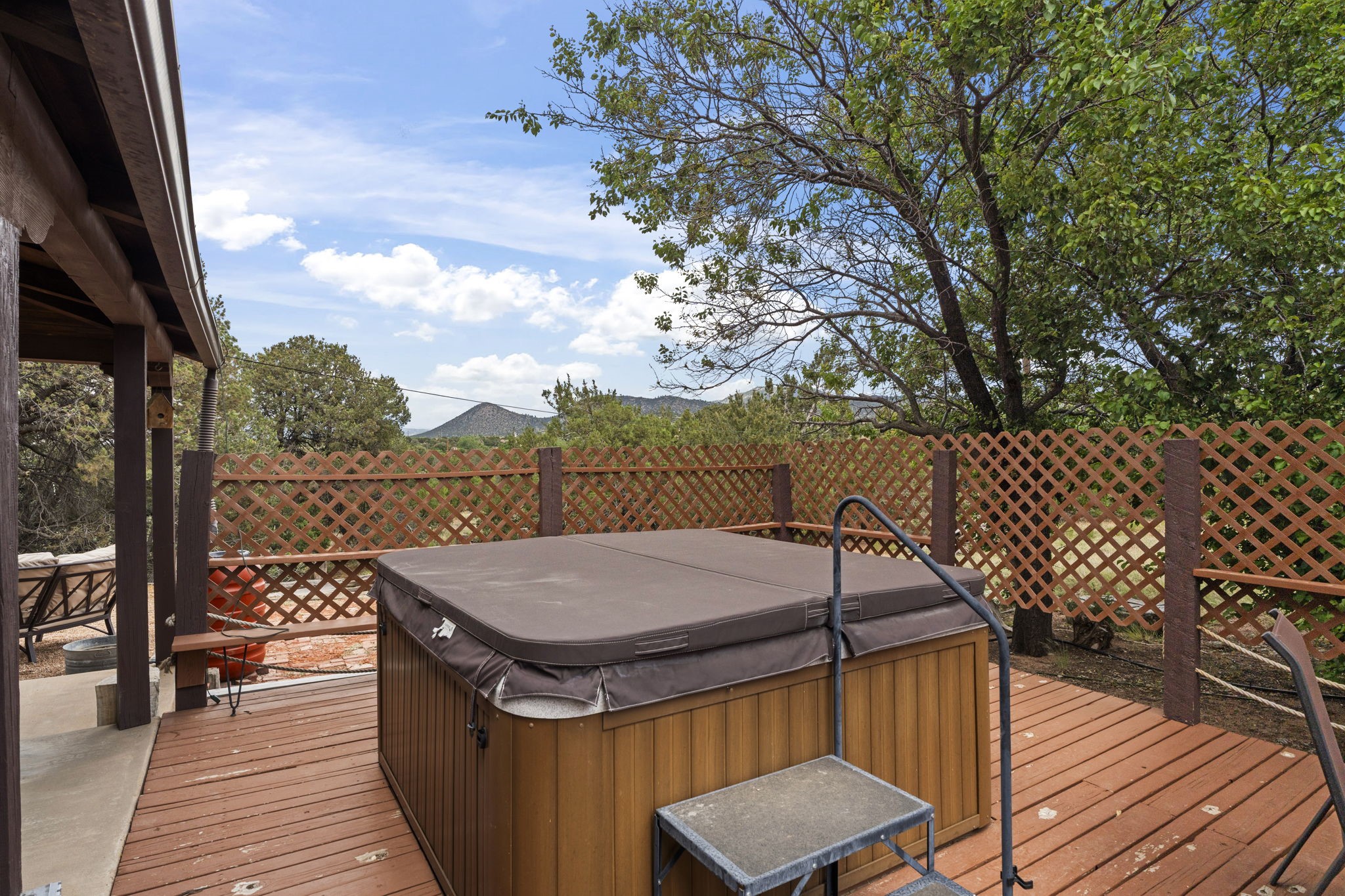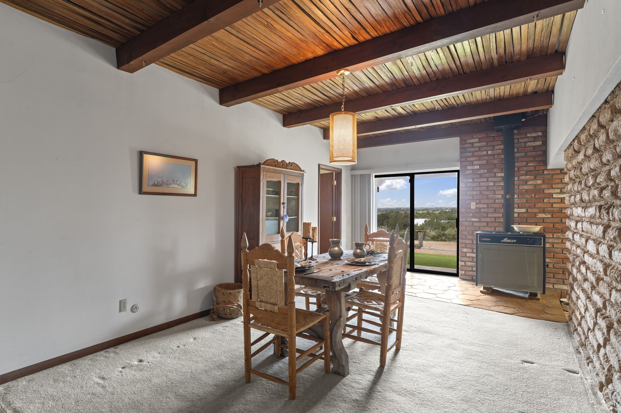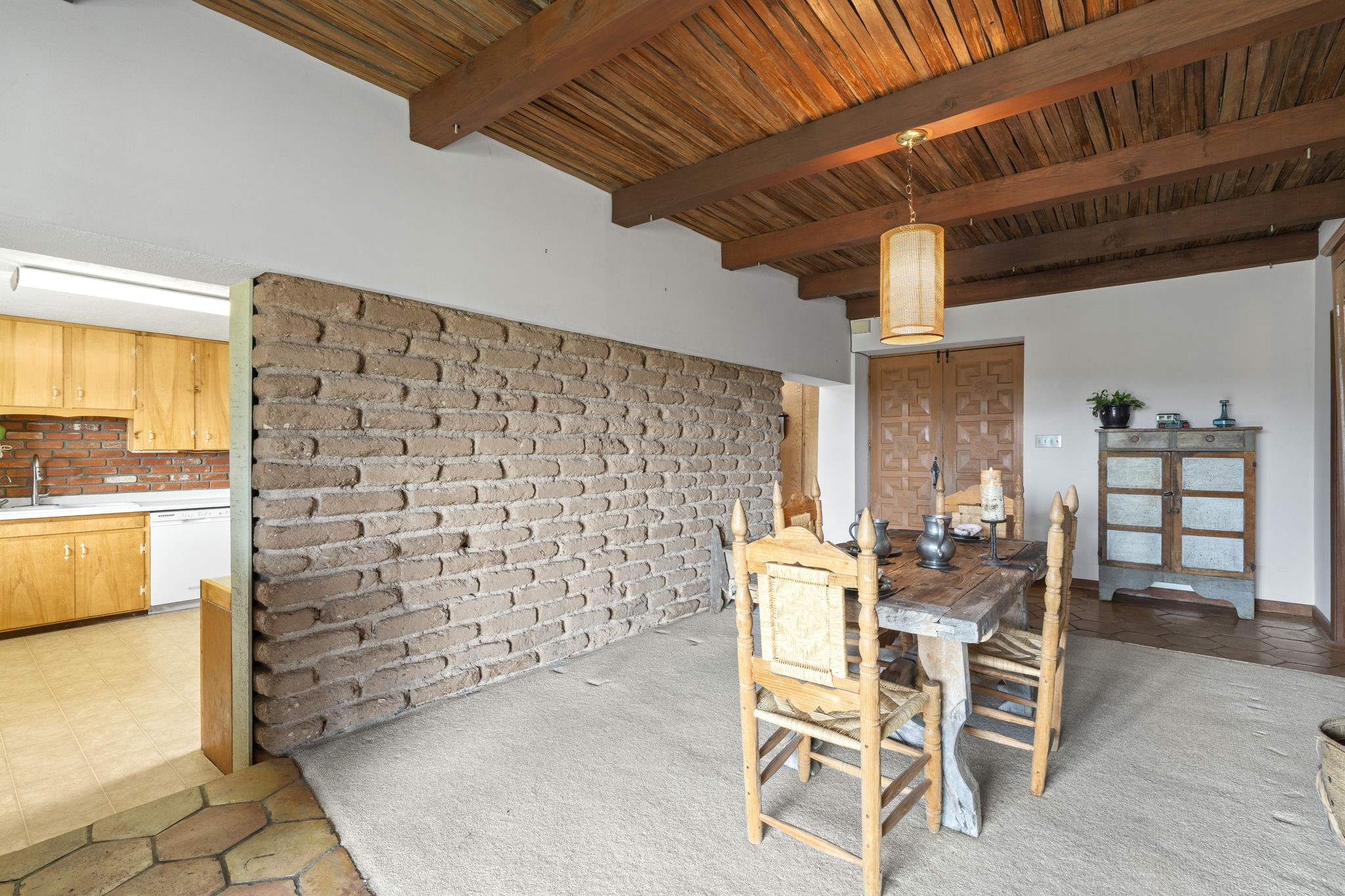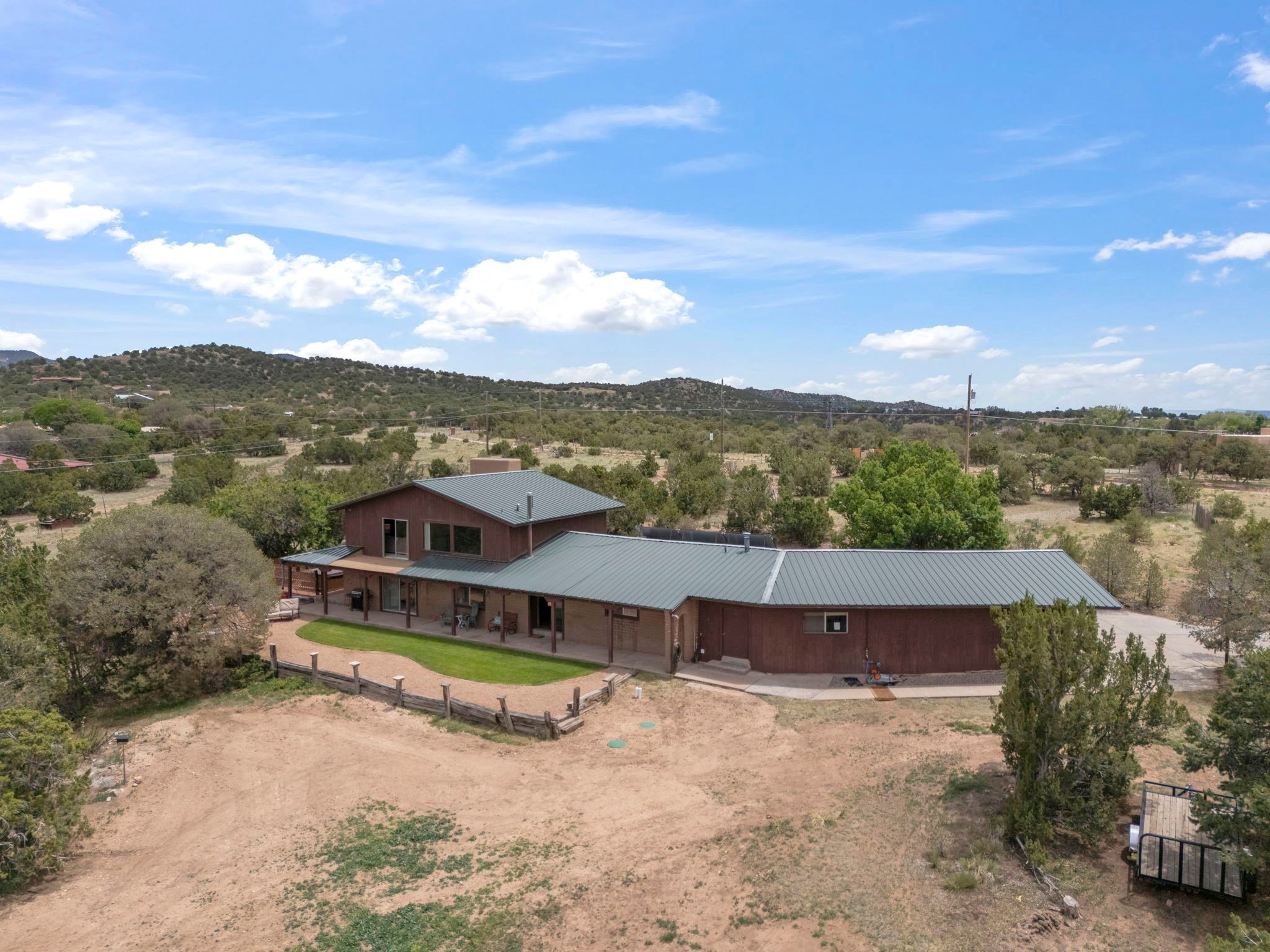 Come home to this charming 3-bedroom, 2.5-bath, 2,504 sq ft ADOBE home on a peaceful and fully usable 3.8-acre lot just minutes from the heart of Santa Fe. Authentic exposed adobe brick walls throughout the home is topped with a durable metal pitched roof, a classic Southwestern feature that adds both beauty and durability.A spacious sunroom bathes the home in natural light, ideal for morning coffee, creative projects, or even a thriving greenhouse. The expansive living room features a cozy wood-burning fireplace, perfect for relaxing evenings or hosting gatherings.Horse lovers and outdoor enthusiasts will appreciate the ample space for horses, RVs, trailers and toys. From the property, enjoy sweeping views of the mountains and the twinkling city lights of Santa Fe. The sunsets here are simply unforgettable.Enjoy quick access to downtown Santa Fe, medical services, shopping, and cultural amenities. For commuters to Albuquerque or Los Alamos there is convenient and easy access to the I-25 freeway. Close to Arroyo Hondo Open Space Trail Head. A new septic system and leach field was installed in May 2025, providing lasting peace of mind.Priced at its 2023 appraised value, this home represents incredible value in an unparalleled location.