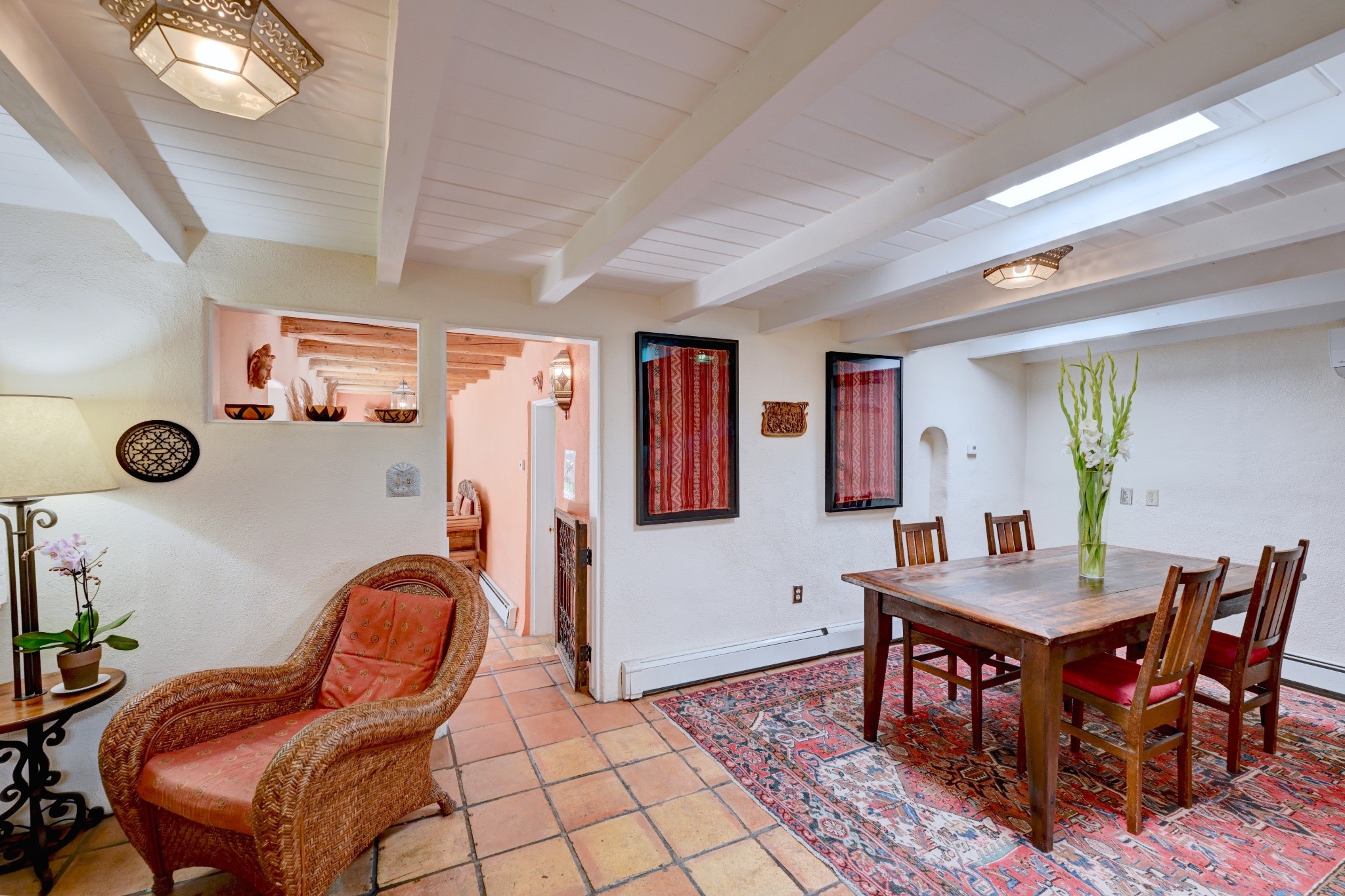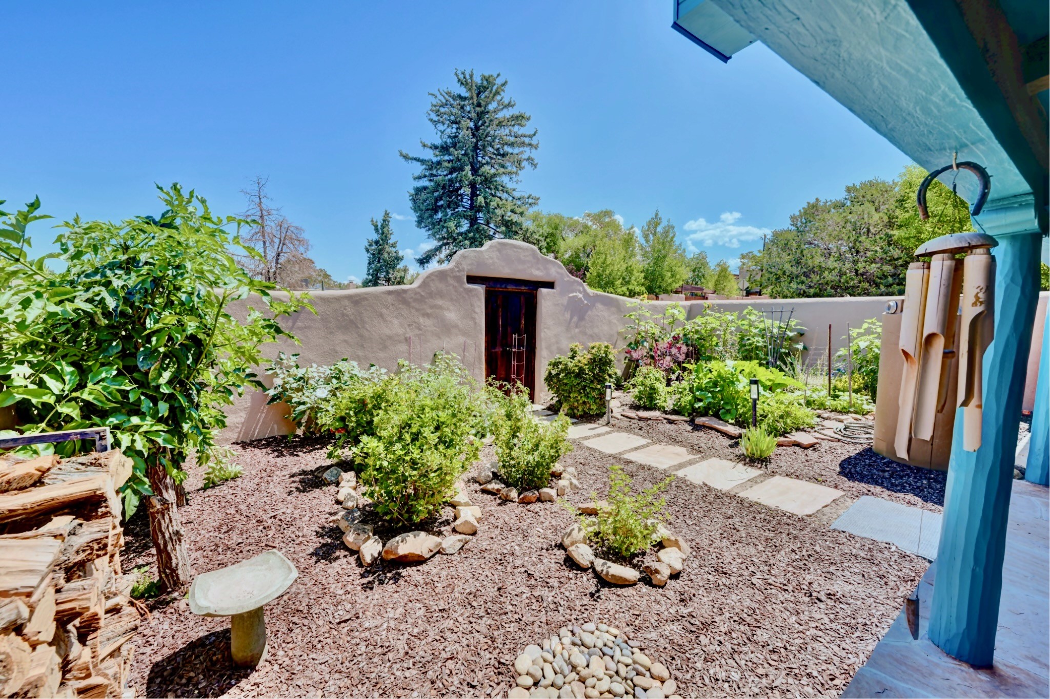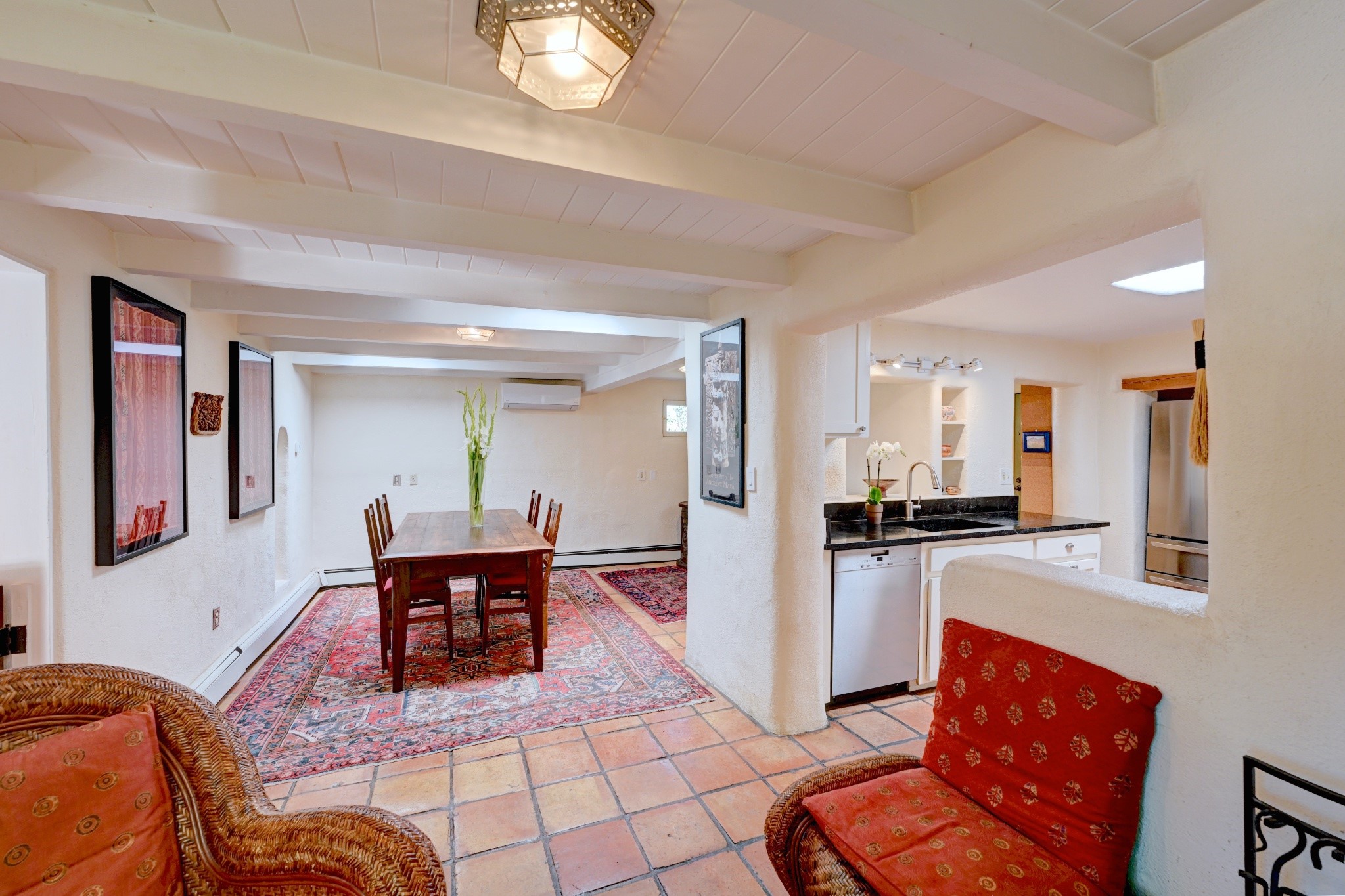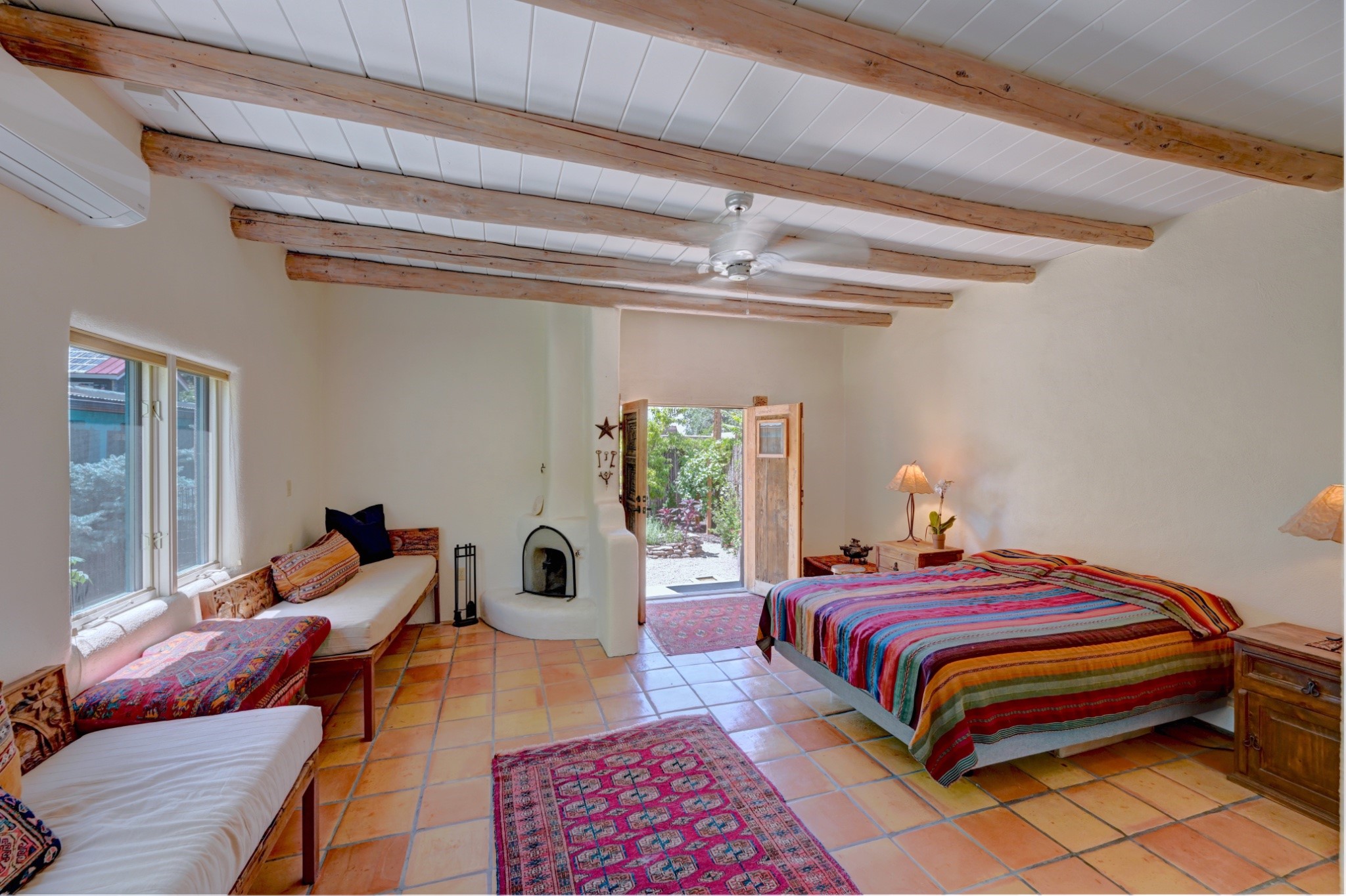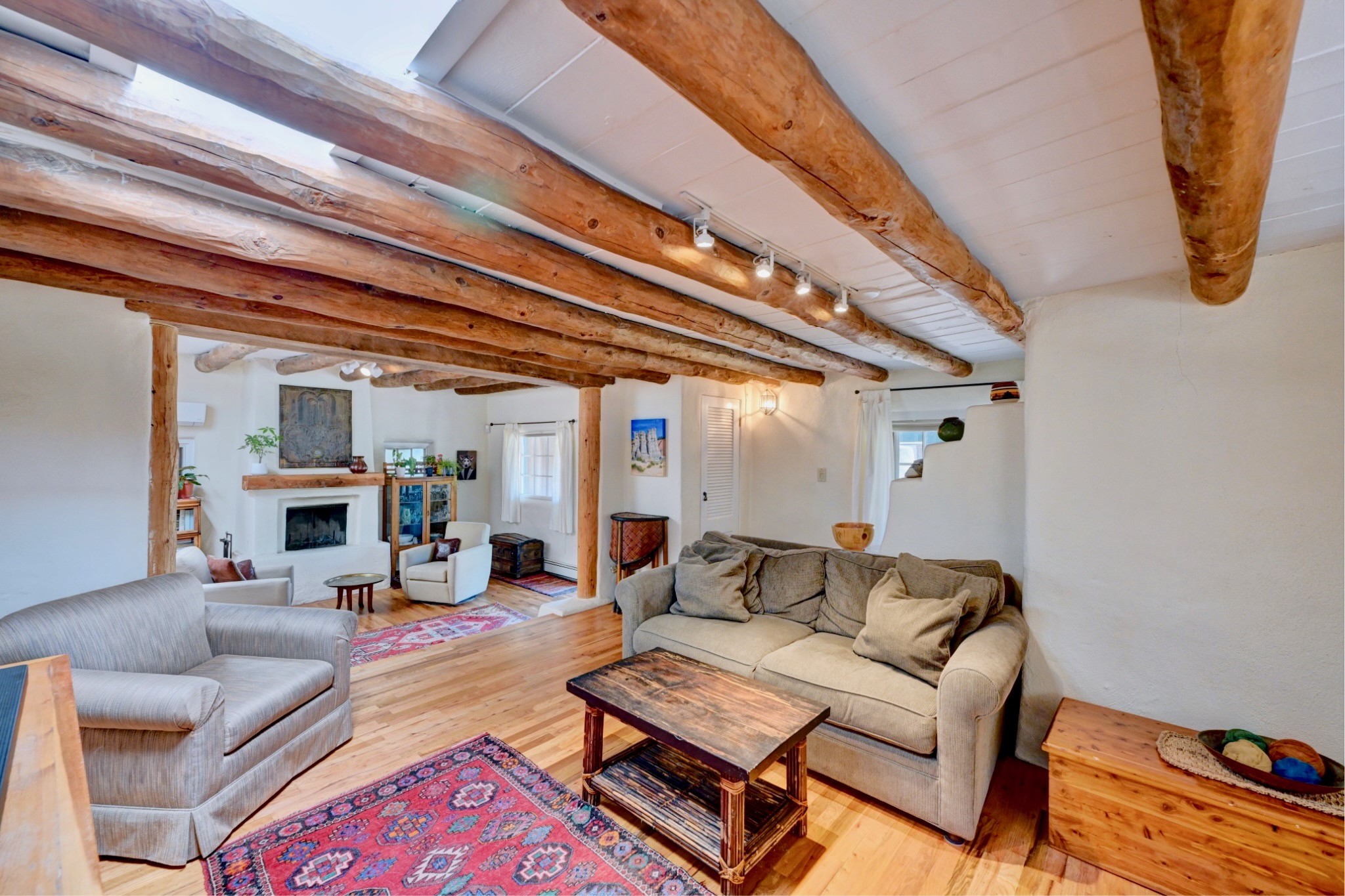 A hundred years of Santa Fe history is represented in this unique home. From the original small structure, built in the 1930's with its thick adobe walls, subsequent owners have added numerous updates and additional living spaces while maintaining the history and character of the residence. These adobe walls and double-paned windows throughout the house, provide peace and quiet from the home's location on the road leading to the renowned Santa Fe Ski Basin and to miles of hiking trails. The two-tiered living room features a fireplace and a designated area for activities such as reading, listening to music, and watching TV.The heart of the house is the central kitchen/dining area, where family and friends gather for meals and conversation. Cabinets, counters, backsplashes, and appliances have been updated to accommodate modern living, while the original floors, nichos, and ceilings have been carefully preserved. The traditional Kiva fireplace, once part of the original portal, serves as a focal point for the area. Well maintained and updated, it adds warmth and charm during Santa Fe's brisk winters. The situation of two of the three bedrooms off the central area provides privacy for guests and residents alike. One has an ensuite bathroom while the other provides garden views.Down a sunny hall, also with garden views, is the primary bedroom and bath. With a Kiva fireplace and outdoor access, this suite is a serene retreat. Its location from the central living area guarantees spacious privacy for the main occupants while hosting family and friends.The two outside areas have been designed to address the specific requirements of Santa Fe's climate. Water wise trees, shrubs and perennials support native pollinators while bringing edibles and color to the landscape. A water catchment system collects hundreds of gallons of water during the region's infrequent rains for use during the dry season.To top it off, this gem boasts a new TPO roof, new exterior stucco, two tankless hot water heaters (2020); solar panels (2021); and five minisplits (beginning 2018) making it move-in ready. This is a home not to be missed!Do not miss the 3-D Matterport walkthrough and drone footage in the listing!