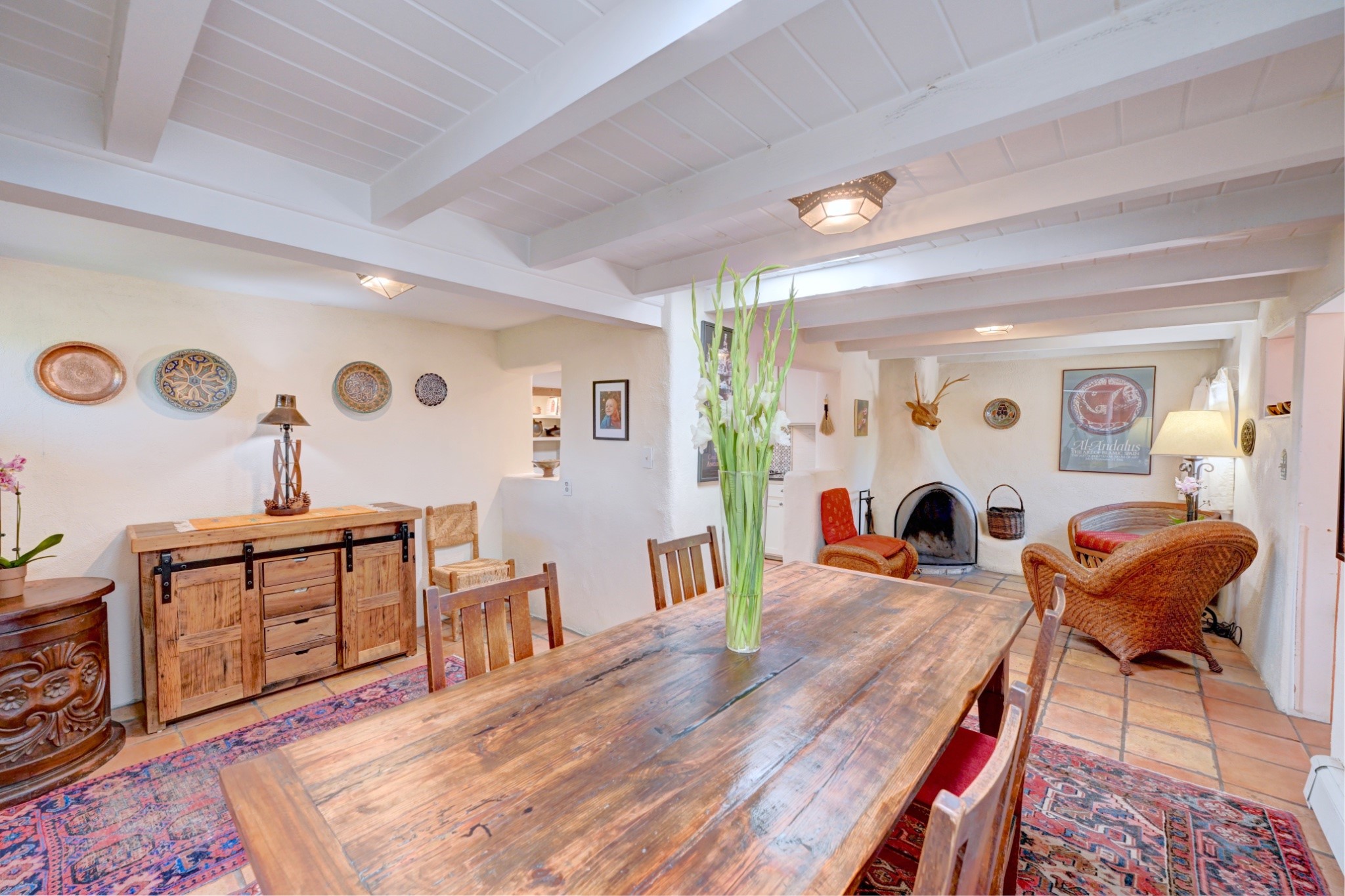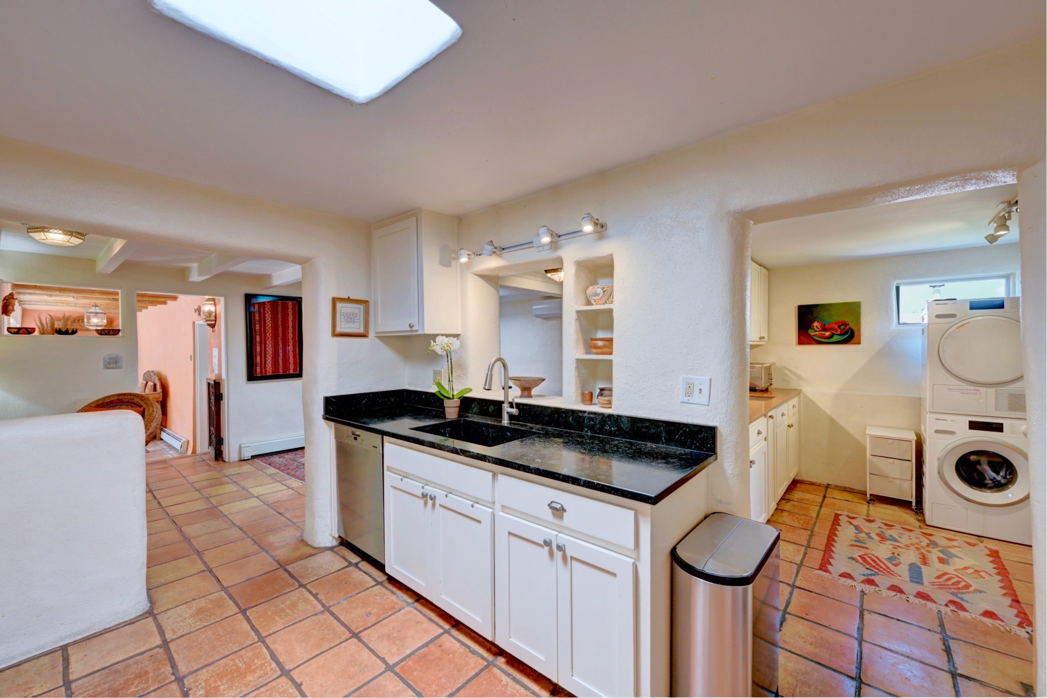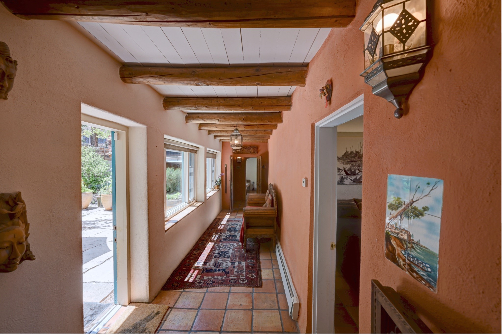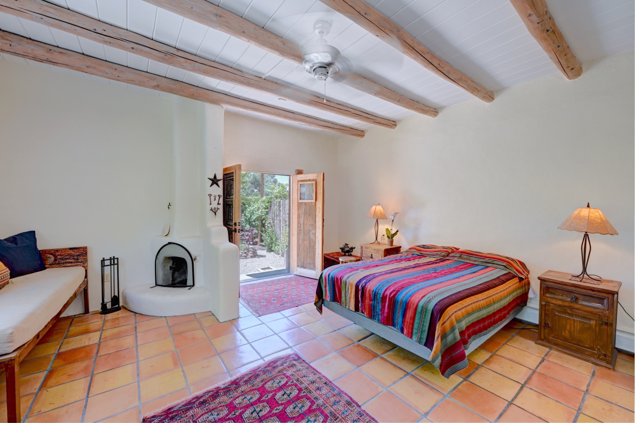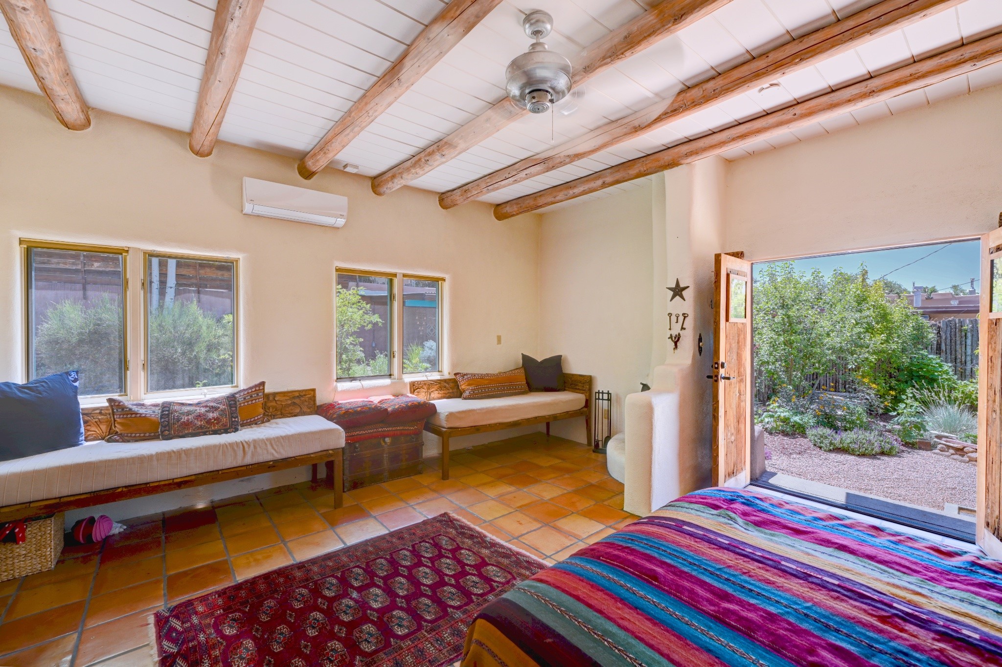 A hundred years of Santa Fe history is represented in this unique home. From the original small structure, built in the 1930's with its thick adobe walls, subsequent owners have added numerous updates and additional living spaces while maintaining the history and character of the residence. These adobe walls and double-paned windows throughout the house, provide peace and quiet from the home's location on the road leading to the renowned Santa Fe Ski Basin and to miles of hiking trails. The two-tiered living room features a fireplace and a designated area for activities such as reading, listening to music, and watching TV.The heart of the house is the central kitchen/dining area, where family and friends gather for meals and conversation. Cabinets, counters, backsplashes, and appliances have been updated to accommodate modern living, while the original floors, nichos, and ceilings have been carefully preserved. The traditional Kiva fireplace, once part of the original portal, serves as a focal point for the area. Well maintained and updated, it adds warmth and charm during Santa Fe's brisk winters. The situation of two of the three bedrooms off the central area provides privacy for guests and residents alike. One has an ensuite bathroom while the other provides garden views.Down a sunny hall, also with garden views, is the primary bedroom and bath. With a Kiva fireplace and outdoor access, this suite is a serene retreat. Its location from the central living area guarantees spacious privacy for the main occupants while hosting family and friends.The two outside areas have been designed to address the specific requirements of Santa Fe's climate. Water wise trees, shrubs and perennials support native pollinators while bringing edibles and color to the landscape. A water catchment system collects hundreds of gallons of water during the region's infrequent rains for use during the dry season.To top it off, this gem boasts a new TPO roof, new exterior stucco, two tankless hot water heaters (2020); solar panels (2021); and five minisplits (beginning 2018) making it move-in ready. This is a home not to be missed!Do not miss the 3-D Matterport walkthrough and drone footage in the listing!