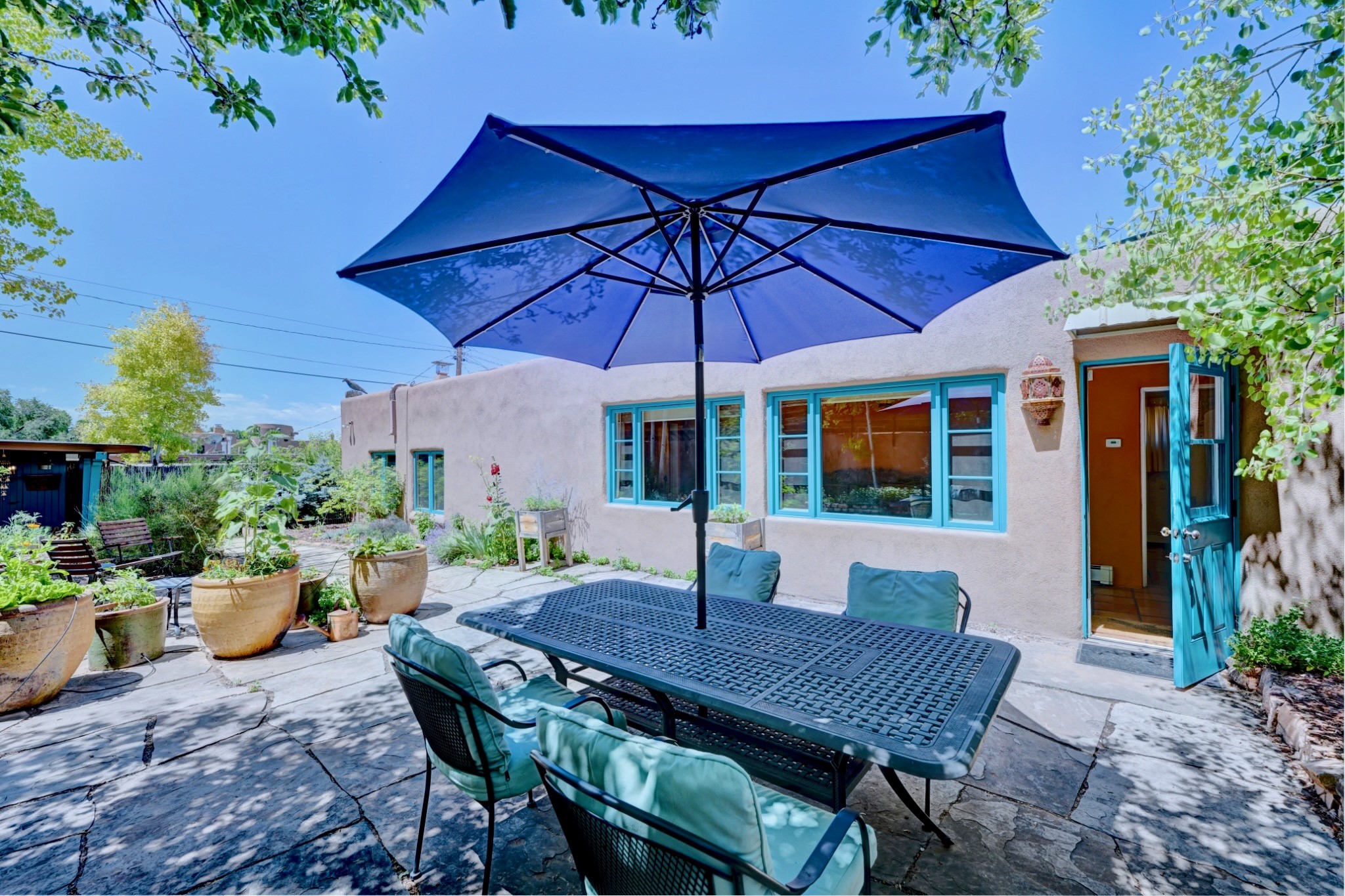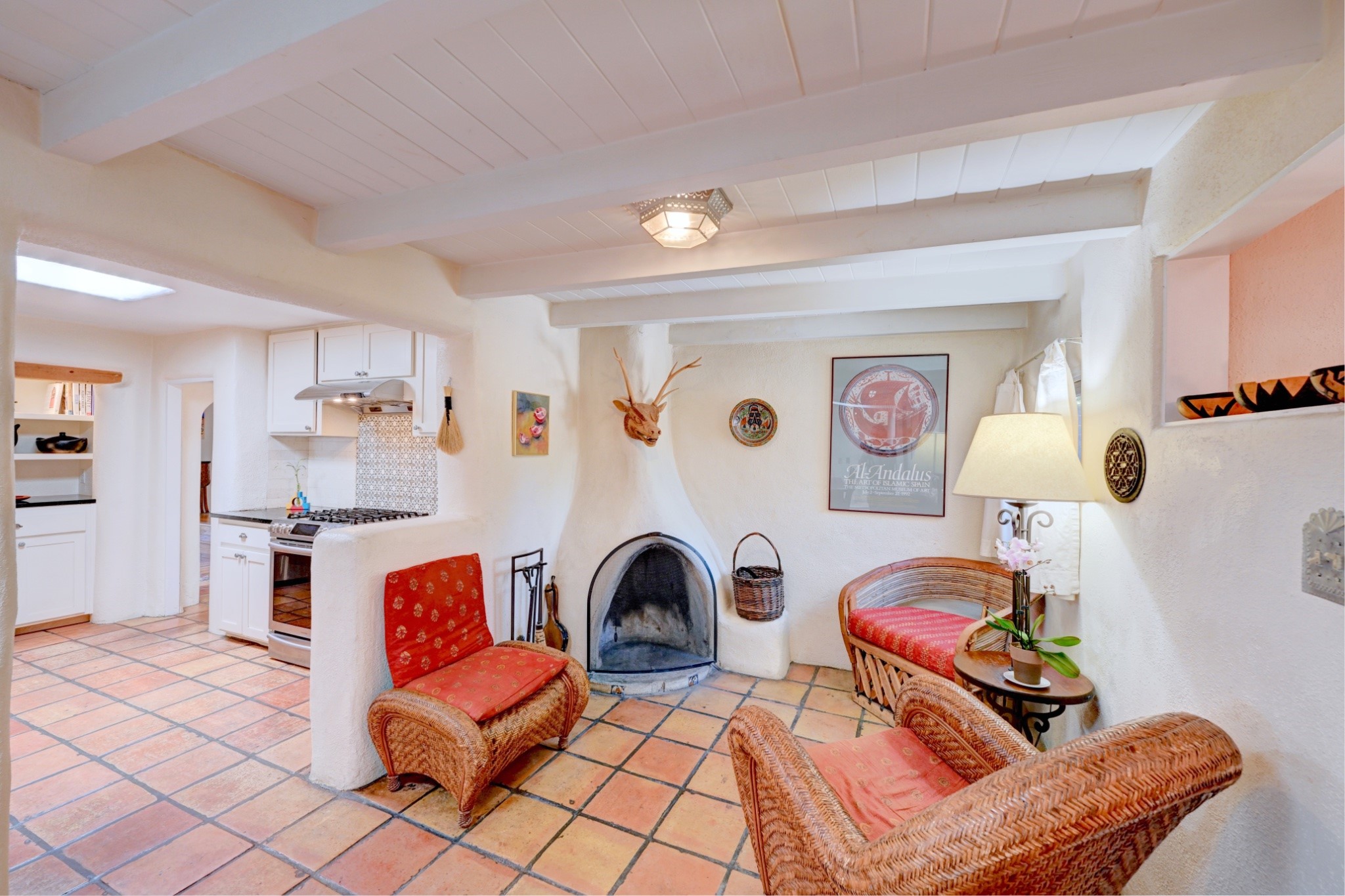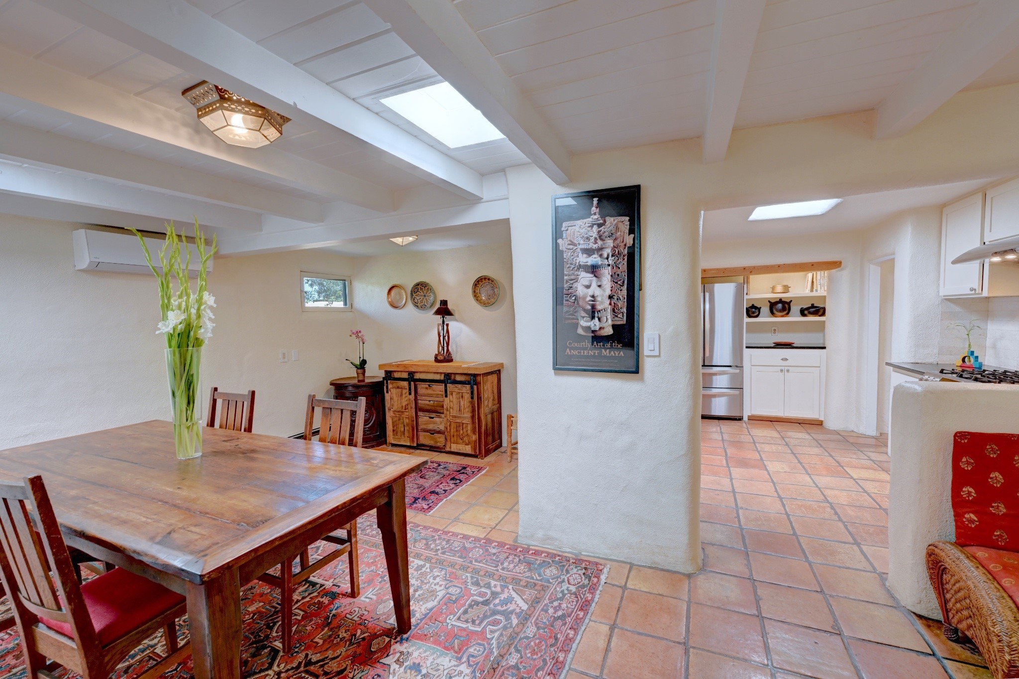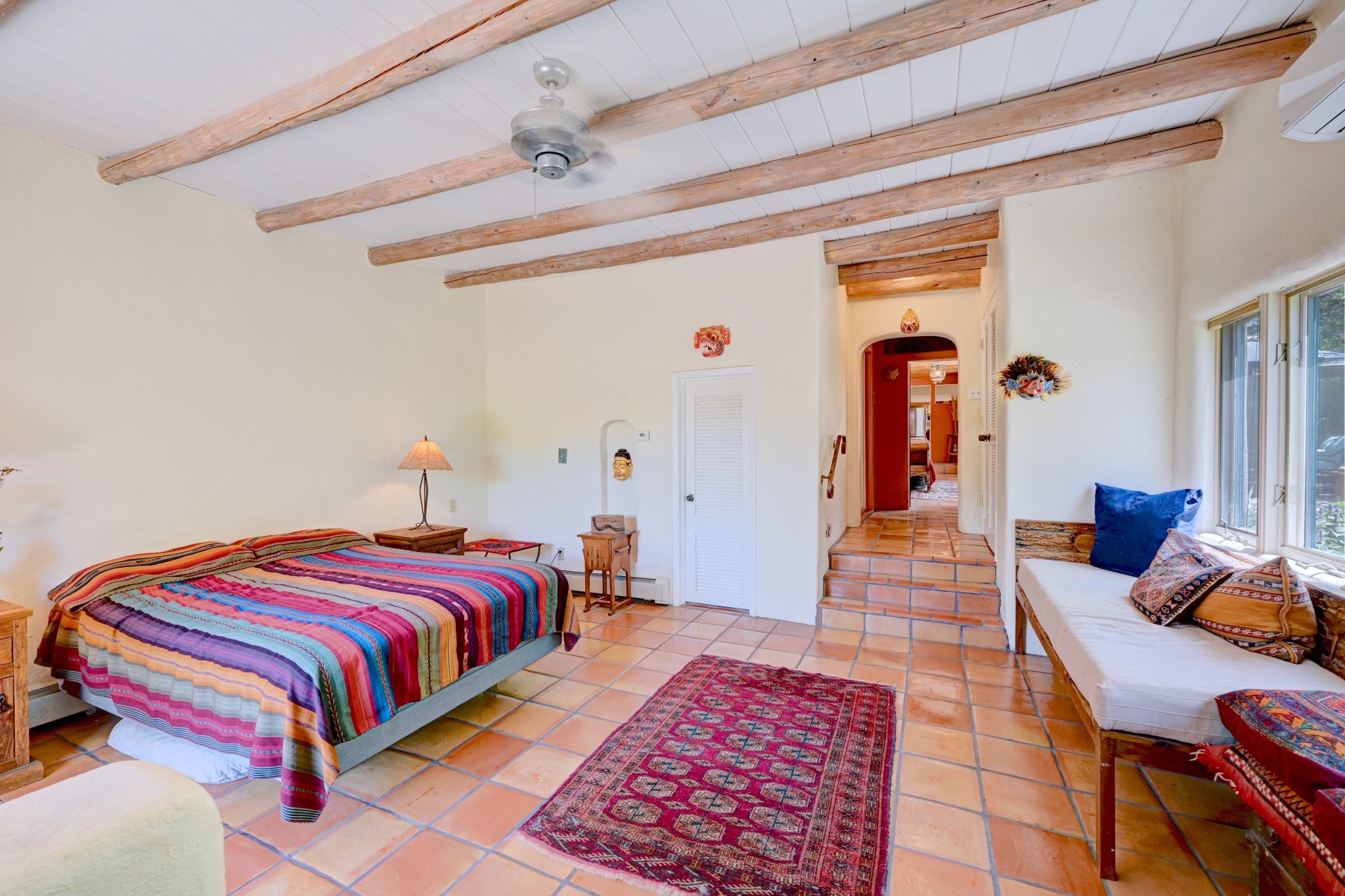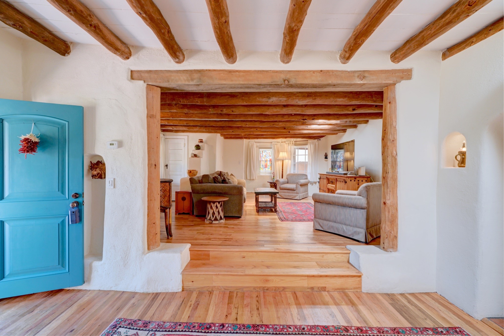 A hundred years of Santa Fe history is represented in this unique home. From the original small structure, built in the 1930's with its thick adobe walls, subsequent owners have added numerous updates and additional living spaces while maintaining the history and character of the residence. These adobe walls and double-paned windows throughout the house, provide peace and quiet from the home's location on the road leading to the renowned Santa Fe Ski Basin and to miles of hiking trails. The two-tiered living room features a fireplace and a designated area for activities such as reading, listening to music, and watching TV.The heart of the house is the central kitchen/dining area, where family and friends gather for meals and conversation. Cabinets, counters, backsplashes, and appliances have been updated to accommodate modern living, while the original floors, nichos, and ceilings have been carefully preserved. The traditional Kiva fireplace, once part of the original portal, serves as a focal point for the area. Well maintained and updated, it adds warmth and charm during Santa Fe's brisk winters. The situation of two of the three bedrooms off the central area provides privacy for guests and residents alike. One has an ensuite bathroom while the other provides garden views.Down a sunny hall, also with garden views, is the primary bedroom and bath. With a Kiva fireplace and outdoor access, this suite is a serene retreat. Its location from the central living area guarantees spacious privacy for the main occupants while hosting family and friends.The two outside areas have been designed to address the specific requirements of Santa Fe's climate. Water wise trees, shrubs and perennials support native pollinators while bringing edibles and color to the landscape. A water catchment system collects hundreds of gallons of water during the region's infrequent rains for use during the dry season.To top it off, this gem boasts a new TPO roof, new exterior stucco, two tankless hot water heaters (2020); solar panels (2021); and five minisplits (beginning 2018) making it move-in ready. This is a home not to be missed!Do not miss the 3-D Matterport walkthrough and drone footage in the listing!