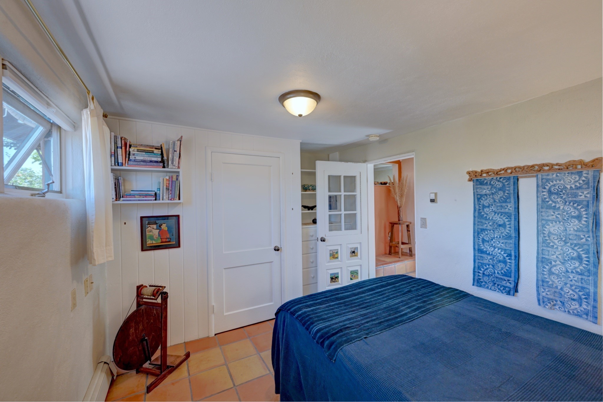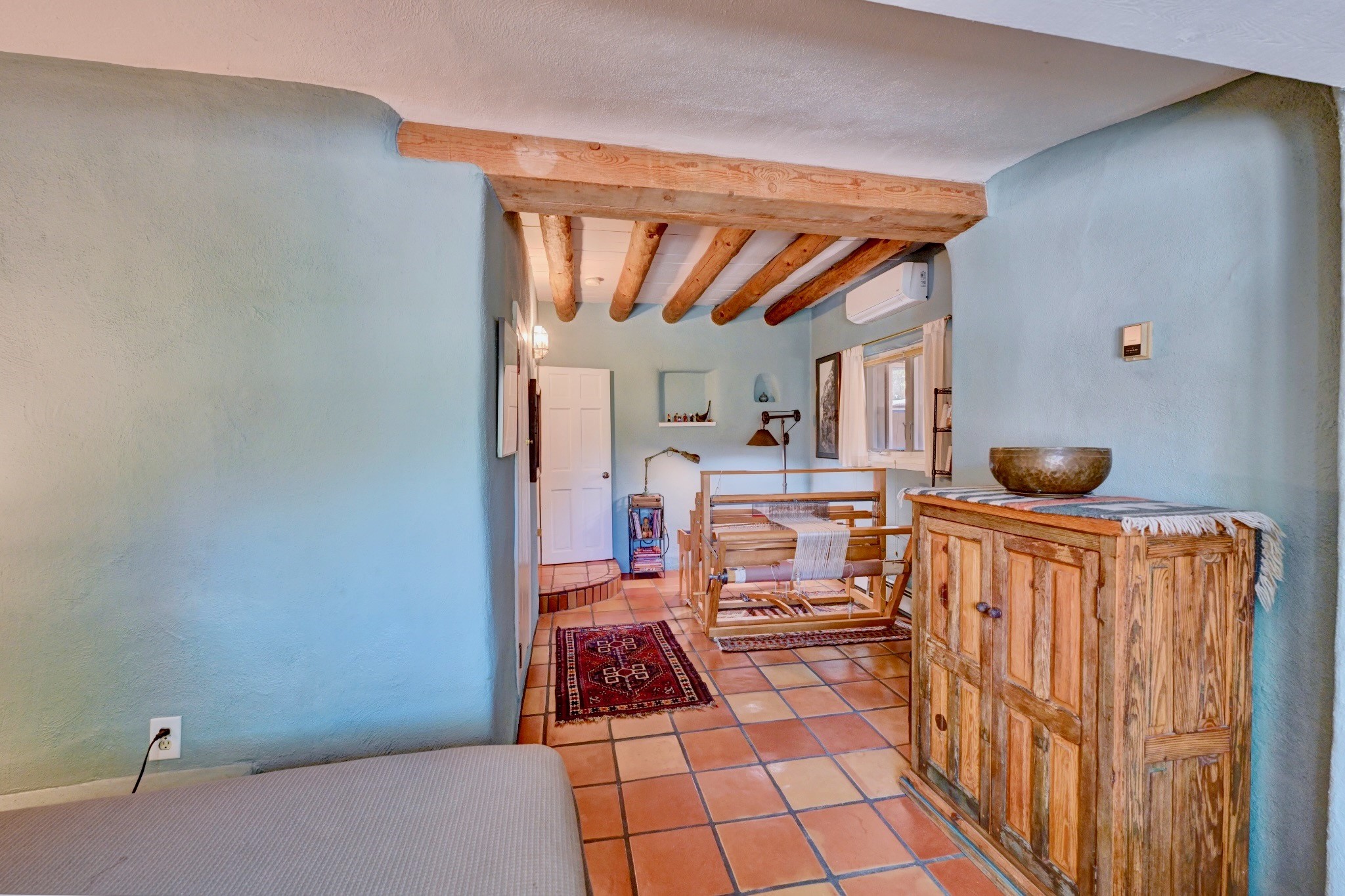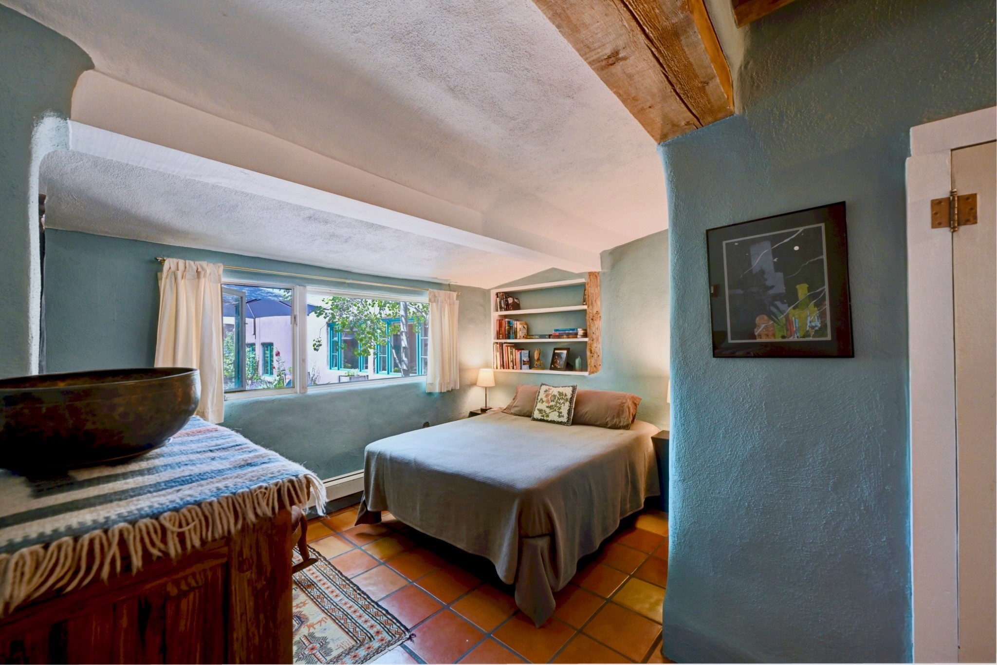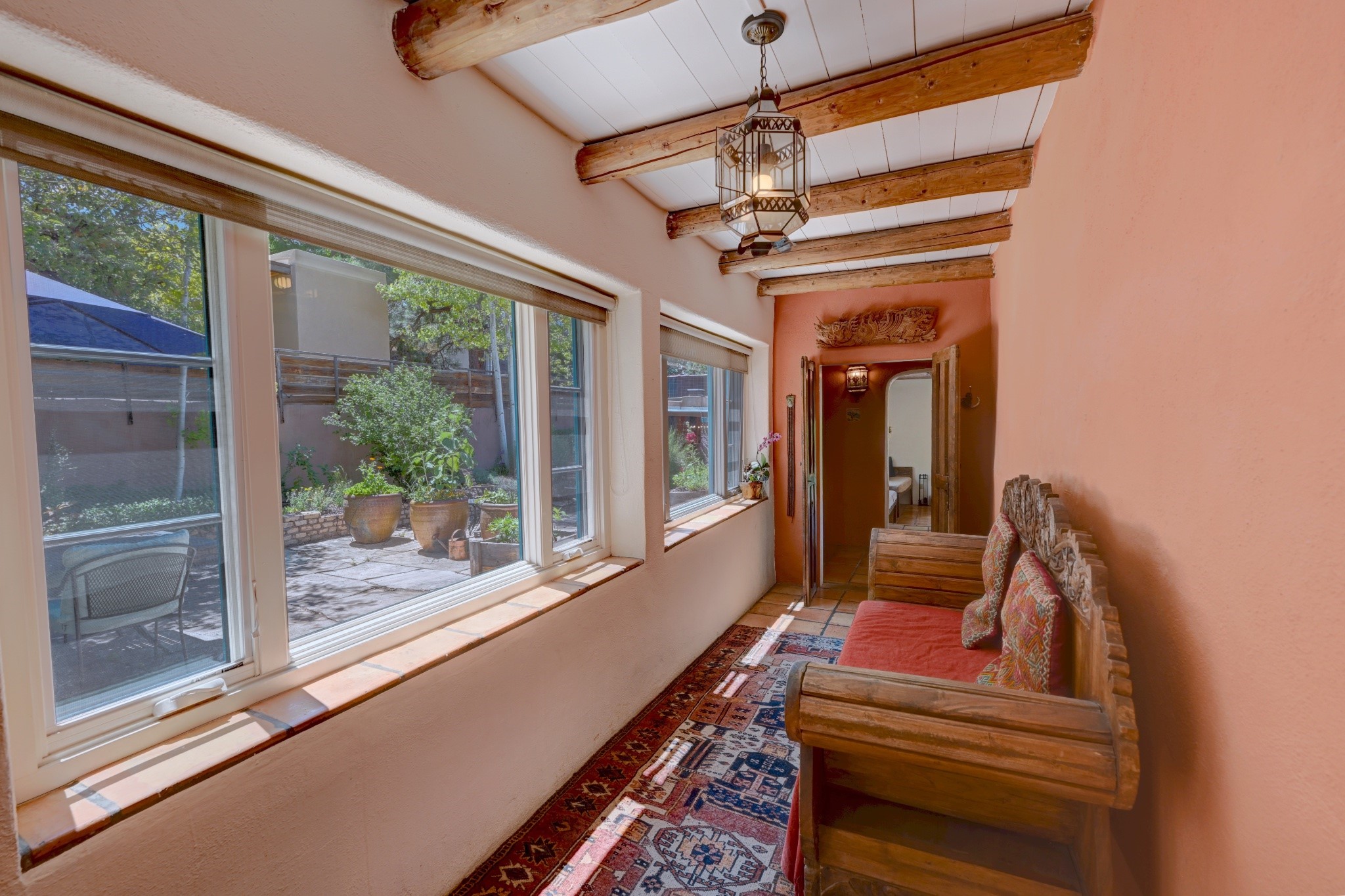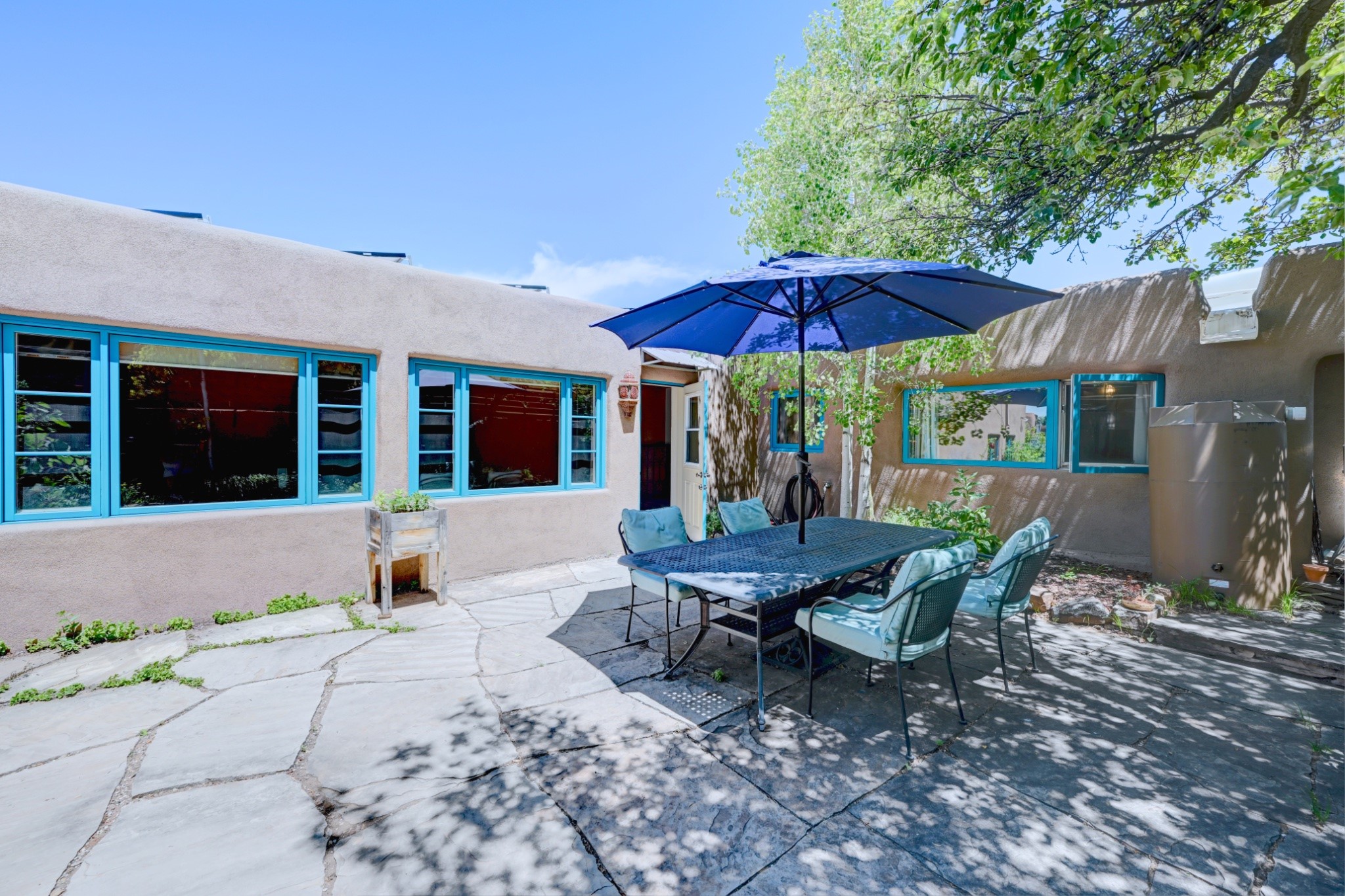 A hundred years of Santa Fe history is represented in this unique home. From the original small structure, built in the 1930's with its thick adobe walls, subsequent owners have added numerous updates and additional living spaces while maintaining the history and character of the residence. These adobe walls and double-paned windows throughout the house, provide peace and quiet from the home's location on the road leading to the renowned Santa Fe Ski Basin and to miles of hiking trails. The two-tiered living room features a fireplace and a designated area for activities such as reading, listening to music, and watching TV.The heart of the house is the central kitchen/dining area, where family and friends gather for meals and conversation. Cabinets, counters, backsplashes, and appliances have been updated to accommodate modern living, while the original floors, nichos, and ceilings have been carefully preserved. The traditional Kiva fireplace, once part of the original portal, serves as a focal point for the area. Well maintained and updated, it adds warmth and charm during Santa Fe's brisk winters. The situation of two of the three bedrooms off the central area provides privacy for guests and residents alike. One has an ensuite bathroom while the other provides garden views.Down a sunny hall, also with garden views, is the primary bedroom and bath. With a Kiva fireplace and outdoor access, this suite is a serene retreat. Its location from the central living area guarantees spacious privacy for the main occupants while hosting family and friends.The two outside areas have been designed to address the specific requirements of Santa Fe's climate. Water wise trees, shrubs and perennials support native pollinators while bringing edibles and color to the landscape. A water catchment system collects hundreds of gallons of water during the region's infrequent rains for use during the dry season.To top it off, this gem boasts a new TPO roof, new exterior stucco, two tankless hot water heaters (2020); solar panels (2021); and five minisplits (beginning 2018) making it move-in ready. This is a home not to be missed!Do not miss the 3-D Matterport walkthrough and drone footage in the listing!