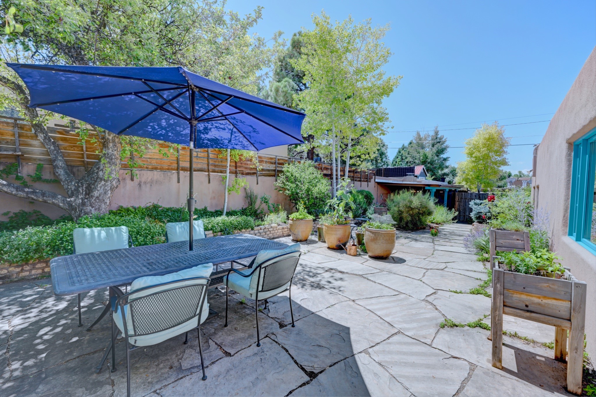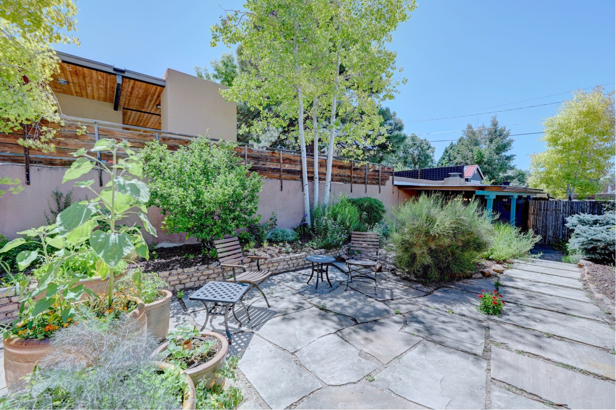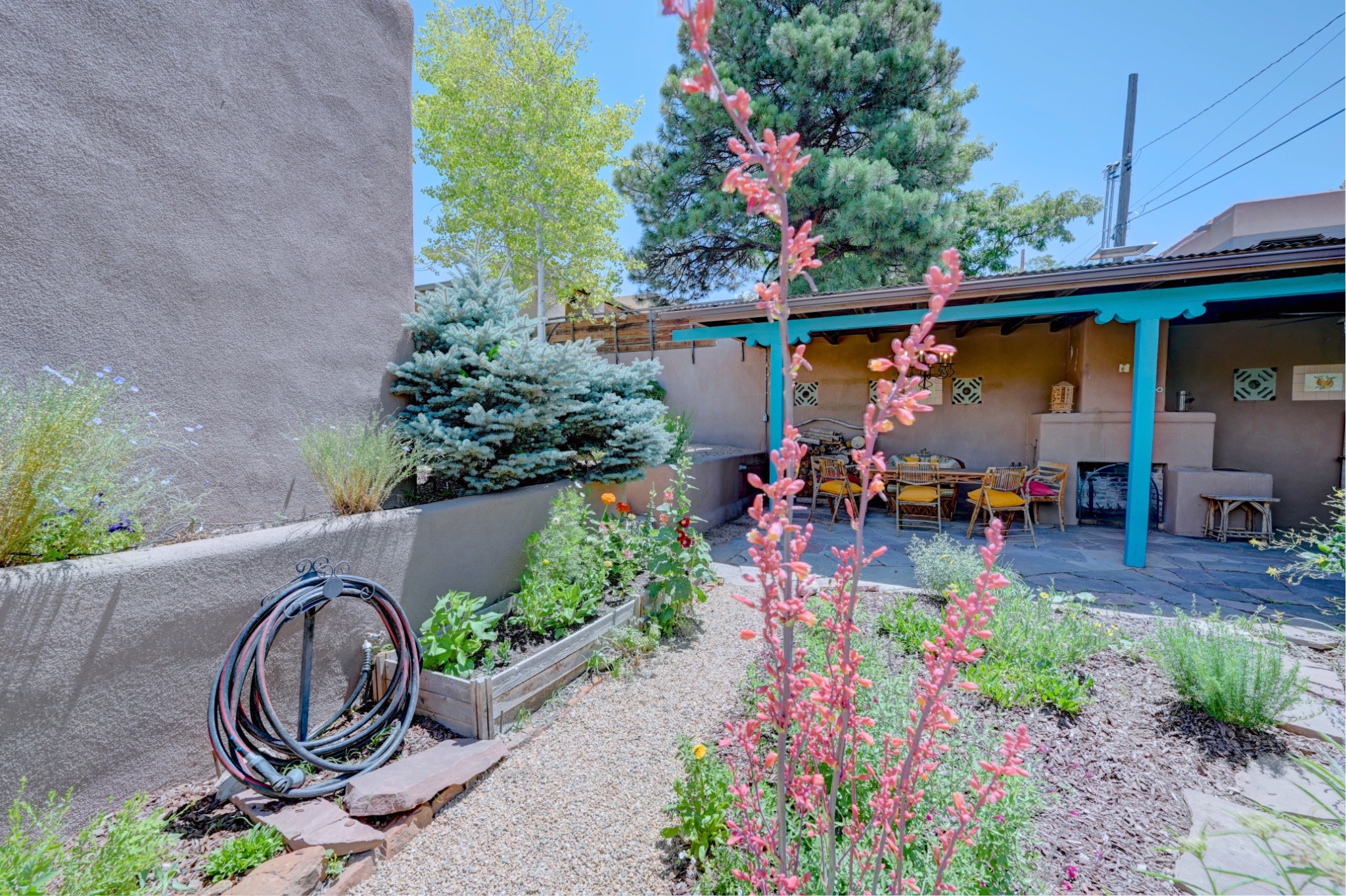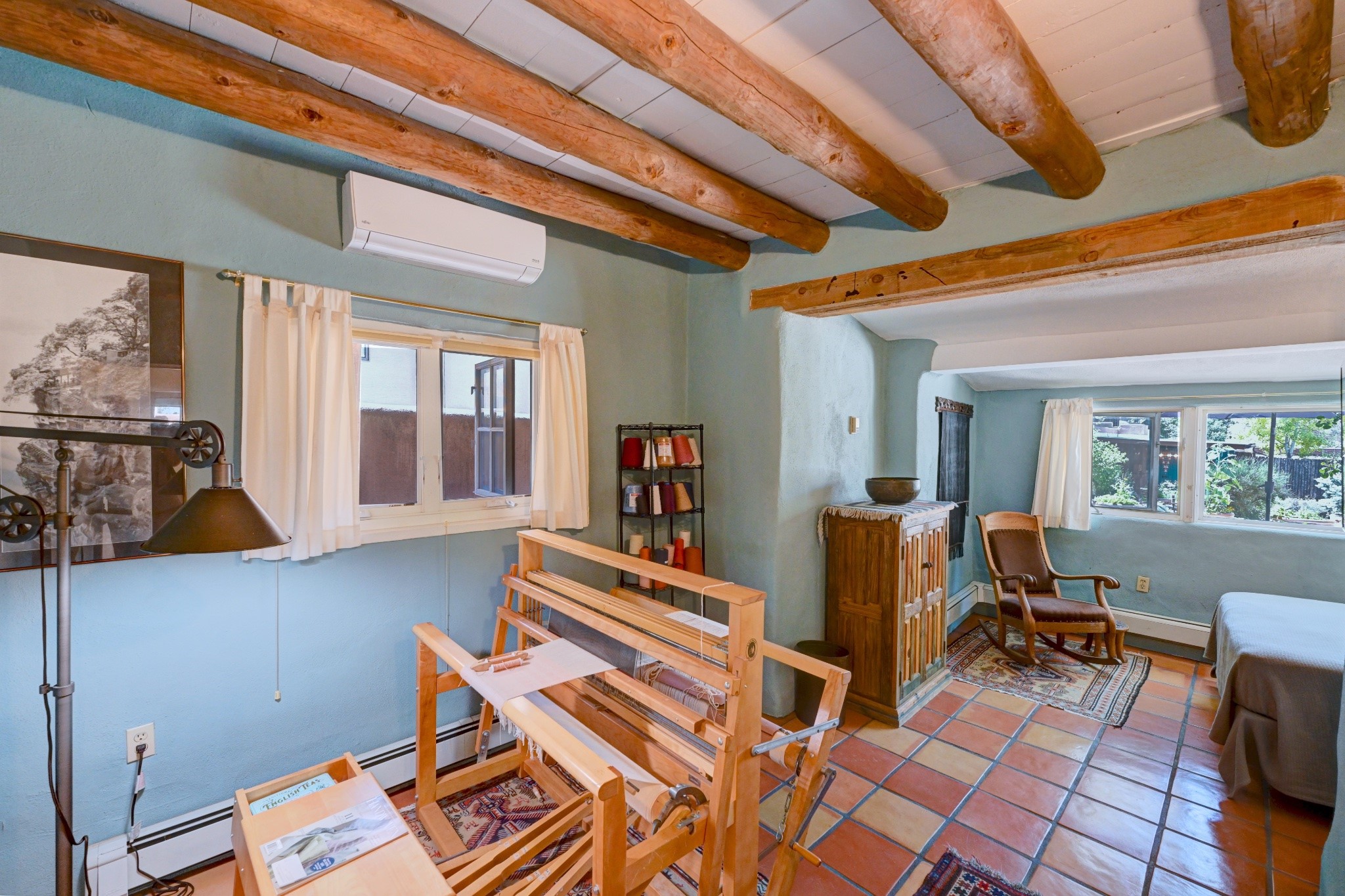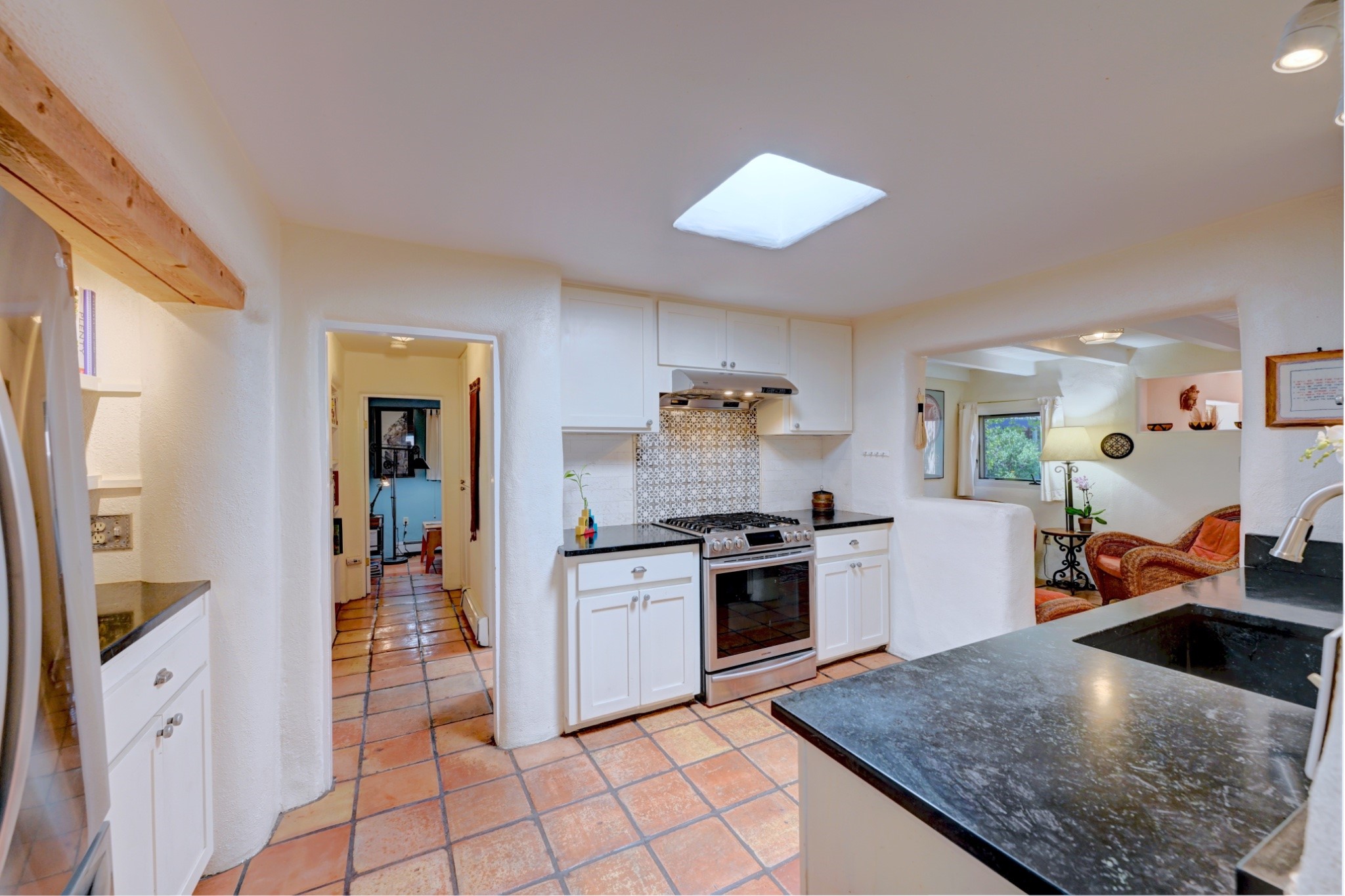 A hundred years of Santa Fe history is represented in this unique home. From the original small structure, built in the 1930's with its thick adobe walls, subsequent owners have added numerous updates and additional living spaces while maintaining the history and character of the residence. These adobe walls and double-paned windows throughout the house, provide peace and quiet from the home's location on the road leading to the renowned Santa Fe Ski Basin and to miles of hiking trails. The two-tiered living room features a fireplace and a designated area for activities such as reading, listening to music, and watching TV.The heart of the house is the central kitchen/dining area, where family and friends gather for meals and conversation. Cabinets, counters, backsplashes, and appliances have been updated to accommodate modern living, while the original floors, nichos, and ceilings have been carefully preserved. The traditional Kiva fireplace, once part of the original portal, serves as a focal point for the area. Well maintained and updated, it adds warmth and charm during Santa Fe's brisk winters. The situation of two of the three bedrooms off the central area provides privacy for guests and residents alike. One has an ensuite bathroom while the other provides garden views.Down a sunny hall, also with garden views, is the primary bedroom and bath. With a Kiva fireplace and outdoor access, this suite is a serene retreat. Its location from the central living area guarantees spacious privacy for the main occupants while hosting family and friends.The two outside areas have been designed to address the specific requirements of Santa Fe's climate. Water wise trees, shrubs and perennials support native pollinators while bringing edibles and color to the landscape. A water catchment system collects hundreds of gallons of water during the region's infrequent rains for use during the dry season.To top it off, this gem boasts a new TPO roof, new exterior stucco, two tankless hot water heaters (2020); solar panels (2021); and five minisplits (beginning 2018) making it move-in ready. This is a home not to be missed!Do not miss the 3-D Matterport walkthrough and drone footage in the listing!