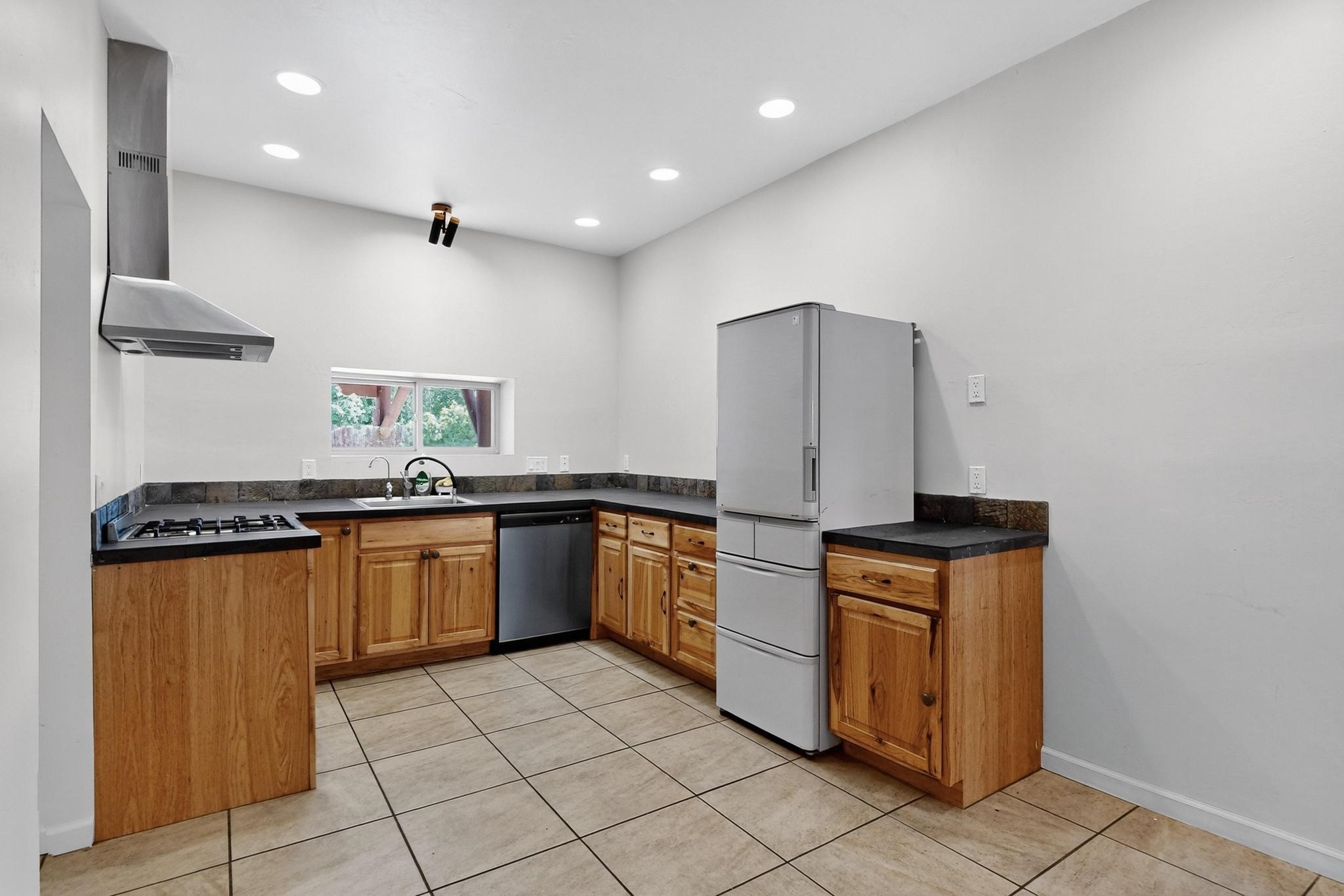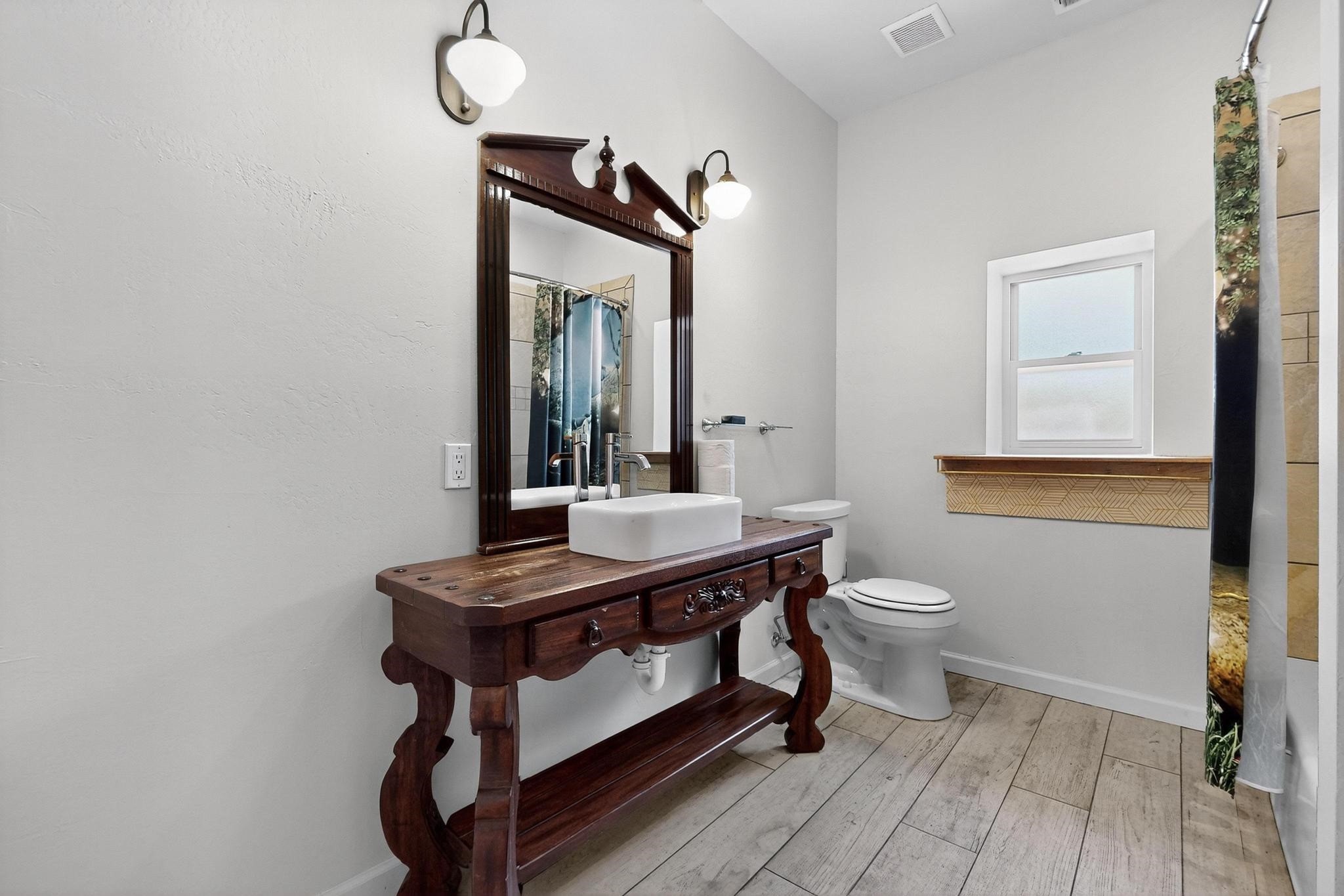 Located in a hip Midtown neighborhood on an ample corner lot, this charming 1594 s.f. home is in like new condition and move-in ready. Details include wood and tile floors throughout, a gas fireplace and an open floorplan with great separation of bedrooms and baths. The irrigated grounds are well established and maintained with mature trees, lilacs, rosebushes and a prolific peach tree. Enjoy living outside in the spacious covered portal and entirely fenced backyard. This wonderful and very livable home, also includes a 253 s.f. Studio, not heated and could be retrofit to a closed in garage or open carport. The furnishings depicted are virtually staged.