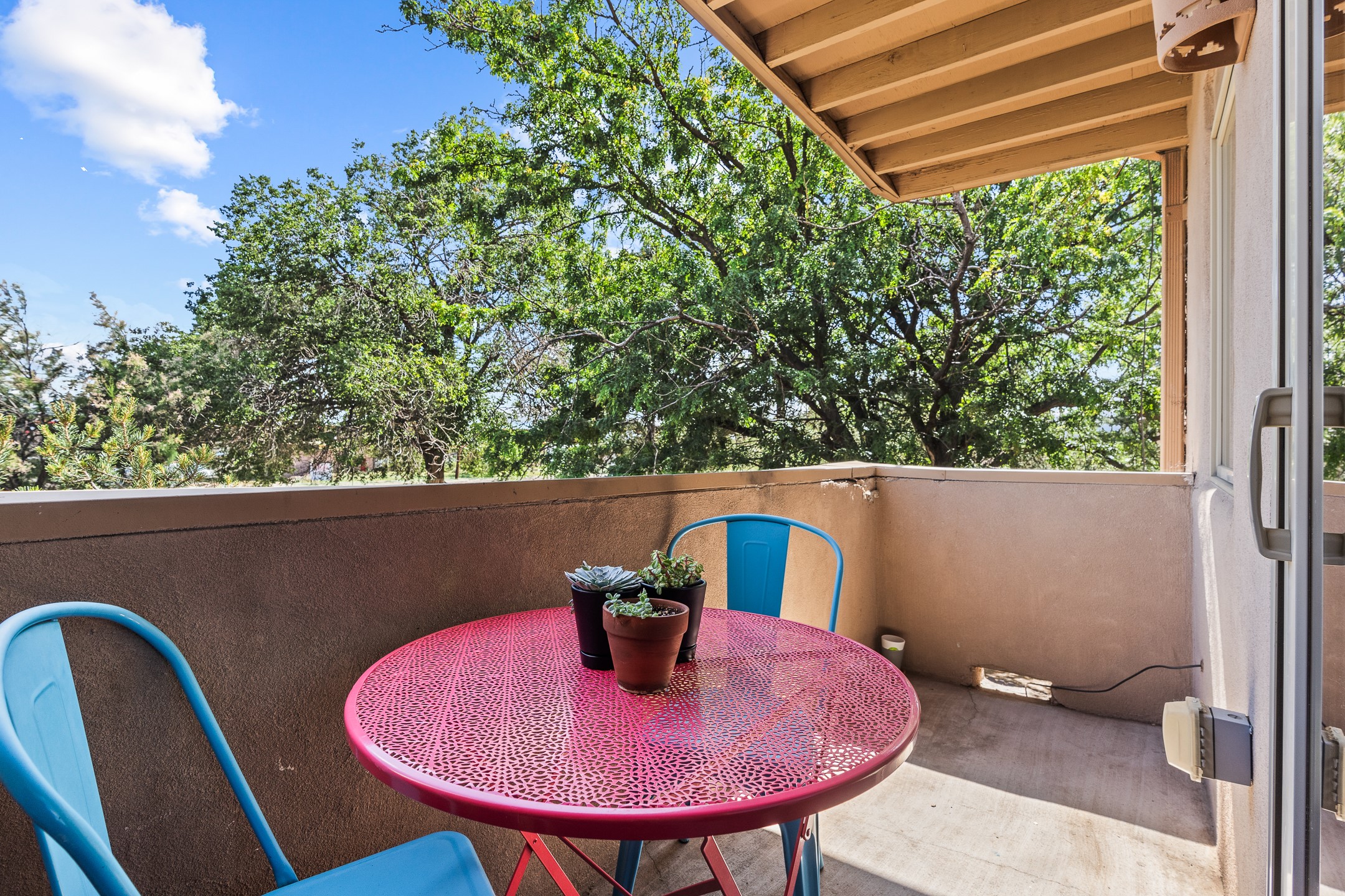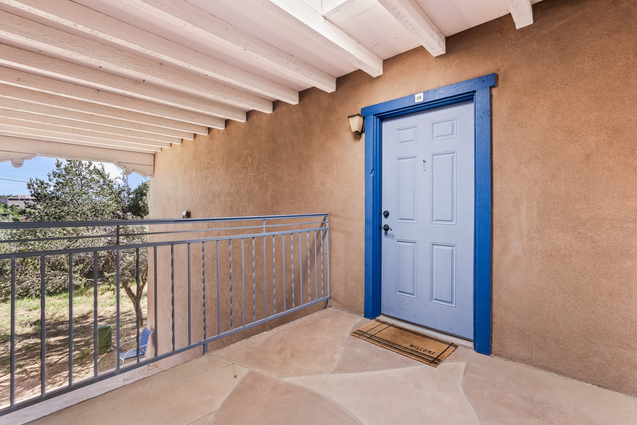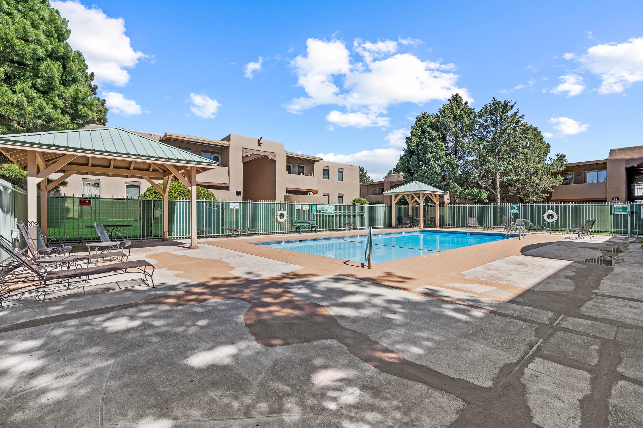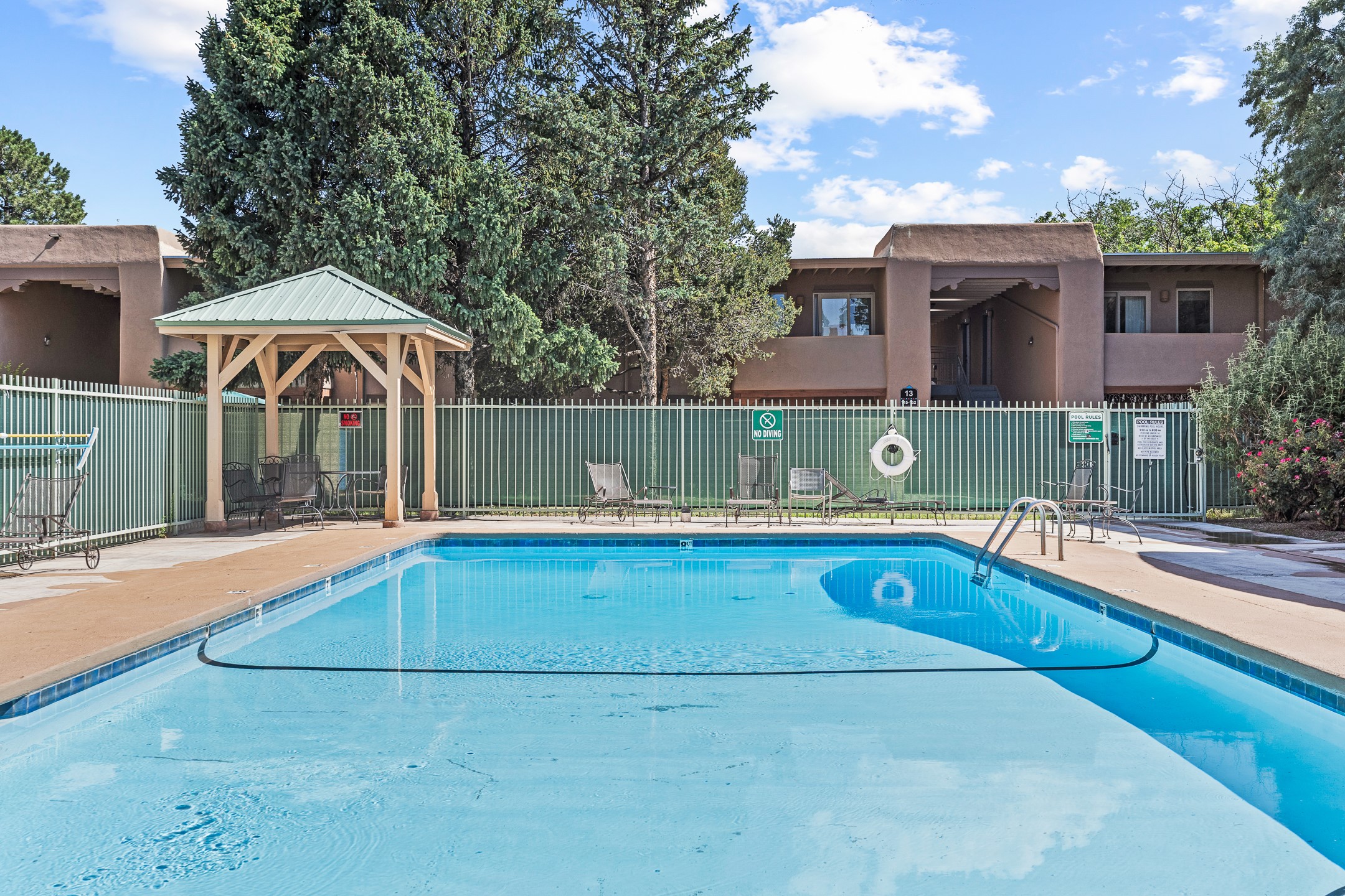Take advantage of this very affordable upgraded second floor condo at San Mateo! Right across from the heated pool, you'll be relaxing in style. This unit has upgraded engineered hardwoods, new carpet in the bedrooms, granite countertops, a new whirlpool dishwasher, new light fixtures, ceiling fans and a new hot water heater! Other bonuses to this light and bright corner unit include a dedicated parking space, a workout room, security gate, a pet friendly community, and a complex that is designated non-smoking throughout. Not to mention, the HOA dues have you covered on stucco, roof, and maintenance of gate, pool, and community garden spaces. Just a quick 5-minute drive to downtown, and with access to groceries, restaurants and tons of in-town amenities at your fingertips, this is the perfect spot to move in, put your furniture down, and enjoy all the wonderful things Santa Fe living has to offer!! Schedule a showing before this one gets away!
