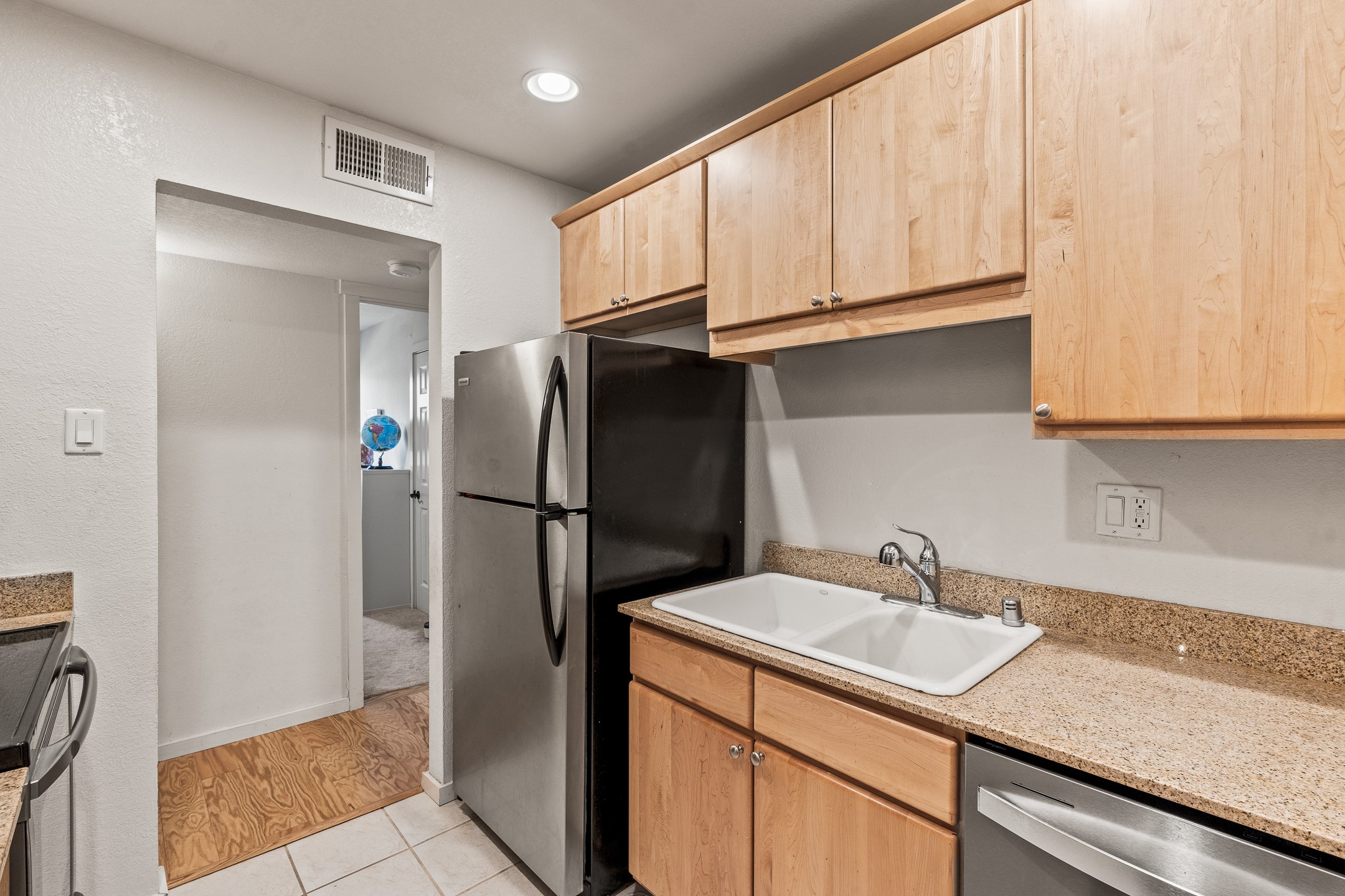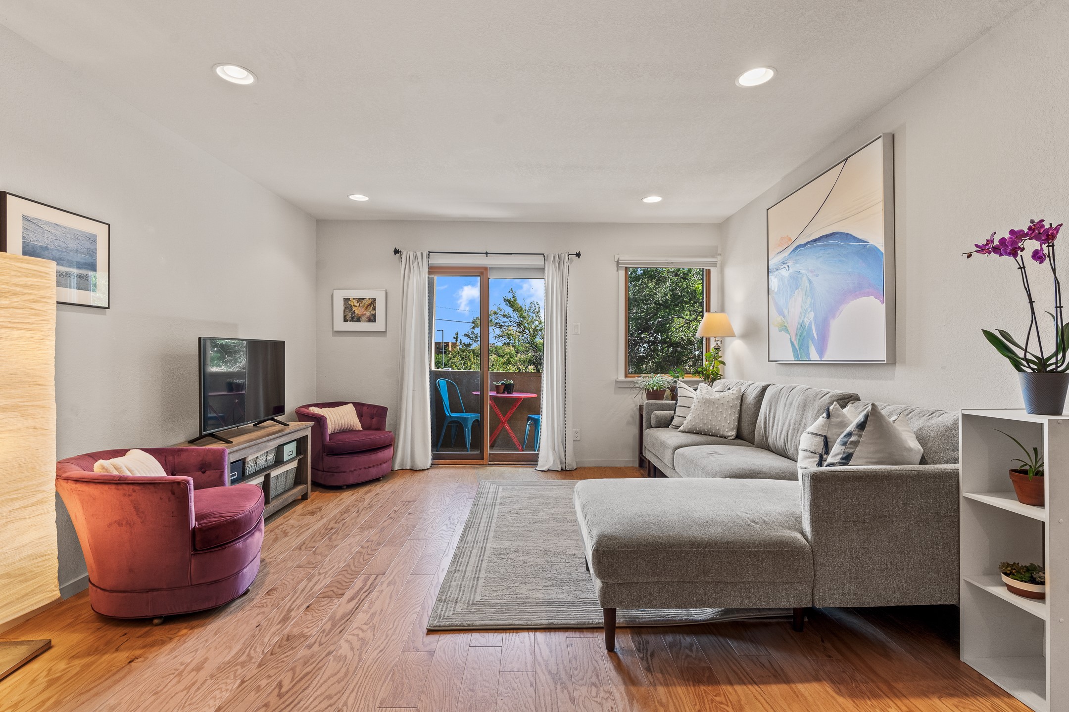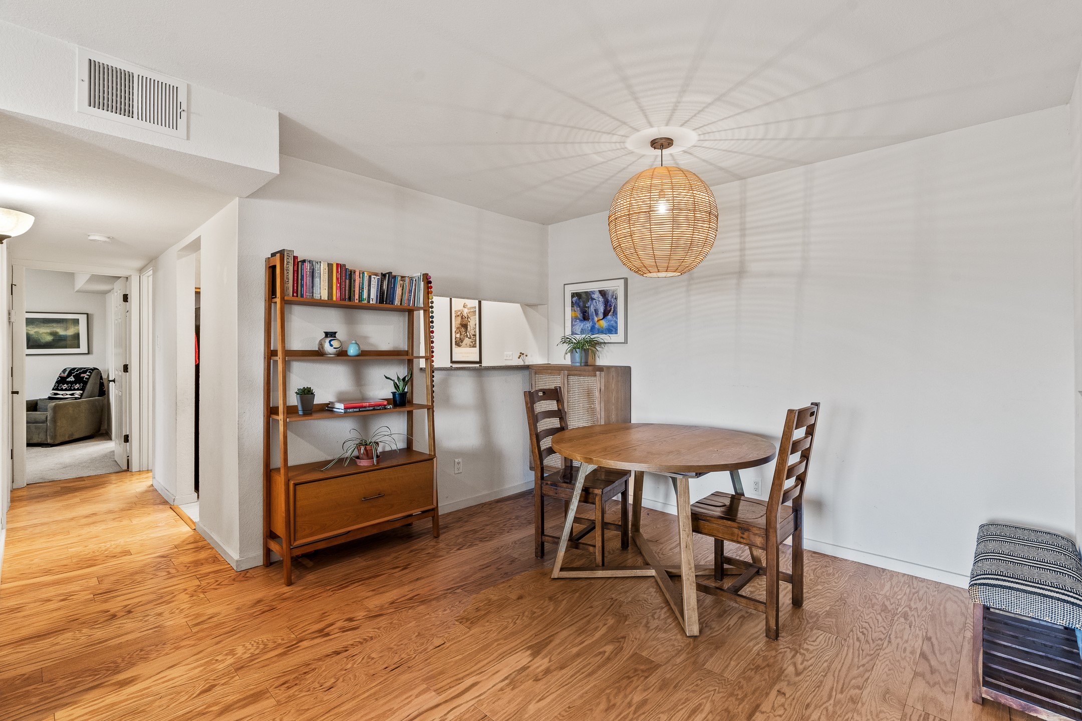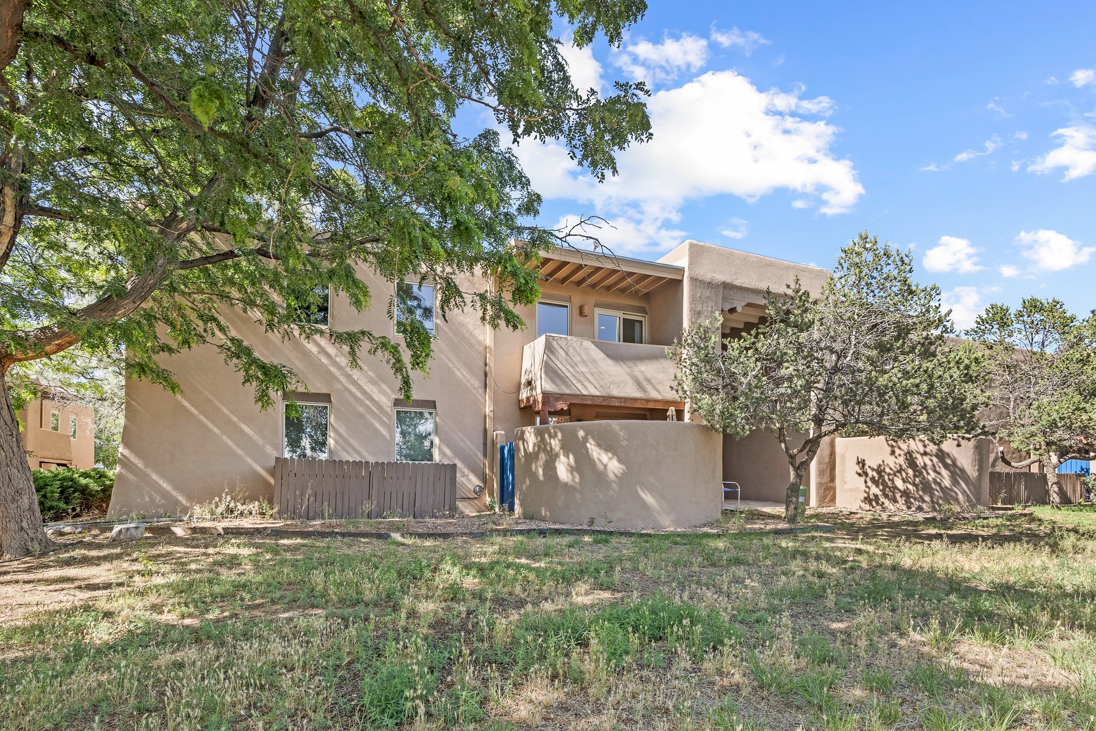 Take advantage of this very affordable upgraded second floor condo at San Mateo! Right across from the heated pool, you'll be relaxing in style. This unit has upgraded engineered hardwoods, new carpet in the bedrooms, granite countertops, a new whirlpool dishwasher, new light fixtures, ceiling fans and a new hot water heater! Other bonuses to this light and bright corner unit include a dedicated parking space, a workout room, security gate, a pet friendly community, and a complex that is designated non-smoking throughout. Not to mention, the HOA dues have you covered on stucco, roof, and maintenance of gate, pool, and community garden spaces. Just a quick 5-minute drive to downtown, and with access to groceries, restaurants and tons of in-town amenities at your fingertips, this is the perfect spot to move in, put your furniture down, and enjoy all the wonderful things Santa Fe living has to offer!! Schedule a showing before this one gets away!