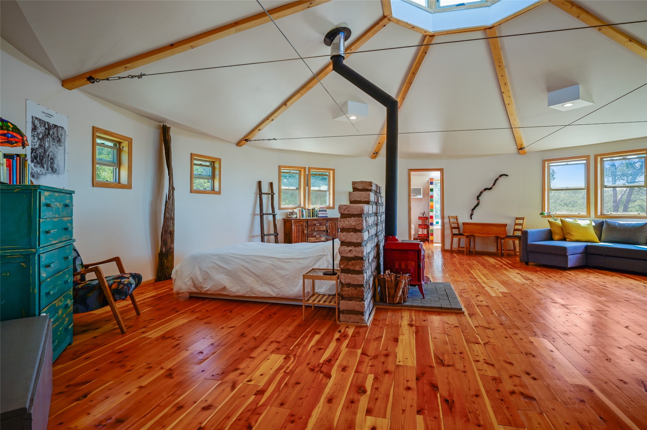 Tucked away in the Santa Fe National Forest is where a peaceful off grid retreat awaits you! 40 acres of mature pinon, ponderosa & juniper surrounded by thousands of acres of untouched forest creates the ultimate setting to relax, recreate & get away from it all. Enjoy your newer off grid home, featuring a 2200 gallon water collection system with multi step filtration system. Solar power with brand new lithium batteries, composting toilet and a Vermont castings wood stove completes your comfortable get away in the woods! Locally milled wood floors, fully insulated framed walls and roof, low maintenance metal siding. Views of Rowe mesa. Peace & quiet is calling! Will you answer? Owner financing considered.