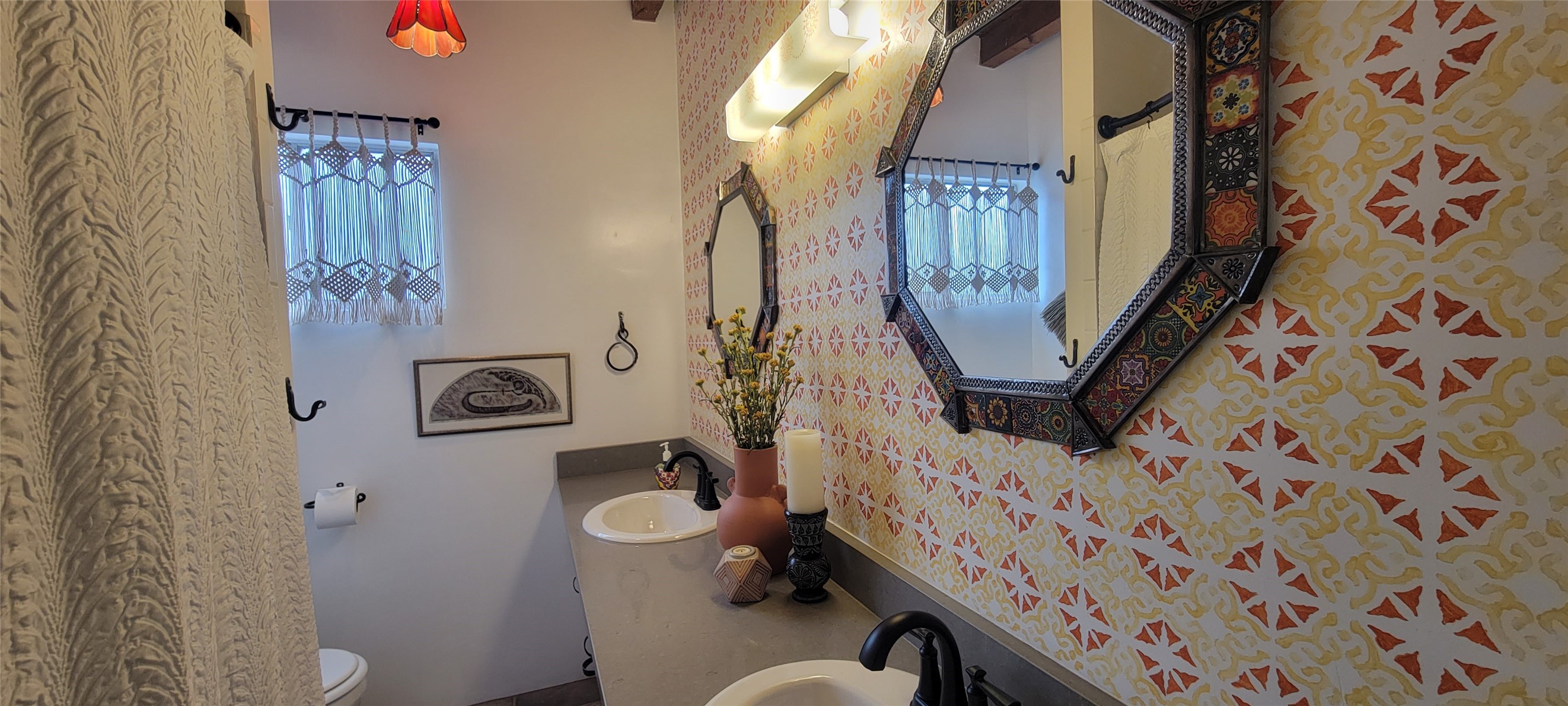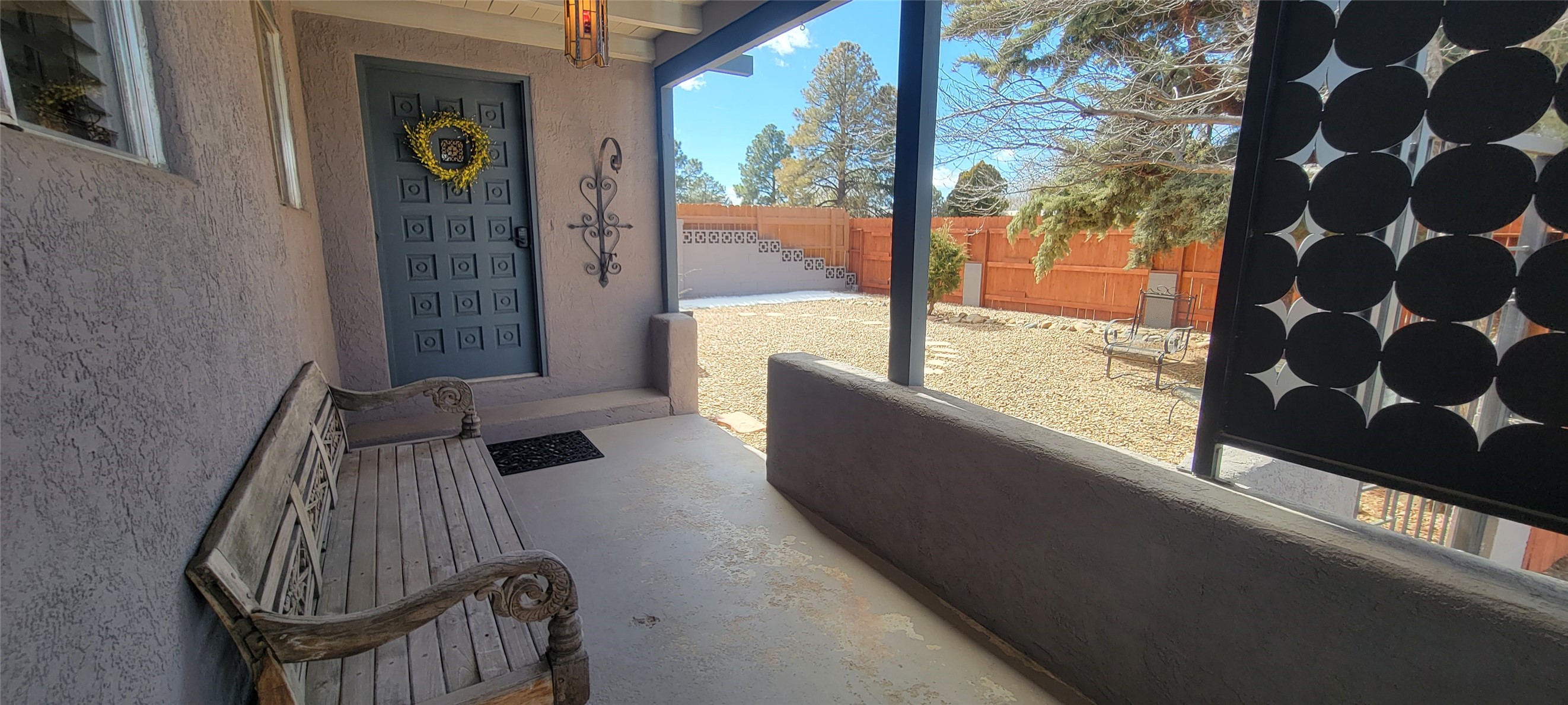 Santa Fe Style adorable classic pueblo! Bright airy sunny living room, original working kiva fireplace, amazing viga ceilings throughout provide warm, rustic ambiance. Well insulated quiet bedrooms w/ fabulous skylights. Owner's suite has private bath, tiled shower, walk-in closet. Gorgeous kitchen, stunning tile, granite counters, gas range, newer dishwasher & disposal. DR flows from Kitchen to LR for carefree entertaining. Charming hand-painted stenciled walls, unique lighting, Central HVAC system, new sinks/fixtures in both BAs. Murphy bed in 3rd BR, ideal as a multi-use flex room. Front & back courtyards ready for great conversation, morning coffee, or relax in the hot tub. Lots of extras: Wrought iron custom gates/fencing for front courtyard. Awesome covered back porch, attached carport for two cars, driveway space for two more cars, large insulated storage building has built in shelving & electricity. Hot tub, one year old cover. Beautiful apricot trees front & back, mature landscaping. Built in 1968 by Santa Fe builder Allen Stamm, Stamm's classic pueblo structures are synonymous with solid, well-built homes and are considered icons of the Santa Fe style in the Santa Fe market. Say you own a Stamm home, and you receive nods of approval from the locals. Lovingly named Casa de Flora, close to Frenchy's Park, only 2.8 miles from the Plaza, convenient to everything old & new in Santa Fe with a perfect location. Discover Santa Fe's culture, rich heritage & deep history through architecture, art, festivals, cuisine, performing arts and museums. The City Different feels like no other city in the World. A fascinating blend of Native American and Spanish cultures, all of it could be right on your doorstep! 2005 UNESCO Creative City Designation, 3rd largest art market in US, 250+ art galleries, 18 performing arts venues. Santa Fe is surrounded by 1.6 million acres of public land perfect for hiking, biking, camping, sightseeing. 300 sunny days a year! Owner GA Licensee.