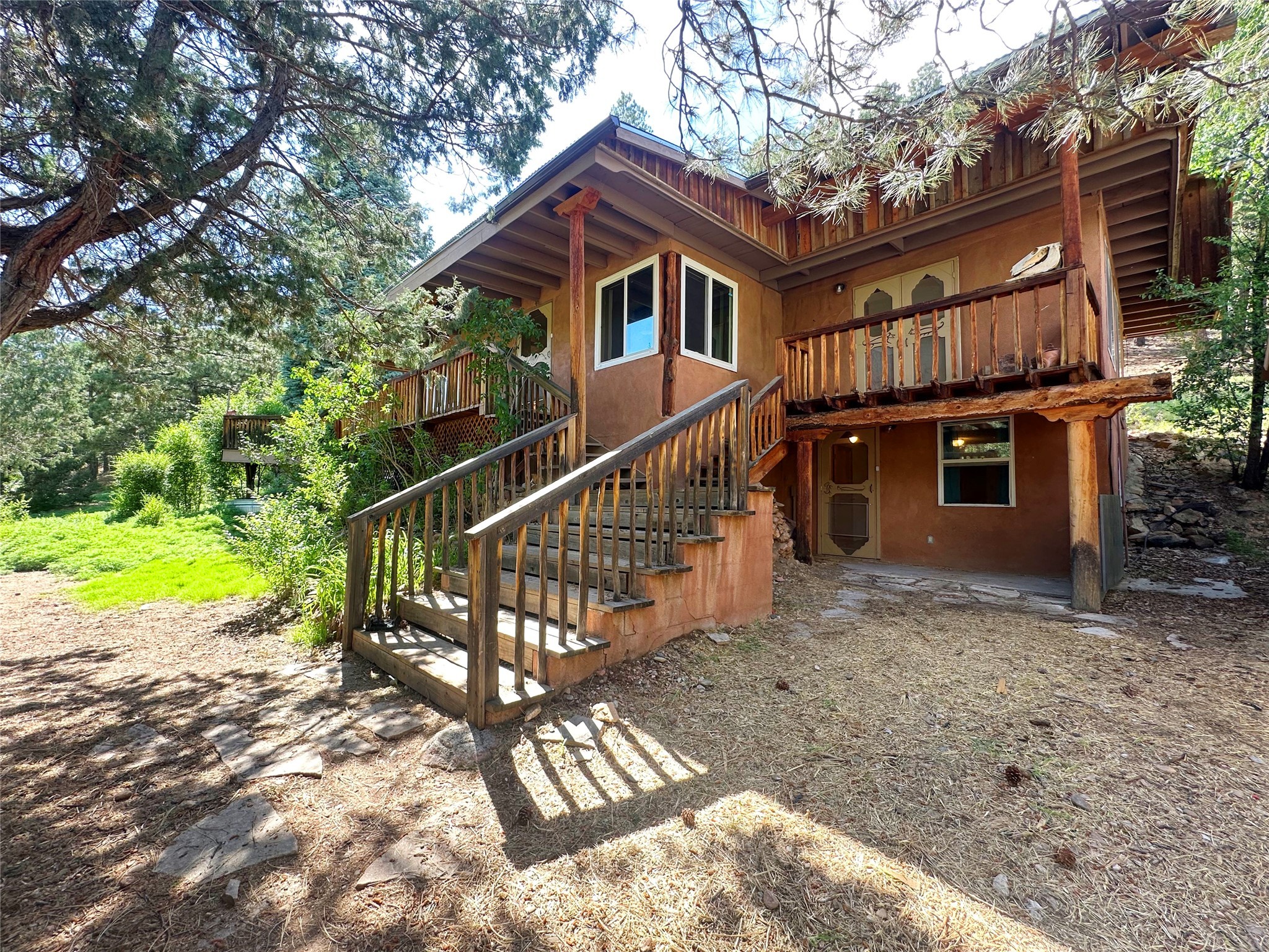 Located on 1.3 wooded acres in Montezuma, just minutes from Las Vegas, this unique mountain retreat offers views of the dramatic Montezuma rock face and easy access to nearby hot springs. The 2-bedroom, 2-bathroom home is filled with charm and character, featuring hardwood floors, three fireplaces--including one in the guest room--and abundant natural light throughout. The primary suite includes an ensuite bathroom and private balcony. A sun-filled solarium offers the perfect space for year-round gardening or a peaceful reading nook. The spacious, finished basement includes a rock-faced fireplace, full bathroom (additional), laundry room, and two bonus rooms--not included in the bedroom count due to ceiling height and egress--but ideal for an office, studio, or craft-room. A separate exterior entrance provides convenience of access. Property has a wraparound deck and an elevated view deck that takes full advantage of the breathtaking natural scenery. The surrounding trees offer privacy and a true sense of seclusion, while still being just minutes from the heart of Las Vegas. A detached workshop adds to the property's functionality, whether you're a hobbyist, artist, or need space for projects. -Recently appraised at 360K (April 2025)- -Assumable VA Loan at 2.875%-