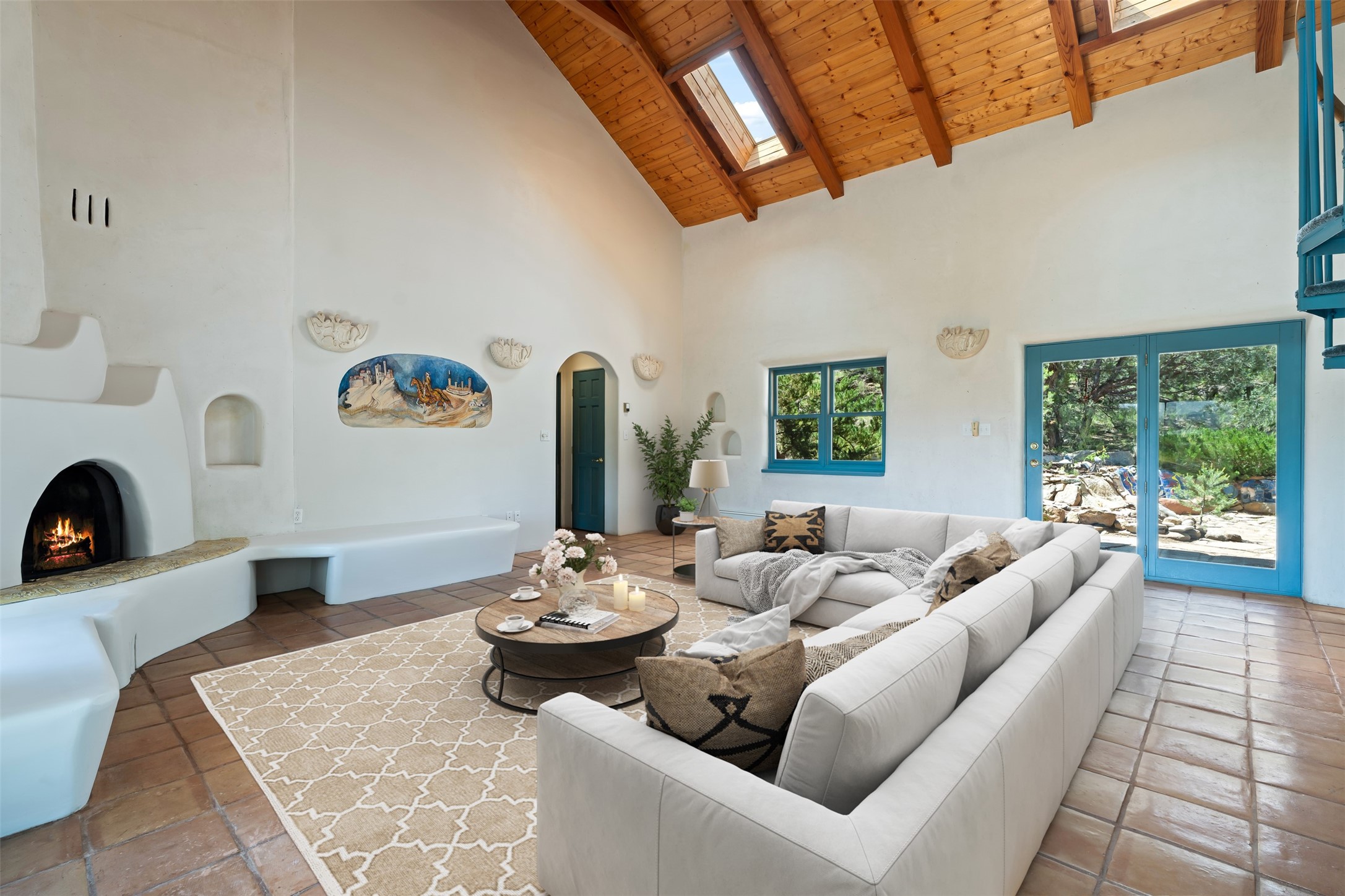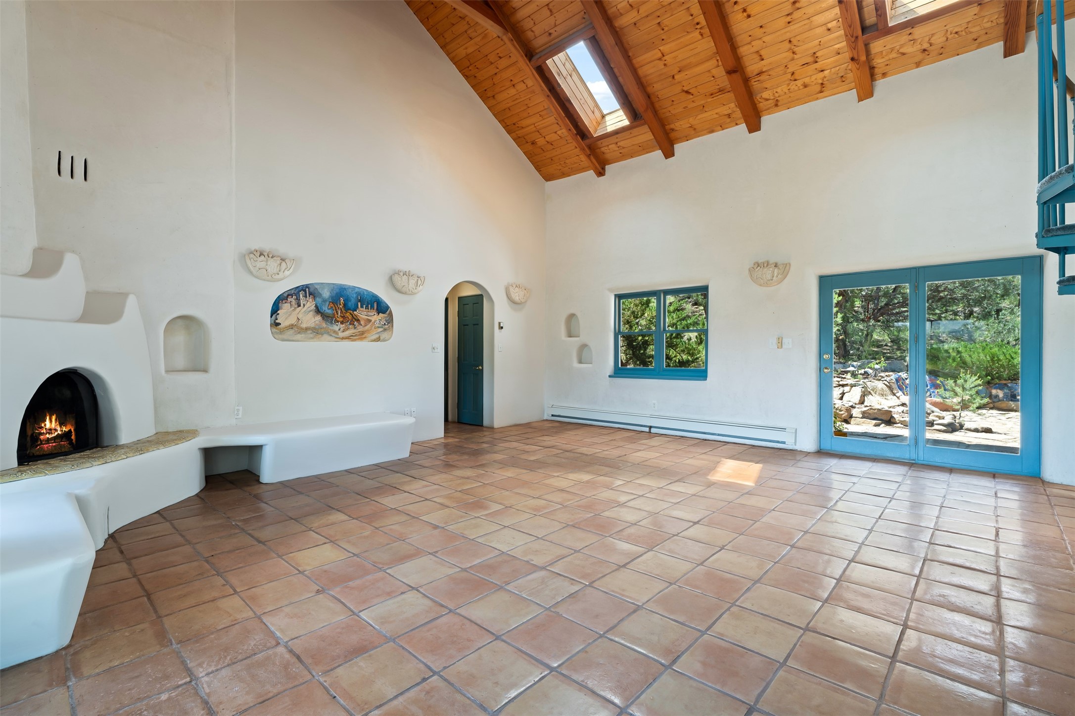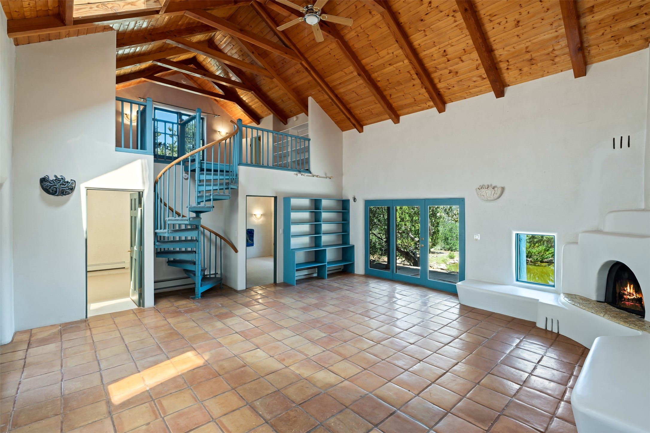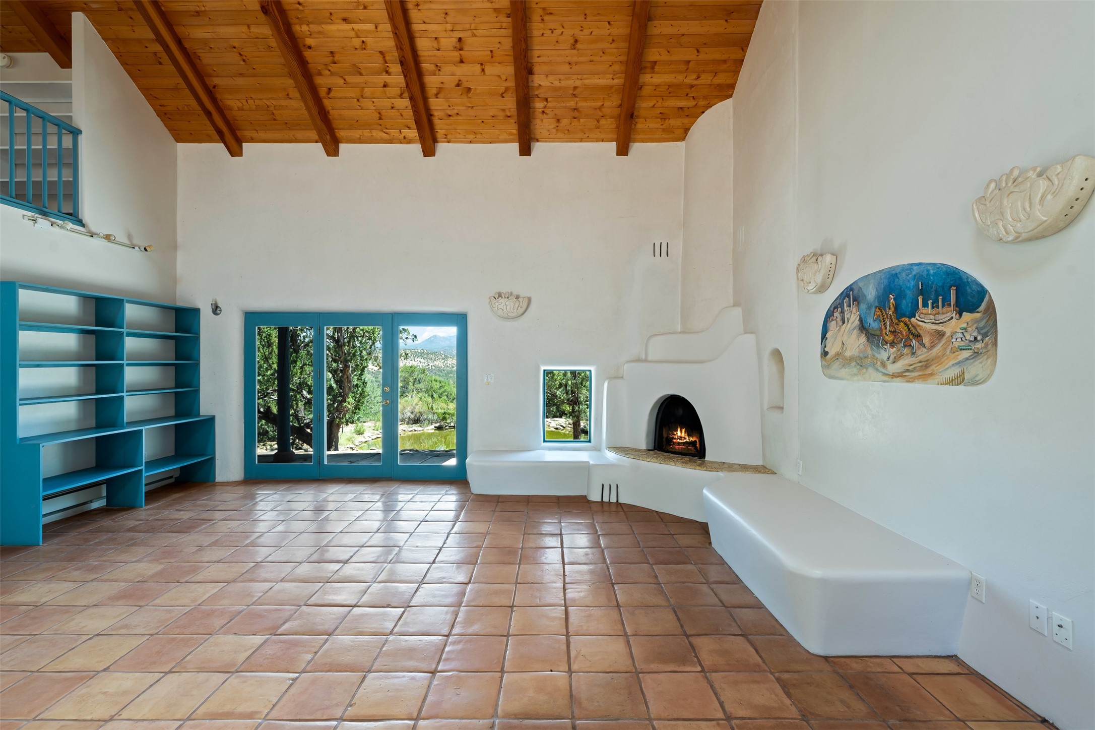 Nestled in the serene hills of Caoncito, this 3-bed, 2-bath Rastra home sits on 5.99 private wooded acres with a thriving koi pond, private well, and sweeping Sangre de Cristo views -- offering a rare value-add opportunity.Owner-built and on the market for the first time since 1998, this home blends craftsmanship and artistic detail throughout. Soaring ceilings, a striking fireplace, and expansive windows define the main living space, while a lofted study/library offers a quiet retreat. The home was intentionally designed to be divided into two living areas, with pre-installed utility connections ready to support the setup.A workroom with slop sink, two storage sheds -- including one with an electrical backup generator -- add functionality. With a new septic system recently installed and an updated well system, this property offers a strong infrastructure base to build upon.Just 10 minutes to Eldorado and 25 to downtown Santa Fe, with nearby trails and 100 mbps internet available. A peaceful retreat and a rare chance to add real value.