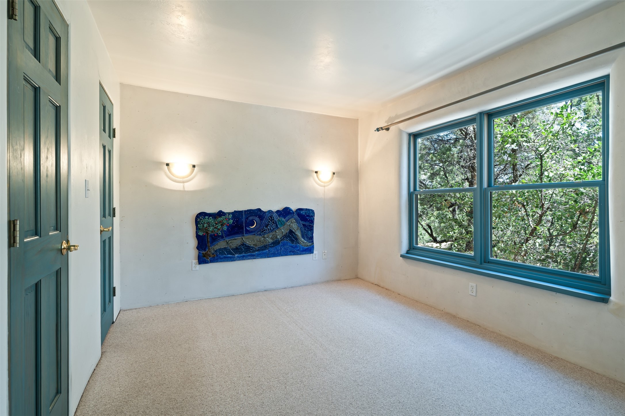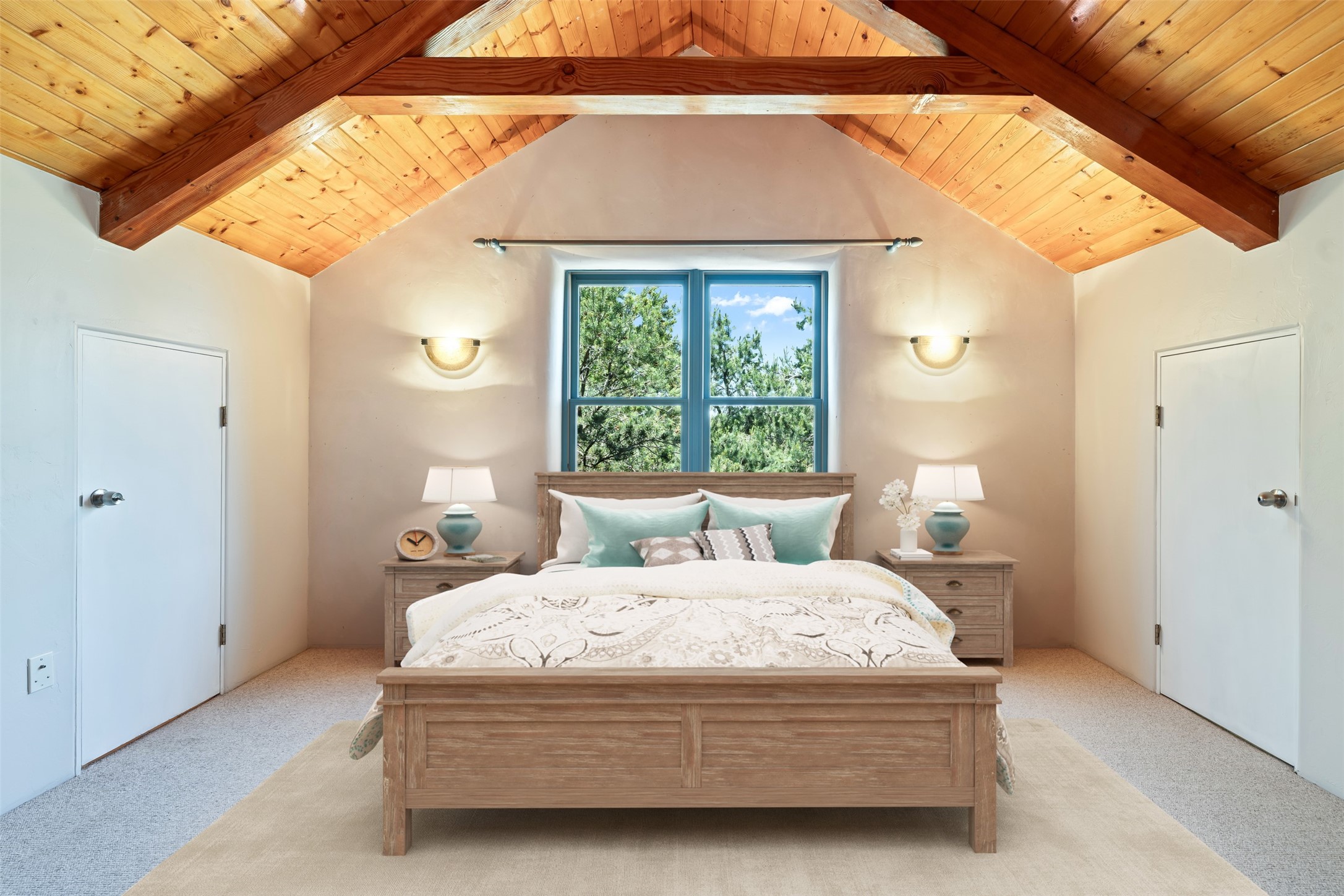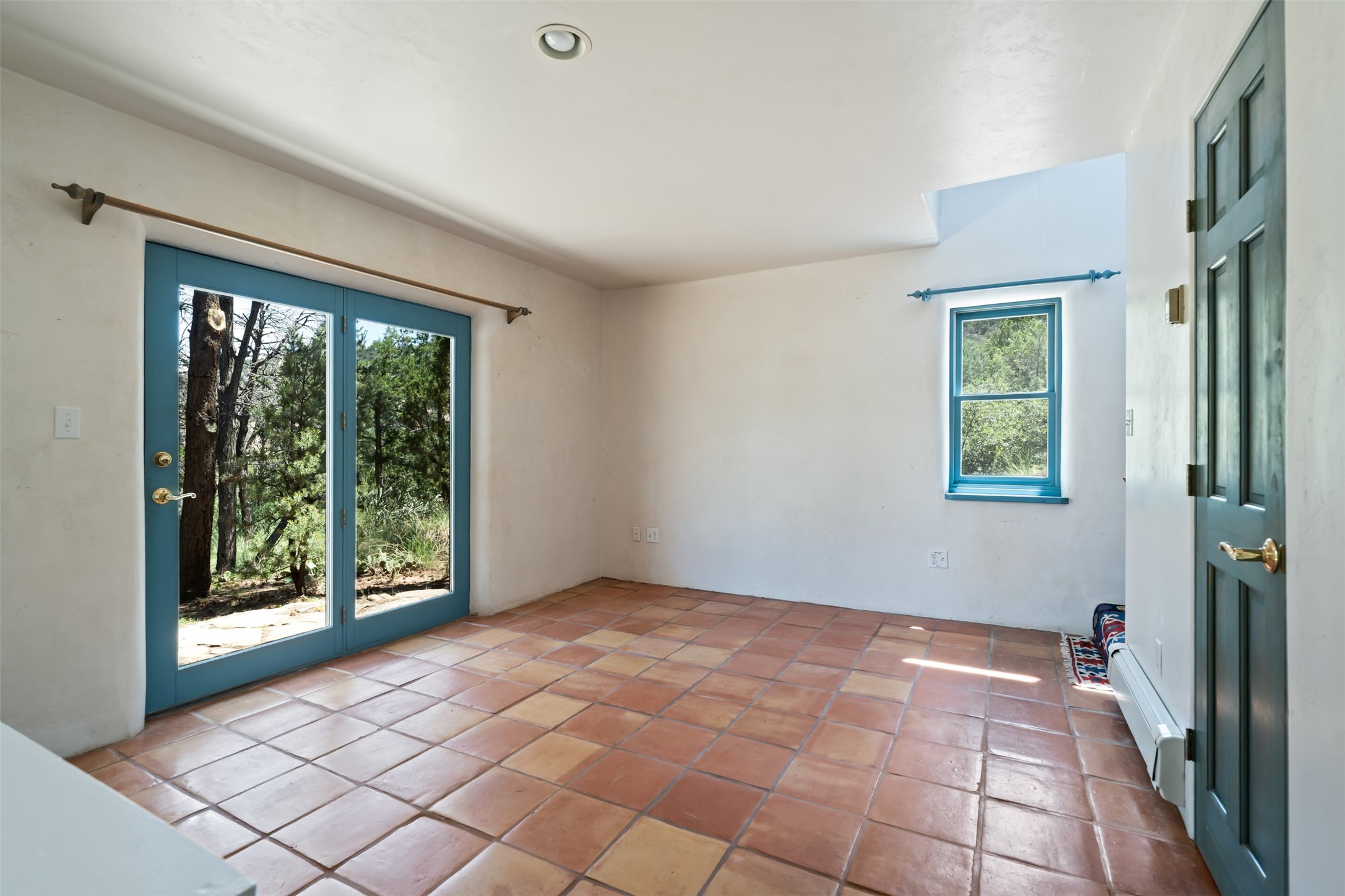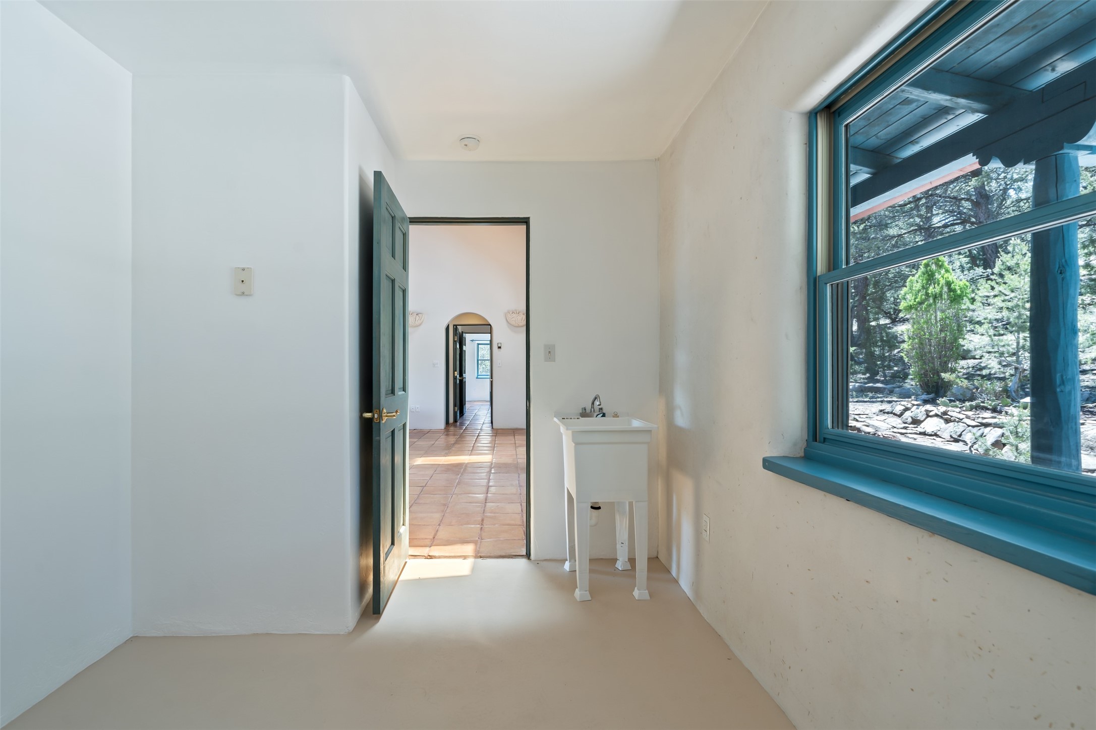 Nestled in the serene hills of Caoncito, this 3-bed, 2-bath Rastra home sits on 5.99 private wooded acres with a thriving koi pond, private well, and sweeping Sangre de Cristo views -- offering a rare value-add opportunity.Owner-built and on the market for the first time since 1998, this home blends craftsmanship and artistic detail throughout. Soaring ceilings, a striking fireplace, and expansive windows define the main living space, while a lofted study/library offers a quiet retreat. The home was intentionally designed to be divided into two living areas, with pre-installed utility connections ready to support the setup.A workroom with slop sink, two storage sheds -- including one with an electrical backup generator -- add functionality. With a new septic system recently installed and an updated well system, this property offers a strong infrastructure base to build upon.Just 10 minutes to Eldorado and 25 to downtown Santa Fe, with nearby trails and 100 mbps internet available. A peaceful retreat and a rare chance to add real value.