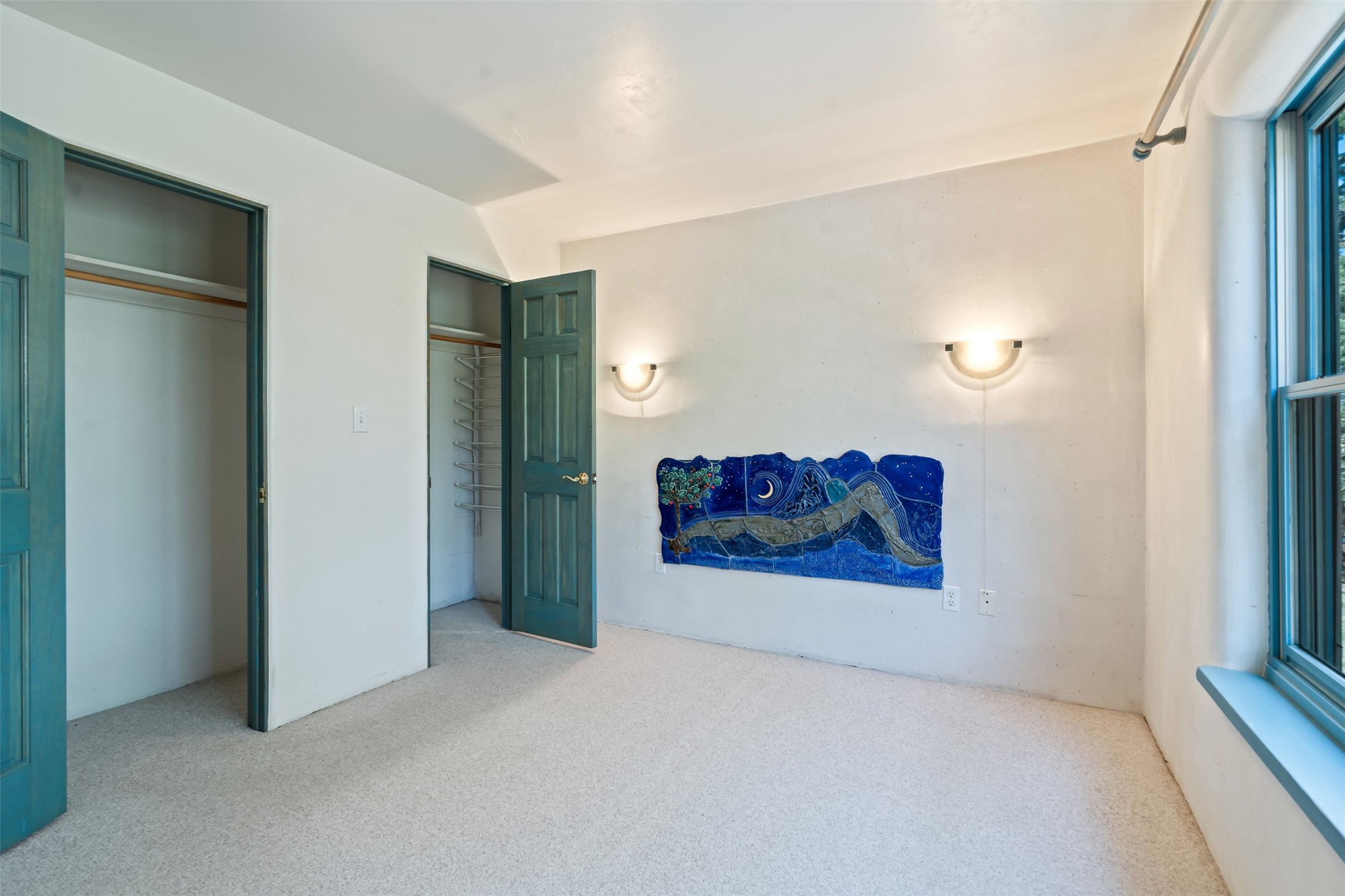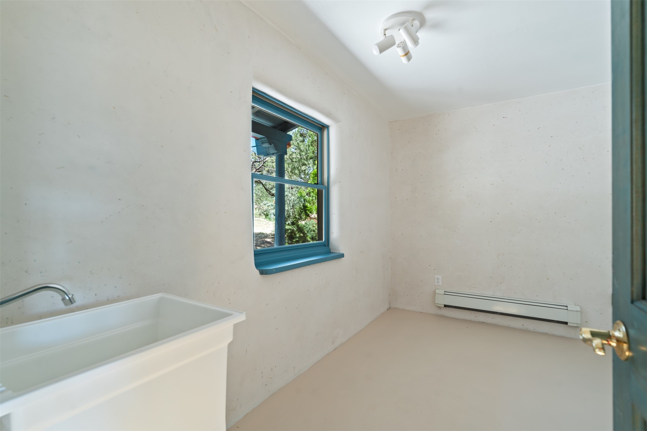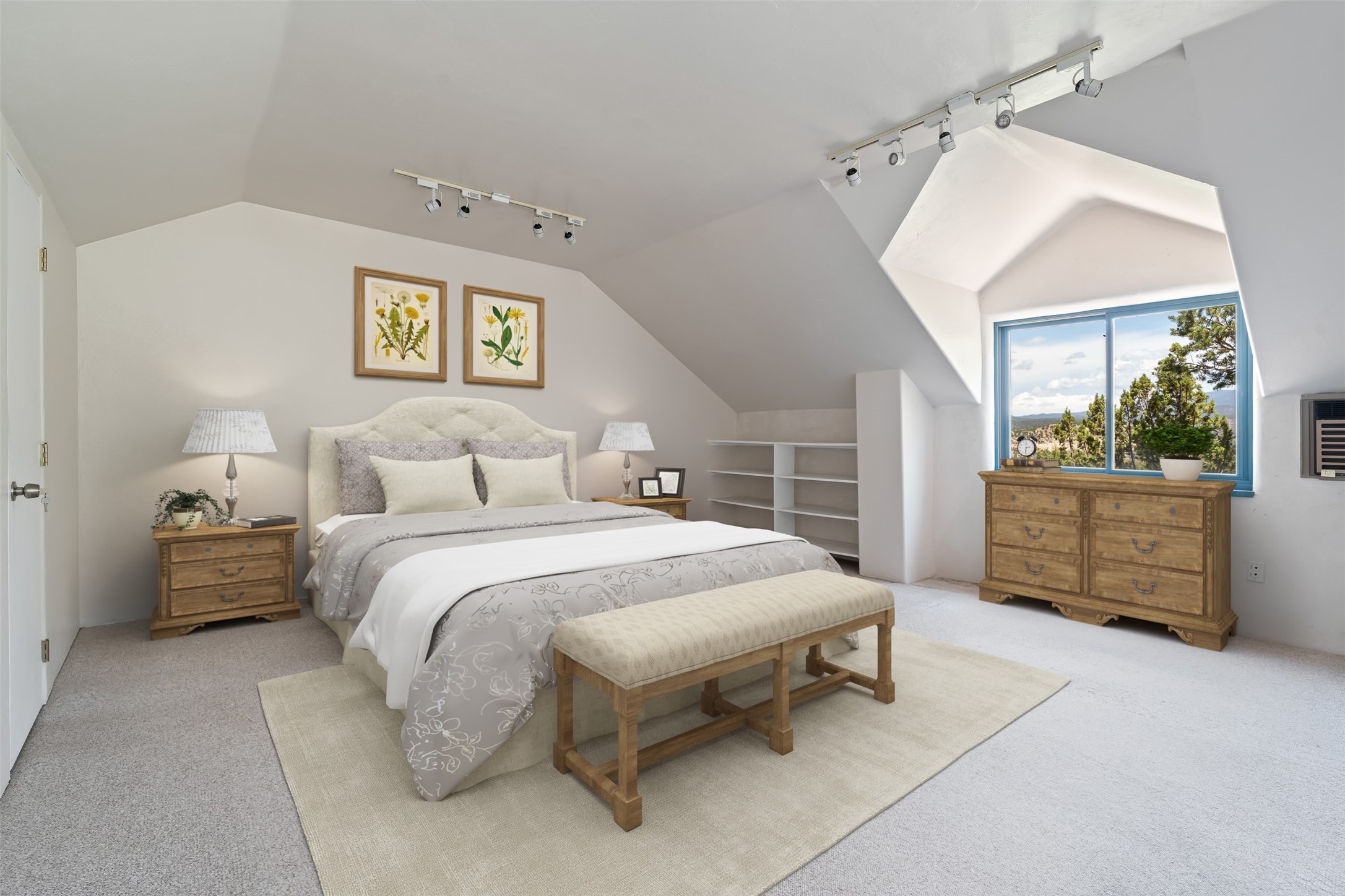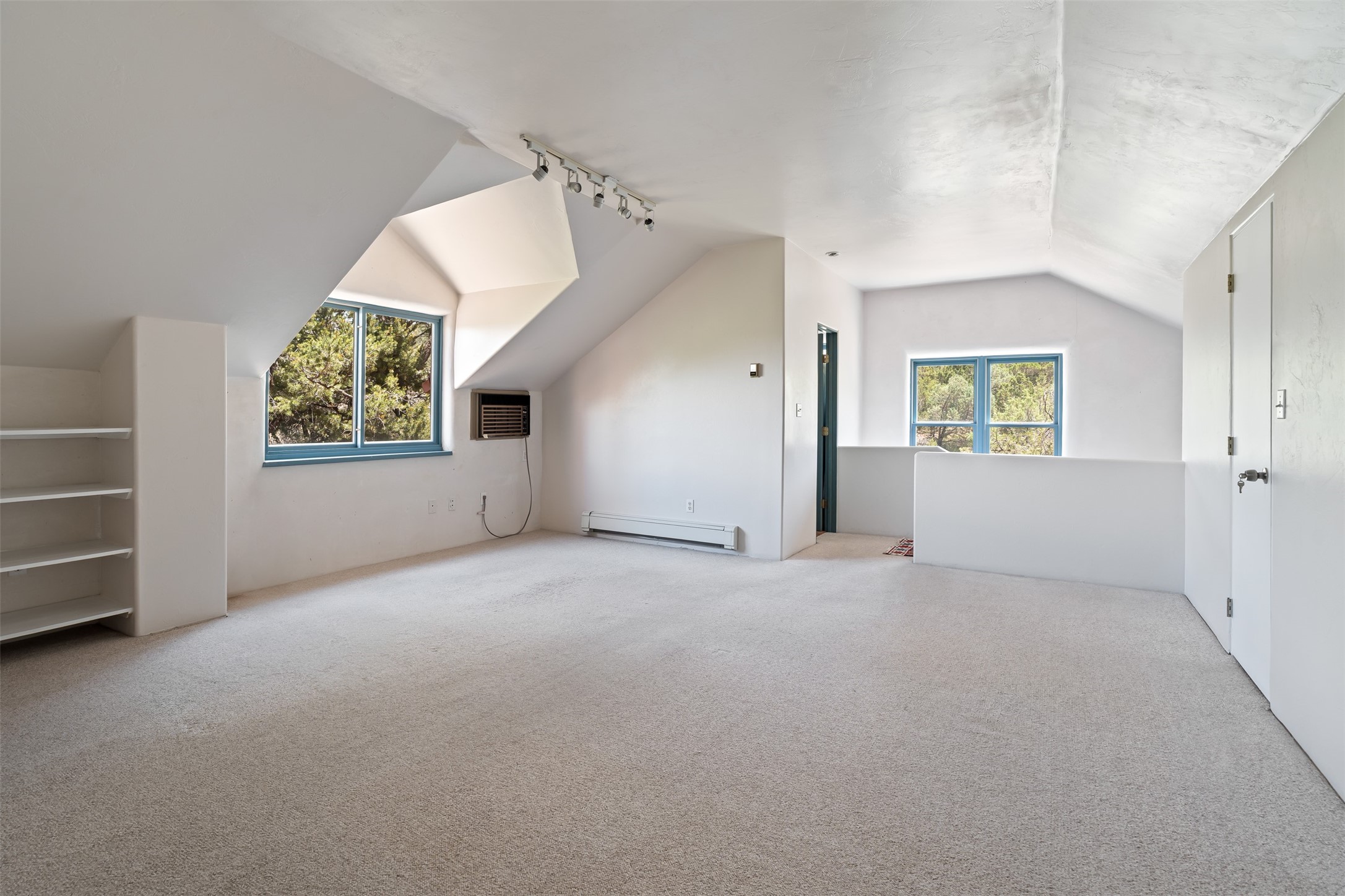 Nestled in the serene hills of Caoncito, this 3-bed, 2-bath Rastra home sits on 5.99 private wooded acres with a thriving koi pond, private well, and sweeping Sangre de Cristo views -- offering a rare value-add opportunity.Owner-built and on the market for the first time since 1998, this home blends craftsmanship and artistic detail throughout. Soaring ceilings, a striking fireplace, and expansive windows define the main living space, while a lofted study/library offers a quiet retreat. The home was intentionally designed to be divided into two living areas, with pre-installed utility connections ready to support the setup.A workroom with slop sink, two storage sheds -- including one with an electrical backup generator -- add functionality. With a new septic system recently installed and an updated well system, this property offers a strong infrastructure base to build upon.Just 10 minutes to Eldorado and 25 to downtown Santa Fe, with nearby trails and 100 mbps internet available. A peaceful retreat and a rare chance to add real value.