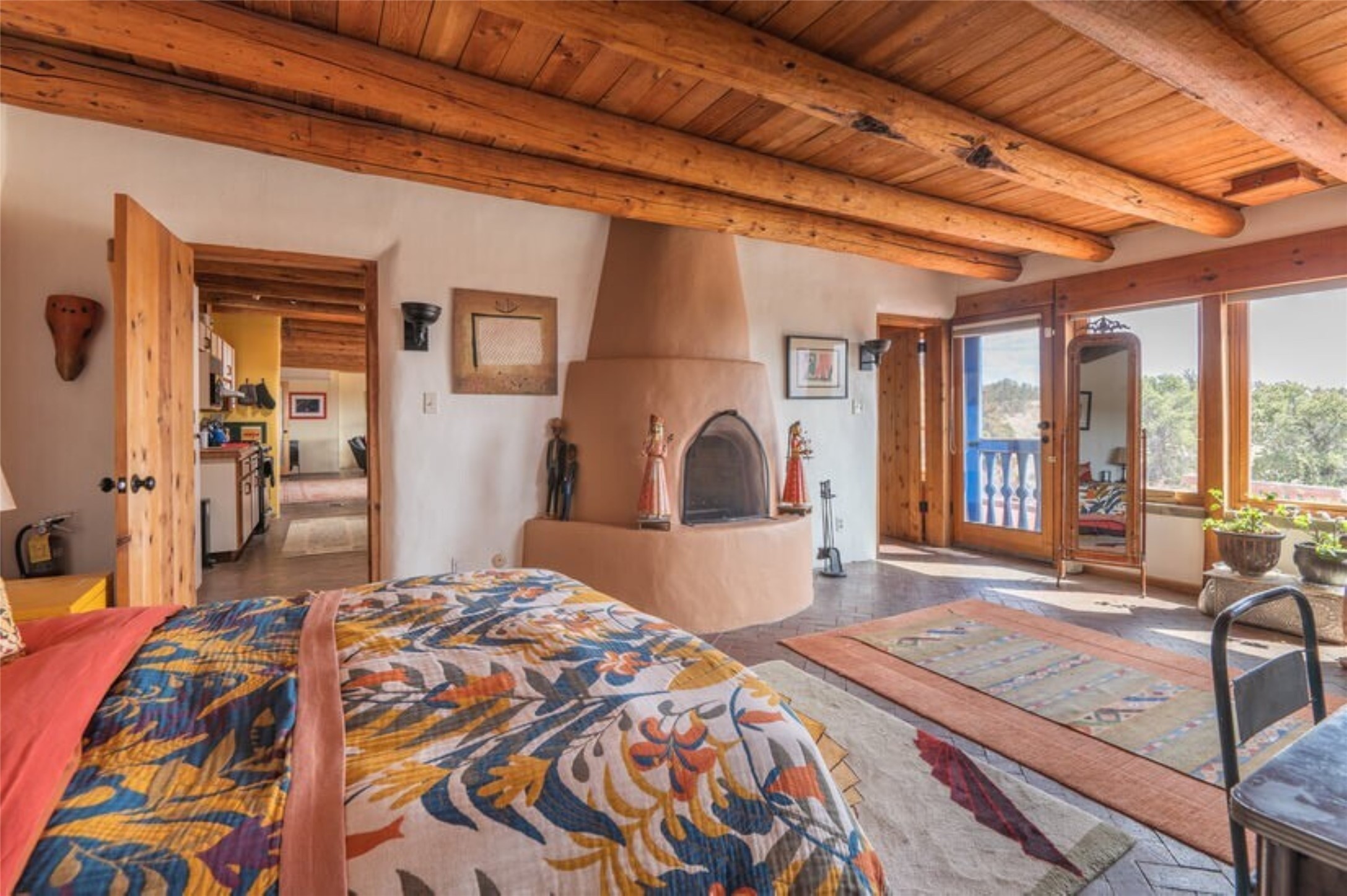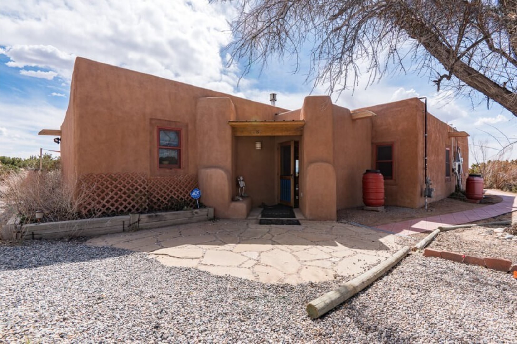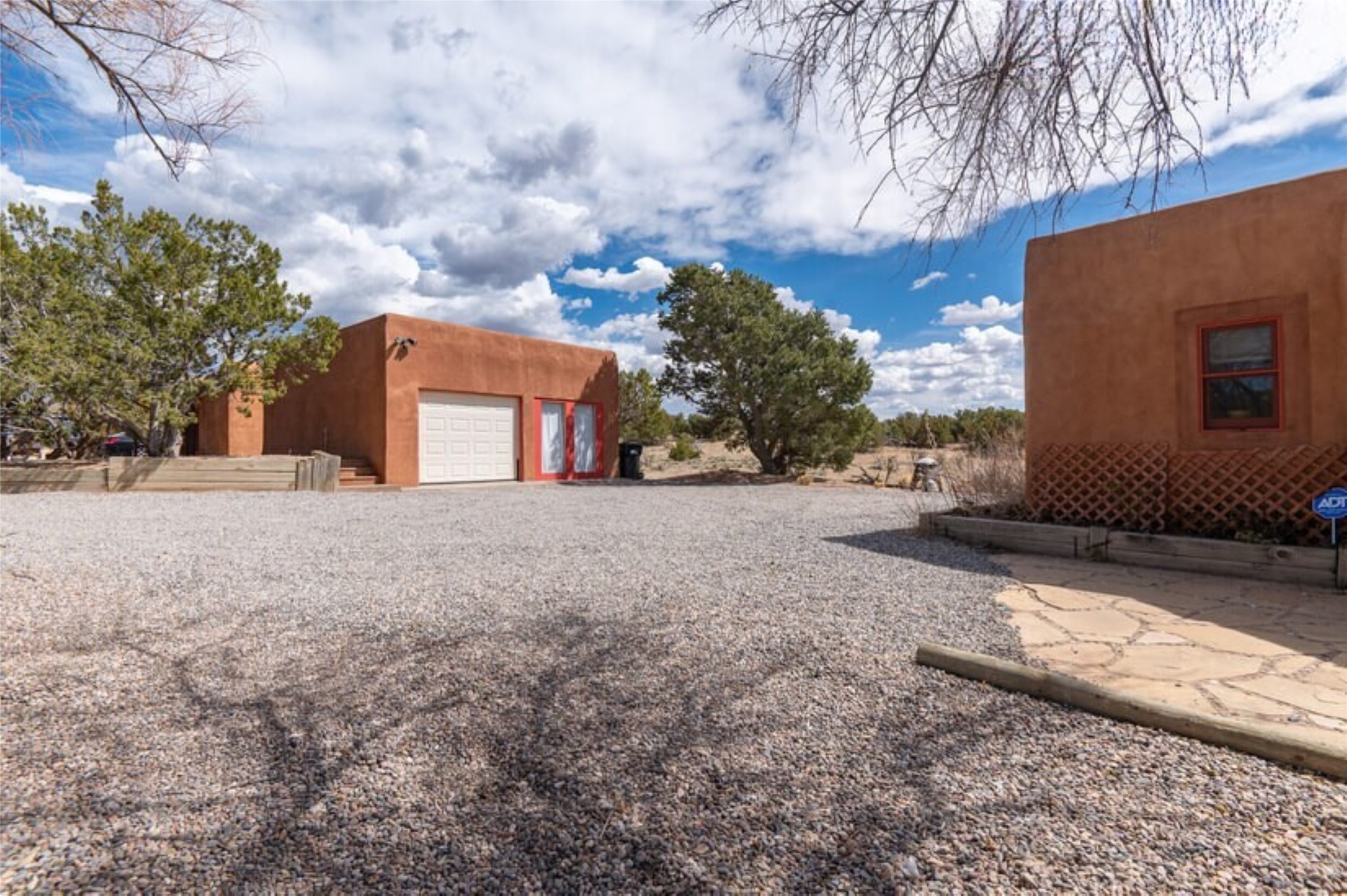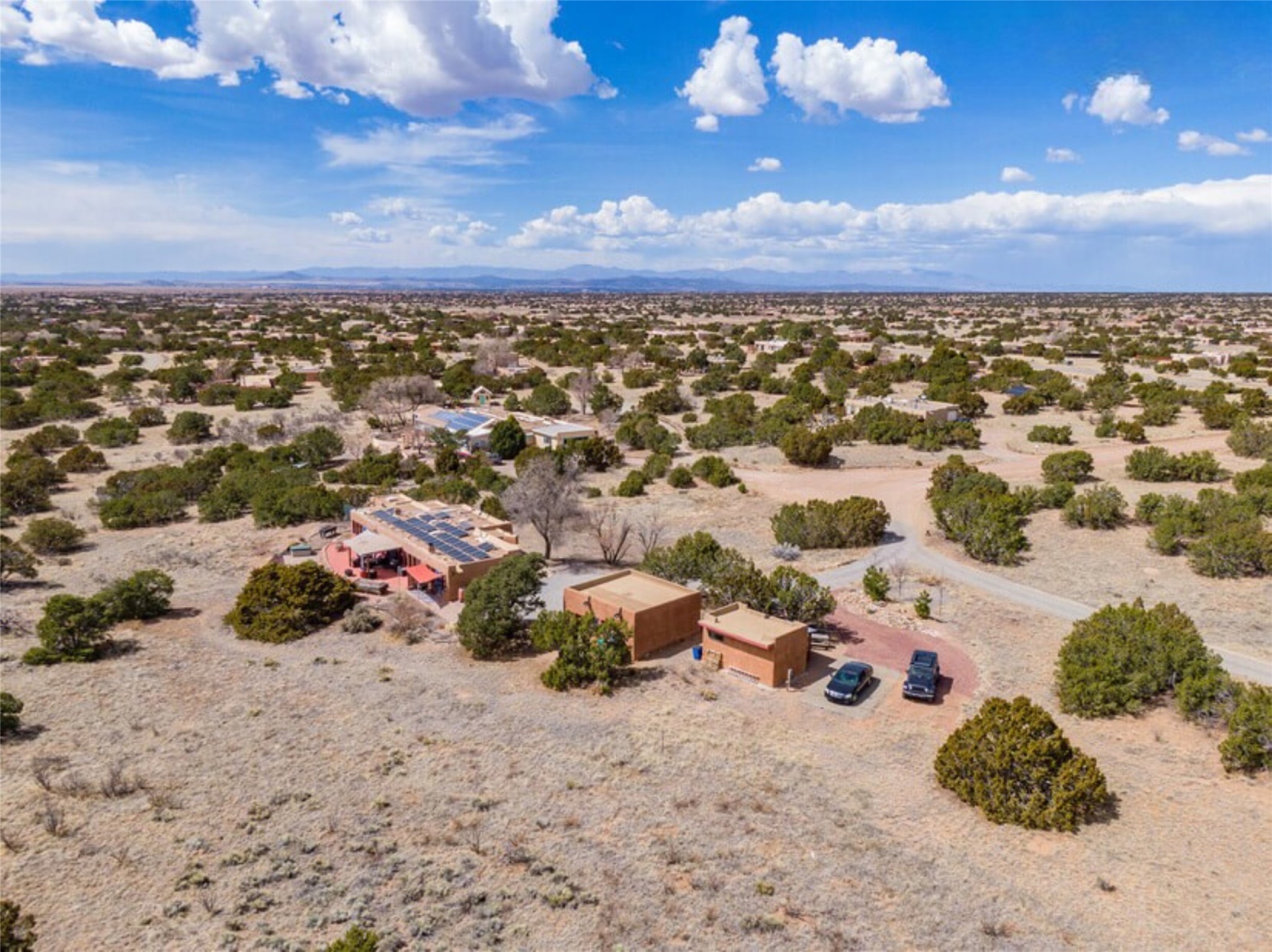 This Eldorado retreat features Santa Fe style and charm with beautiful outdoor living spaces that back directly onto a greenbelt with miles of trails, perfect for hiking and doggies. The home offers a passive solar design with an open split floor plan. The main living area, featuring a shepherd's fireplace, flows seamlessly into the kitchen and dining areas, and extends to a private portal with sweeping mountain views, perfect for entertaining. The primary suite includes its own kiva fireplace, large walk in closet and ensuite bath. For chilly evenings there's a hot tub, ideal for stargazing just off the owner's suite. Both the primary and second rear bedroom have direct access to the terrace as well. Beyond the garage, there's a separate studio perfect for a home office or creative endeavors. The sellers have made significant improvements and upgrades. Please see the attached list.