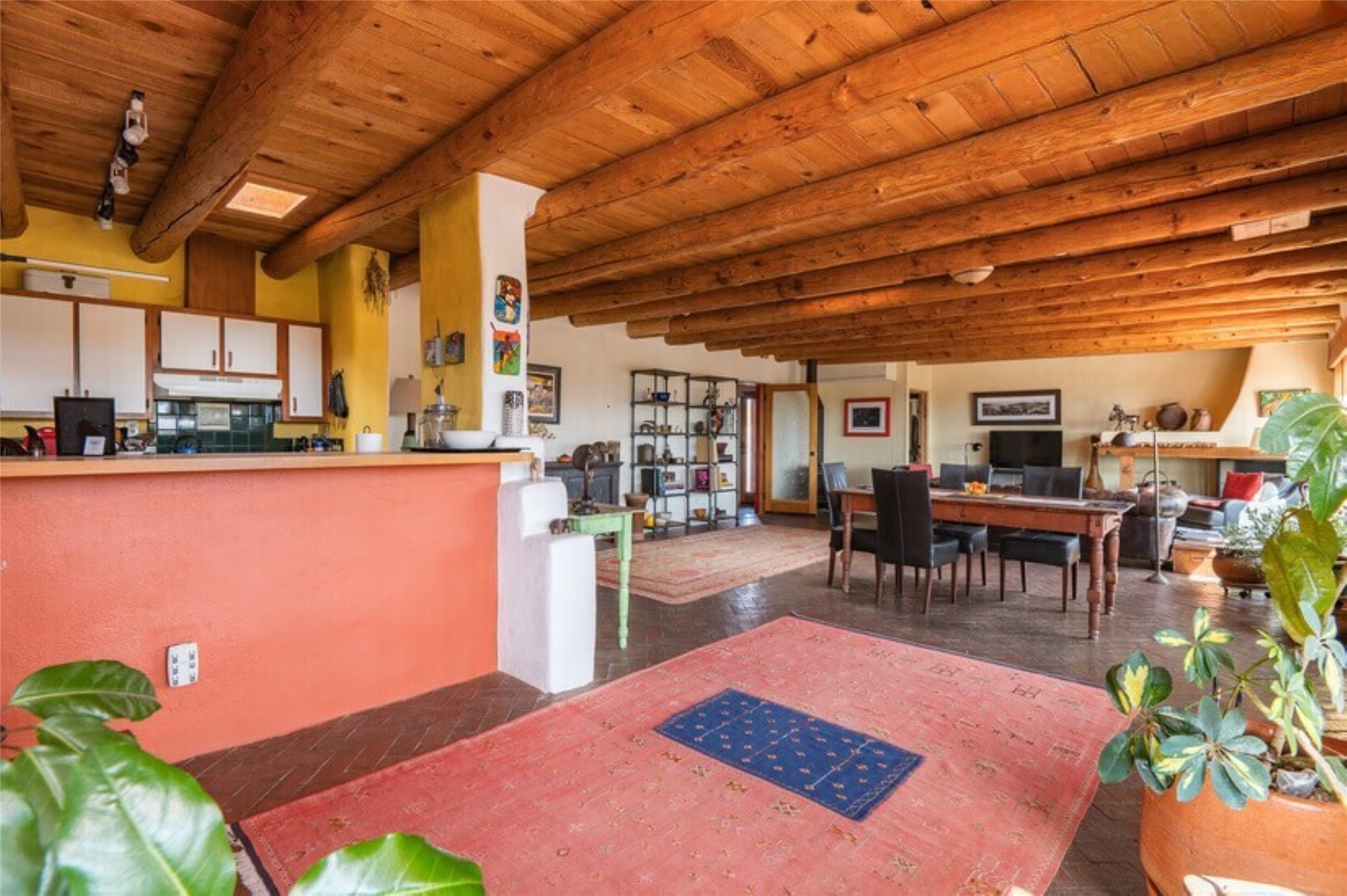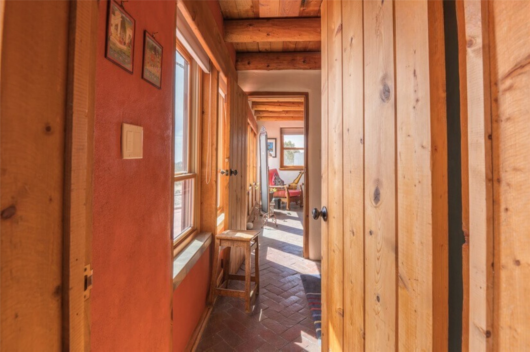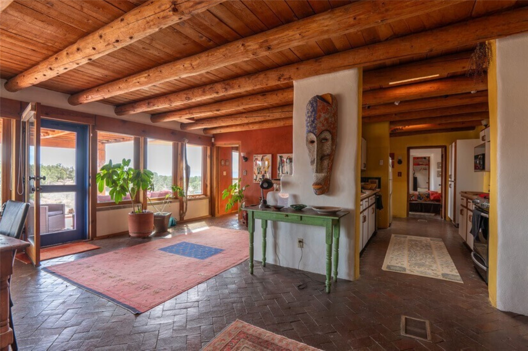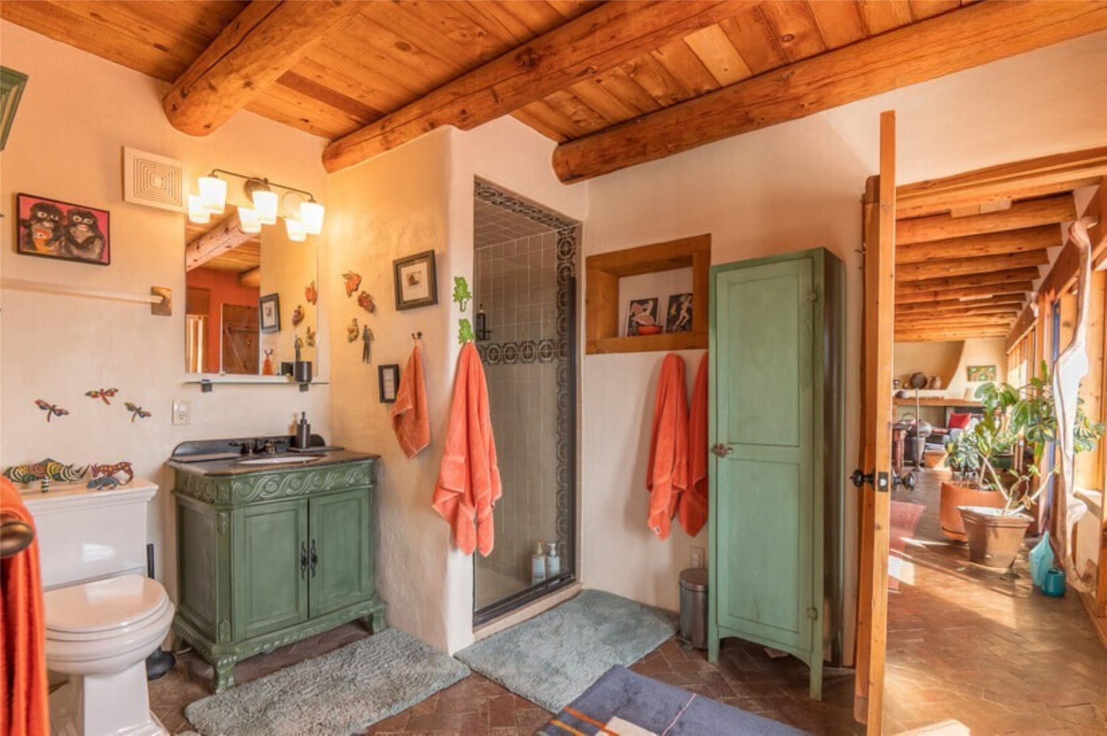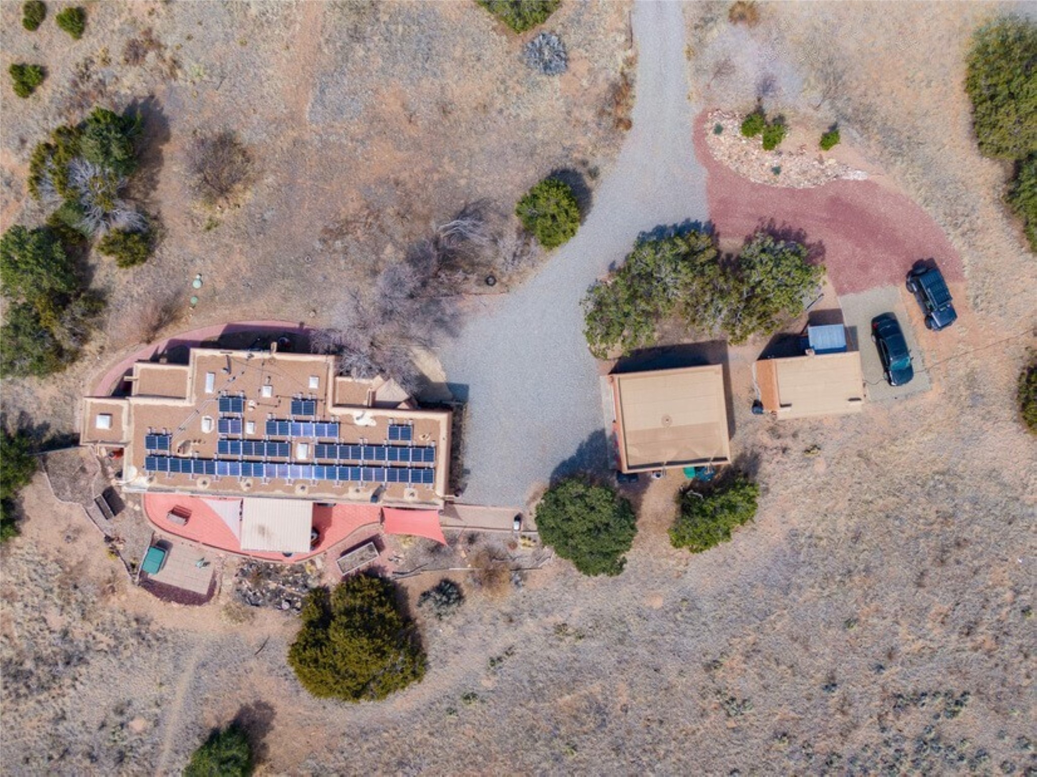 This Eldorado retreat features Santa Fe style and charm with beautiful outdoor living spaces that back directly onto a greenbelt with miles of trails, perfect for hiking and doggies. The home offers a passive solar design with an open split floor plan. The main living area, featuring a shepherd's fireplace, flows seamlessly into the kitchen and dining areas, and extends to a private portal with sweeping mountain views, perfect for entertaining. The primary suite includes its own kiva fireplace, large walk in closet and ensuite bath. For chilly evenings there's a hot tub, ideal for stargazing just off the owner's suite. Both the primary and second rear bedroom have direct access to the terrace as well. Beyond the garage, there's a separate studio perfect for a home office or creative endeavors. The sellers have made significant improvements and upgrades. Please see the attached list.