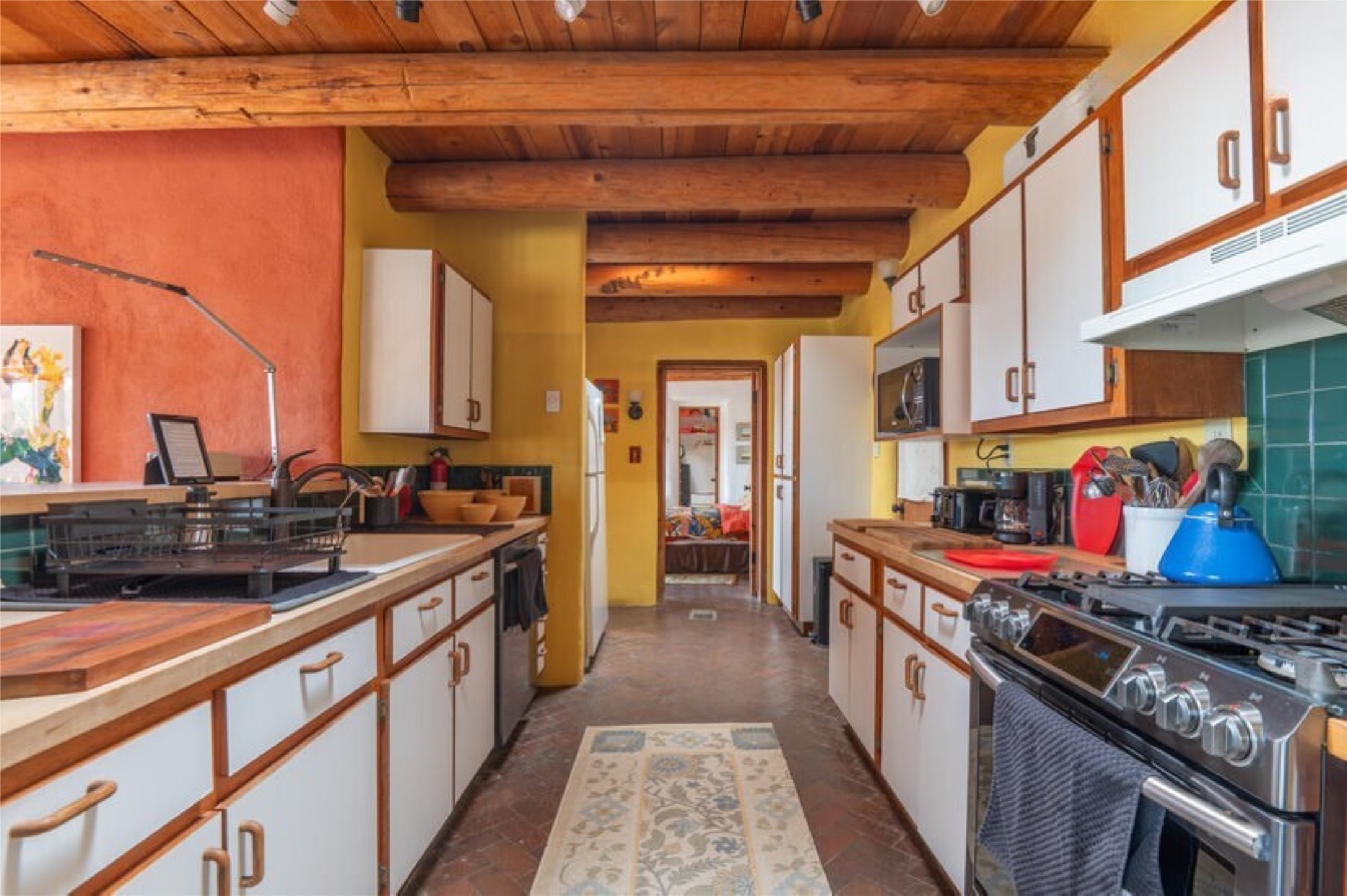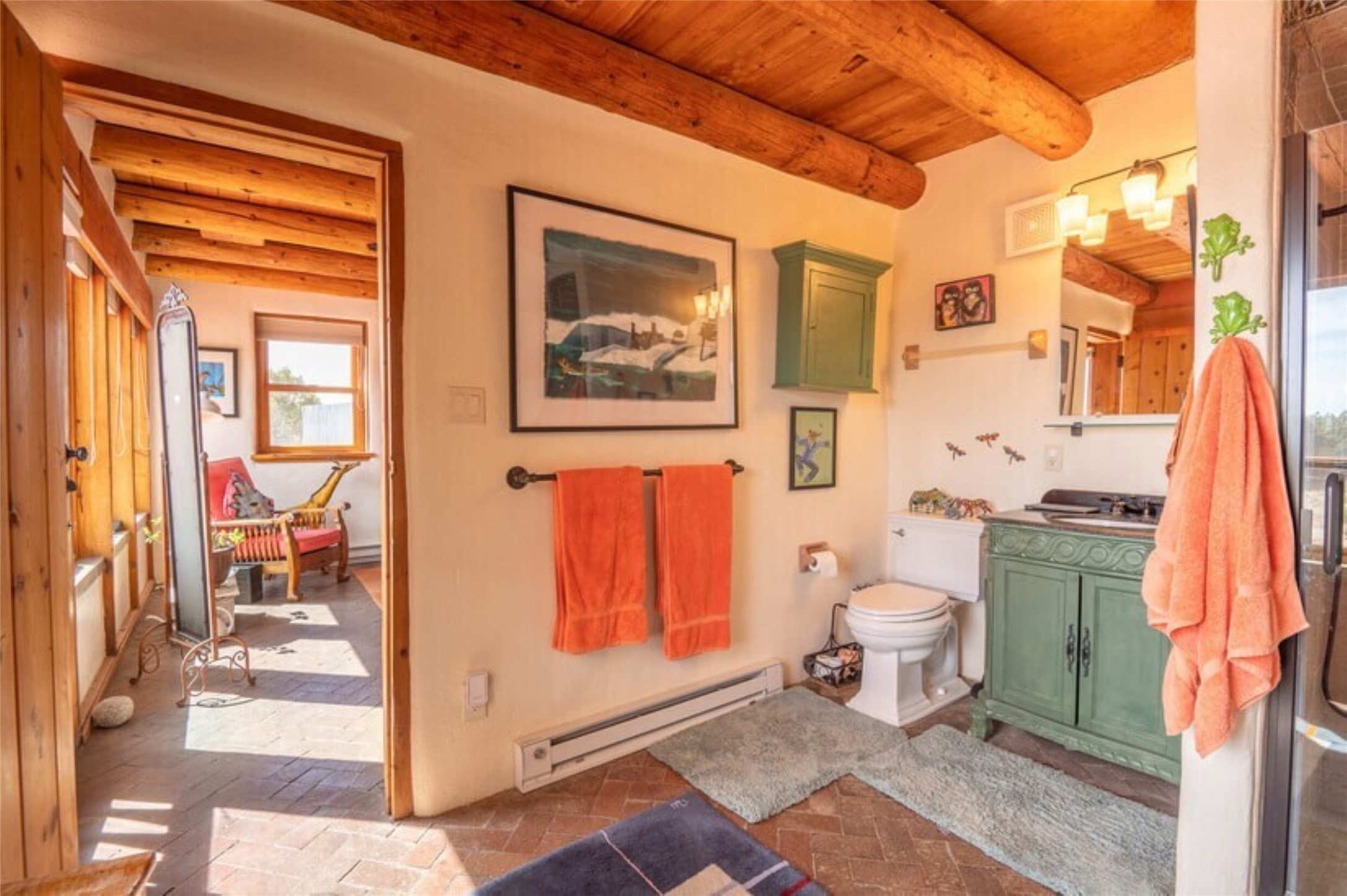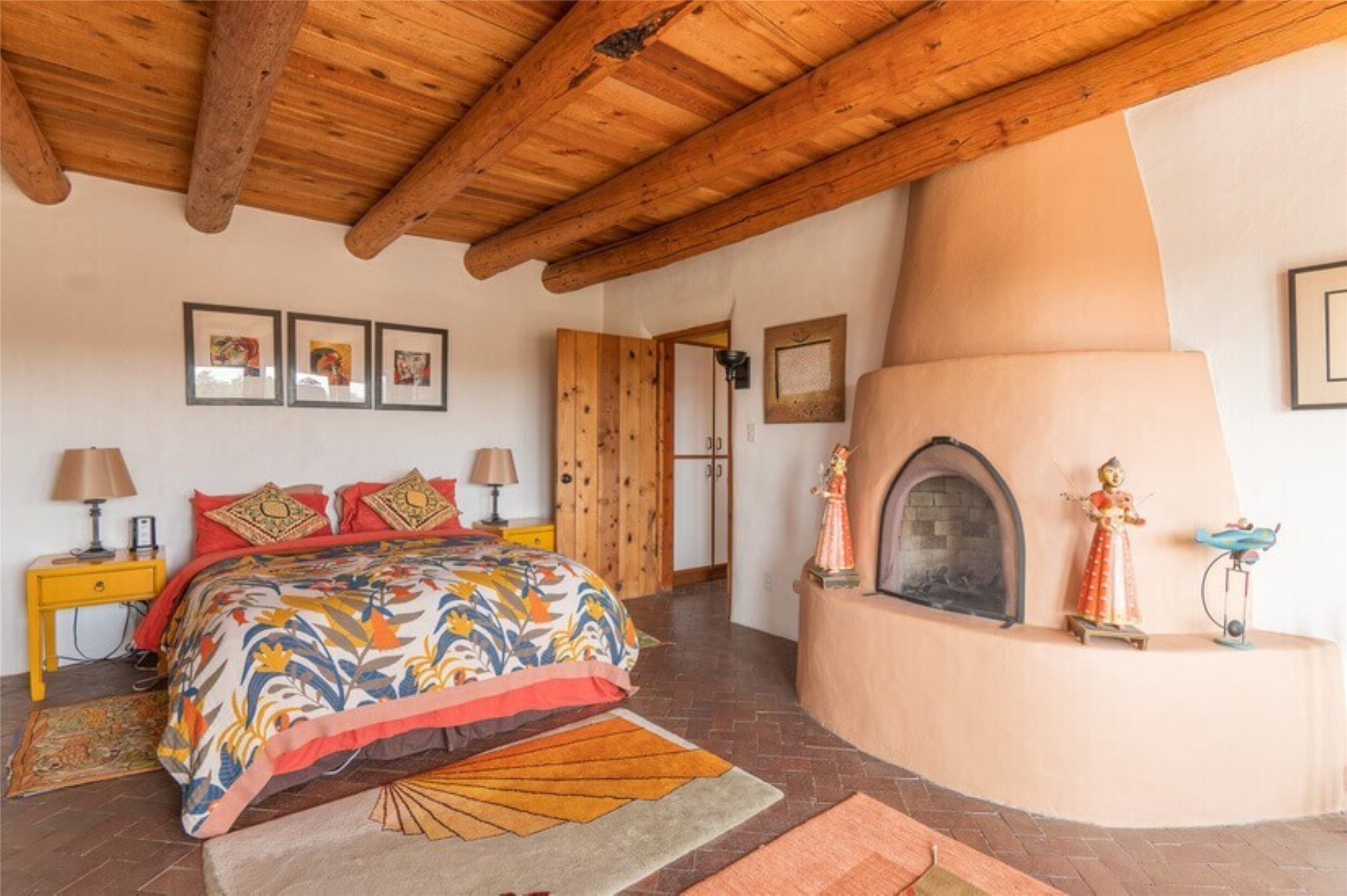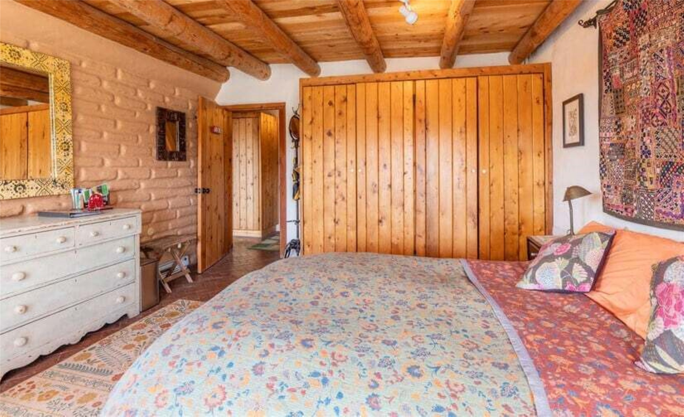 This Eldorado retreat features Santa Fe style and charm with beautiful outdoor living spaces that back directly onto a greenbelt with miles of trails, perfect for hiking and doggies. The home offers a passive solar design with an open split floor plan. The main living area, featuring a shepherd's fireplace, flows seamlessly into the kitchen and dining areas, and extends to a private portal with sweeping mountain views, perfect for entertaining. The primary suite includes its own kiva fireplace, large walk in closet and ensuite bath. For chilly evenings there's a hot tub, ideal for stargazing just off the owner's suite. Both the primary and second rear bedroom have direct access to the terrace as well. Beyond the garage, there's a separate studio perfect for a home office or creative endeavors. The sellers have made significant improvements and upgrades. Please see the attached list.
