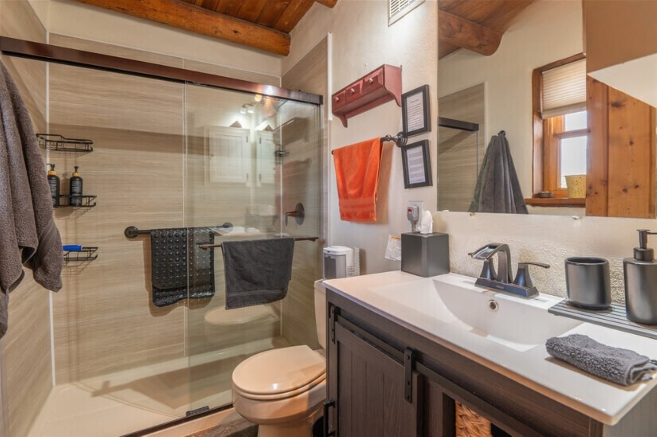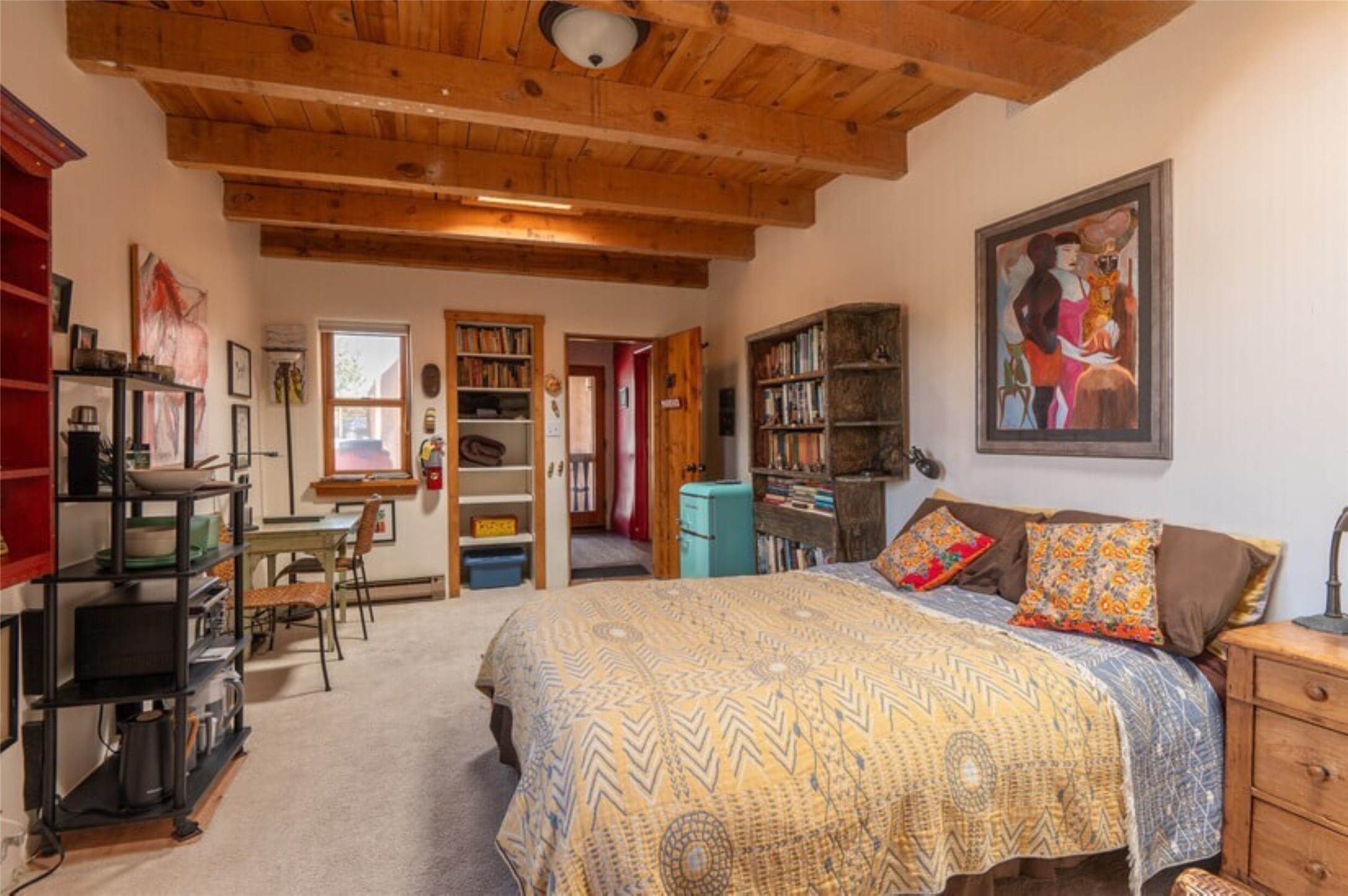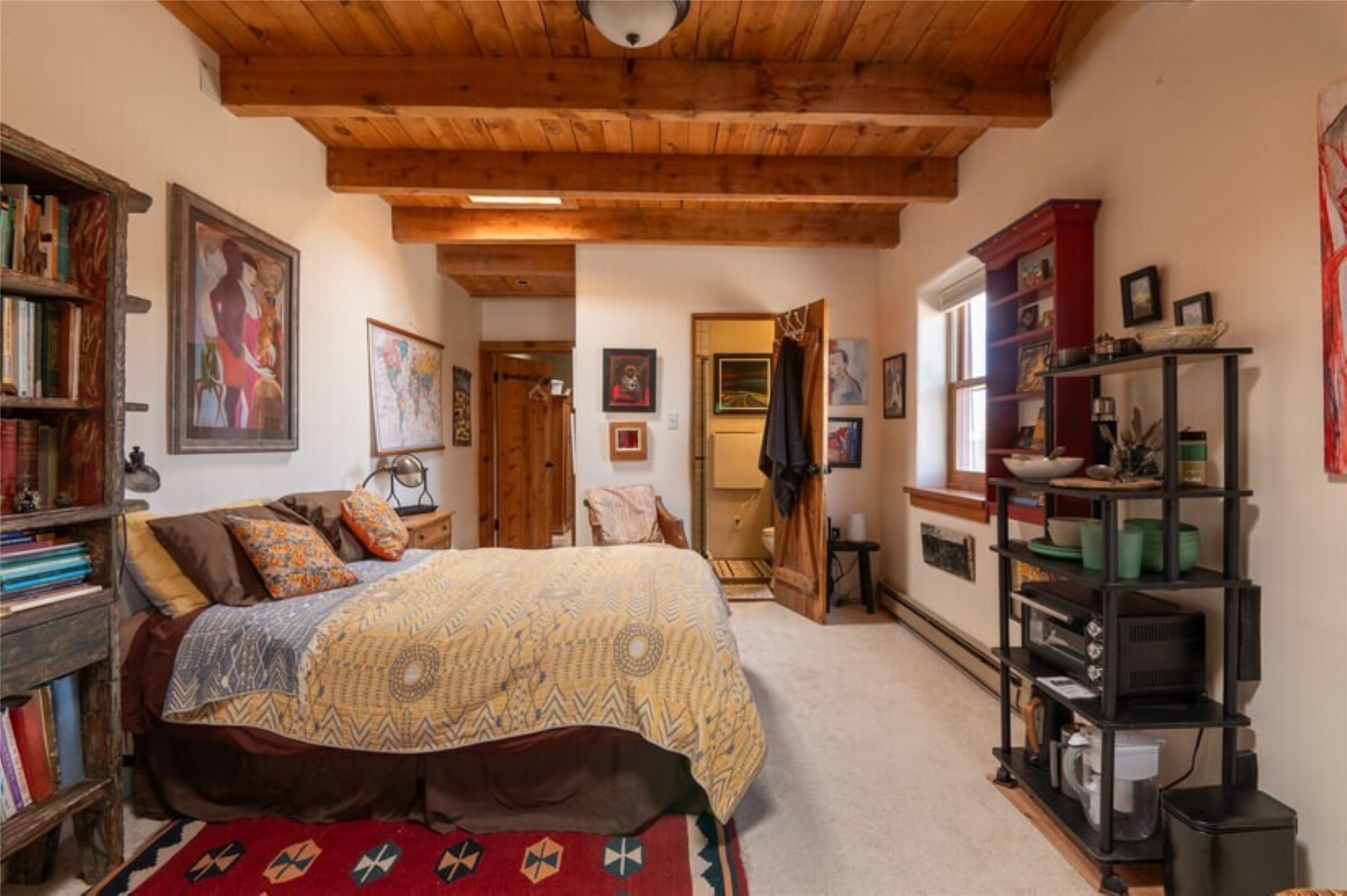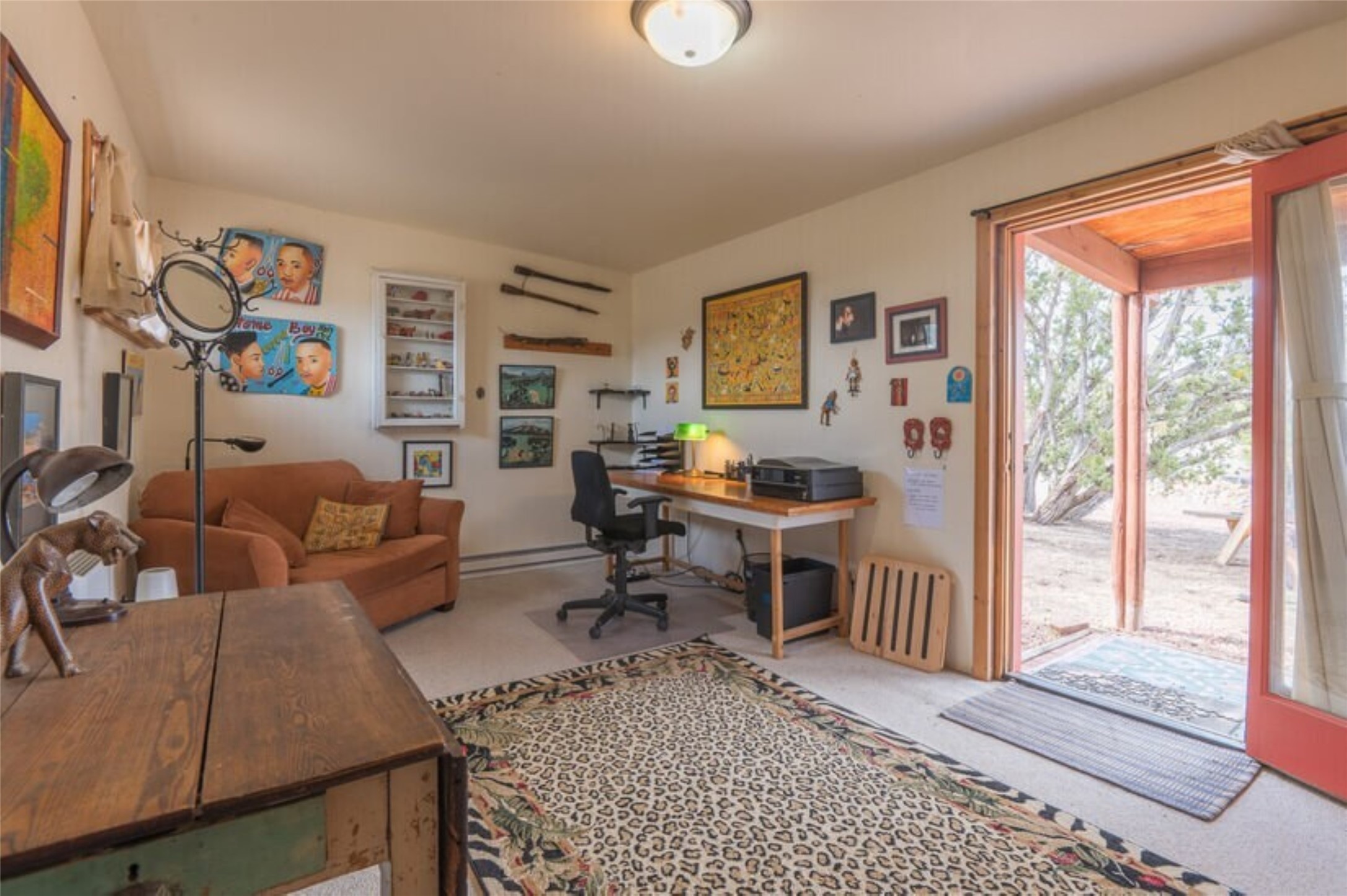 This Eldorado retreat features Santa Fe style and charm with beautiful outdoor living spaces that back directly onto a greenbelt with miles of trails, perfect for hiking and doggies. The home offers a passive solar design with an open split floor plan. The main living area, featuring a shepherd's fireplace, flows seamlessly into the kitchen and dining areas, and extends to a private portal with sweeping mountain views, perfect for entertaining. The primary suite includes its own kiva fireplace, large walk in closet and ensuite bath. For chilly evenings there's a hot tub, ideal for stargazing just off the owner's suite. Both the primary and second rear bedroom have direct access to the terrace as well. Beyond the garage, there's a separate studio perfect for a home office or creative endeavors. The sellers have made significant improvements and upgrades. Please see the attached list.
