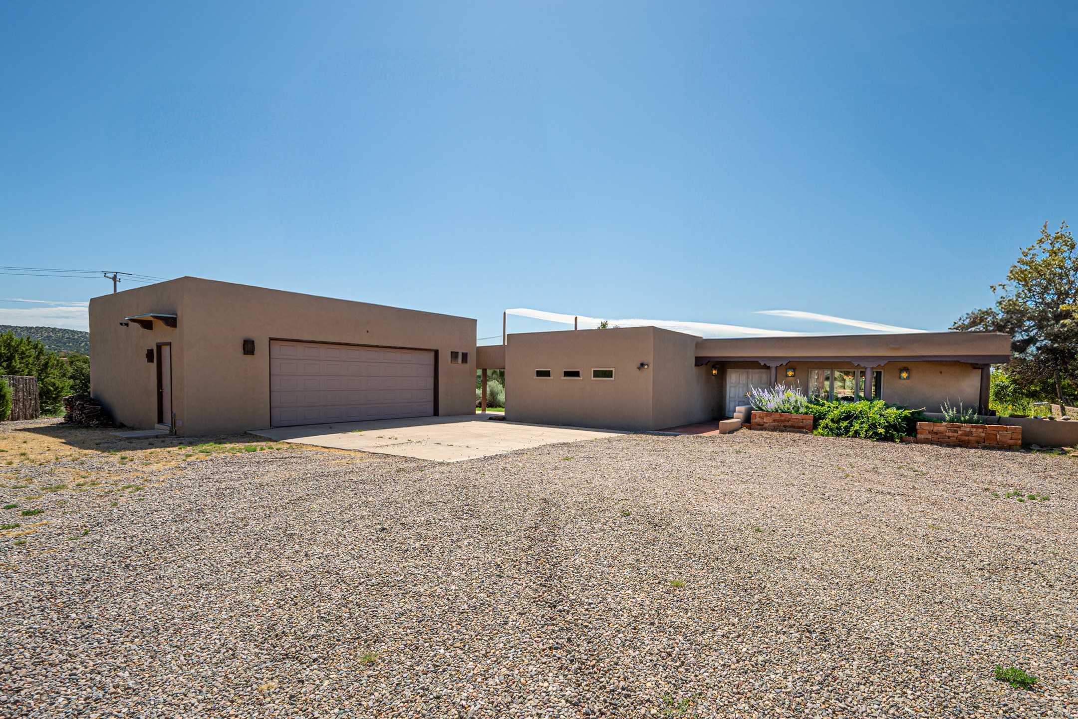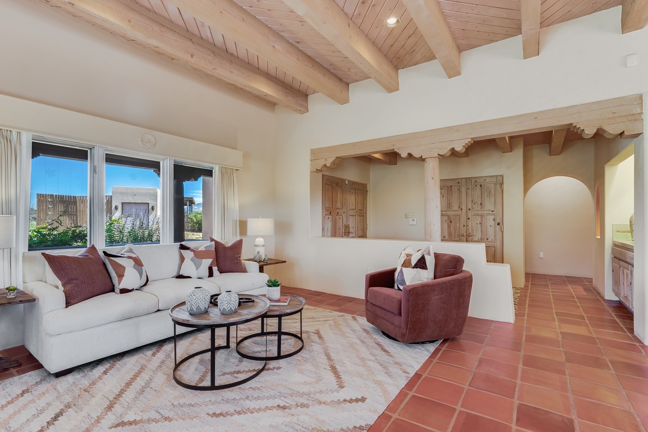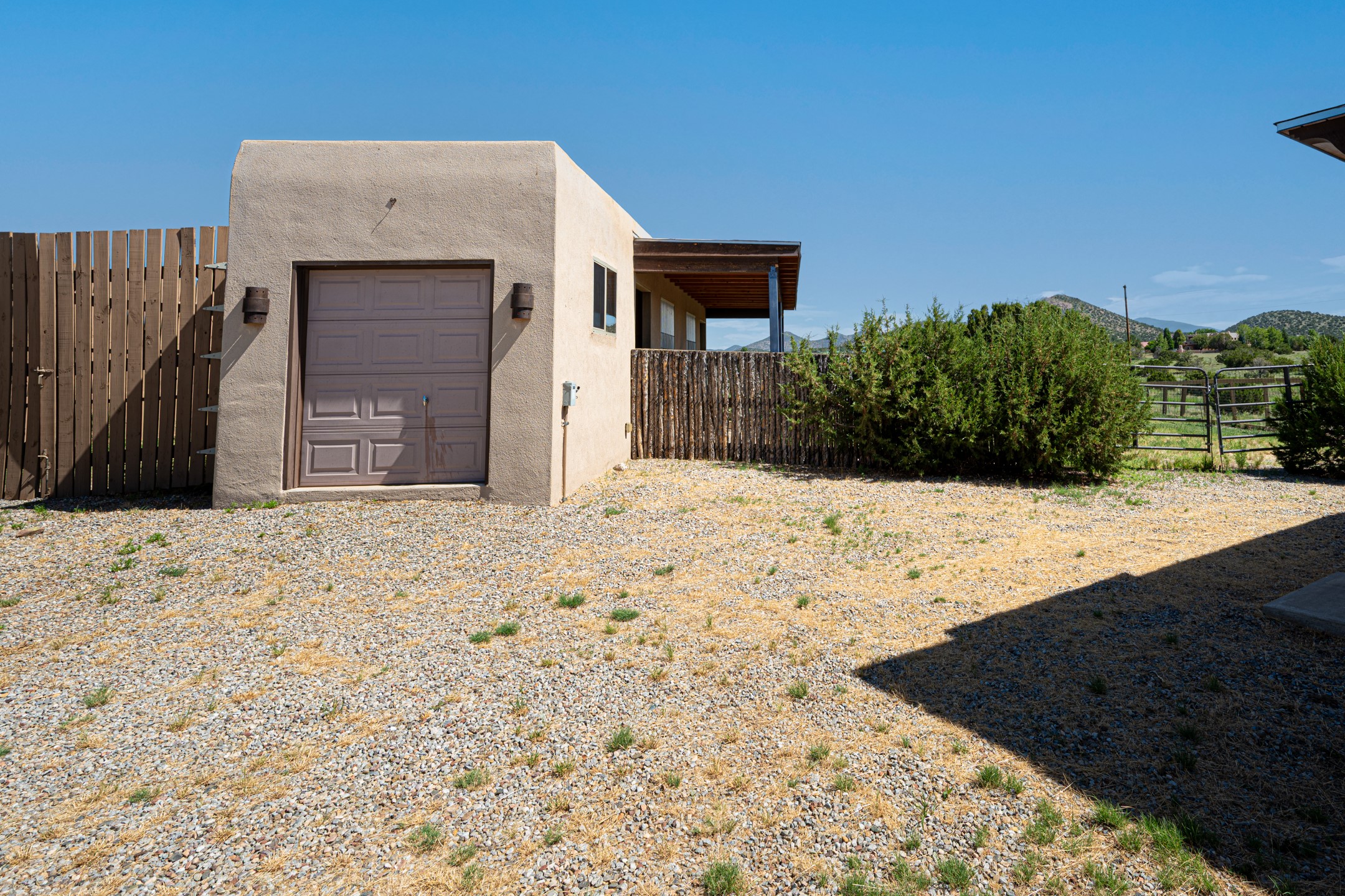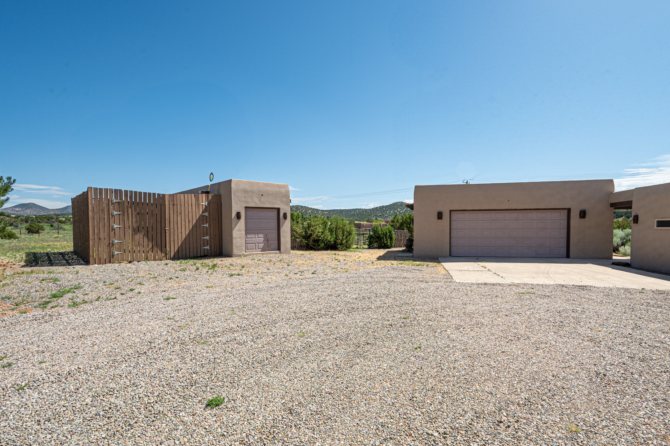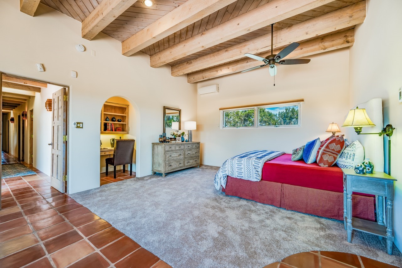 Southwestern charm meets modern comfort and functionality with this home with 3 peaceful acres with tranquil views of both sunrise and sunsets. This lovely property offers the best of rural living just minutes from the amenities of town. The home's open living area is warm and inviting, featuring Saltillo tile floors, high ceilings, and a traditional kiva fireplace--the perfect space to relax or entertain. The large master suite is a private sanctuary with its own sitting area and a second kiva fireplace, offering the kind of comfort and space that's rare to find. A separate bonus room with its own bath adds incredible flexibility--ideal as a guest suite, private office, or artist's studio. Additional features include community water, radiant in-floor heating, natural gas, and mini-split units for cooling, ensuring comfort year-round. Located in the Eldorado school system, this home offers a rare blend of privacy, convenience, and natural beauty. Home has been pre-inspected. If you have horses to bring, this property delivers with a two-stall barn, a half-acre turnout, and direct access to an easement which can be used for riding. Whether you want to saddle up or just take a peaceful hike, you can head out your back door.