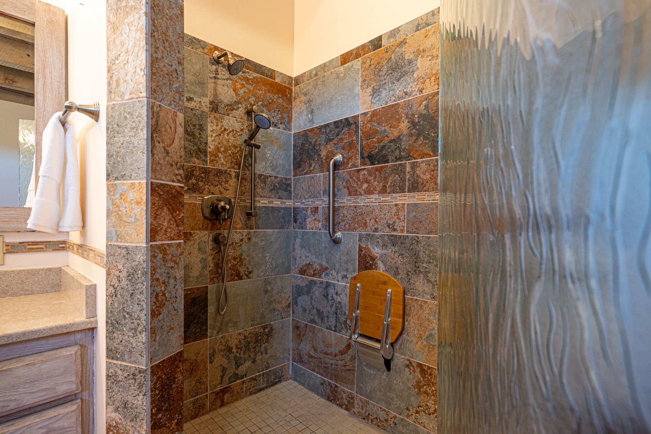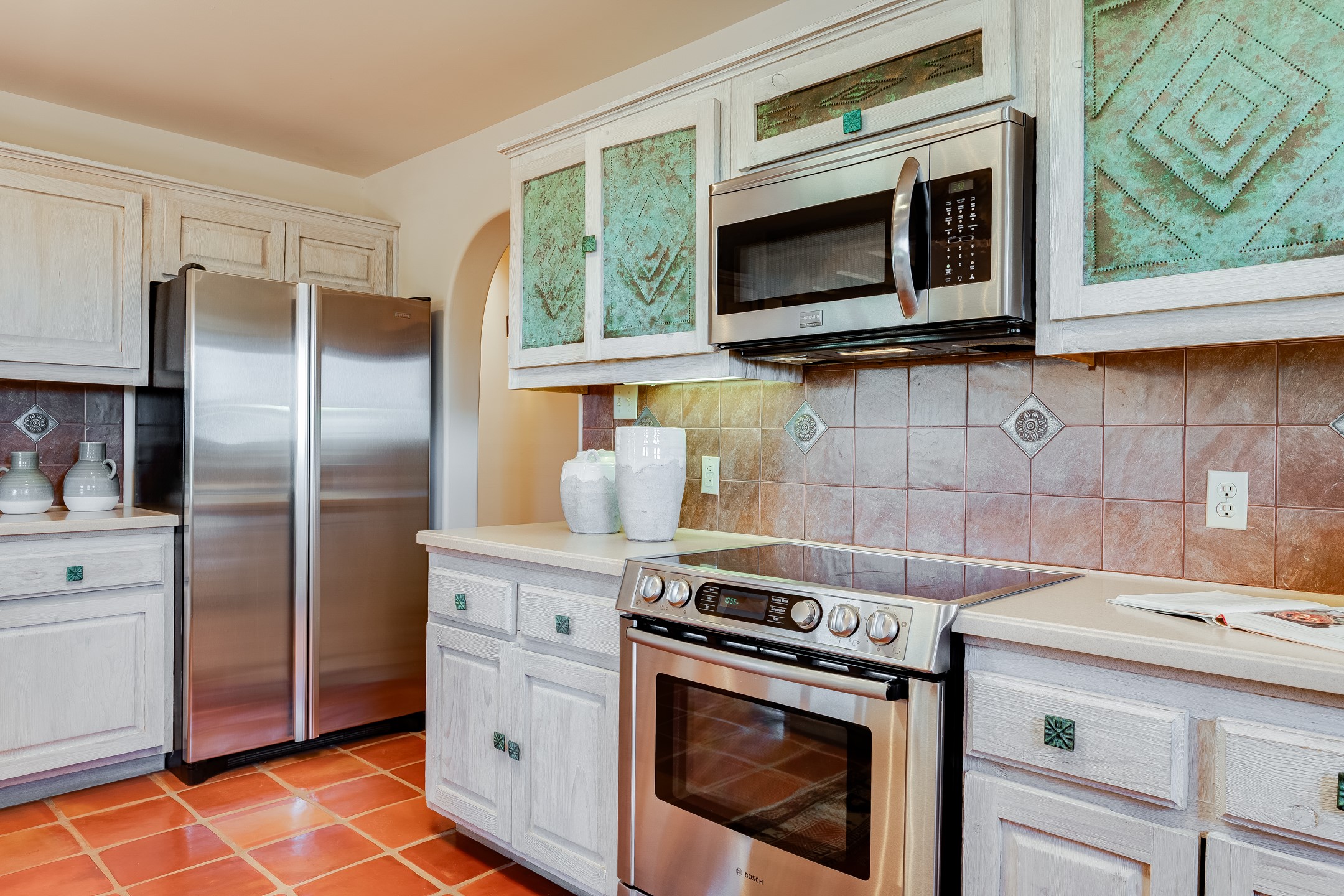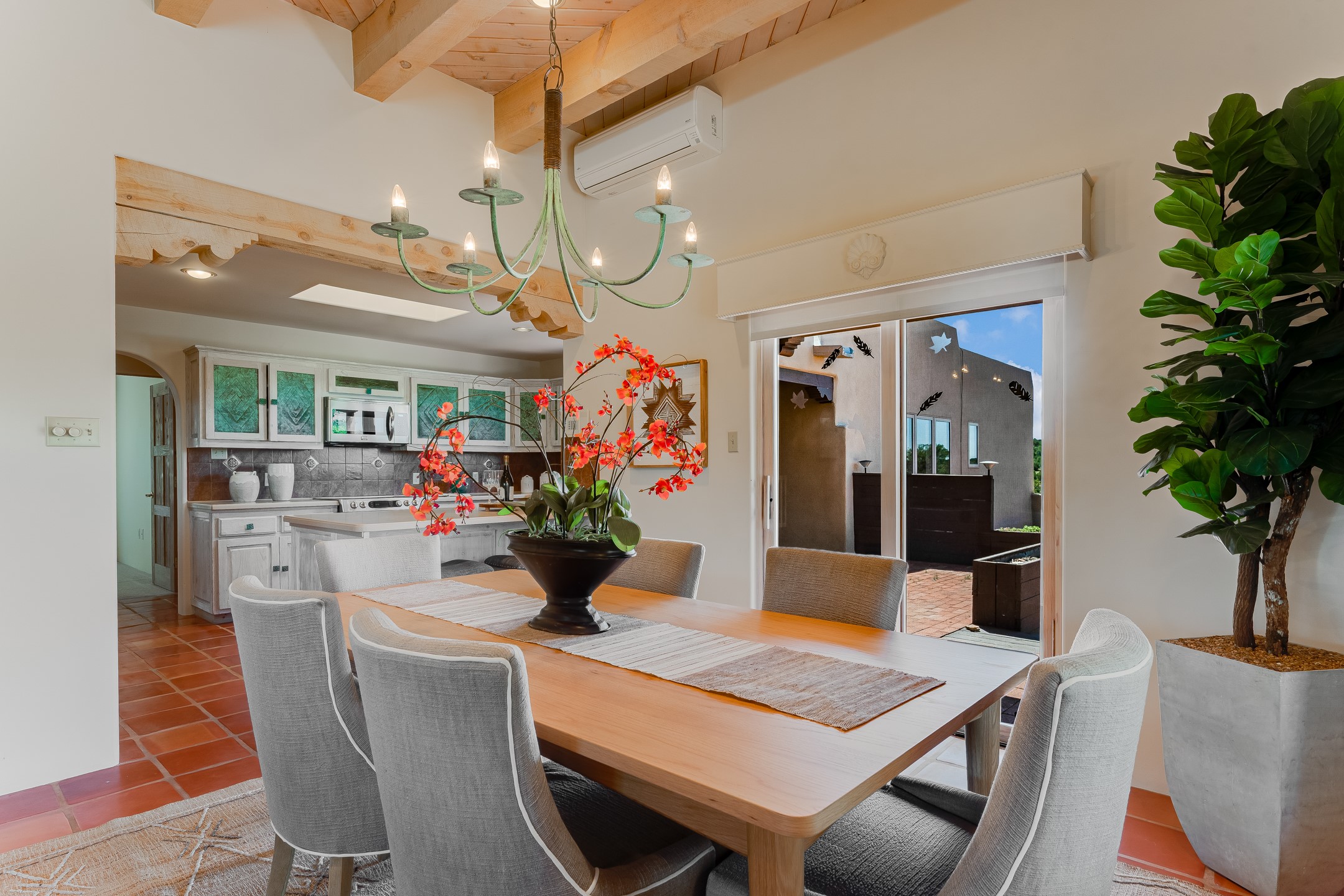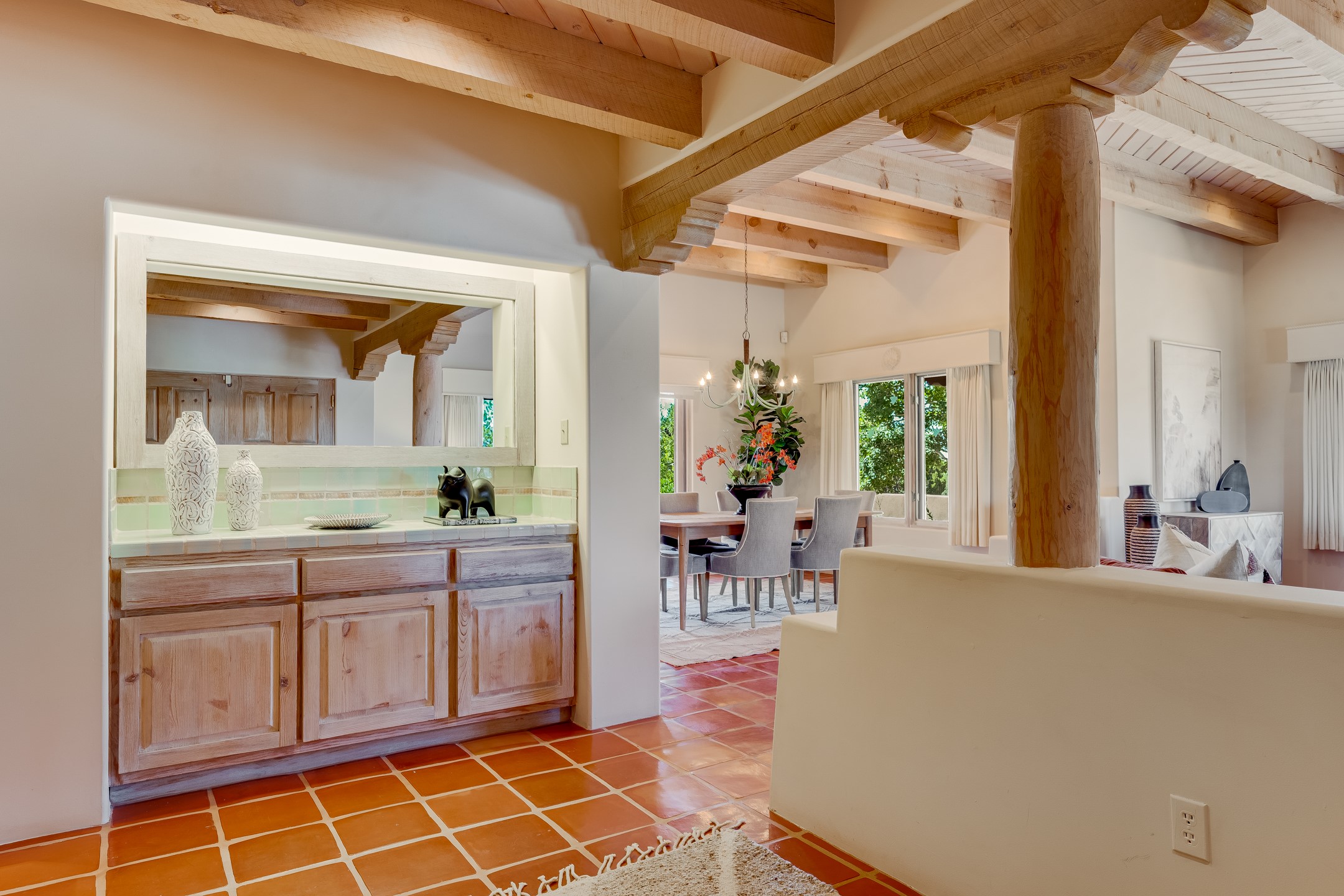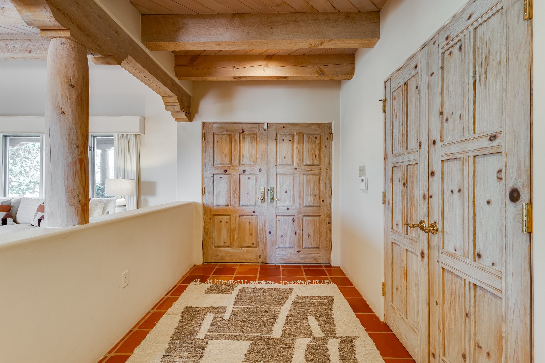 Southwestern charm meets modern comfort and functionality with this home with 3 peaceful acres with tranquil views of both sunrise and sunsets. This lovely property offers the best of rural living just minutes from the amenities of town. The home's open living area is warm and inviting, featuring Saltillo tile floors, high ceilings, and a traditional kiva fireplace--the perfect space to relax or entertain. The large master suite is a private sanctuary with its own sitting area and a second kiva fireplace, offering the kind of comfort and space that's rare to find. A separate bonus room with its own bath adds incredible flexibility--ideal as a guest suite, private office, or artist's studio. Additional features include community water, radiant in-floor heating, natural gas, and mini-split units for cooling, ensuring comfort year-round. Located in the Eldorado school system, this home offers a rare blend of privacy, convenience, and natural beauty. Home has been pre-inspected. If you have horses to bring, this property delivers with a two-stall barn, a half-acre turnout, and direct access to an easement which can be used for riding. Whether you want to saddle up or just take a peaceful hike, you can head out your back door.