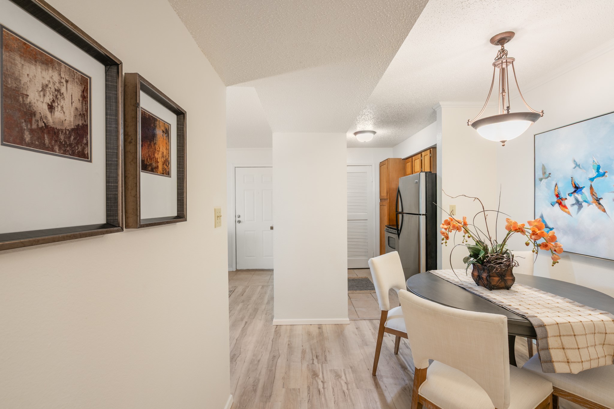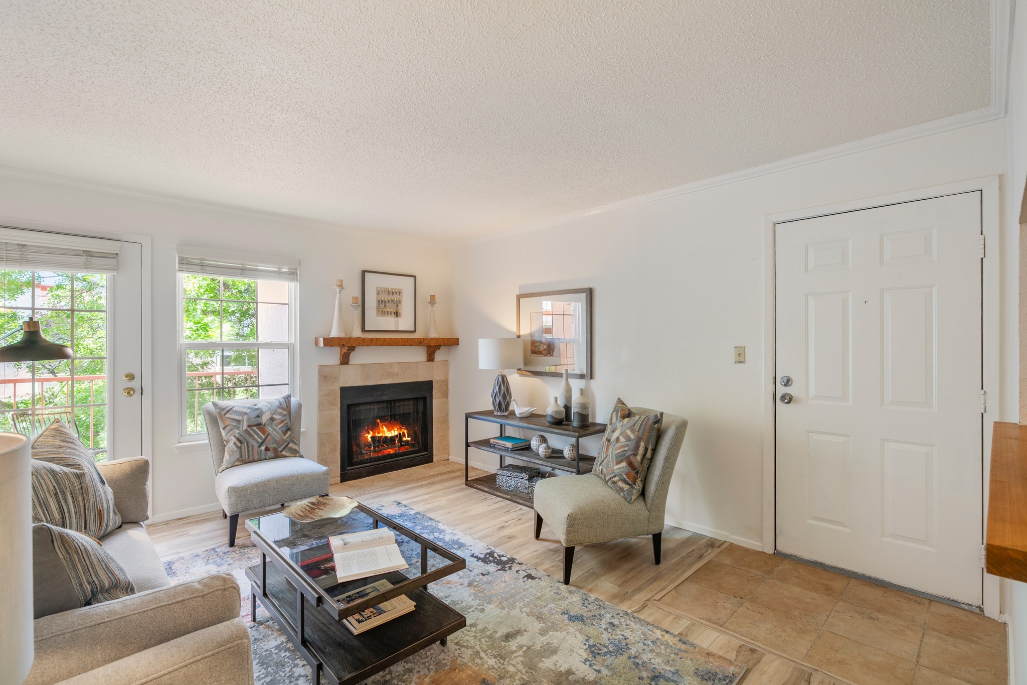This wonderful condo is the most affordable 2 bedroom 2 bath unit with a pool, hot tub, sauna, full workout room, large community room with a grand piano in town !! Central air conditioning, luxury vinyl flooring with no carpet. Working wood fireplace with a lovely patio to have your morning coffee while watching the birds. This great central location makes it just minutes to get anywhere in town. The HOA fee is very inclusive covering stucco, roofing, all green spaces and more. If you are looking for an affordable property to get started in Santa Fe or you are a savvy investor looking to add to your portfolio then please don't miss out on this great property!!