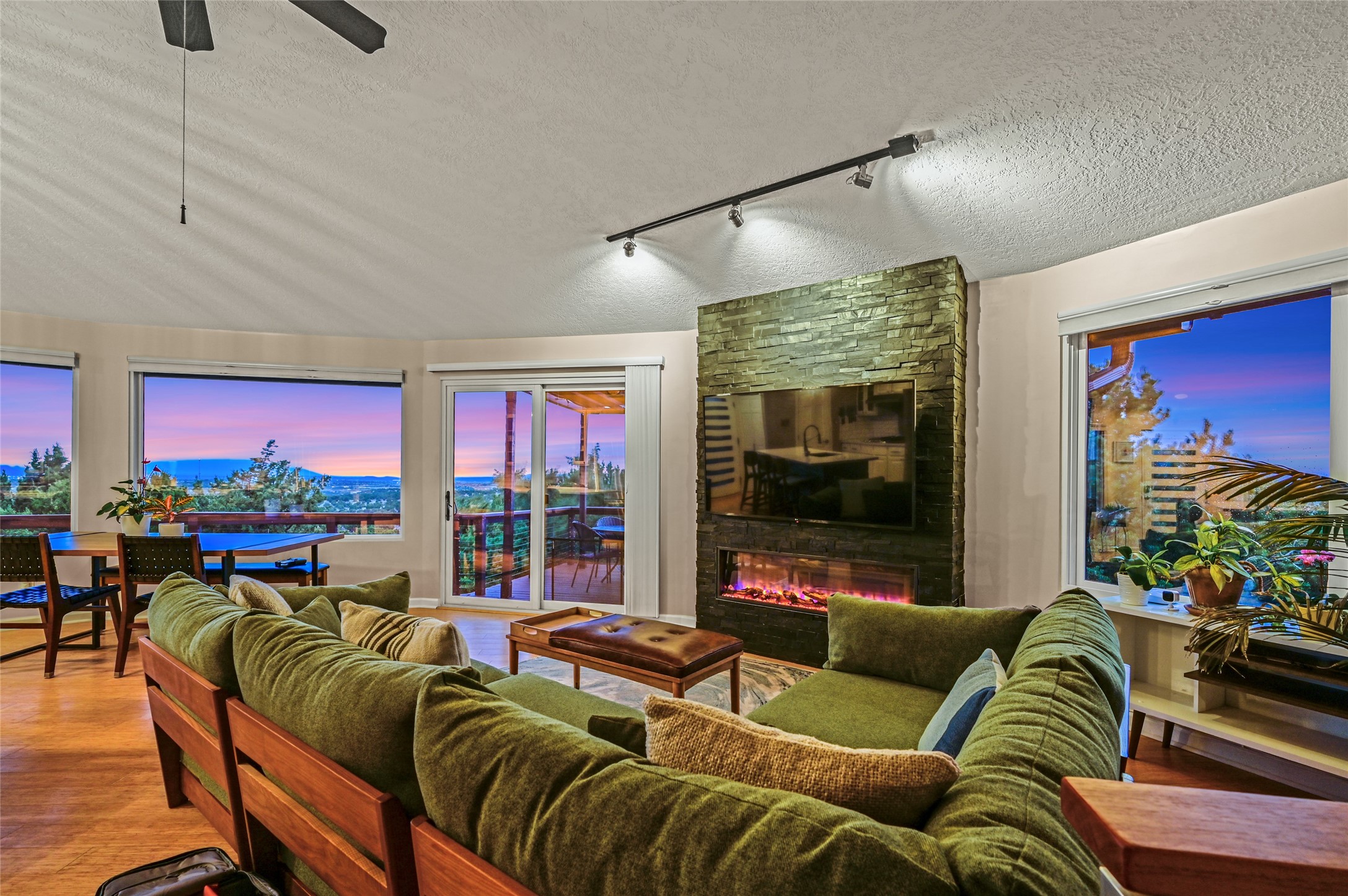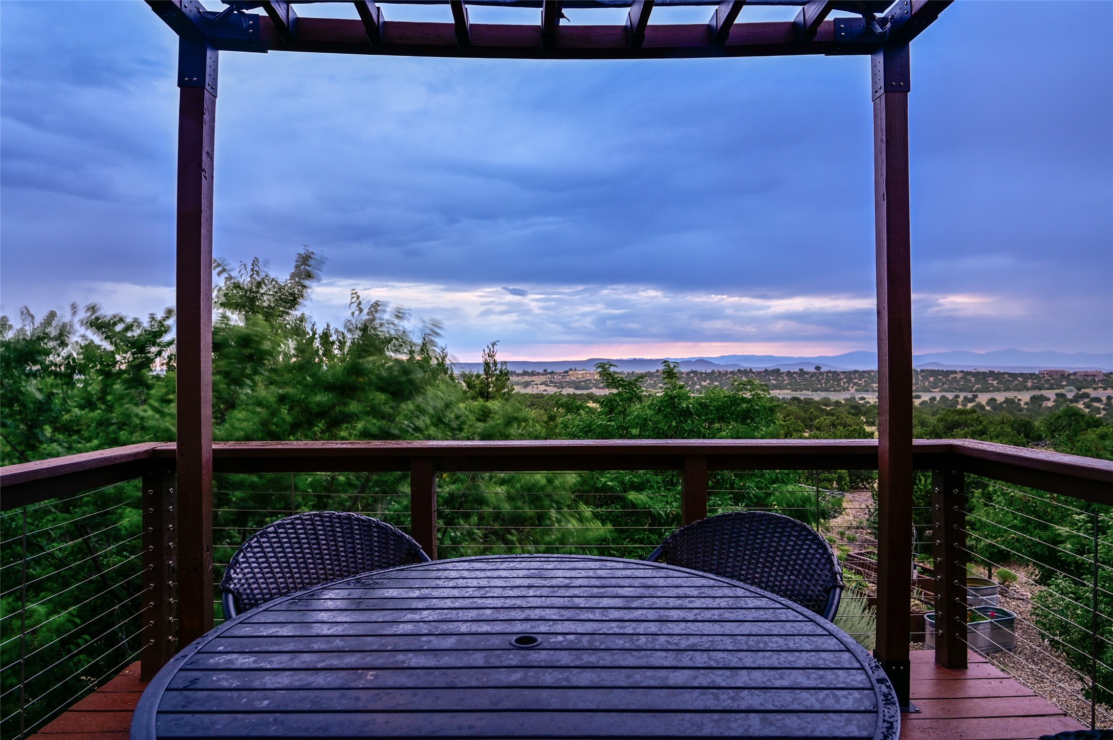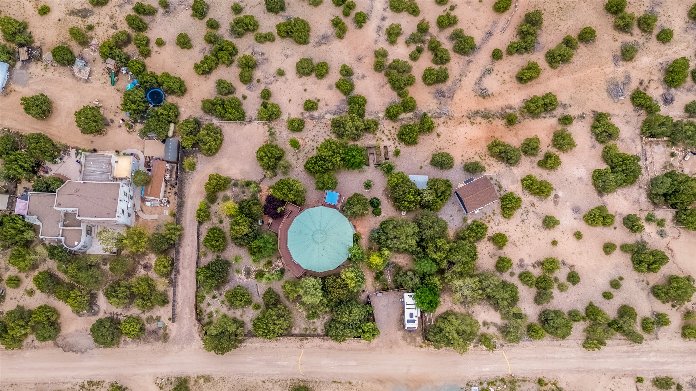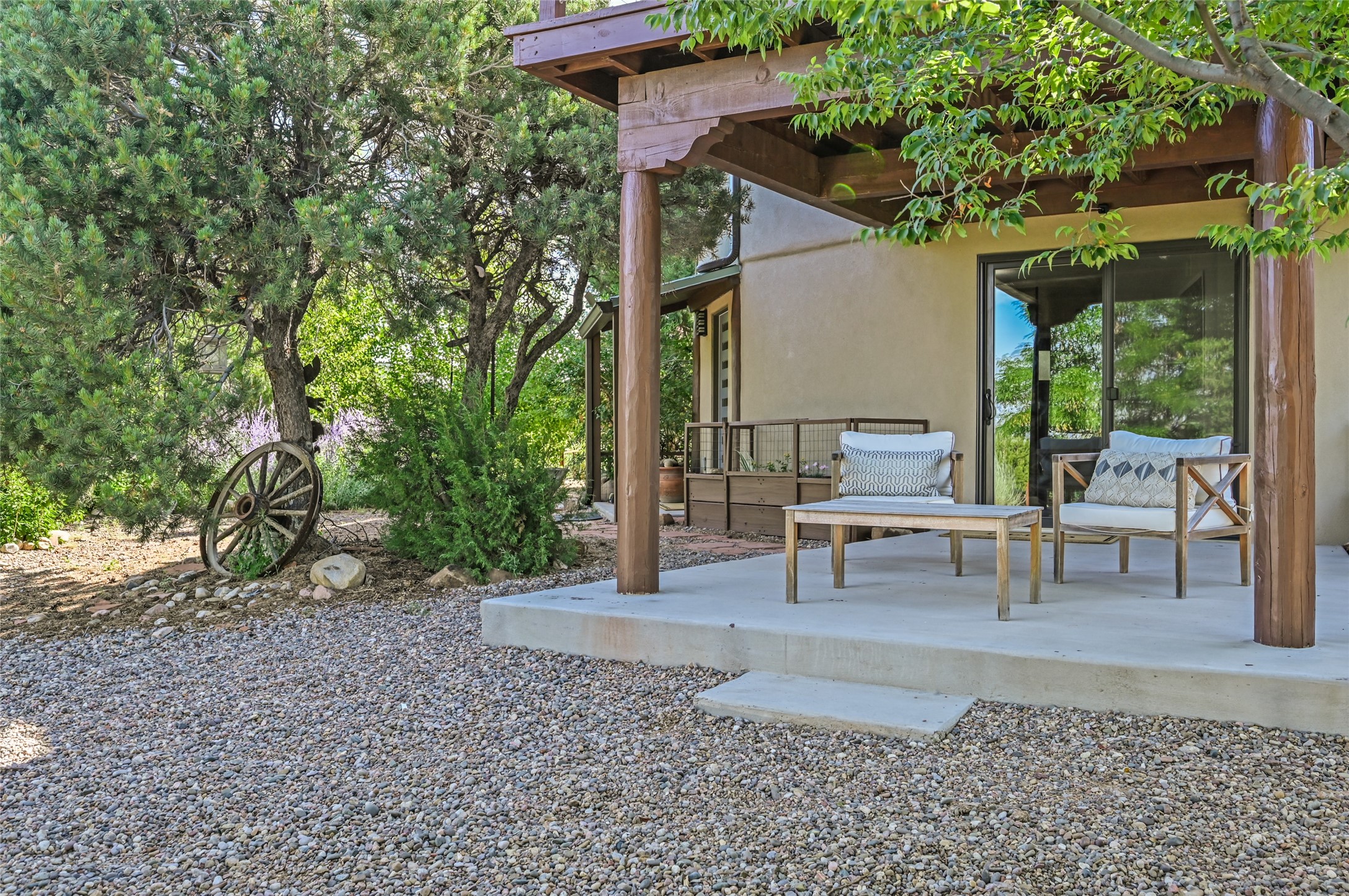 Discover the unparalleled beauty of Santa Fe at 272 Camino Tres Arroyos, a distinctive round home featuring 3 bedrooms, 2 bathrooms, and 2,482 square feet of thoughtfully designed living space. Perfectly positioned on a beautifully landscaped lot, this architecturally unique residence showcases panoramic, unobstructed views that capture the essence of Northern New Mexico's natural beauty. Upon entry, you're welcomed into a warm, light-filled interior that artfully combines modern updates with enduring character. The flowing, circular layout creates inviting spaces ideal for relaxing or entertaining, while recent owner improvements ensure true turnkey comfort. The property also includes a detached 320-square-foot powered studio, perfect for an artist's retreat, home office, or guest space. Enjoy stunning sunsets from the landscaped yard or entertain guests on the private deck surrounded by Santa Fe's iconic vistas. Situated just minutes from town yet feeling worlds away, this extraordinary home offers the best of both convenience and serenity. Don't miss this rare opportunity to own an architecturally distinctive, move-in-ready home with unparalleled views in a coveted Santa Fe location. The home sits 1 mile down a dirt road that is maintained by the neighborhood twice a year.