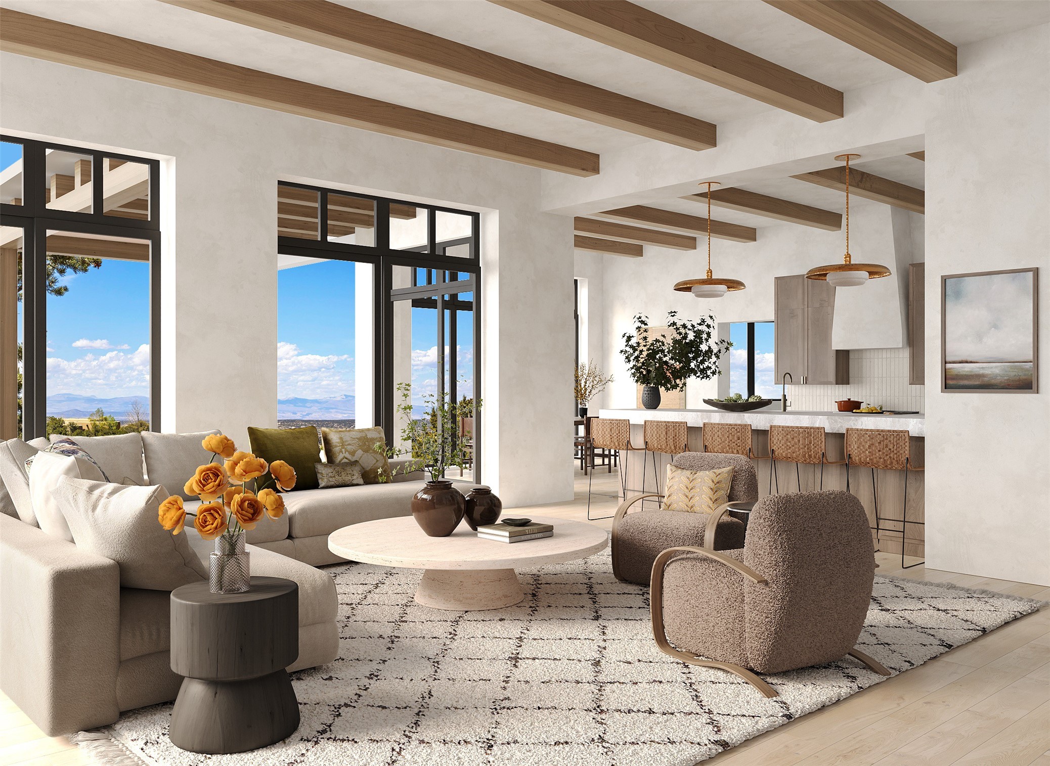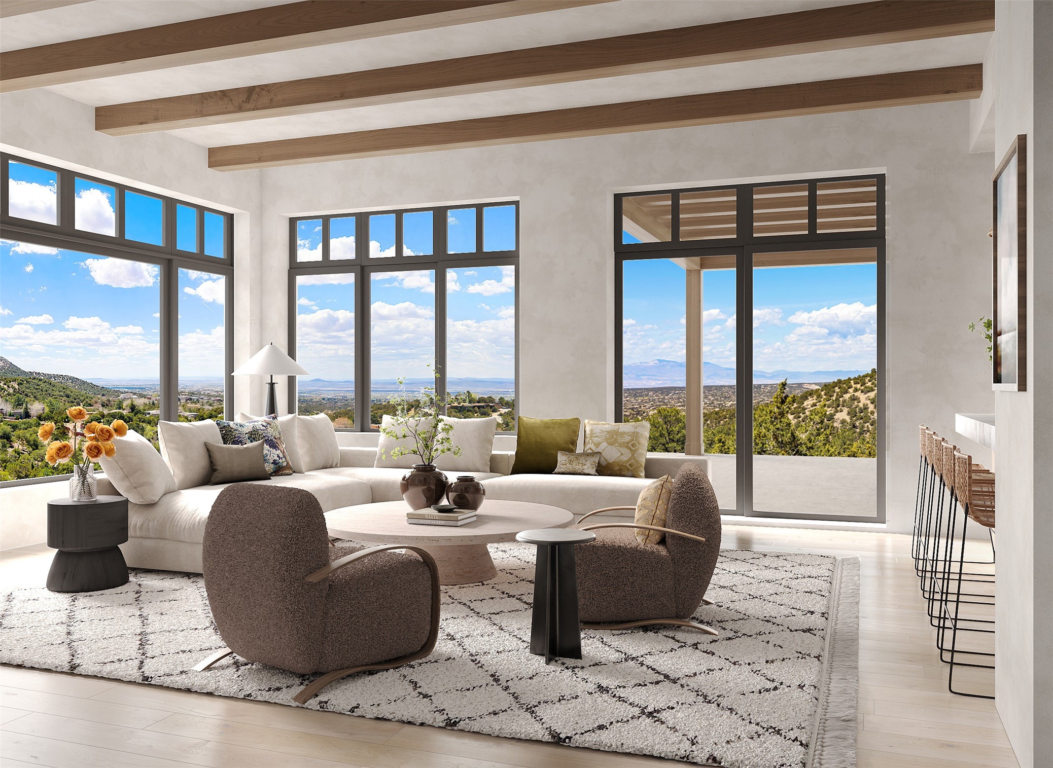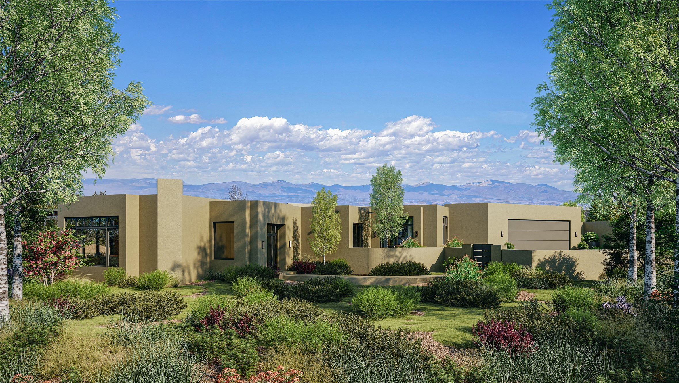 Luxury, breathtaking views and sophistication within Wilderness Gate by the awarding winning Woods Design Builders. One of the most extraordinary future homes in all of Santa Fe, this stunning To Be Built residence by Woods Design Builders excites and captivates with powerful architecture, stunning, expansive views mountain, city and sunset views. Permits took two years to obtain given the complexity of designing a home within this specific location, which best captures the unapparelled views to perfection. This stunning, 3,981 square foot masterpiece is ready to break ground today! Sited on a superior, elevated 2-acre view lot, this exquisite residence located within the gated Ponderosa neighborhood, within the Wilderness Gate, exemplifies the unique blend of sophisticated contemporary design with inherent Santa Fe warmth. Designed by the famed Lorn Tryk, with a grand open concept living experience and seamless surround view windows, this fabulous home stuns and can still be customized featuring a grand primary suite with views, two additional spacious ensuite bedrooms, plus an office and an exercise room or ideal media room and the ultimate state of the art kitchen. Ideal for entertaining, this Wilderness Gate tranquil retreat, delights with exceptional outdoor living areas, with a resort-style pool possible, though not included with the list purchase price. Minutes from the Plaza and steps away from Atalaya Mountain, St. Johns College, and the Dale Ball trail system, the team of Woods Design Builders is ready to customize this rare offering today.
