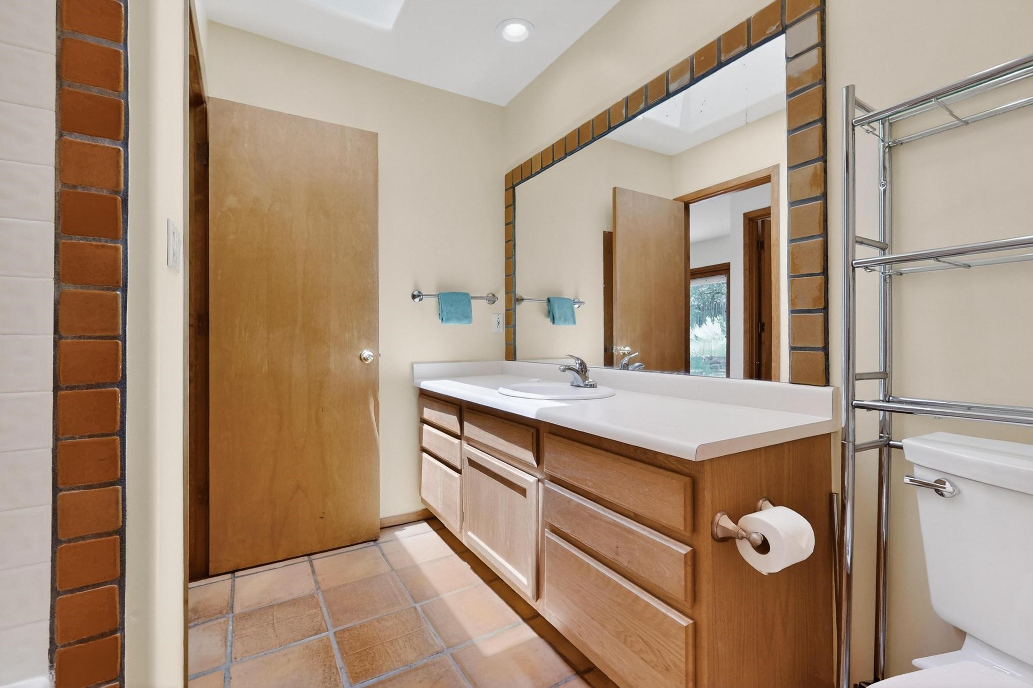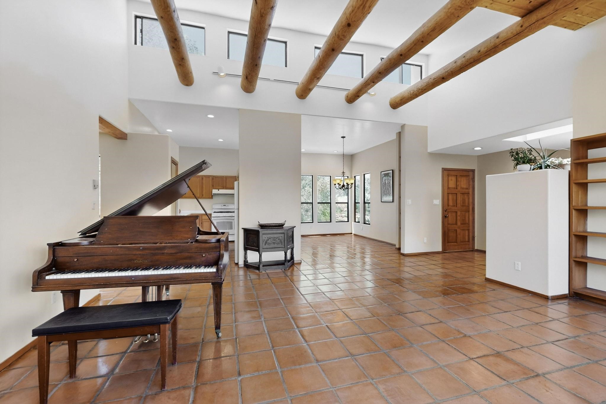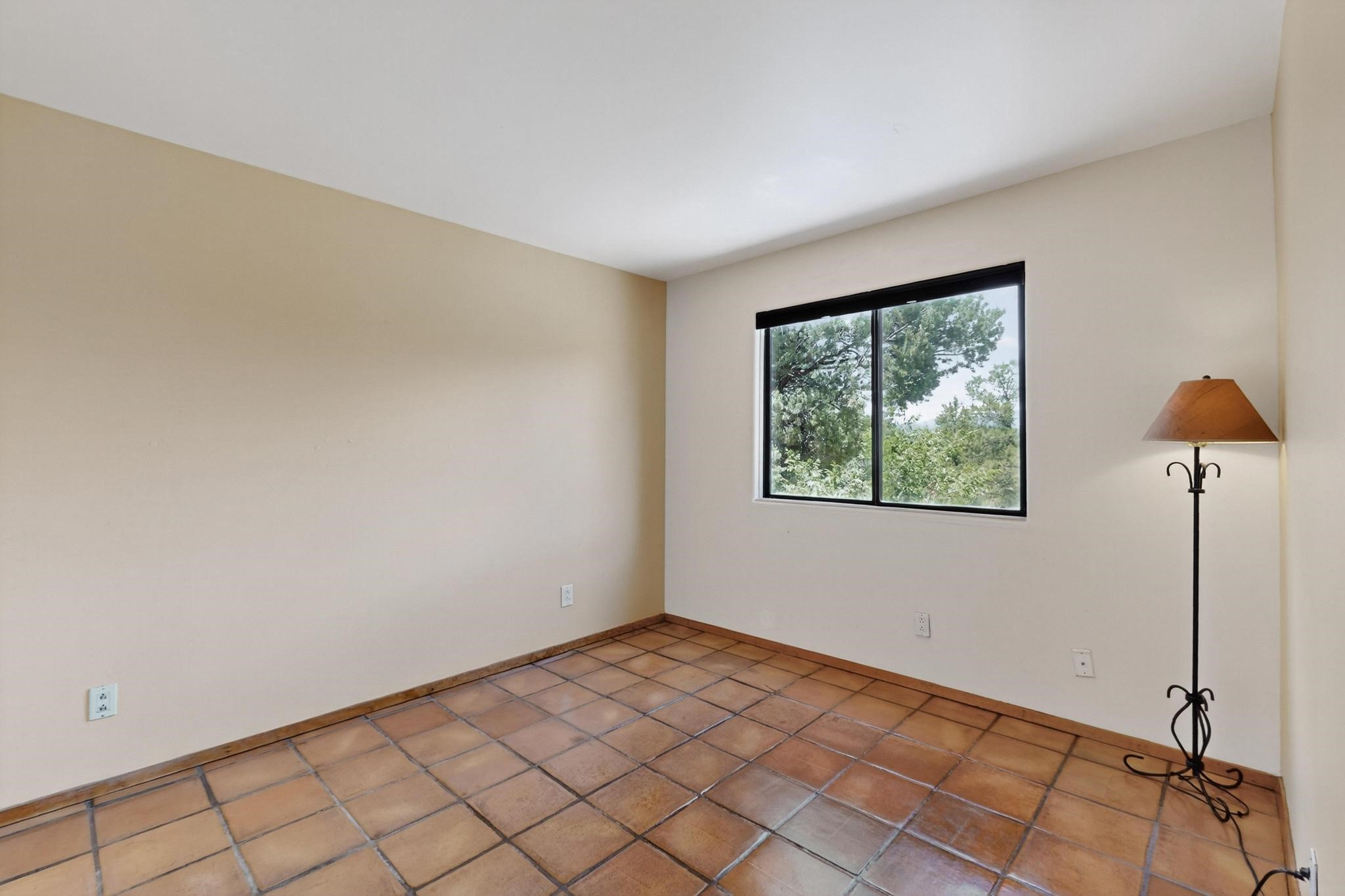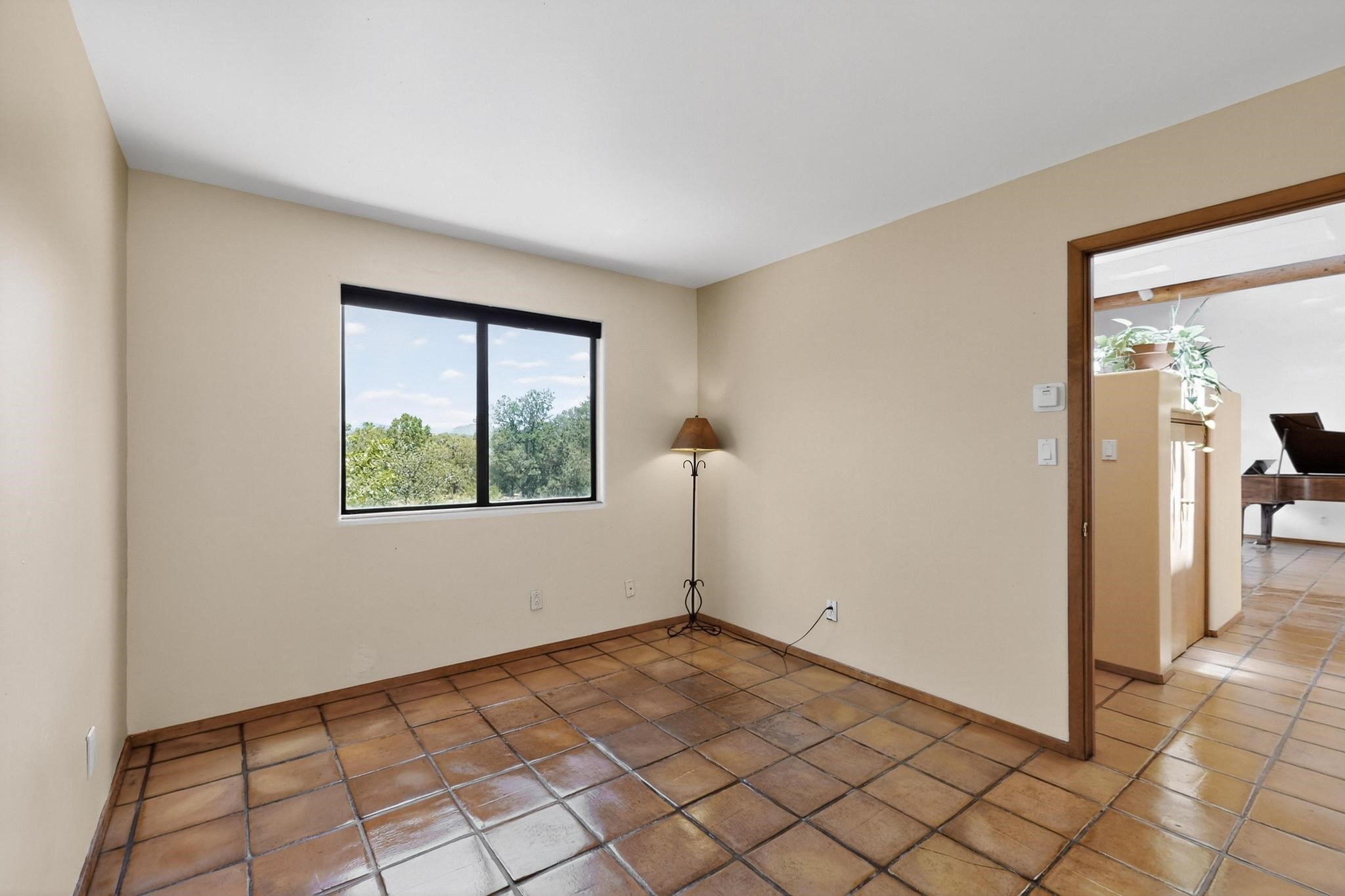 Offering absolutely stunning views of the Southern Rocky Mountains, this home and 5 acre property offers tranquil country living and is only ~15 minutes to the vibrant heart of downtown Santa Fe. This pueblo style two bedroom 2 bath home features exposed vigas, a stunning kiva fireplace, talavera tile accents, clearstory windows , and wonderful outdoor flagstone patio's. Other notable features include a newer TPO roof with transferable warranty, private well, radiant in floor heating, new water heater, and a couple of sheds for your storage needs. This amazing 5 acre property is very usable and can accommodate further development if desired.