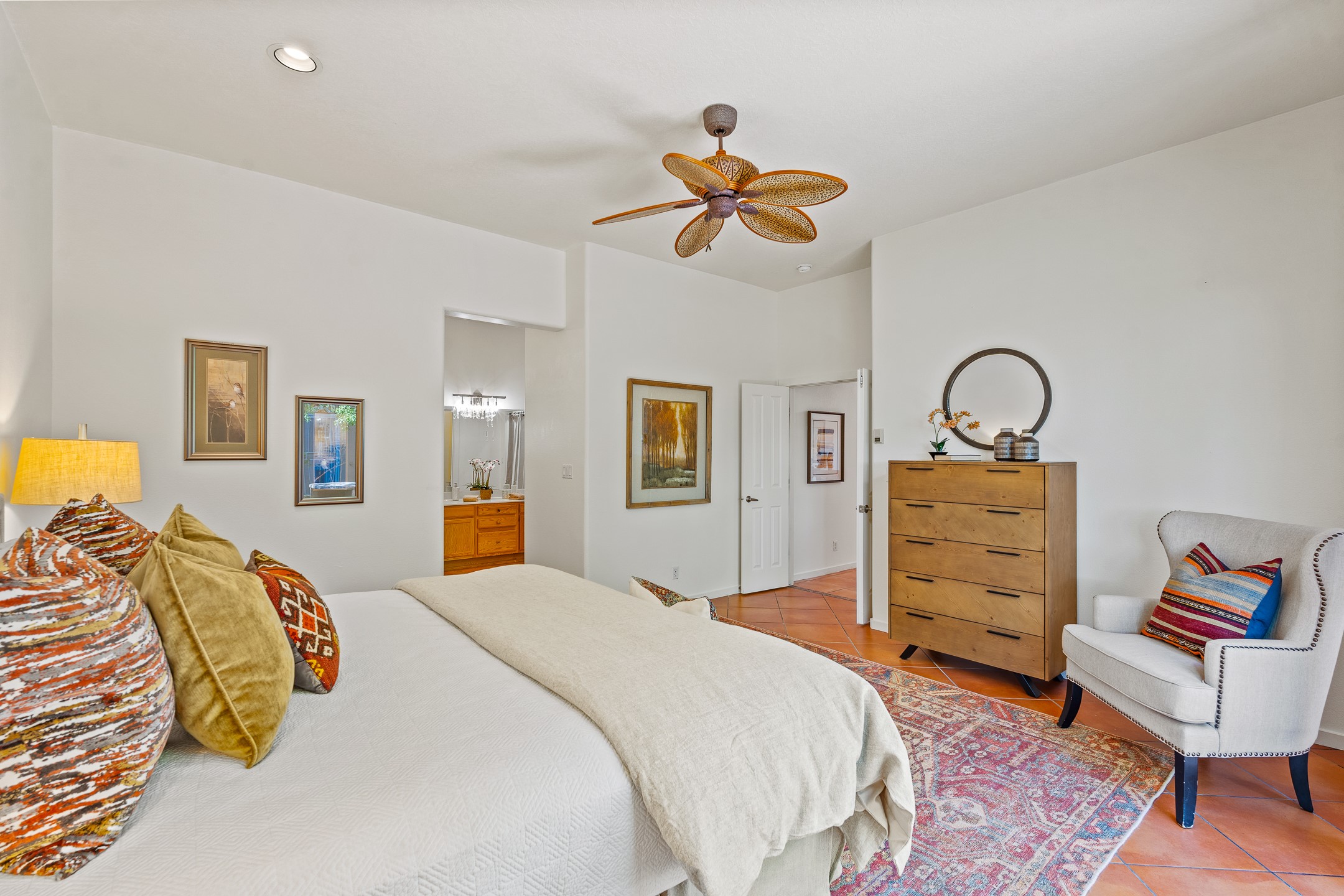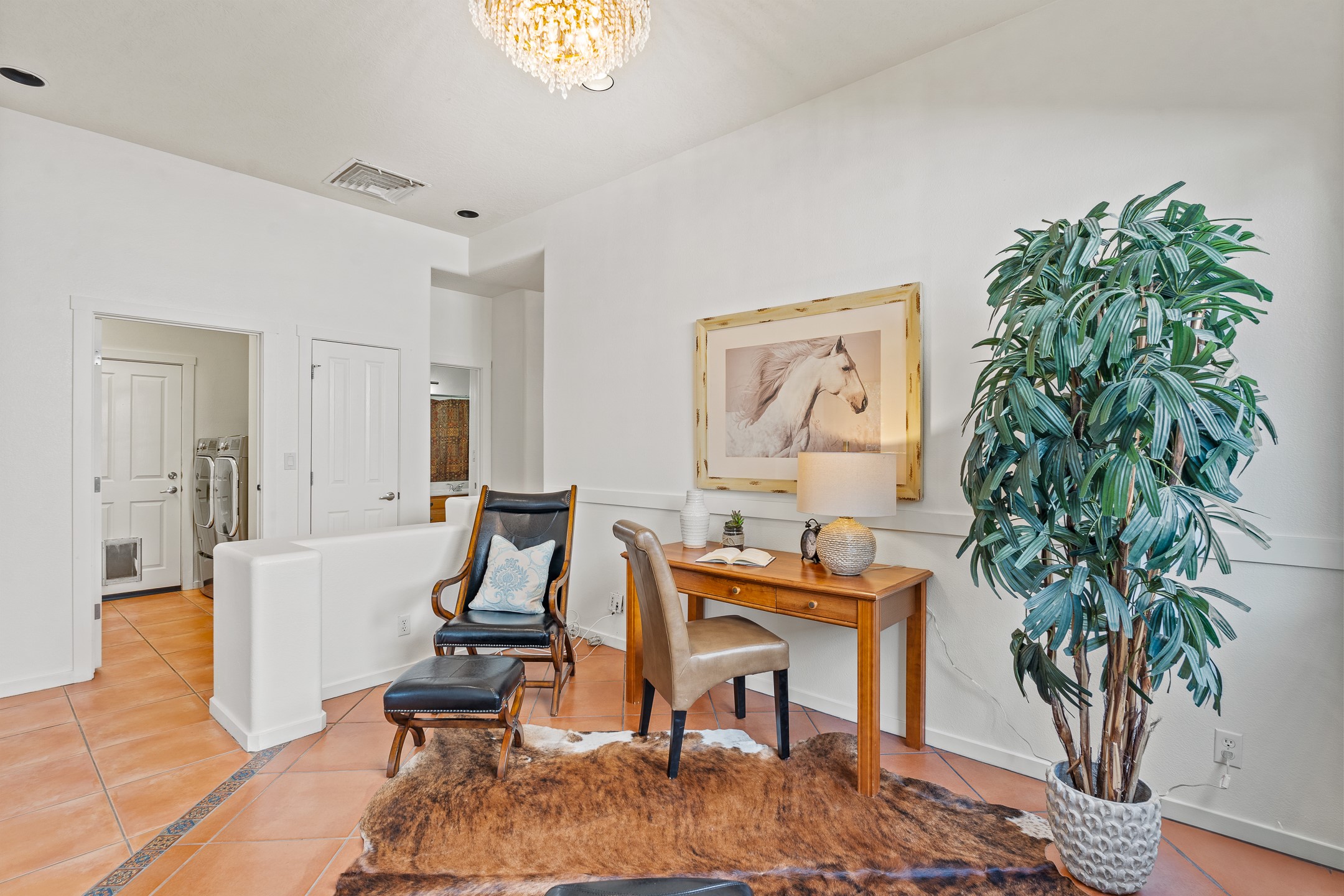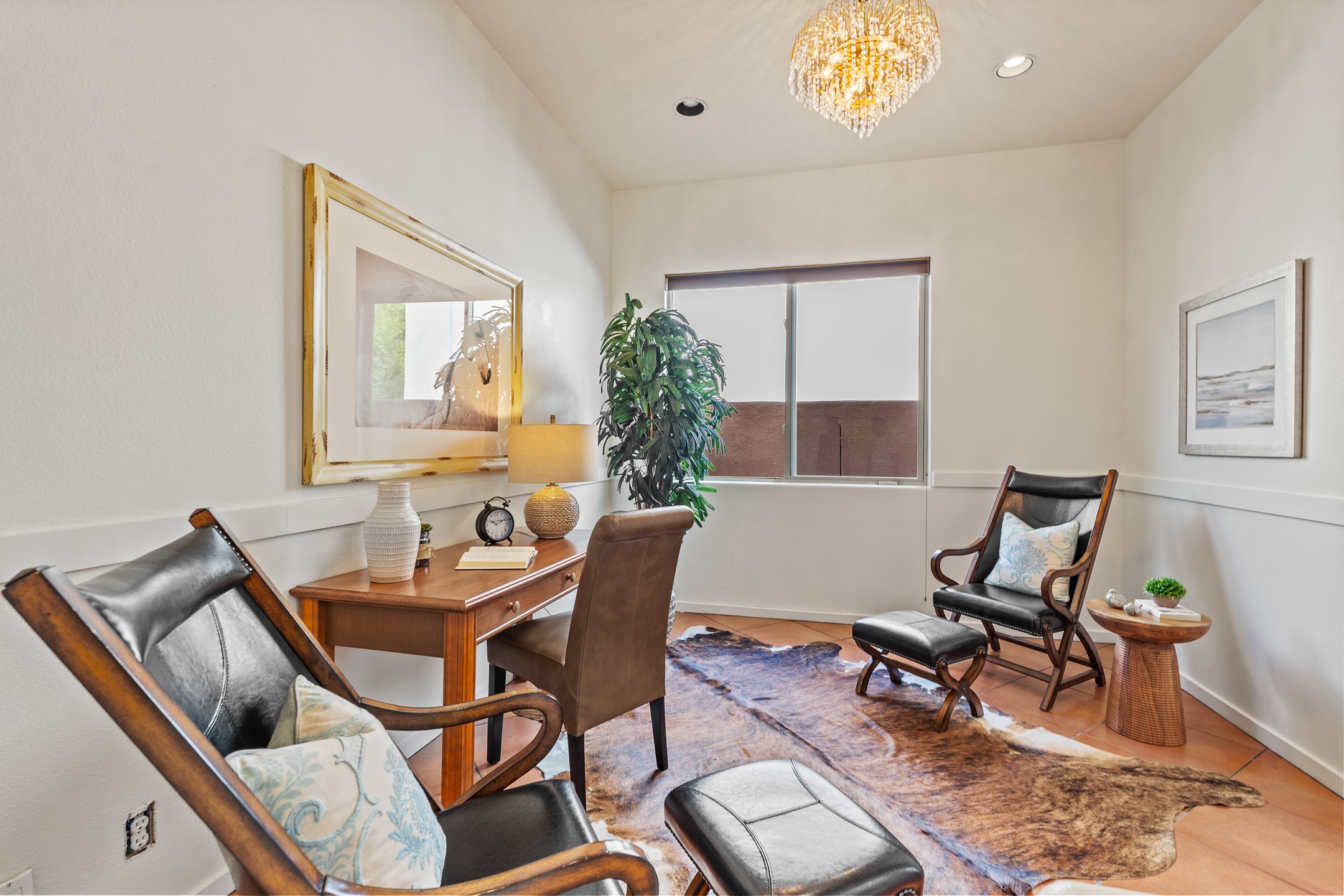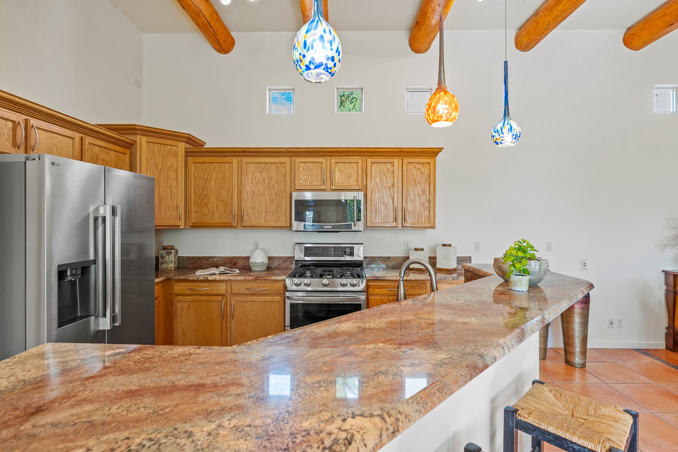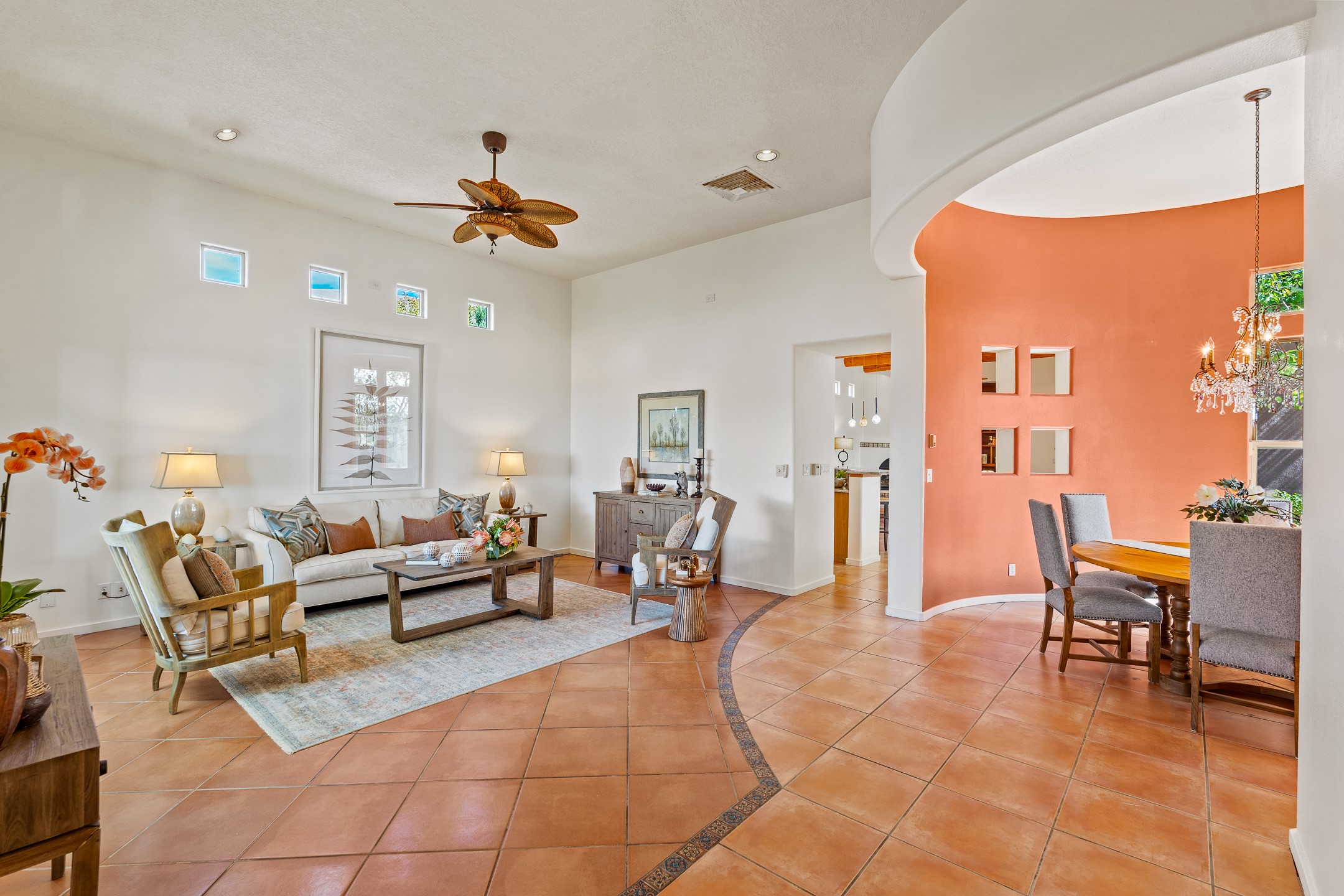 Welcome to this spacious 2,291 sq. ft. single-level home in the sought-after Windmill Ridge neighborhood of Rancho Viejo. Built in 2001, this thoughtfully designed residence offers 3 bedrooms plus an office, 2 bathrooms, 2 courtyards, and a 2-car garage, blending comfort and convenience with timeless Santa Fe style. Interior highlights include high ceilings with beams in the great room, tile flooring throughout, and a gas kiva fireplace in the living room. The extra-large lot is enhanced with mature trees and irrigated plantings.The open-concept design features a light-filled living area anchored by a unique round dining space, creating the perfect flow for both everyday living and entertaining. A comfortable family room sits just off the kitchen, which is equipped with a gas range, granite countertops, and new appliances including a refrigerator, dishwasher, and sink - adding modern ease to this inviting space.A split floor plan places the private primary suite on one side of the home, with two guest bedrooms plus the office on the other--ideal for hosting visitors or creating a home office. Outdoor living is equally inviting with a walled private courtyard perfect for morning coffee, gardening, or starlit evenings. A second courtyard at the back of the home offers charming landscaping and tile murals, creating another serene space to enjoy.Set at the end of a quiet street and just across from walking trails and open space, this property provides a rare sense of serenity while staying connected to the best of Santa Fe.Located within Rancho Viejo, a thriving planned community designed around open land, residents enjoy over 15 miles of paved walking trails, multiple parks, and a strong neighborhood spirit. Shopping, dining, and city amenities are only minutes away, making this home as practical as it is beautiful.Come discover the perfect balance of space, style, and community at 2 Sobradora.