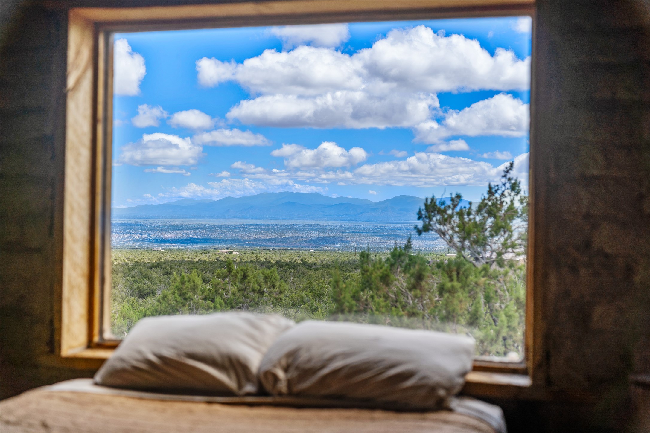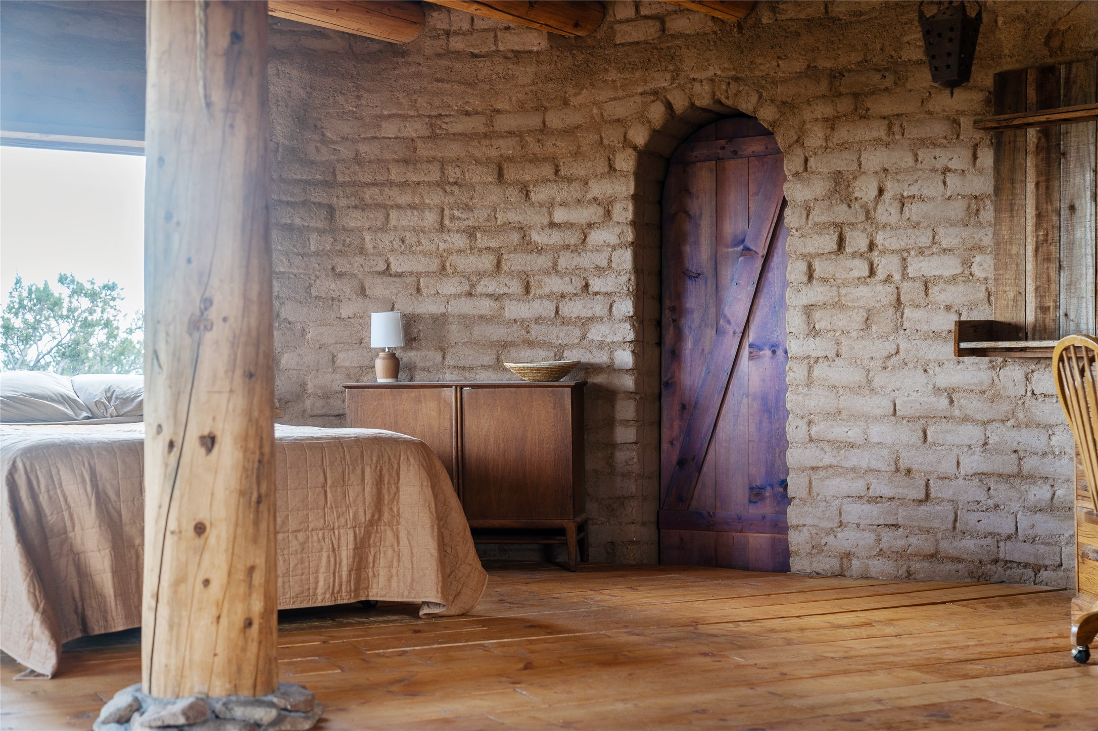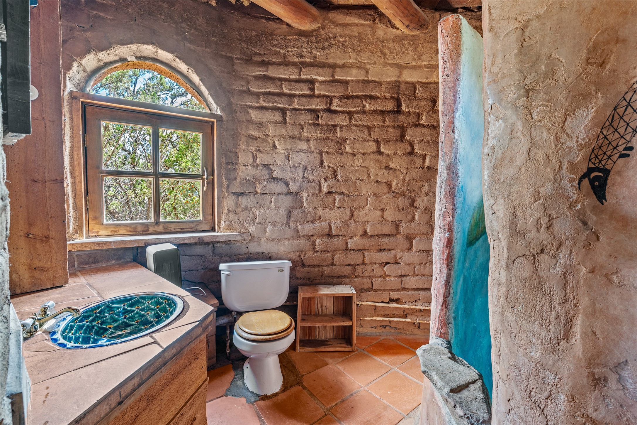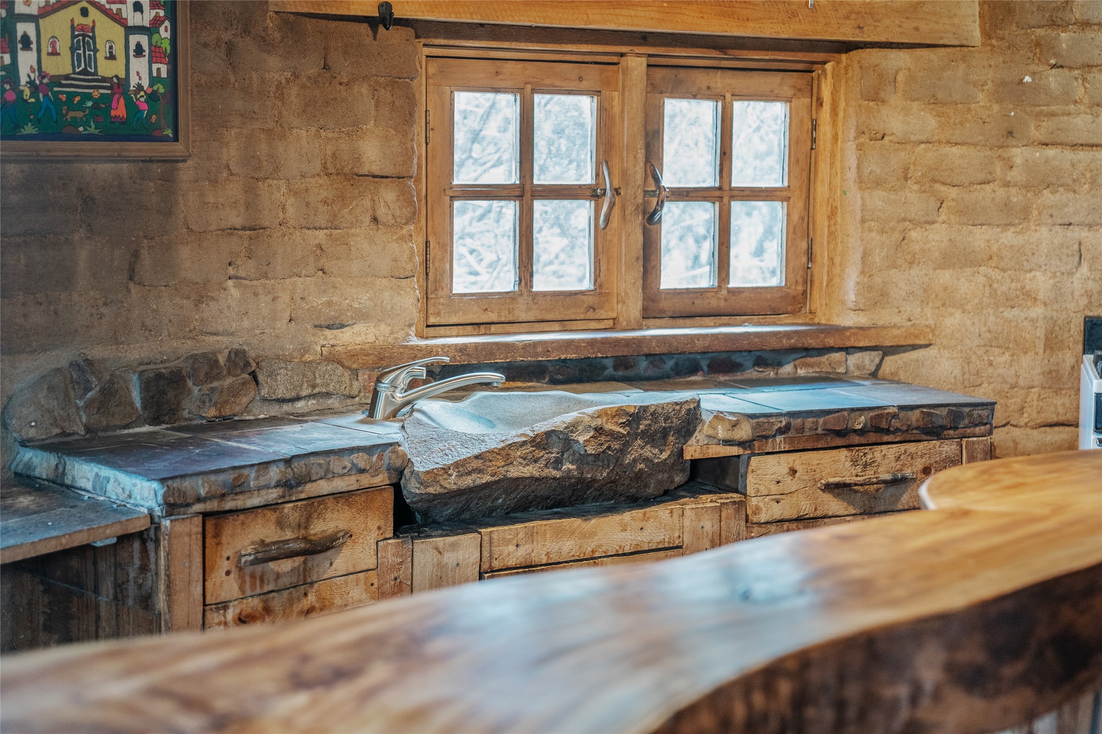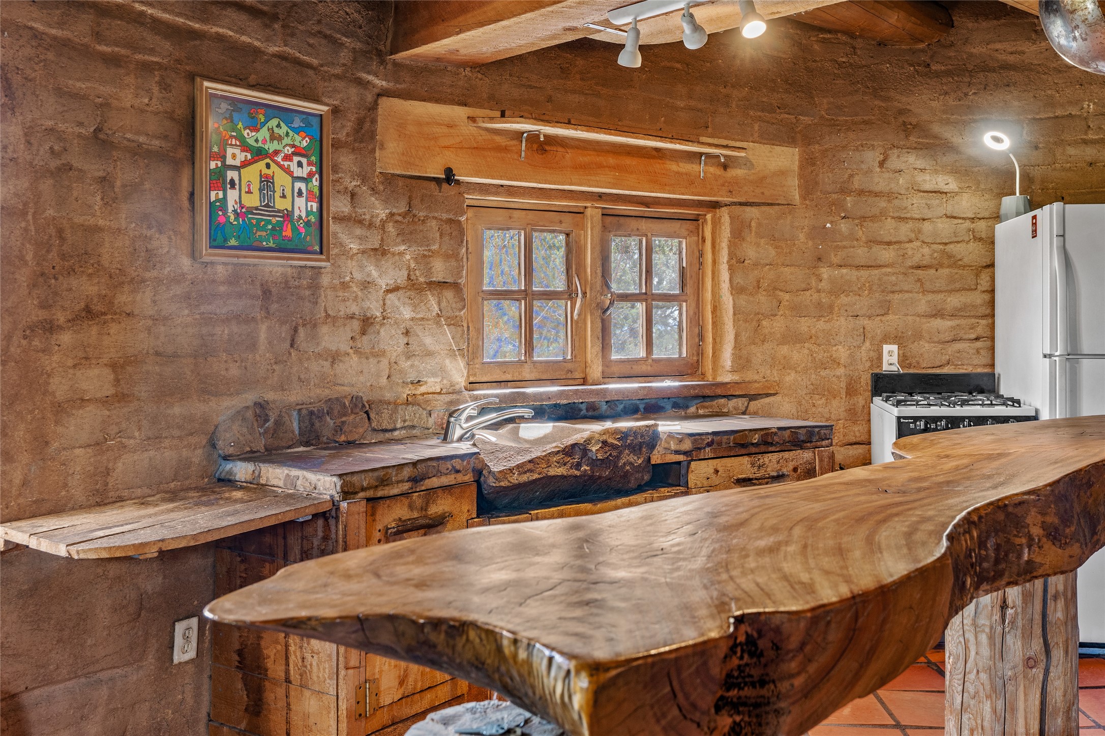 Revealing a sculptor's touch, this hand-built round adobe on the slopes of the Ortiz Mountains is ready for new energy. Nestled on 13.34 elevated acres with gentle, easy topography and breathtaking views, this one-bedroom, one-bath home offers a sanctuary from the world while being less than a quarter mile from pavement and approximately 30 minutes from Santa Fe. Unique features add warmth and character, including a spiral staircase, wide plank wood floors, hand-hewn counters, a stone sink, and viga ceilings. Outside, the upstairs decks, which currently need repair, offer some of the best views in the region. With wood heat, public electricity, a private well, and a newer septic system, this home is poised to provide a distinctive retreat. While completely charming, this home requires some repairs and upgrades and is priced accordingly. Please make an appointment to see.
