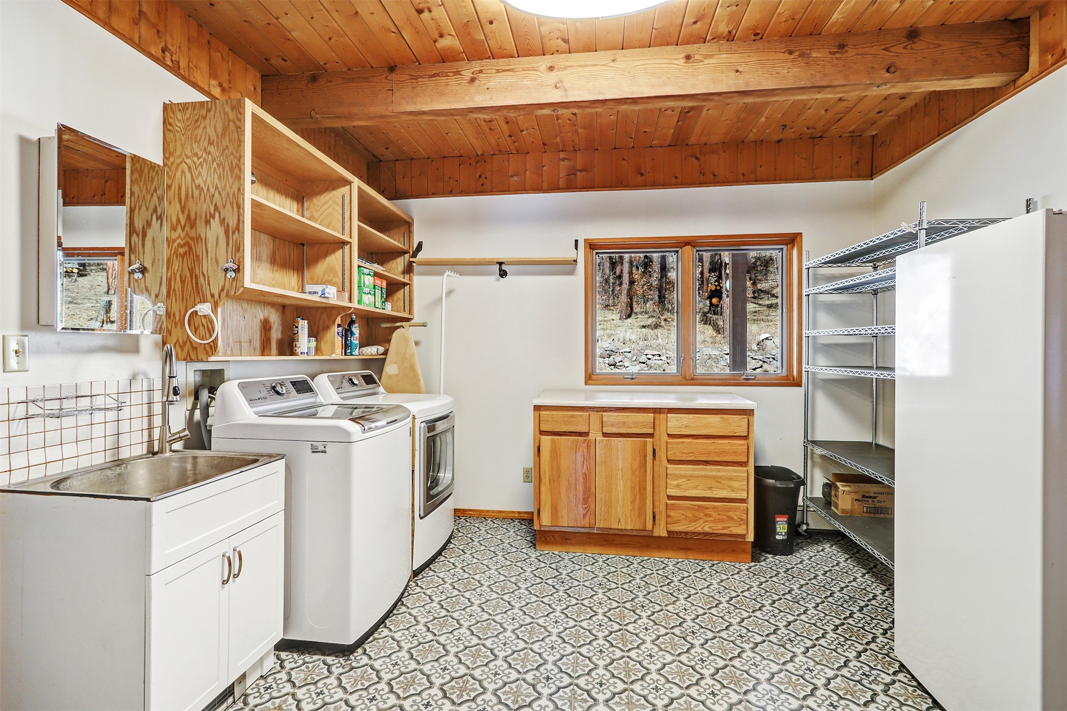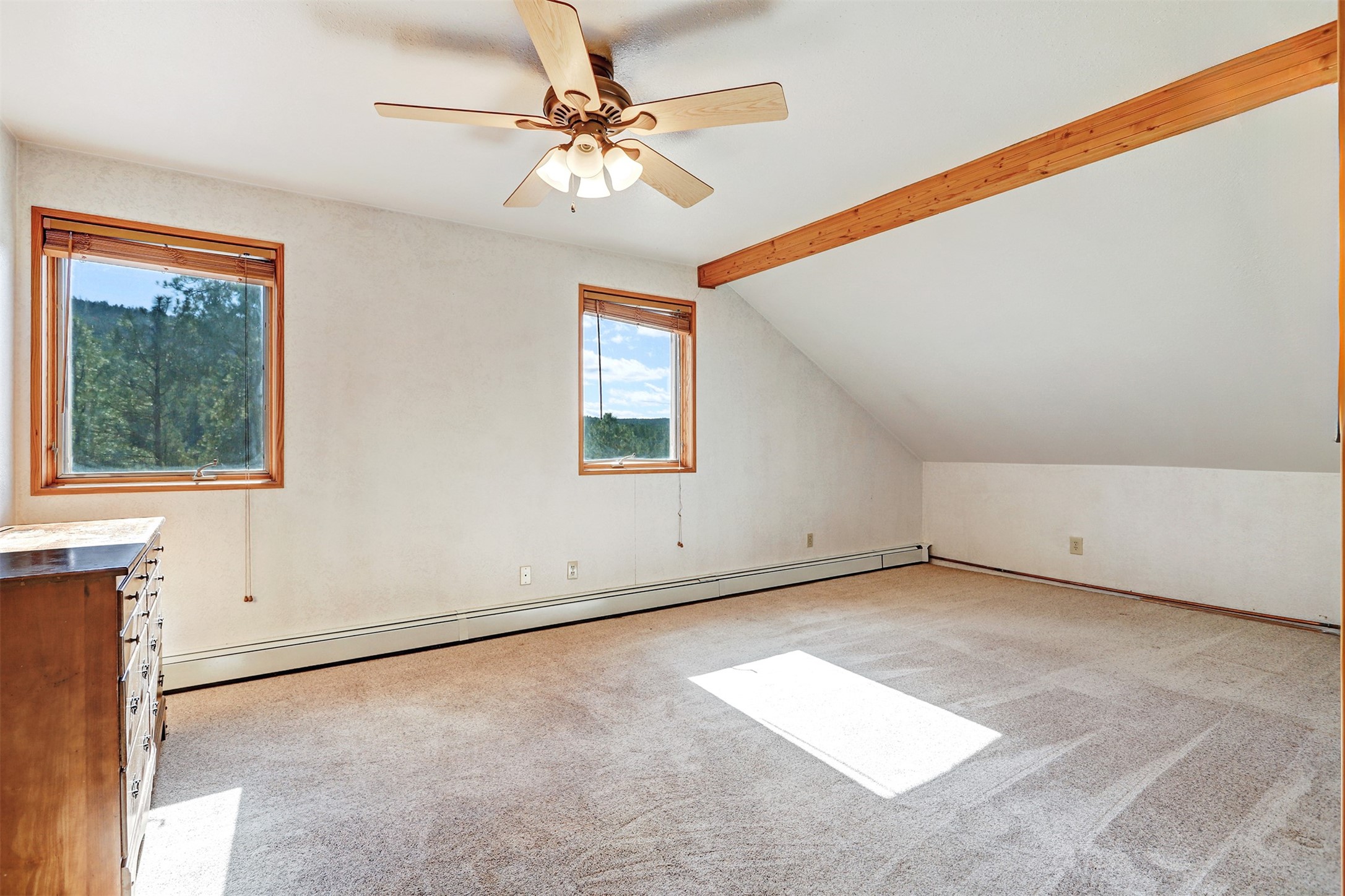 Need space? This large mountain home features 6/7 bedrooms, 5 bathrooms and storage galore! A separate apartment area has it's own entrance, kitchen, bath, and living area. The approx 2 acre property boarders the Santa Fe National Forest, and easily accessed by a county maintained road. Only a mile or so to a back gate of the Valles Caldera, and a 40 minute scenic commute to Los Alamos. Oversized 2 car garage gives you plenty of room for the toys. A sunroom on the front of the house opens to the large deck for outdoor enjoyment/entertaining. Hike out the back door into the woods, bike into the Caldera, or fish the streams in the area. This place has it all, and room for everyone!