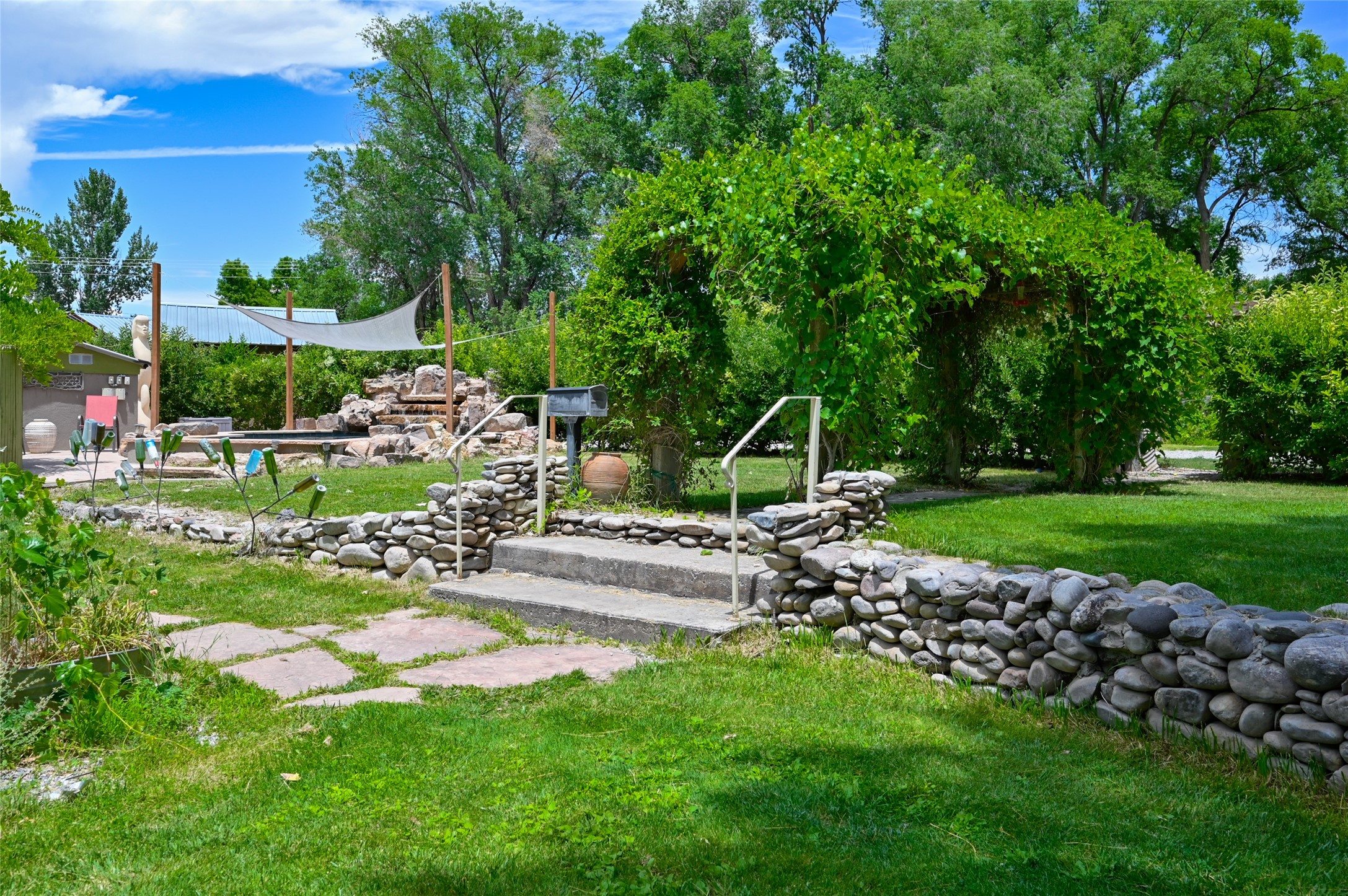 Heavenly 4.5-Acre Estate in Pojoaque Valley - Vineyard, Casitas & More!Rare opportunity to own one of the most spectacular estates in the Pojoaque Valley, just minutes from downtown Santa Fe. This 4.5-acre property offers a serene retreat with 3 acre-feet of domestic water rights and 6.91 acre-feet of irrigation water rights, supporting both vineyard expansion and lush garden potential. The grounds are also home to mature apple, plum, pear, and cherry trees.The main residence is a classic adobe featuring 4 bedrooms and 2 bathrooms (ESTIMATED SQ. FT. 2300), with traditional New Mexican details including vigas, brick floors, two rock fireplaces, and a spacious portal perfect for outdoor living.Three additional casitas (ESTIMATED TOTAL 3100 SQ. FT. COMBINED) provide excellent flexibility:1BR/1BA Casita - 800 sq. ft.2BR/2BA Casita - 811 sq. ft.1BR / 1BA Casita ready for your personal touch and renovation vision - 1500 sq. ft.Ideal for short-term rentals, guest stays, or multi-generational living.Outdoor amenities offer exceptional entertainment and relaxation opportunities:25-person hot tub/poolFirepit lounge areaOutdoor bathrooms and showersBrick pizza ovensWine cellar2 RV hookupsA large metal barn offers generous storage or potential for workshop, studio, or event use.Whether you dream of running a boutique vineyard, hosting retreats, or simply living in peaceful luxury, this unique Pojoaque Valley estate delivers charm, privacy, and unlimited potential.